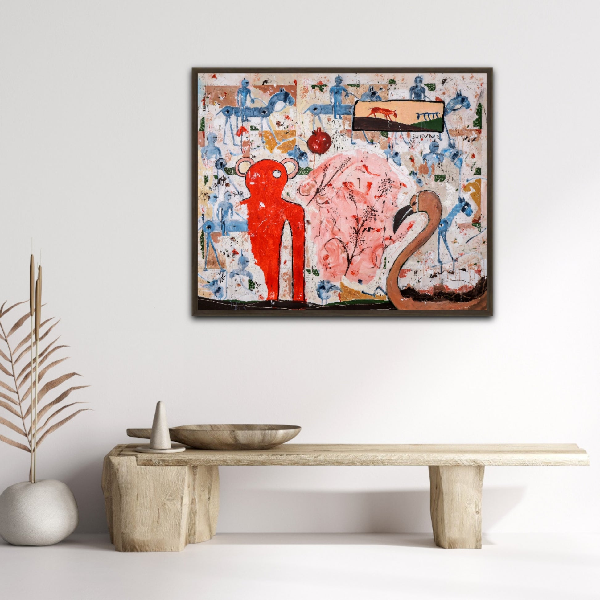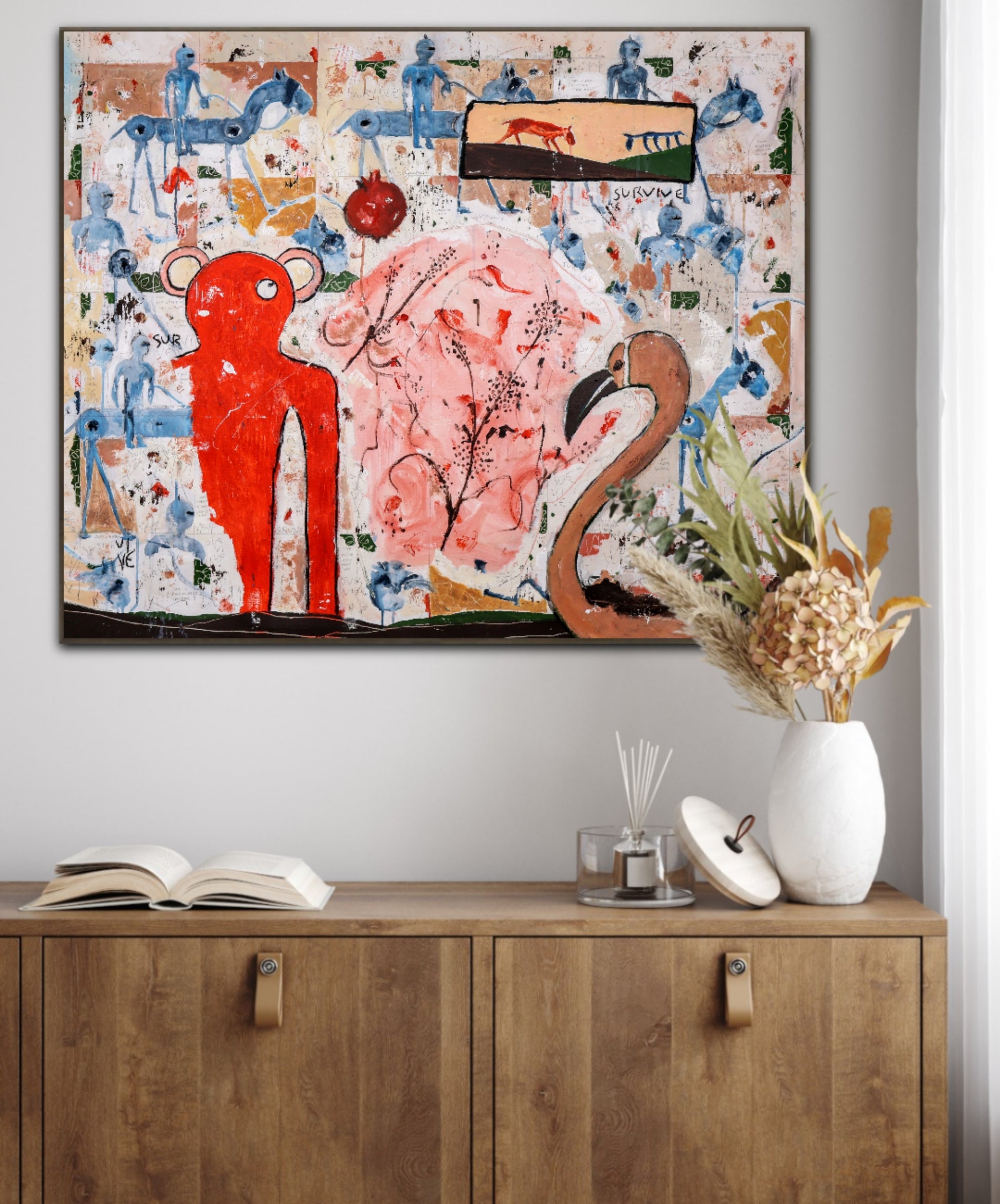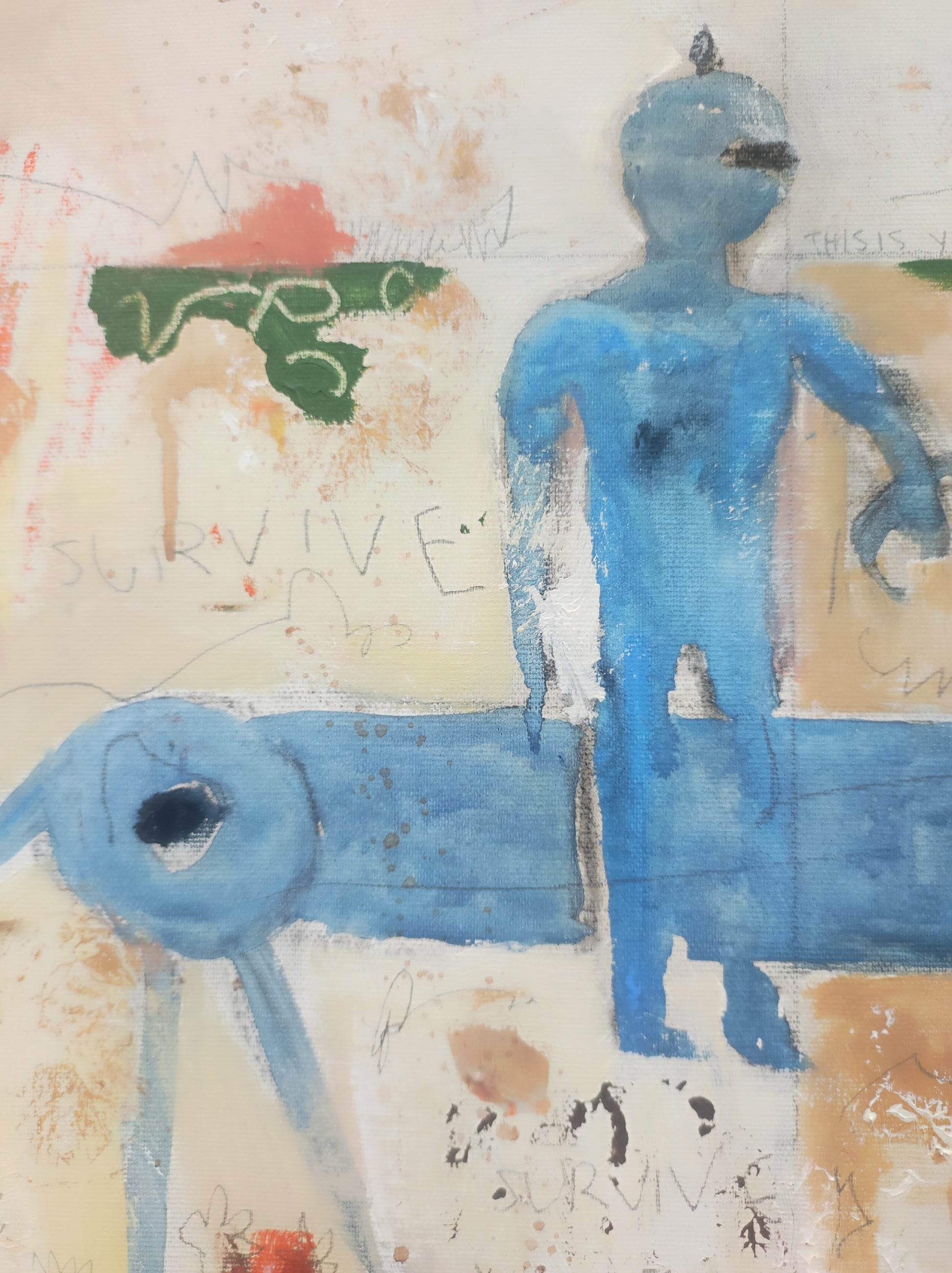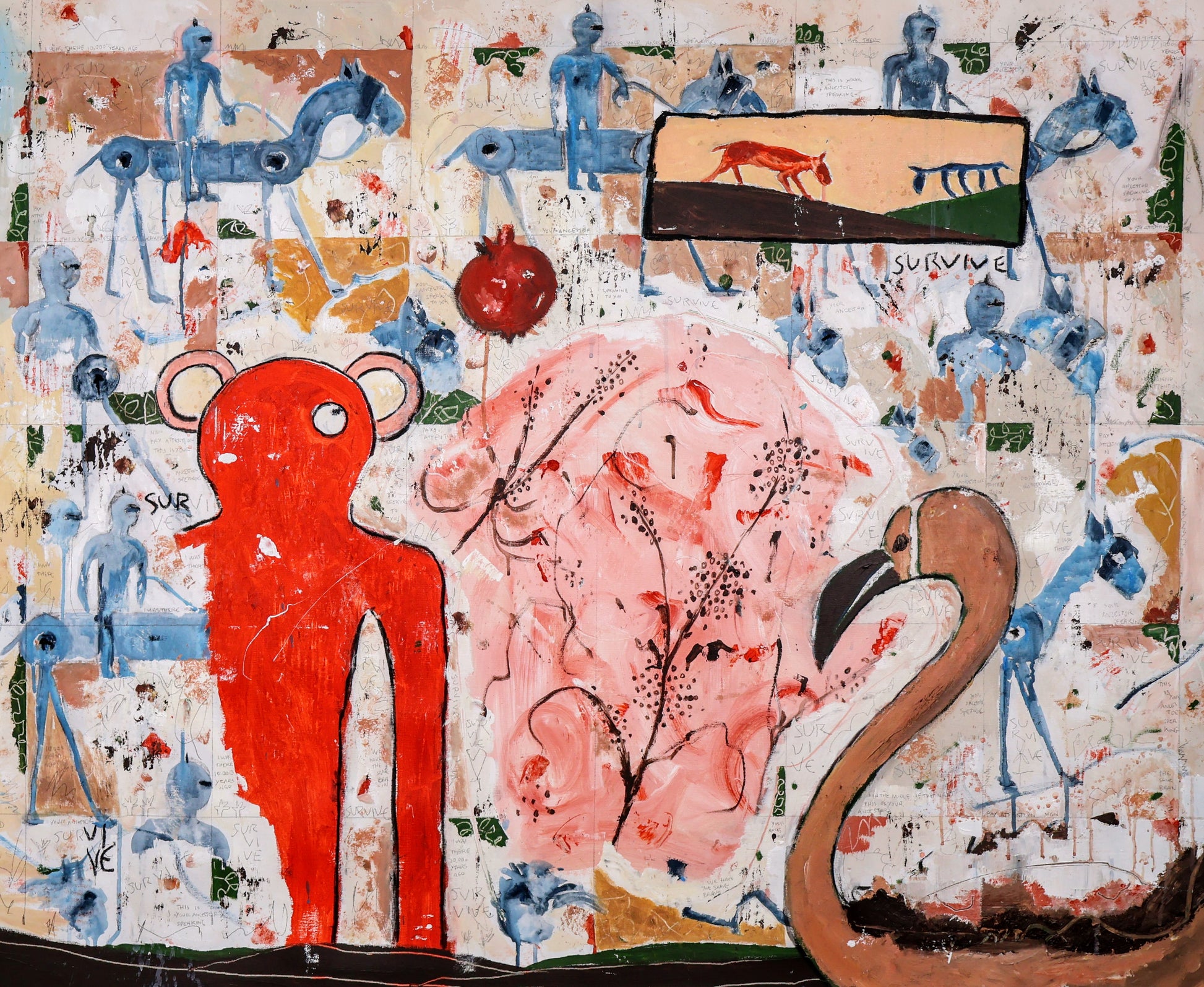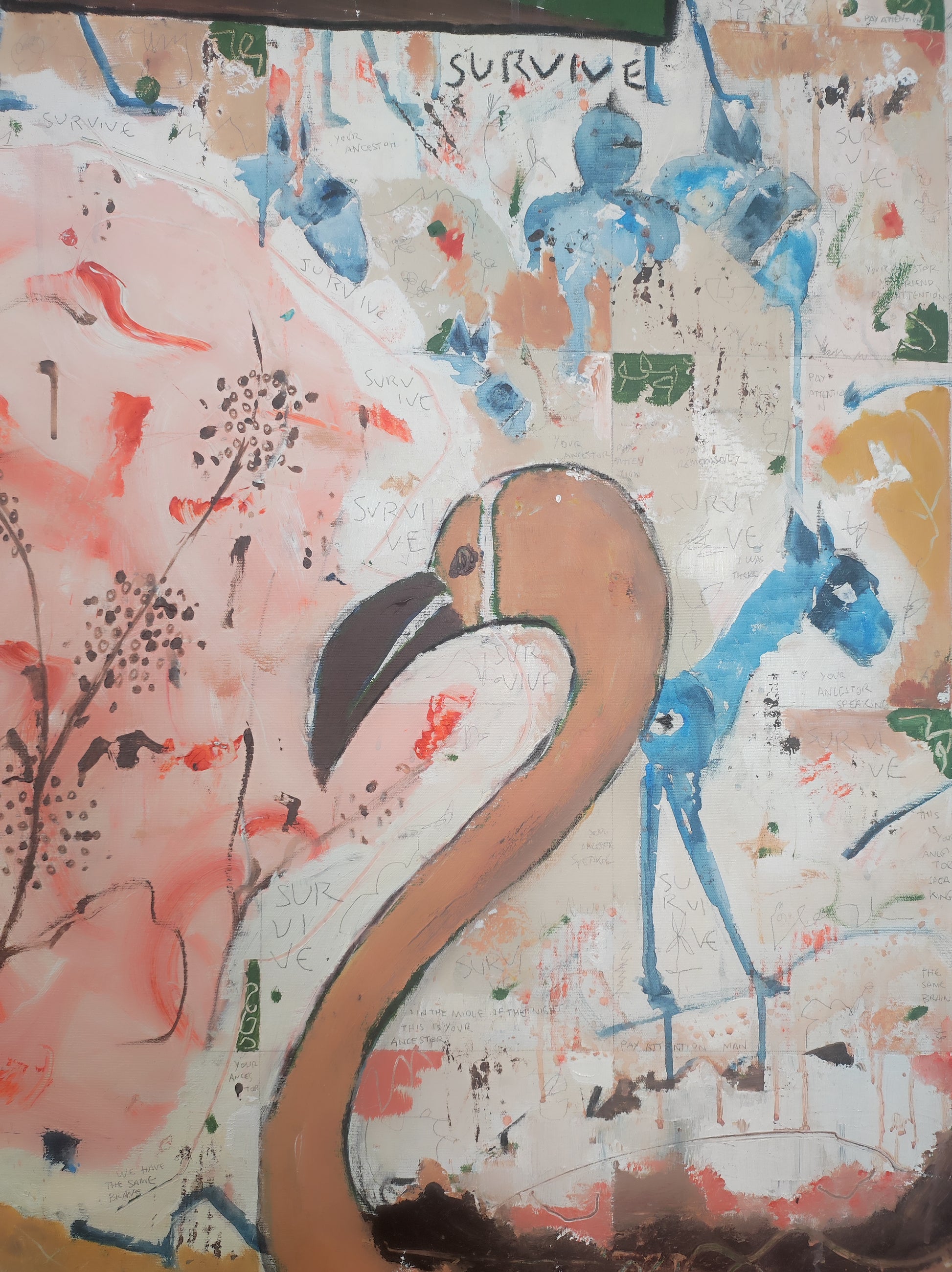 Técnica: acrílico, pigmentos, lápiz, carboncillo, tinta china y gesso.