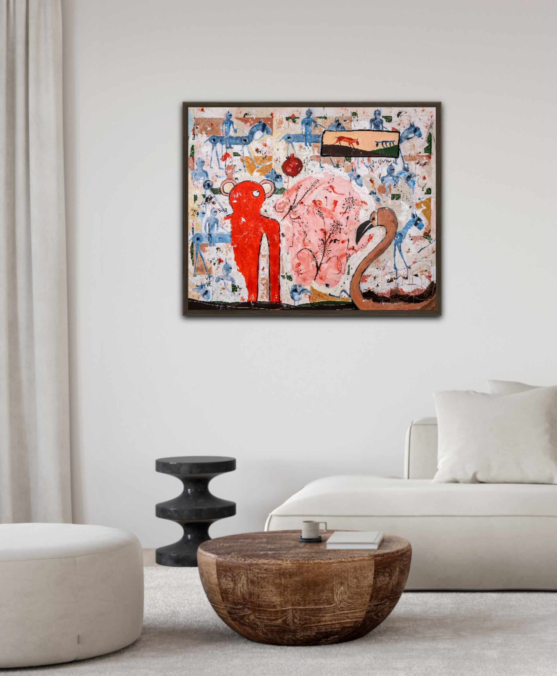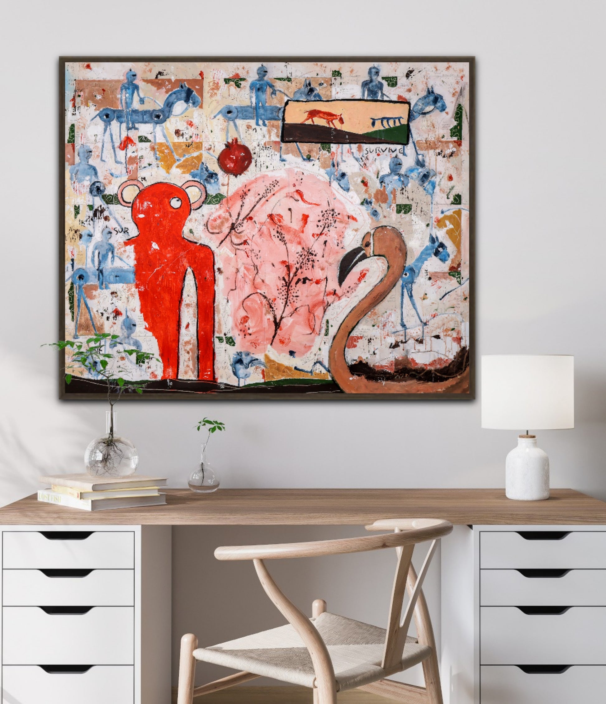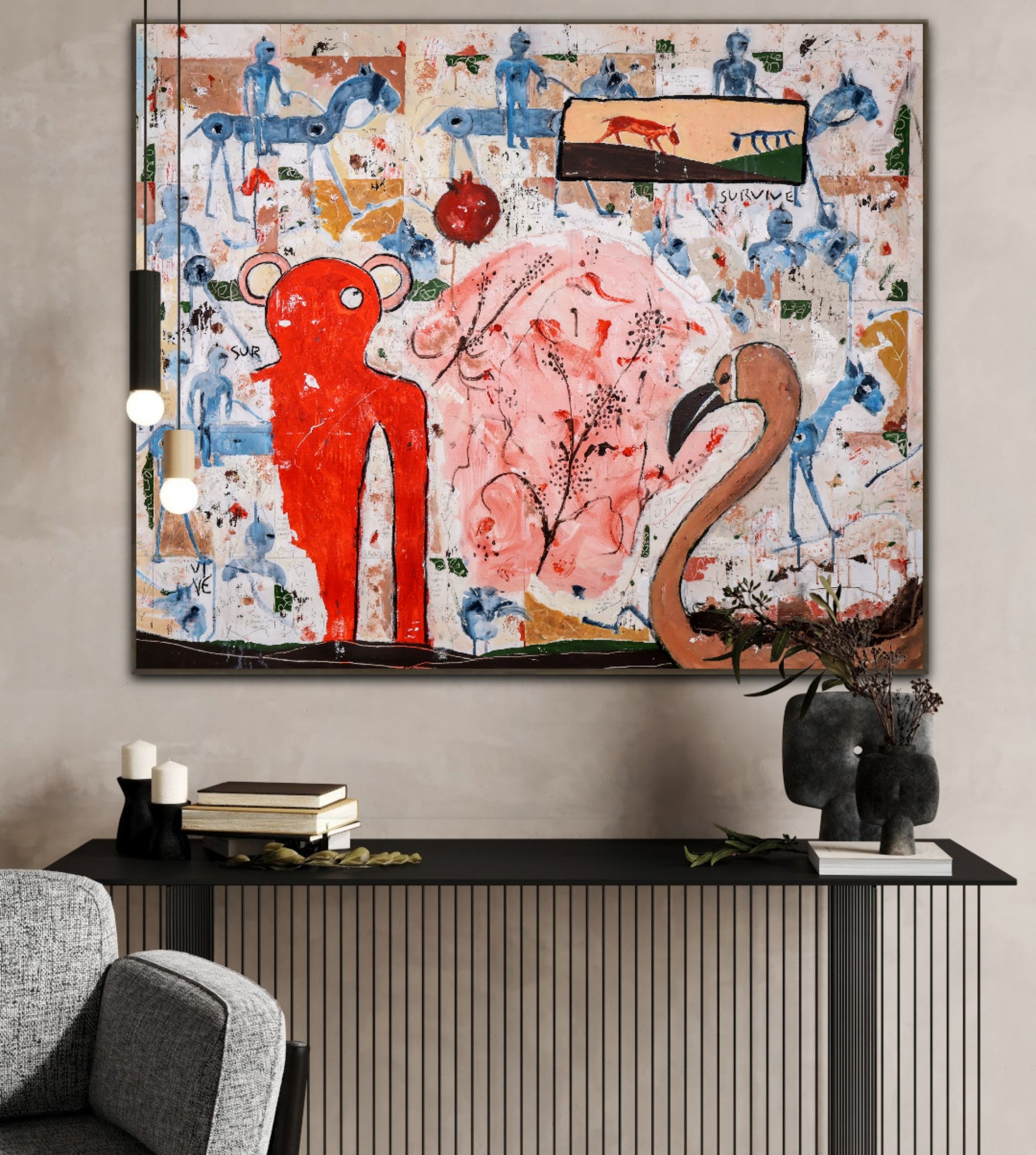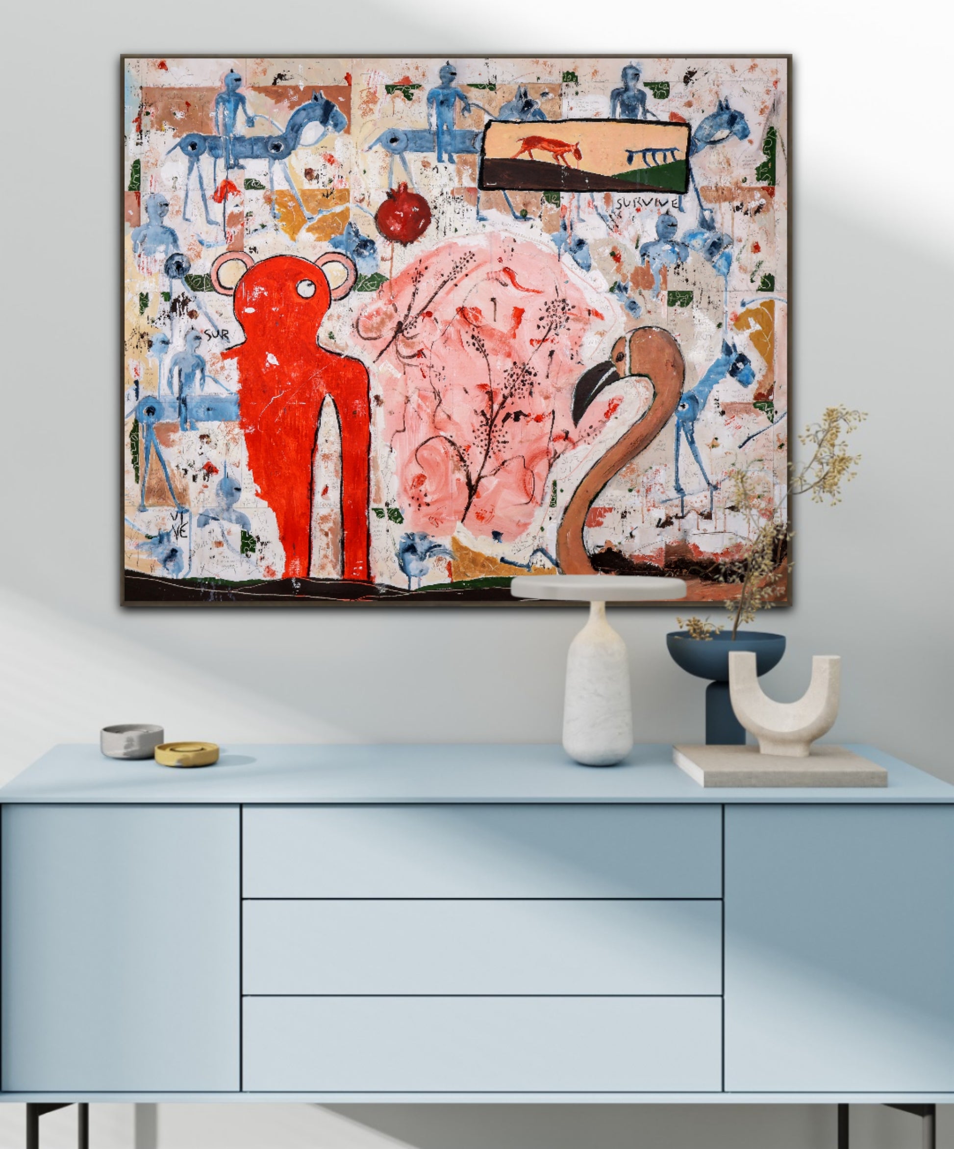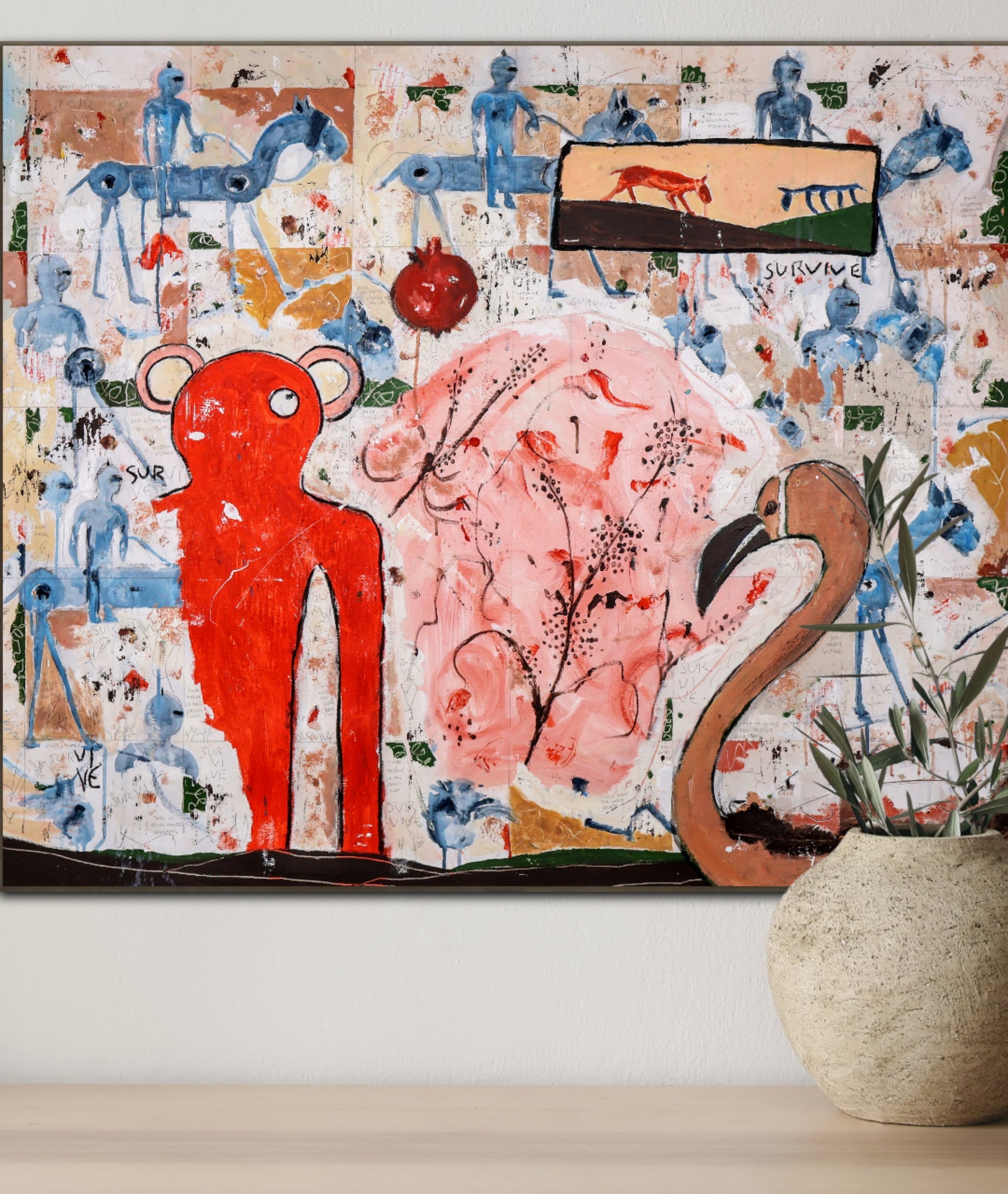 Técnica: acrílico, pigmentos, lápiz, carboncillo, tinta china y gesso.