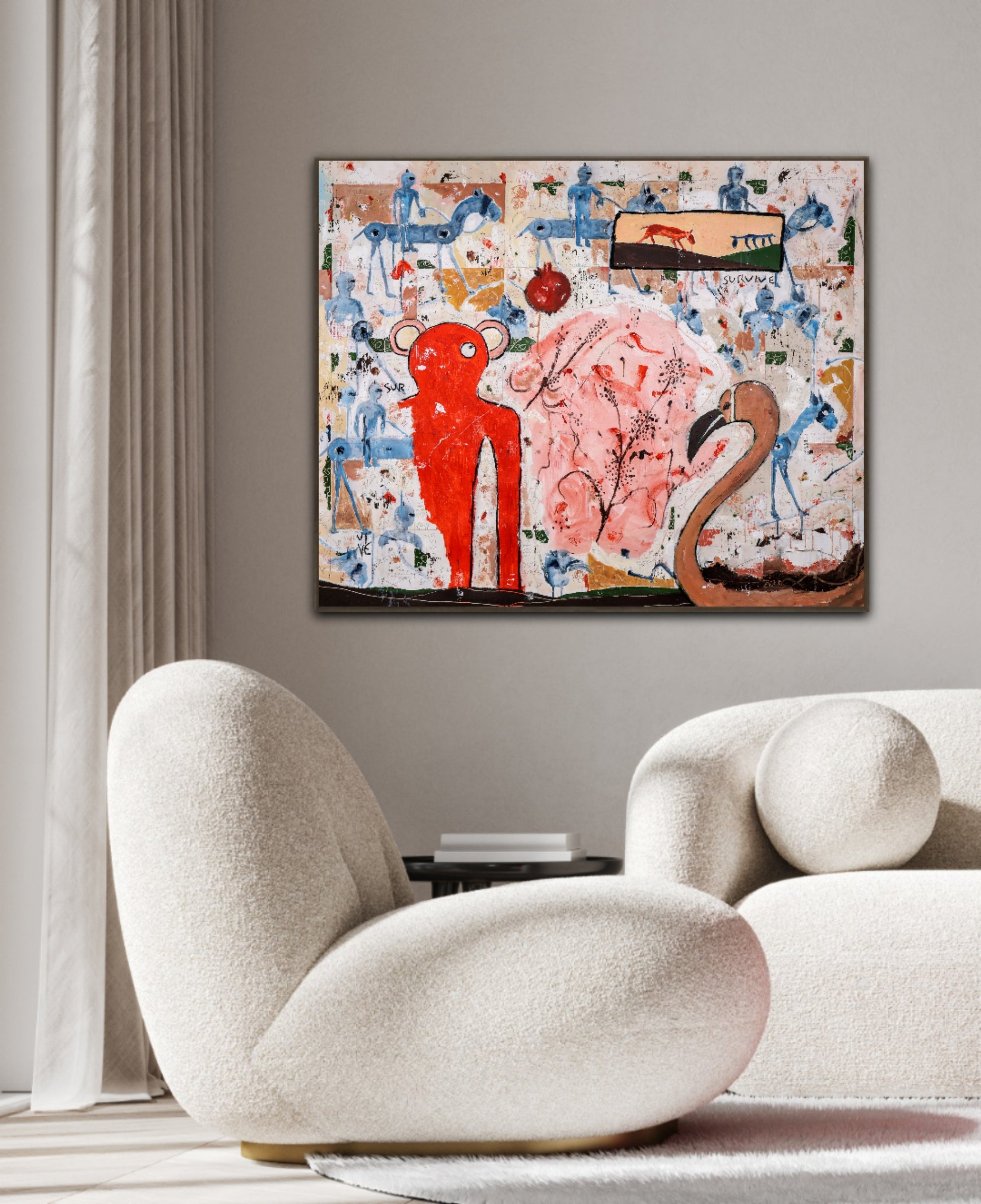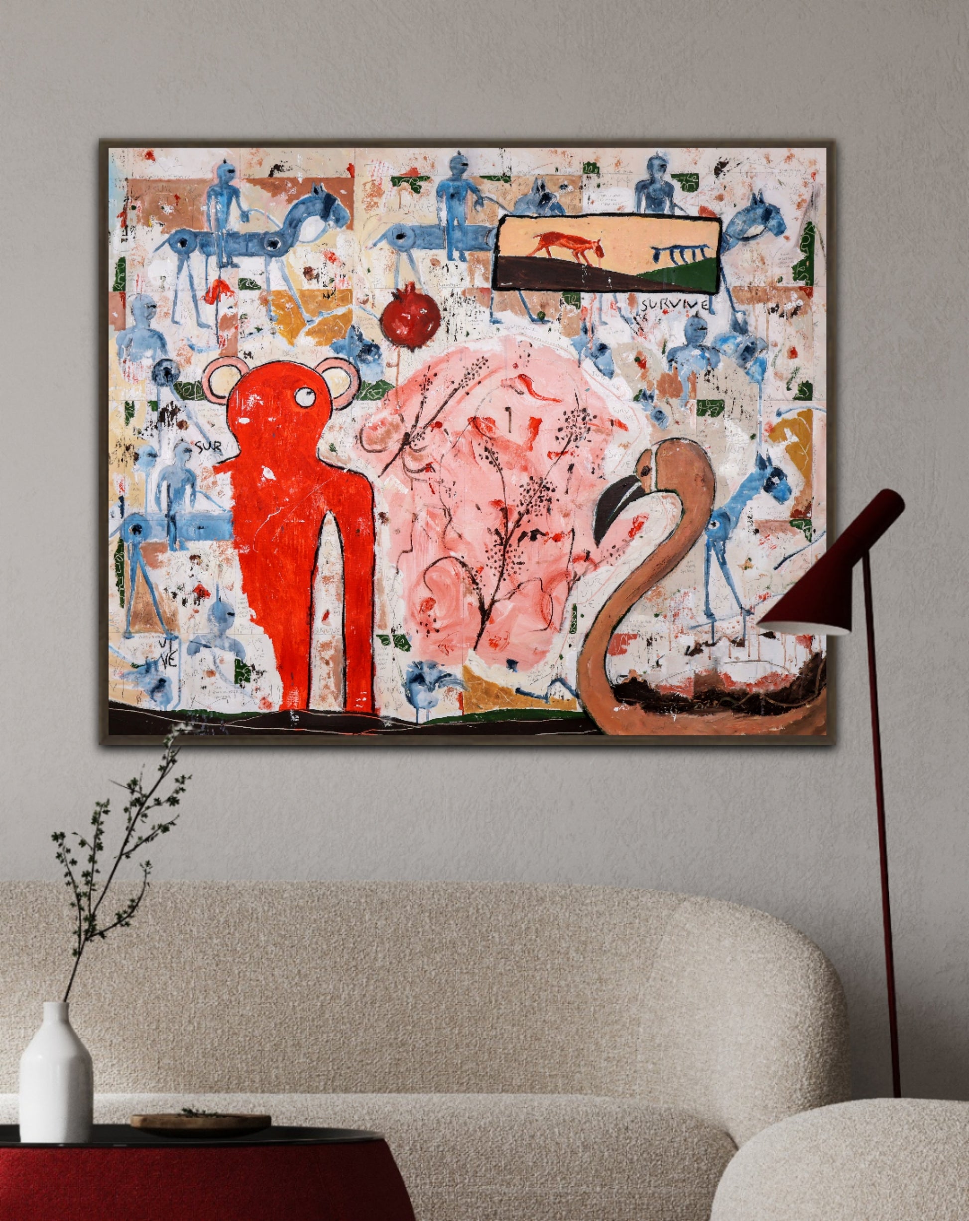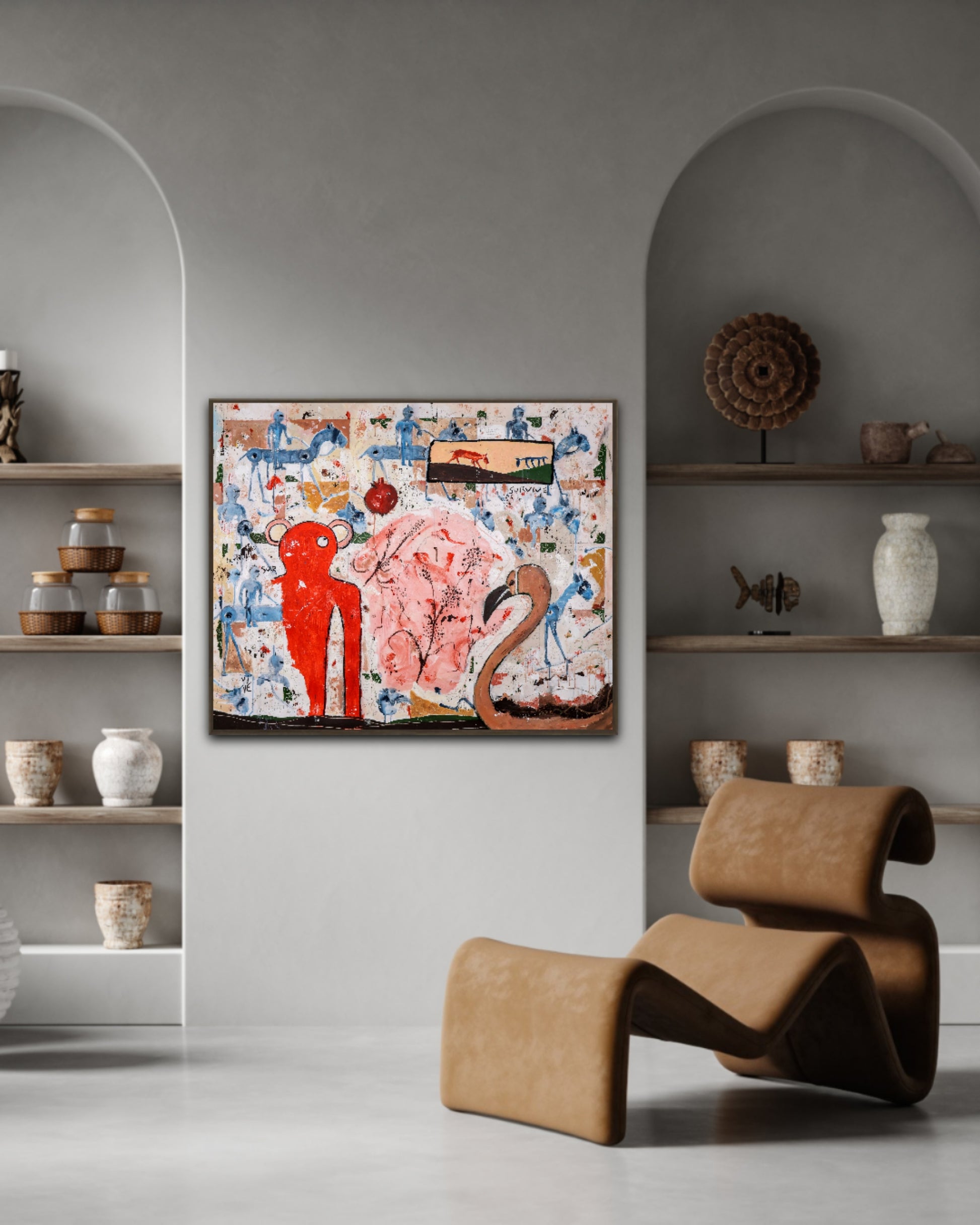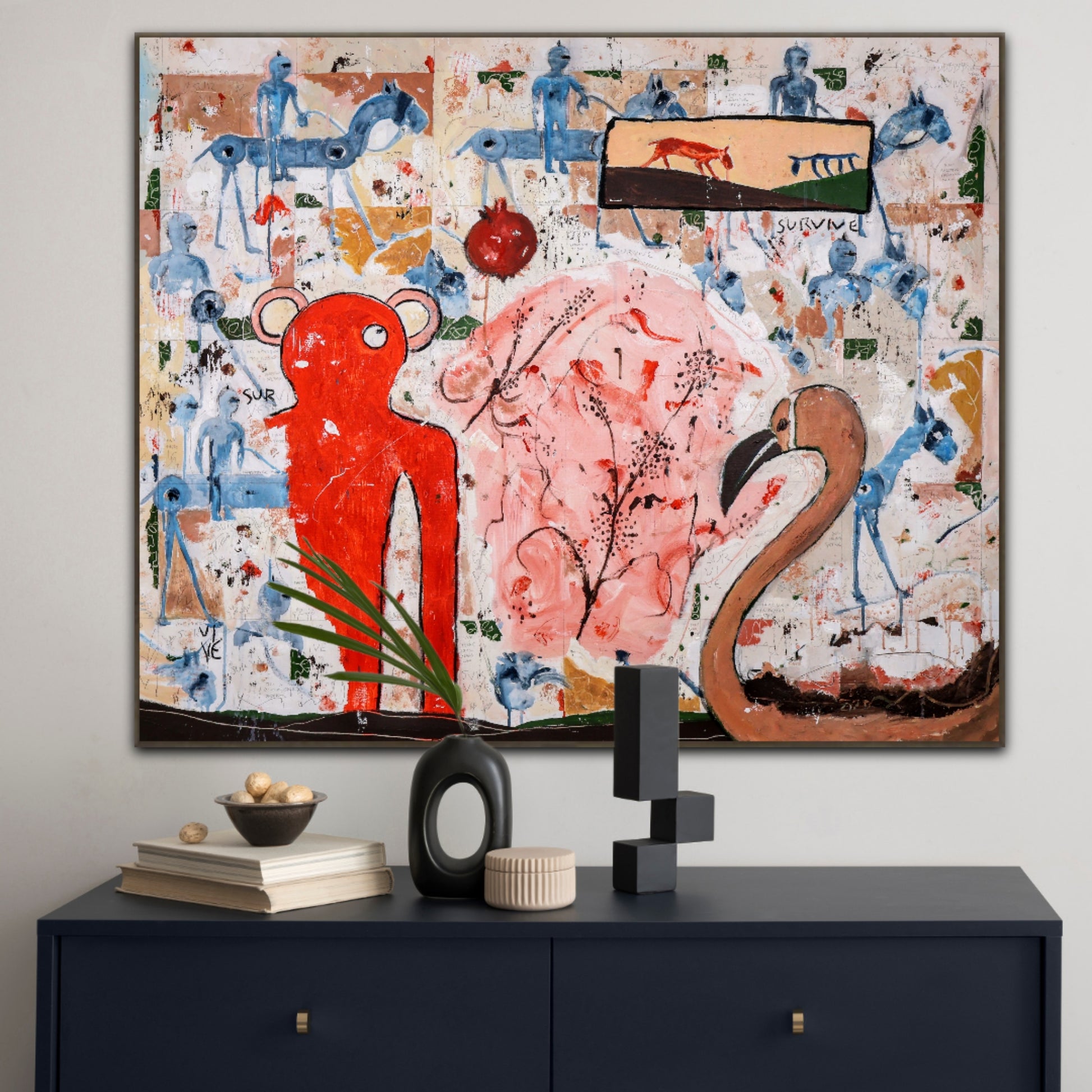 Técnica: acrílico, pigmentos, lápiz, carboncillo, tinta china y gesso.