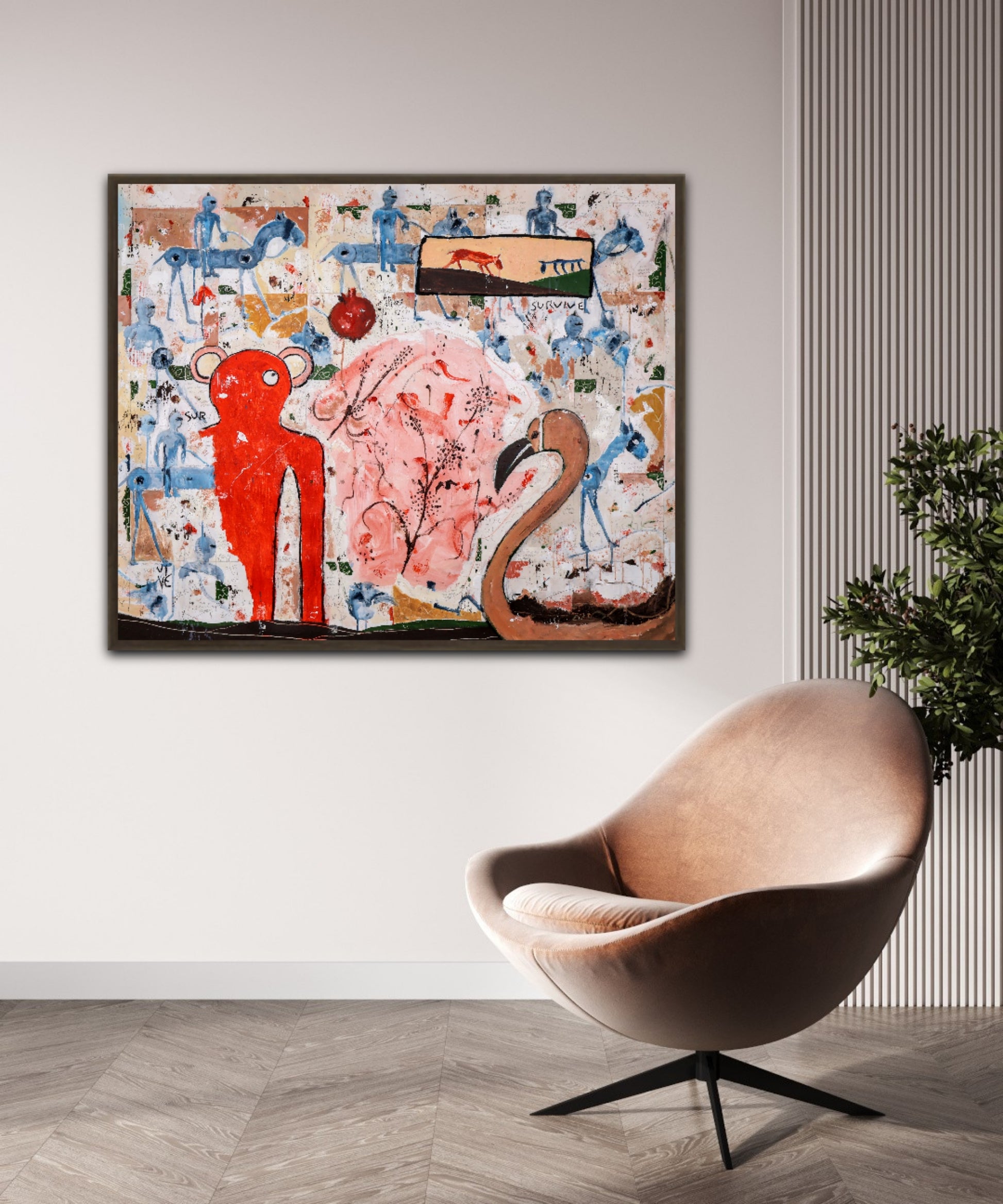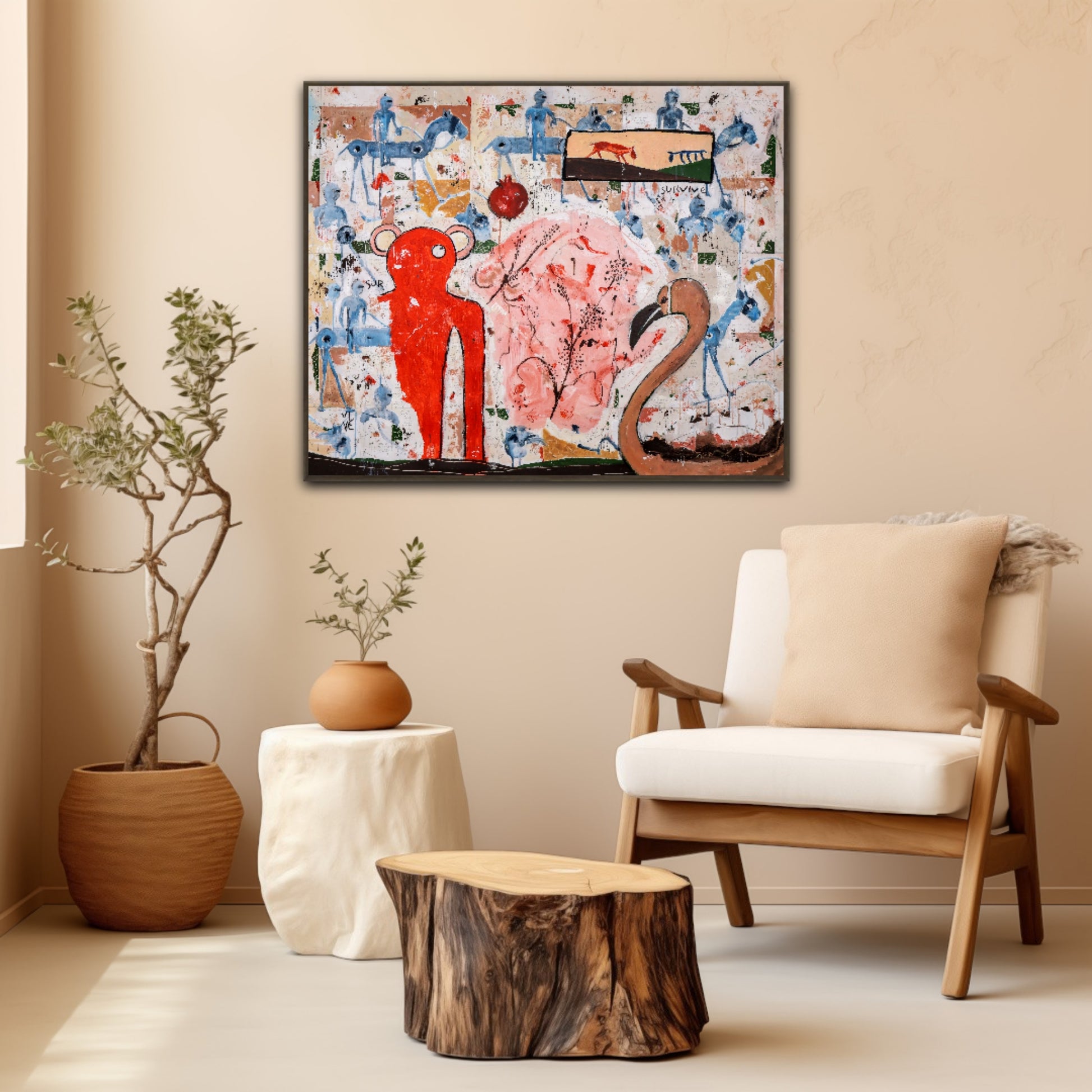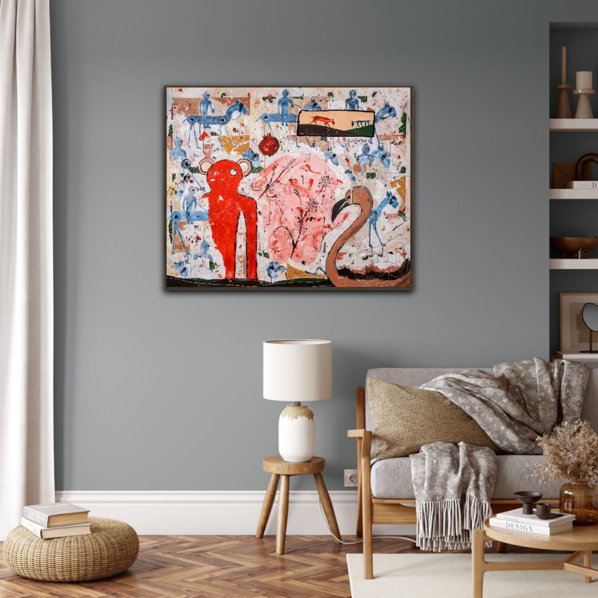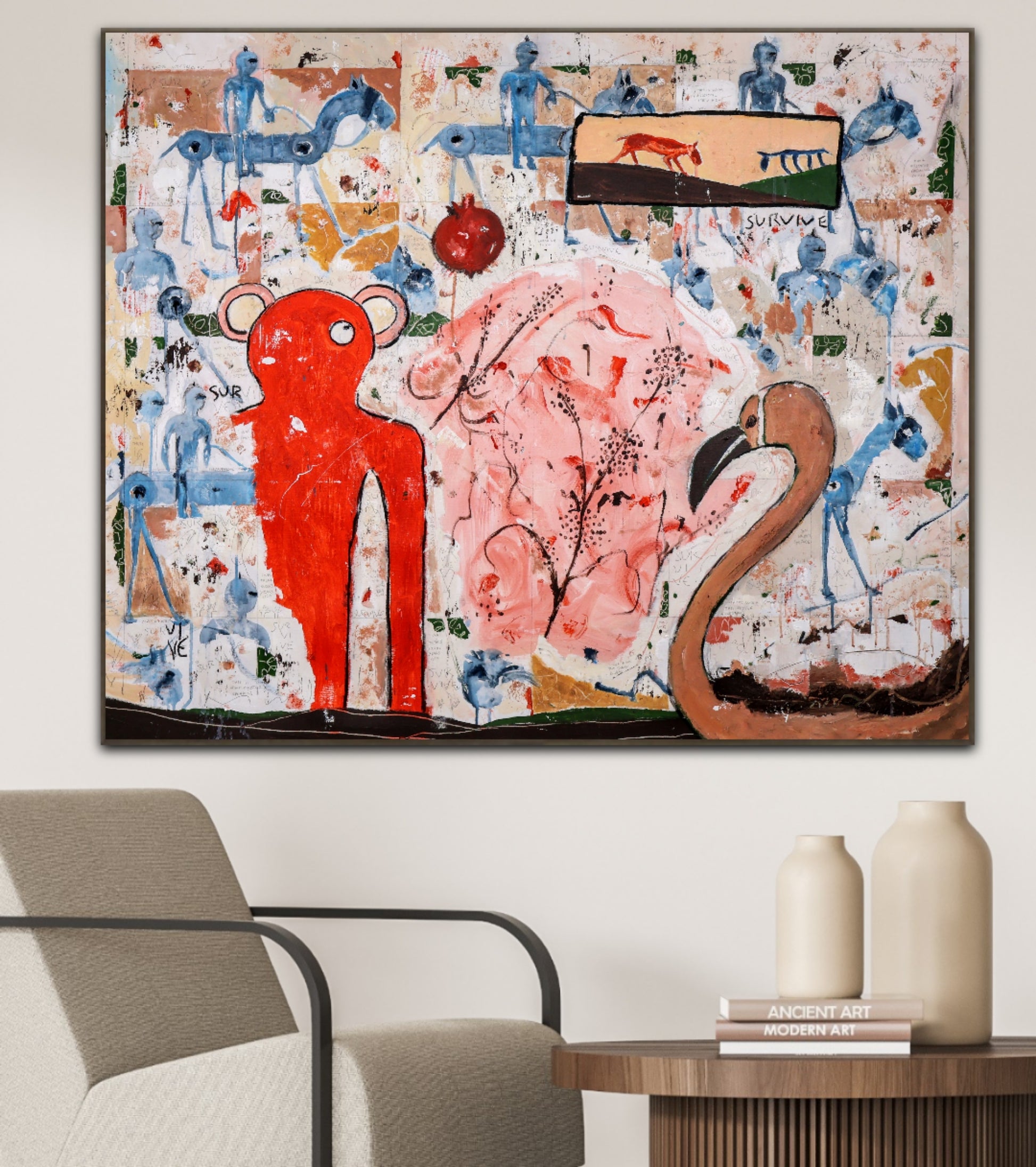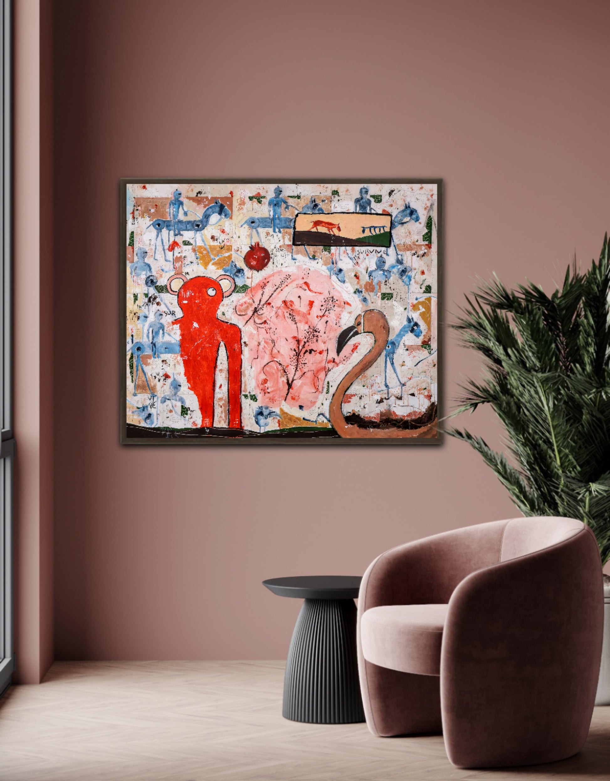 Técnica: acrílico, pigmentos, lápiz, carboncillo, tinta china y gesso.