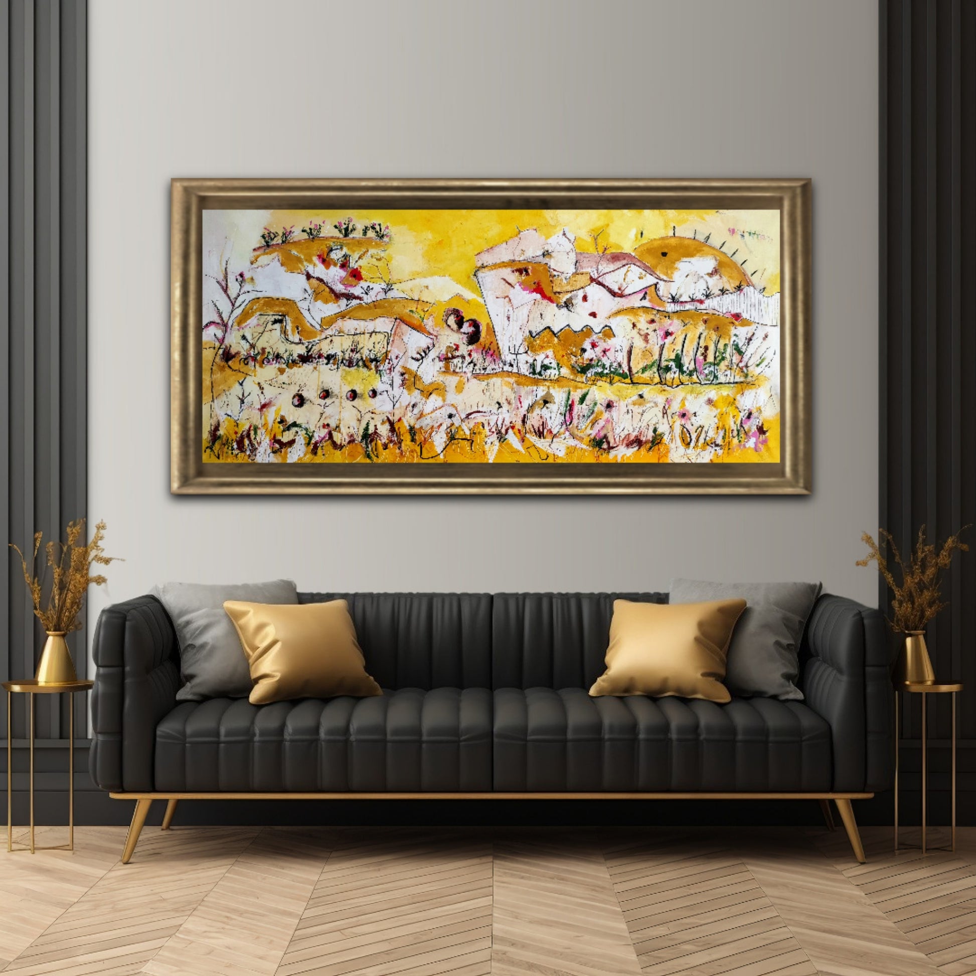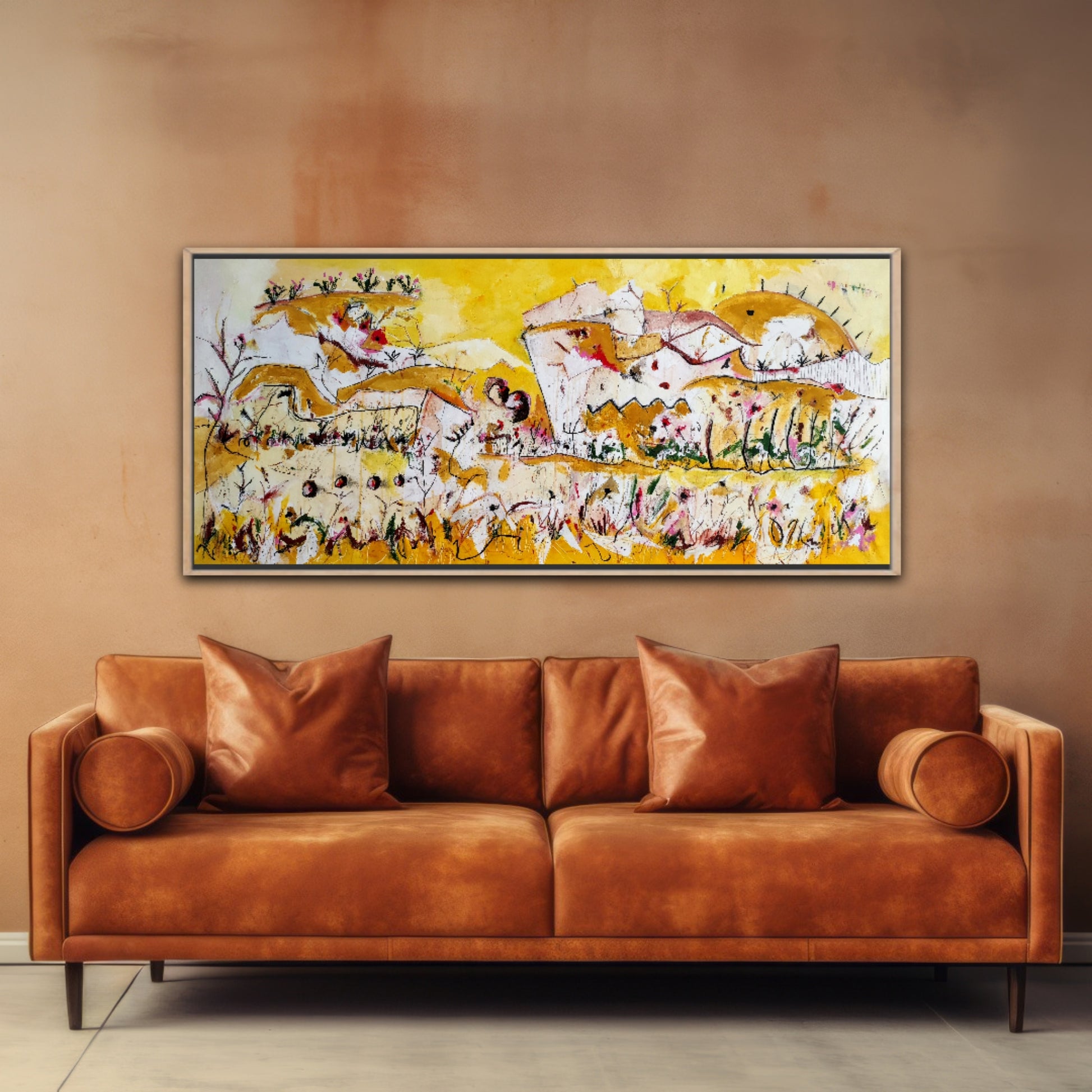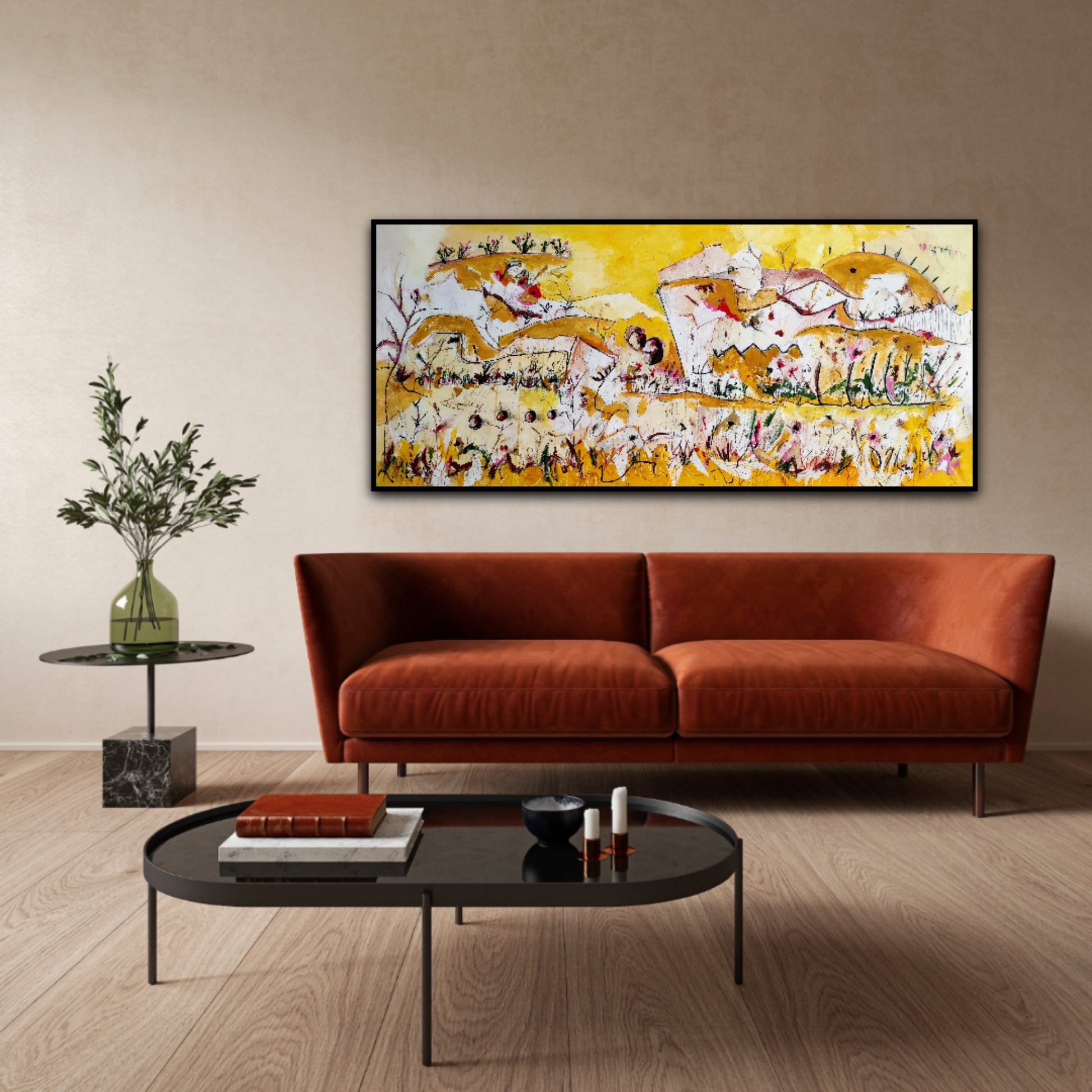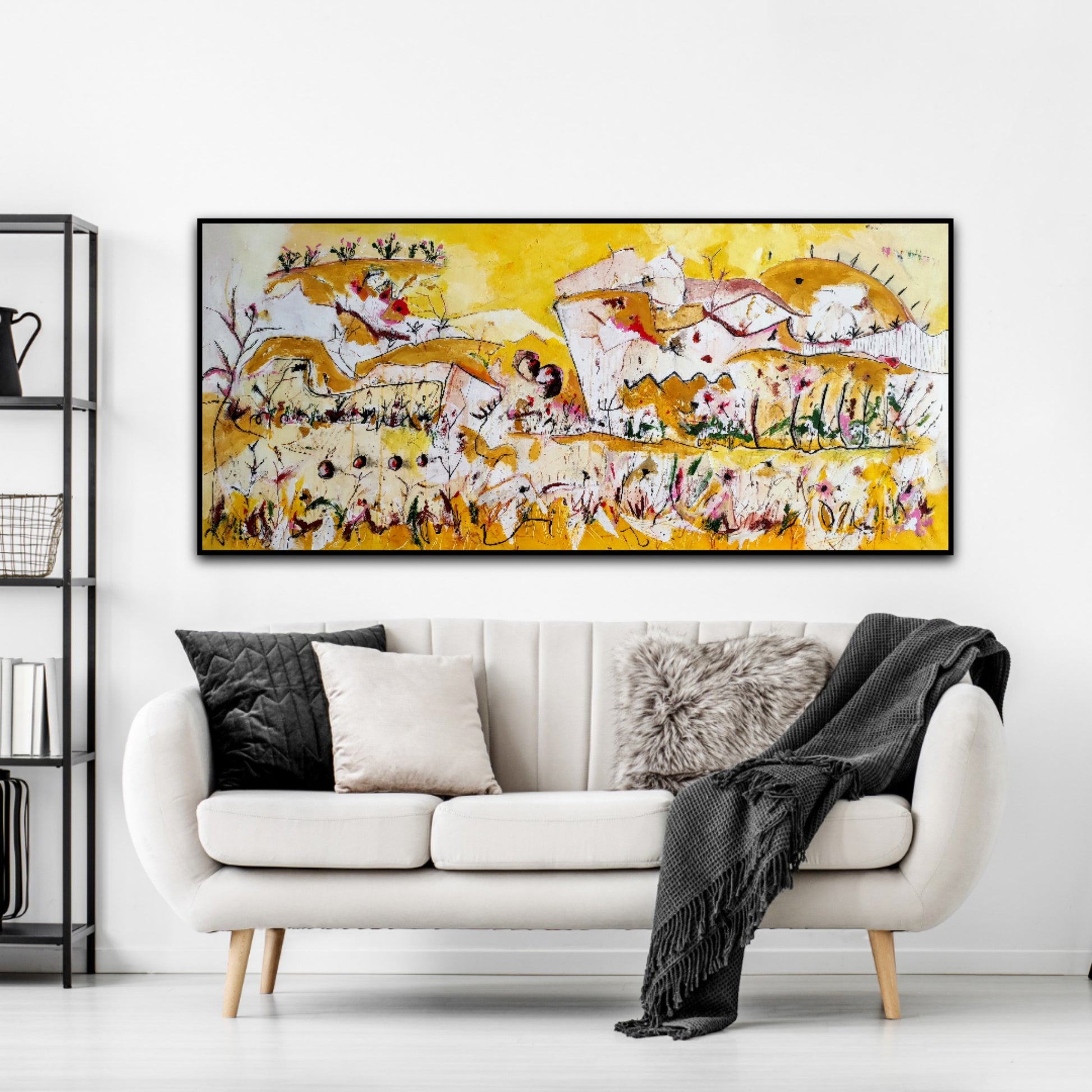 Pintura gestual, intuitiva, que deja que las cosas pasen y se apoya sobre lo que aparece. Aprovechando el accidente y aceptando las consecuencias.