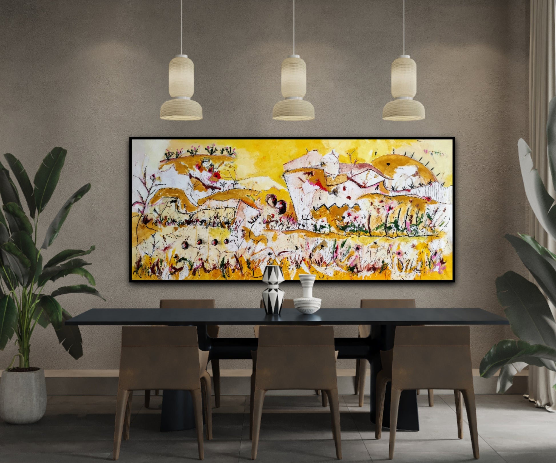 Técnica: acrílico, pastel, carboncillo, lápiz y tinta china.
