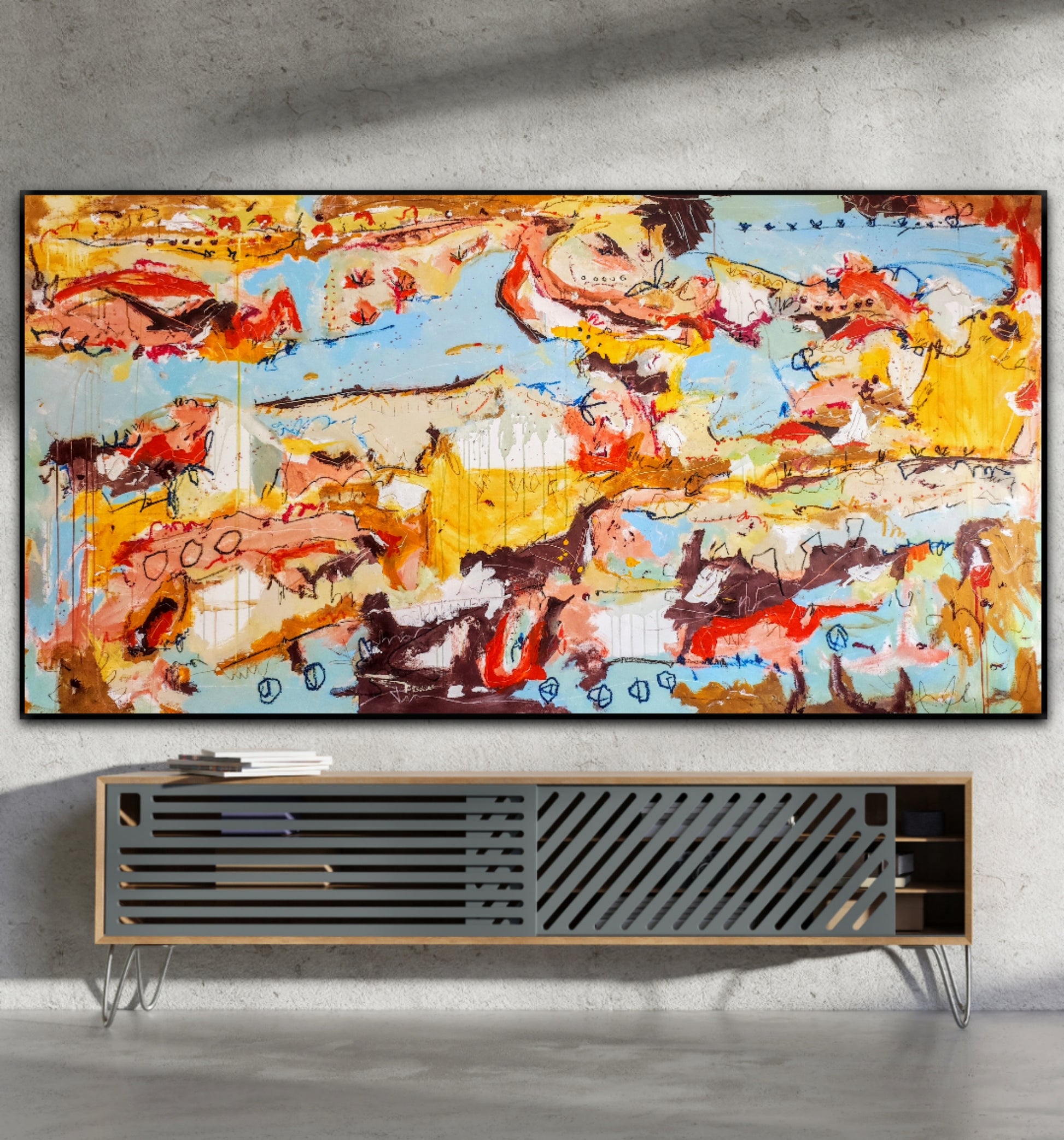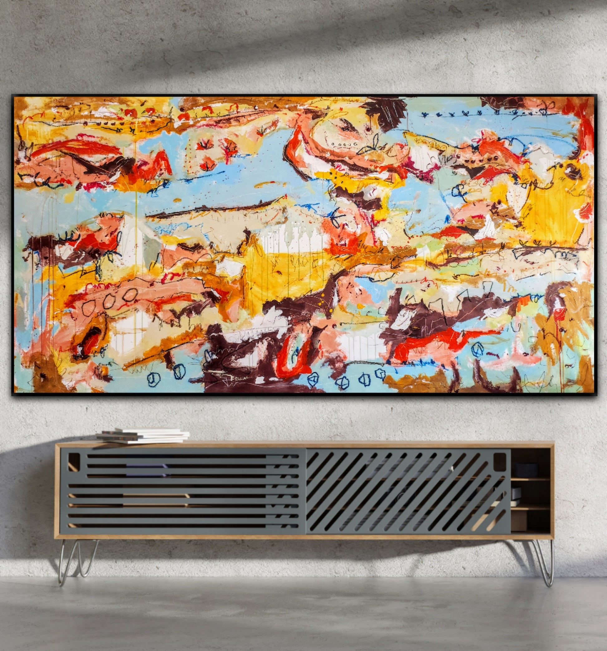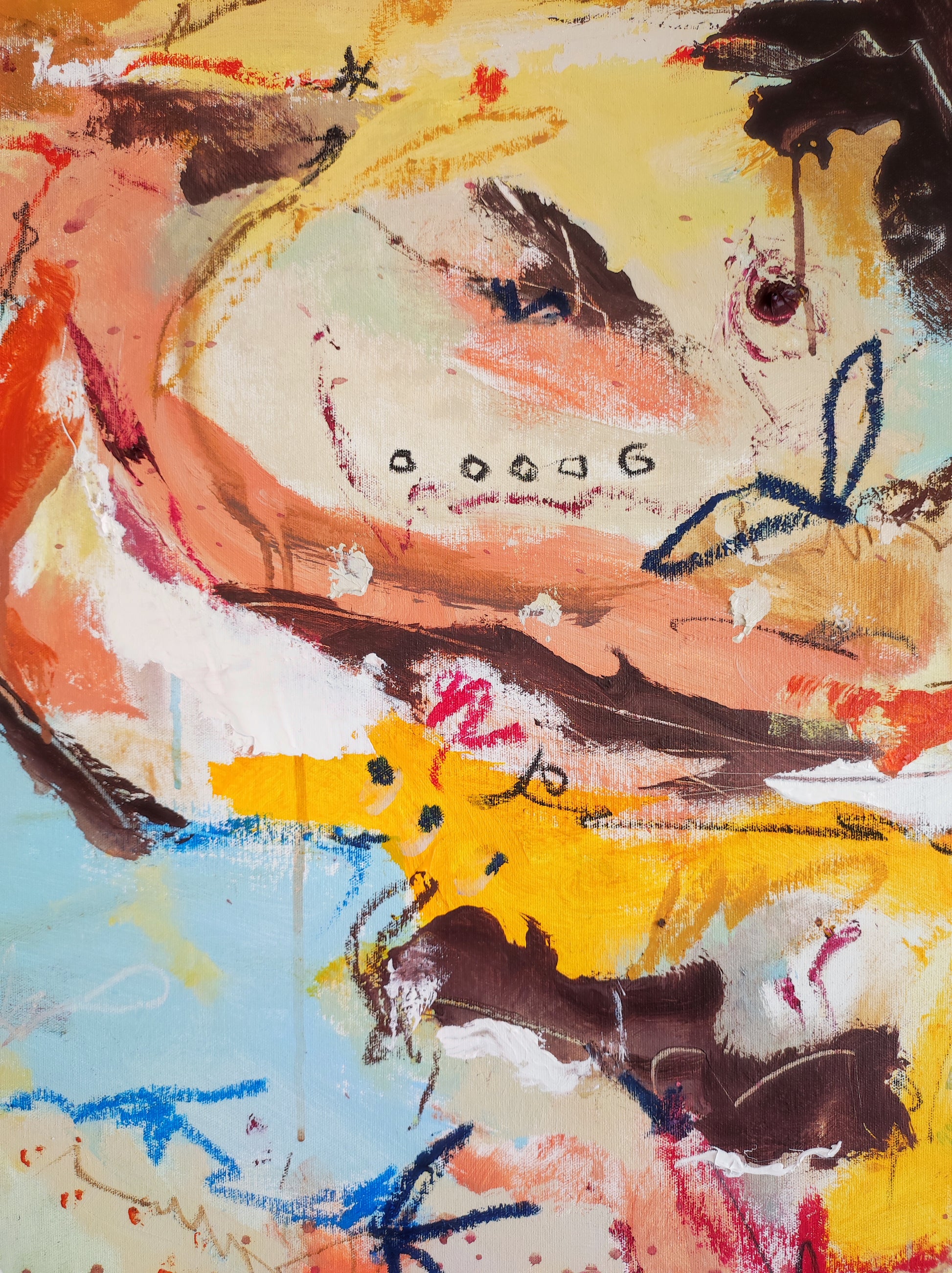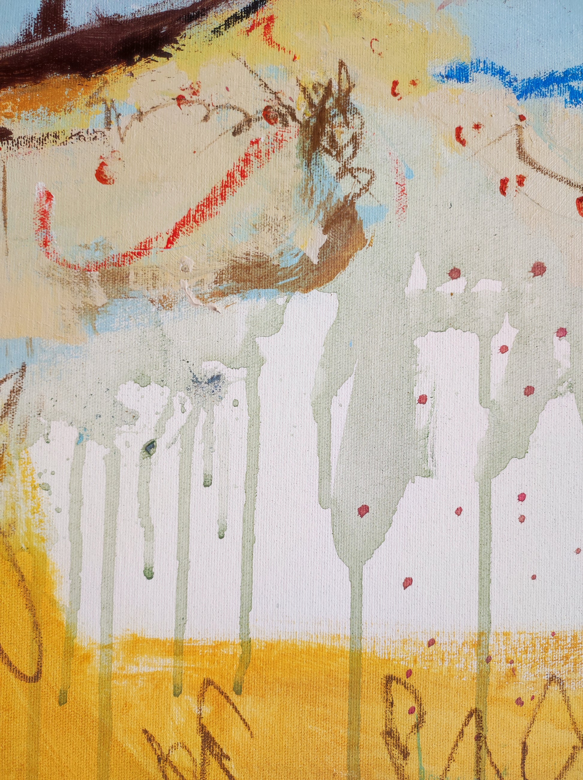 Cuadro trabajado desde la improvisación libre. Action painting con música de John Frusciante.
