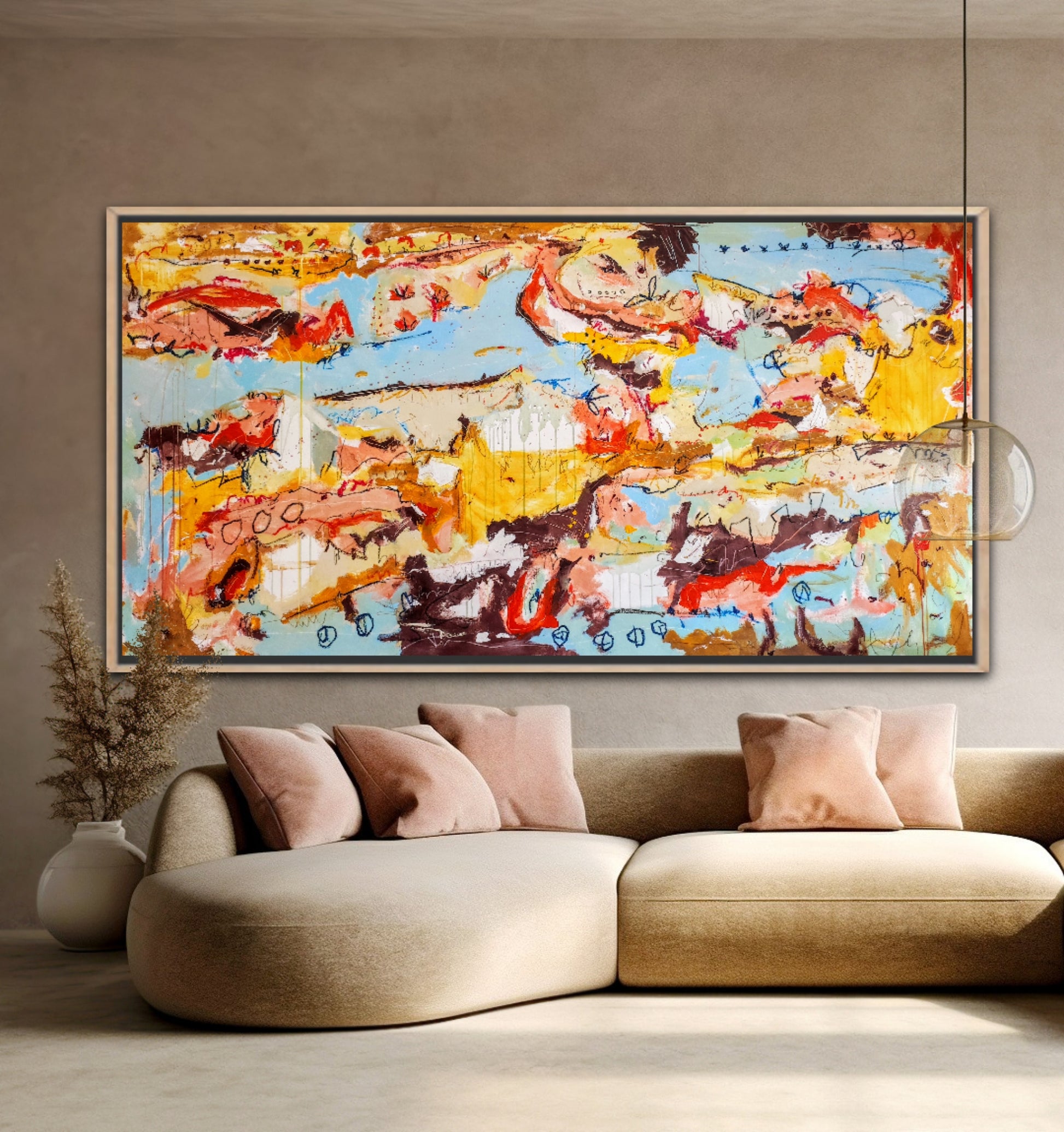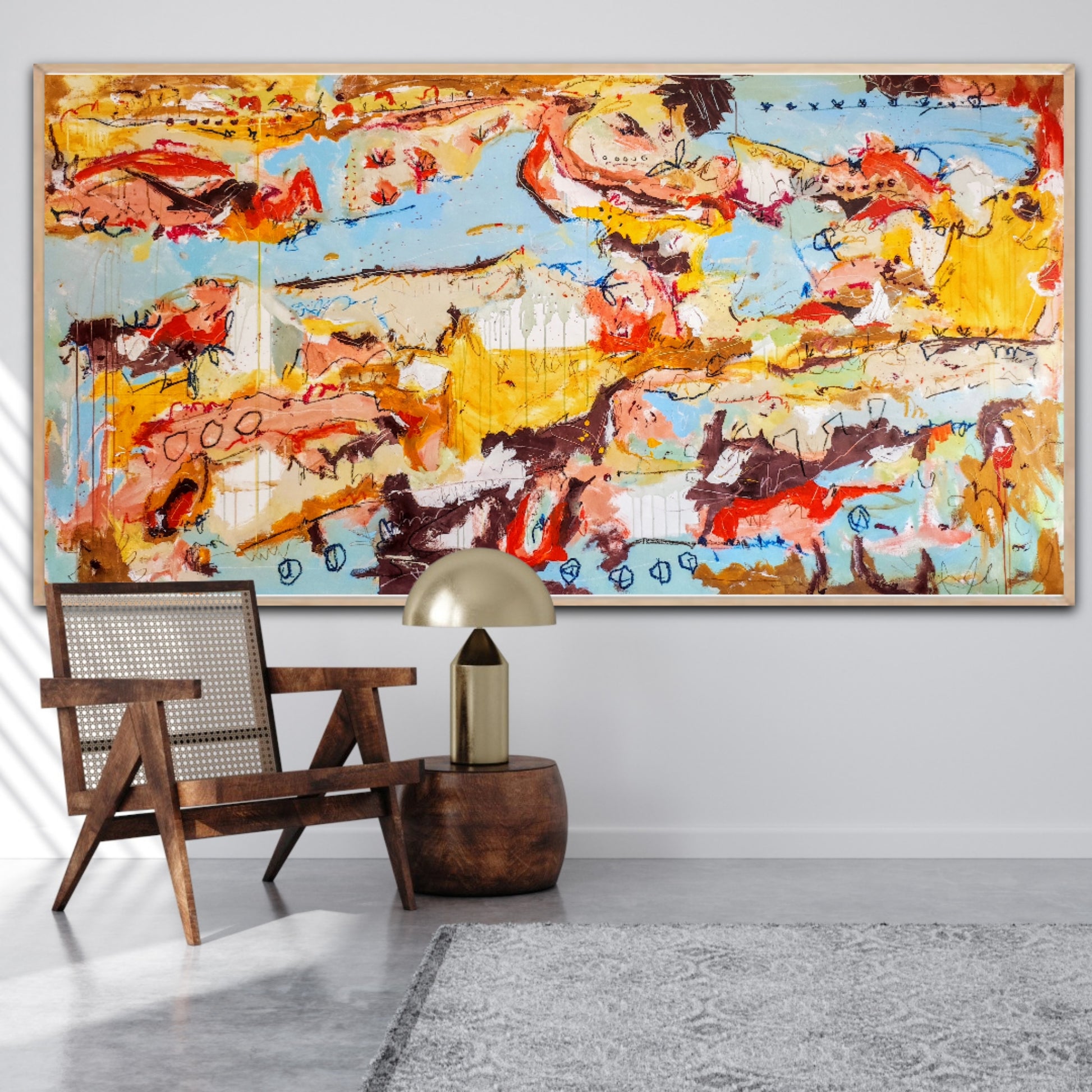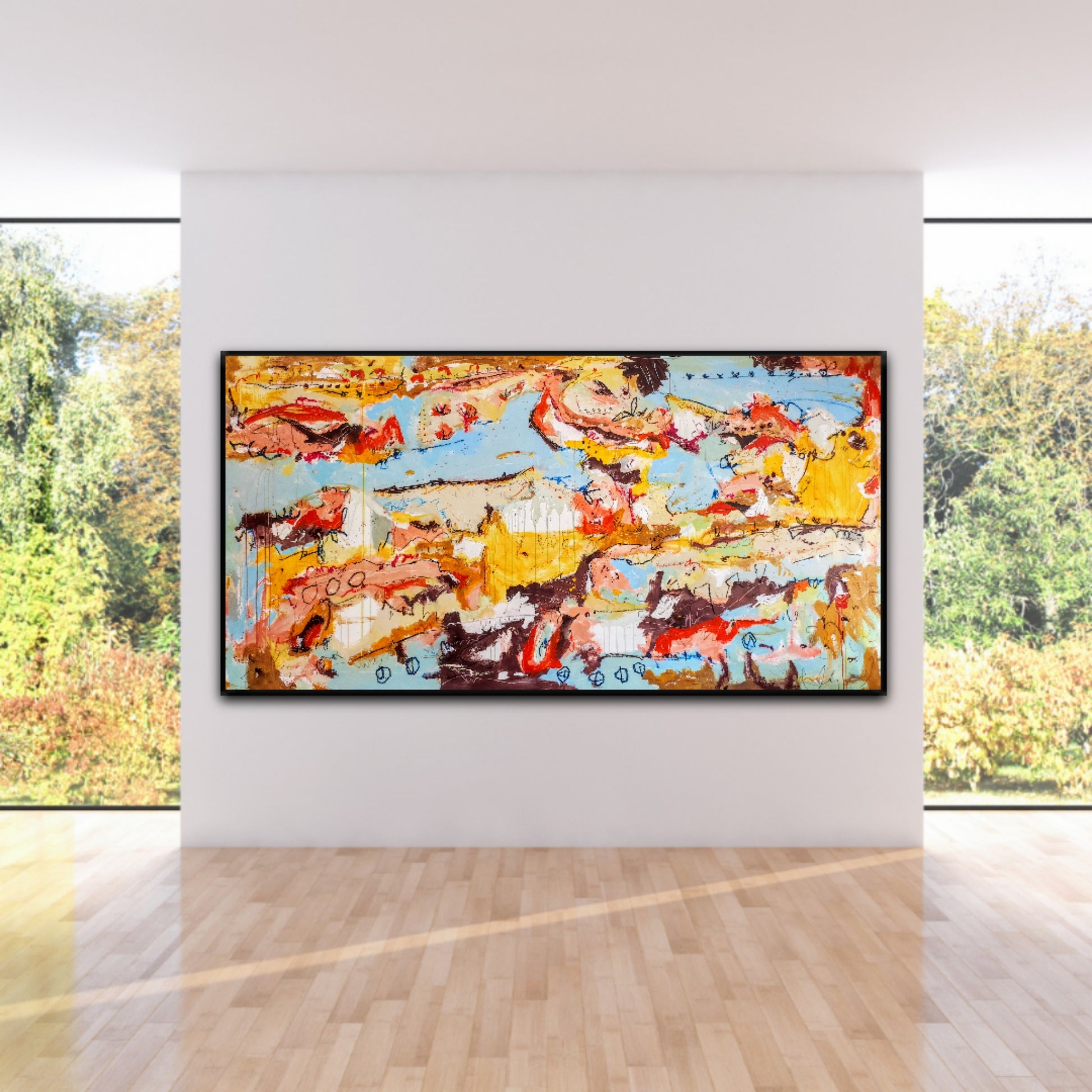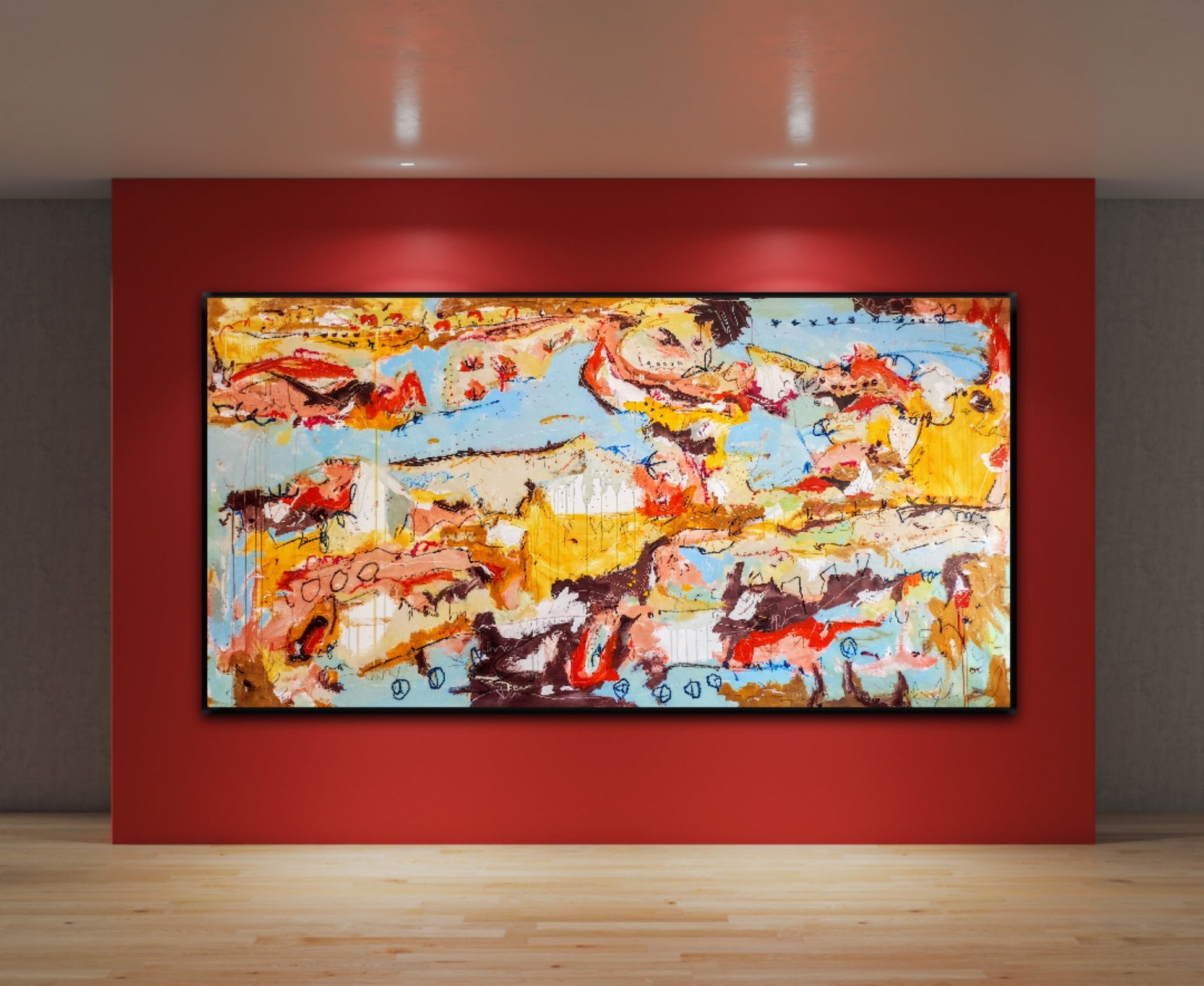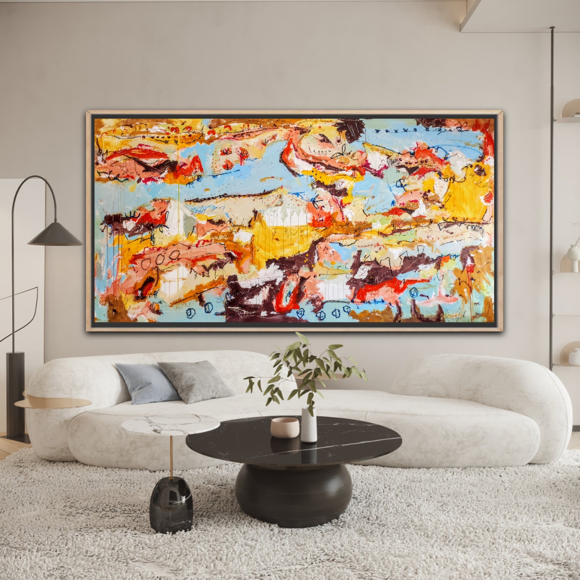Cuadro trabajado desde la improvisación libre. Action painting con música de John Frusciante.