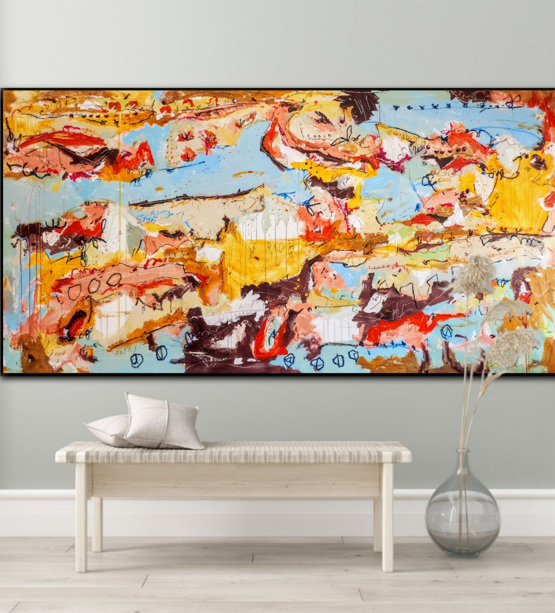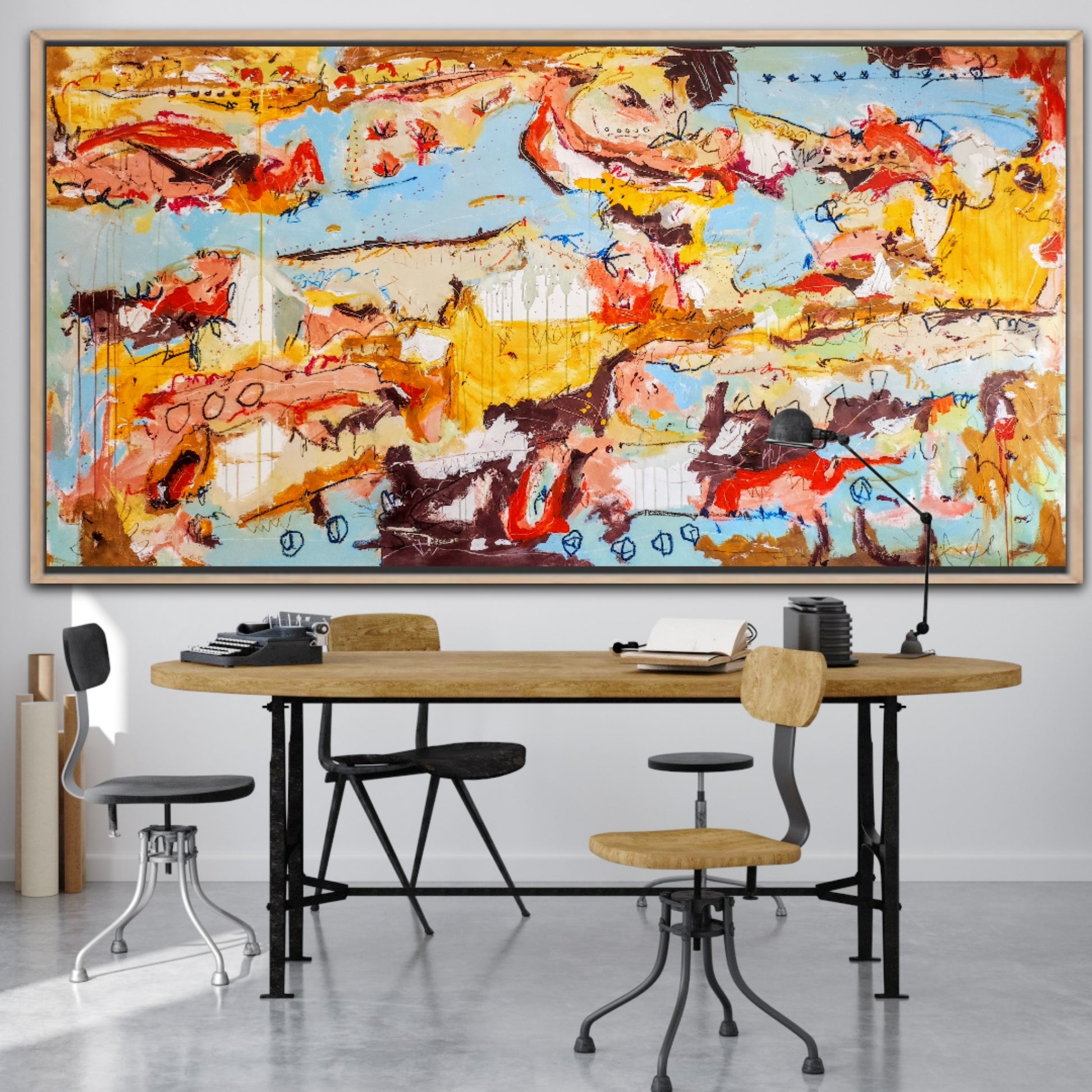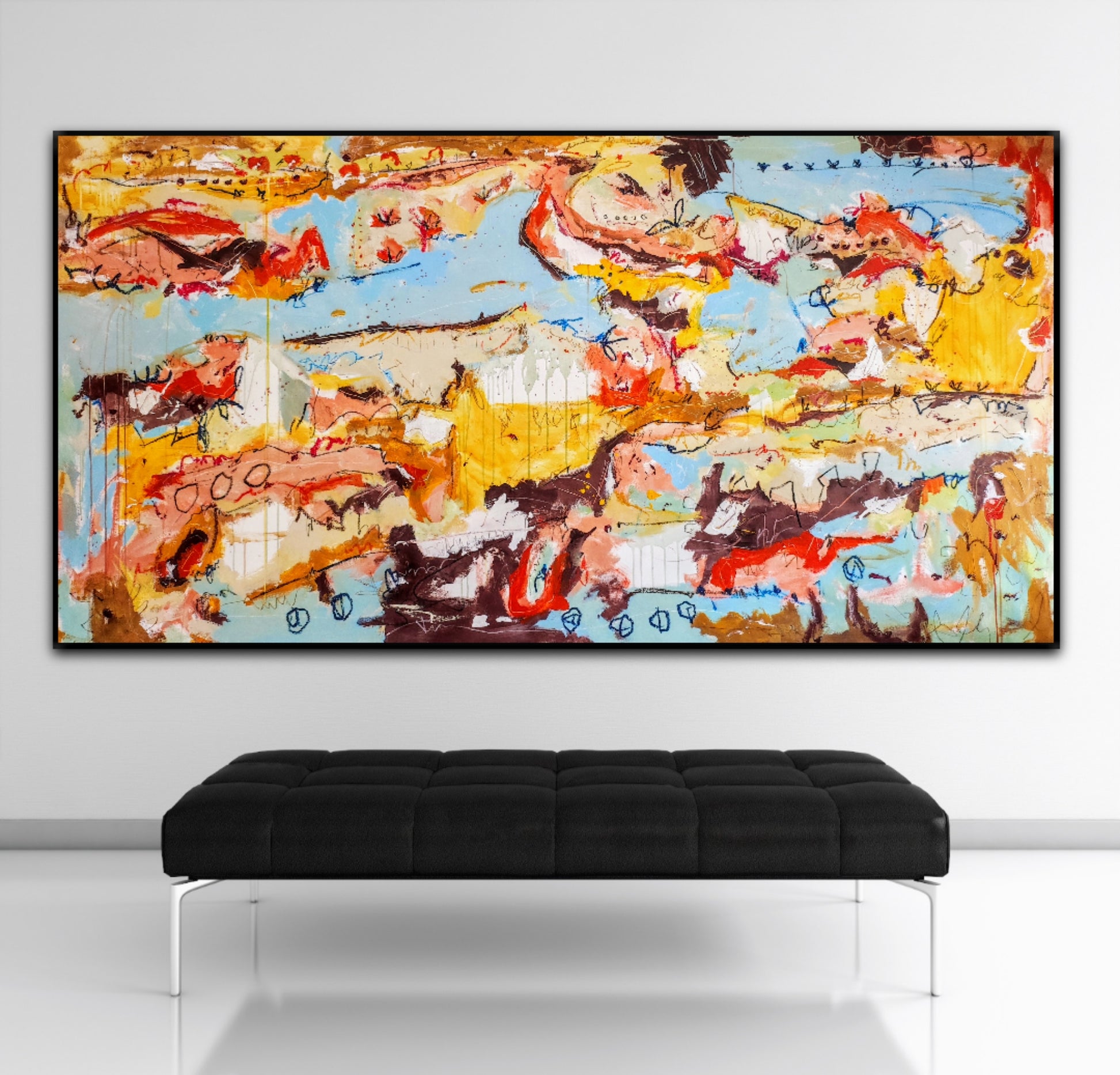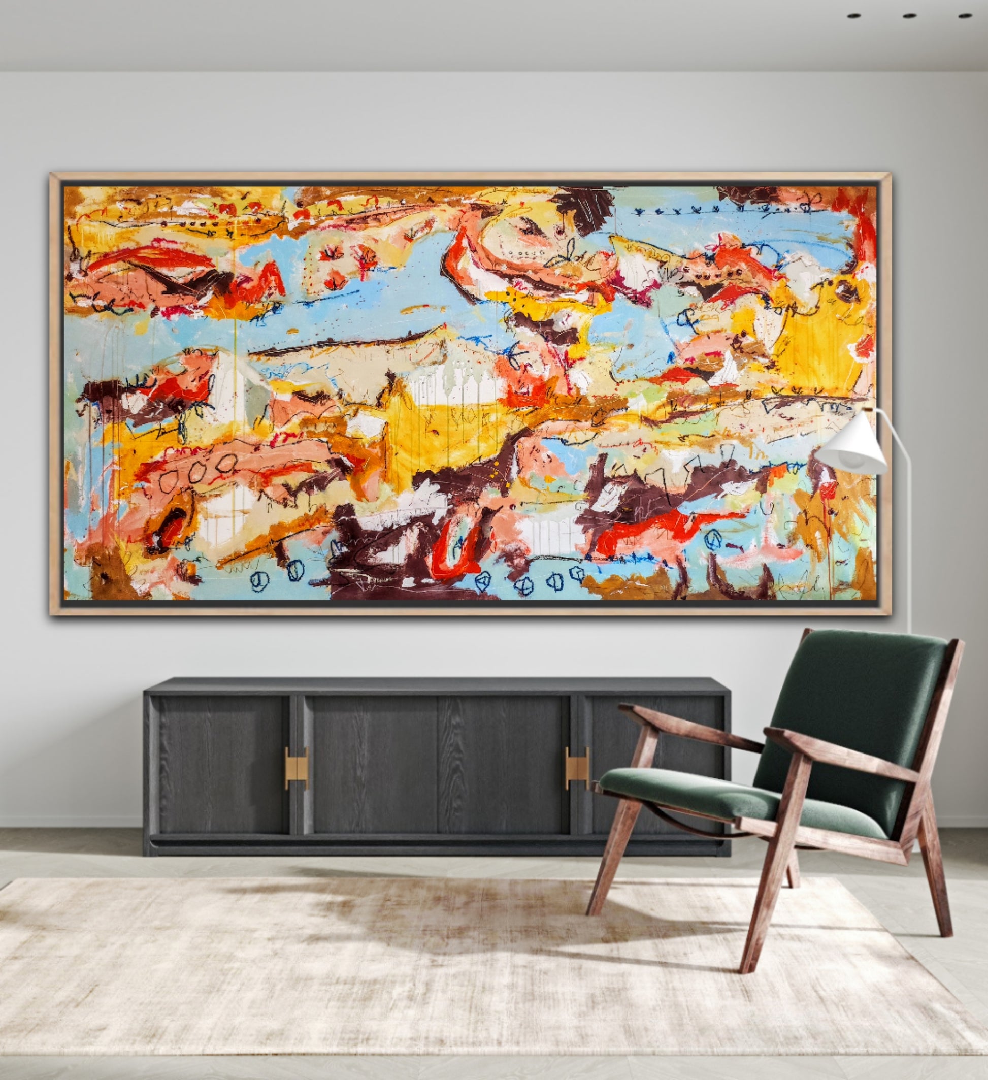 Cuadro trabajado desde la improvisación libre. Action painting con música de John Frusciante.
