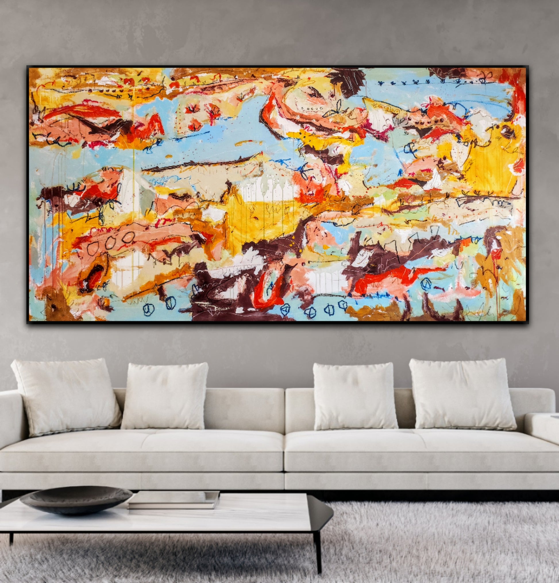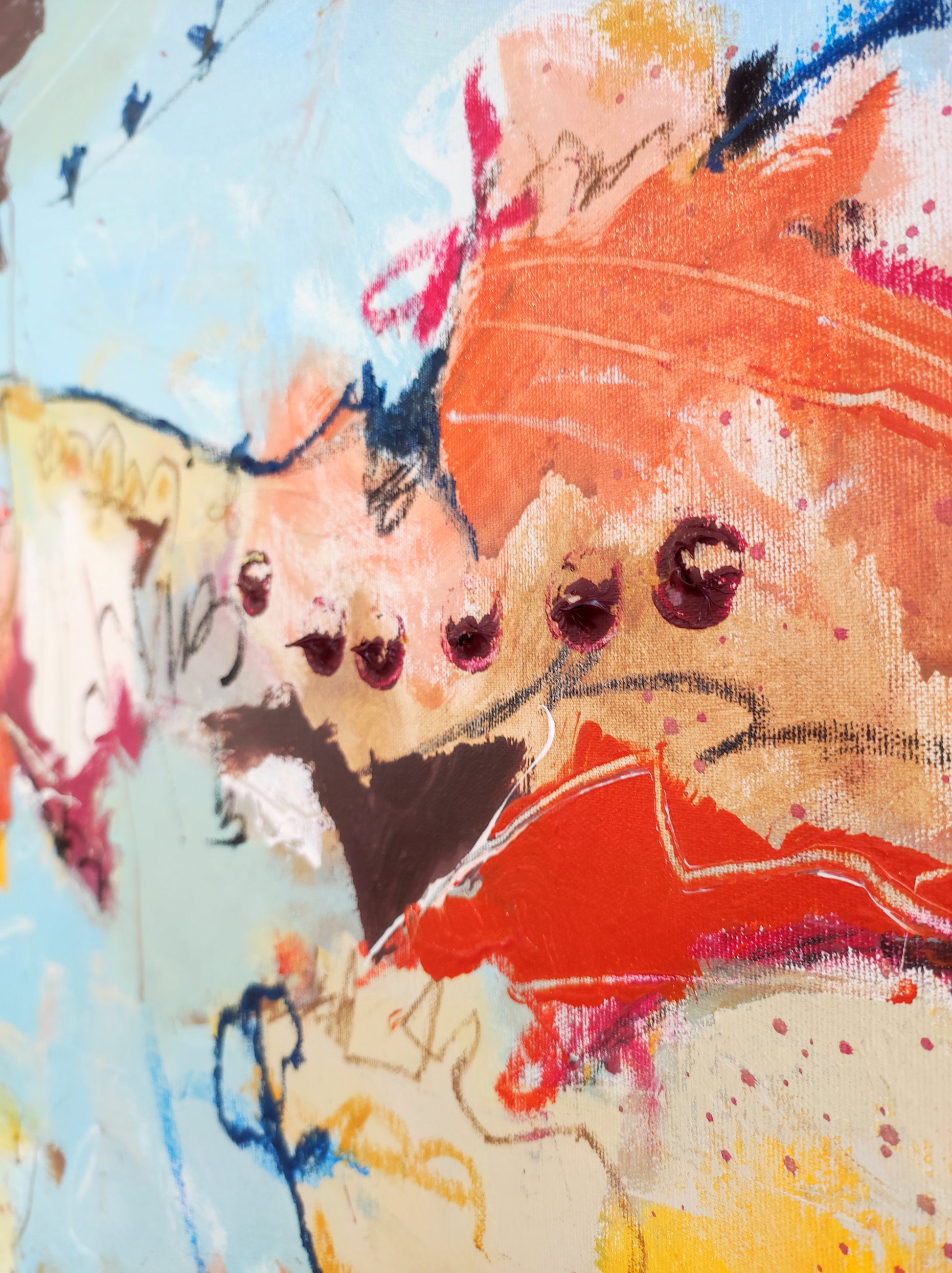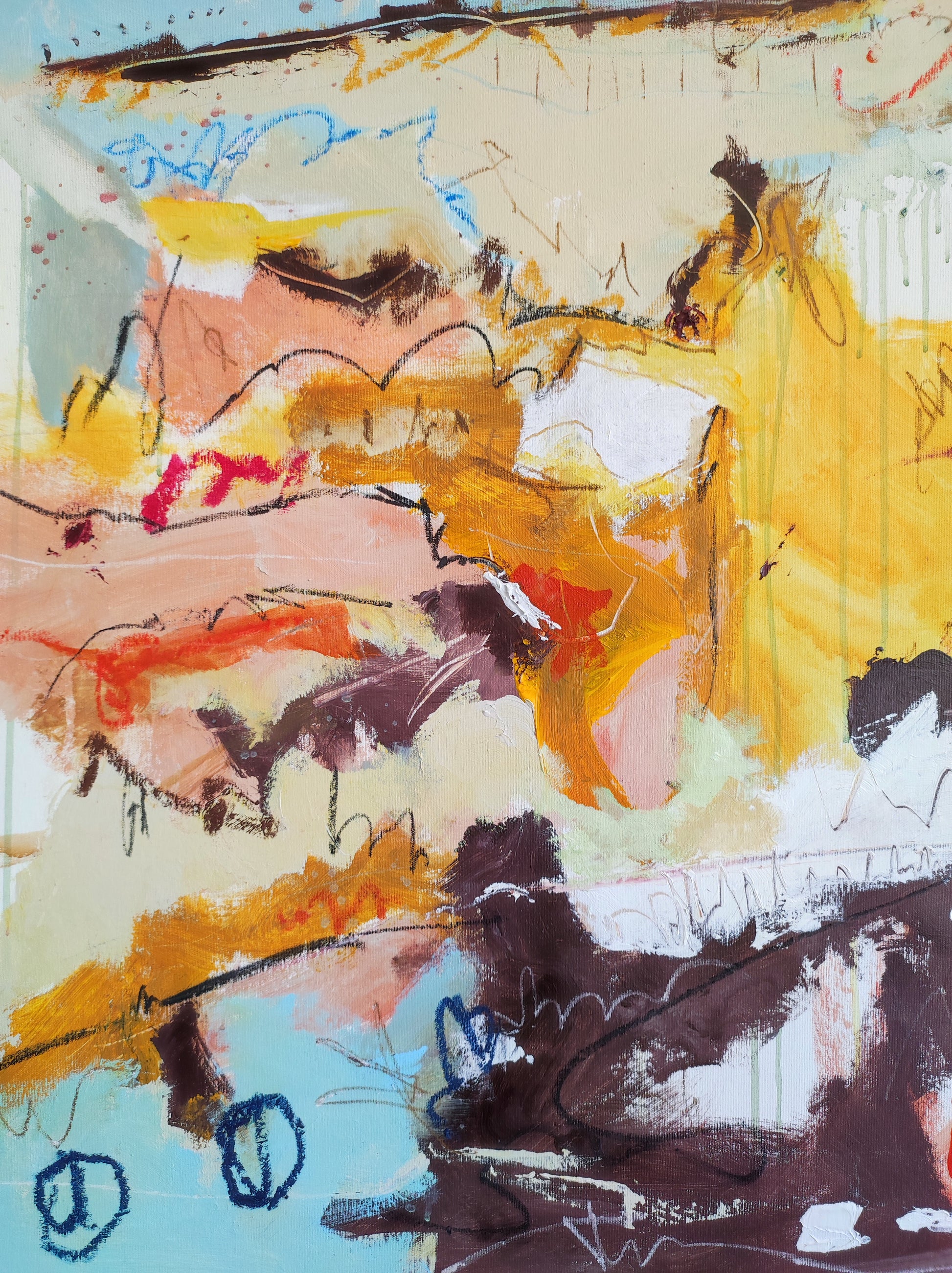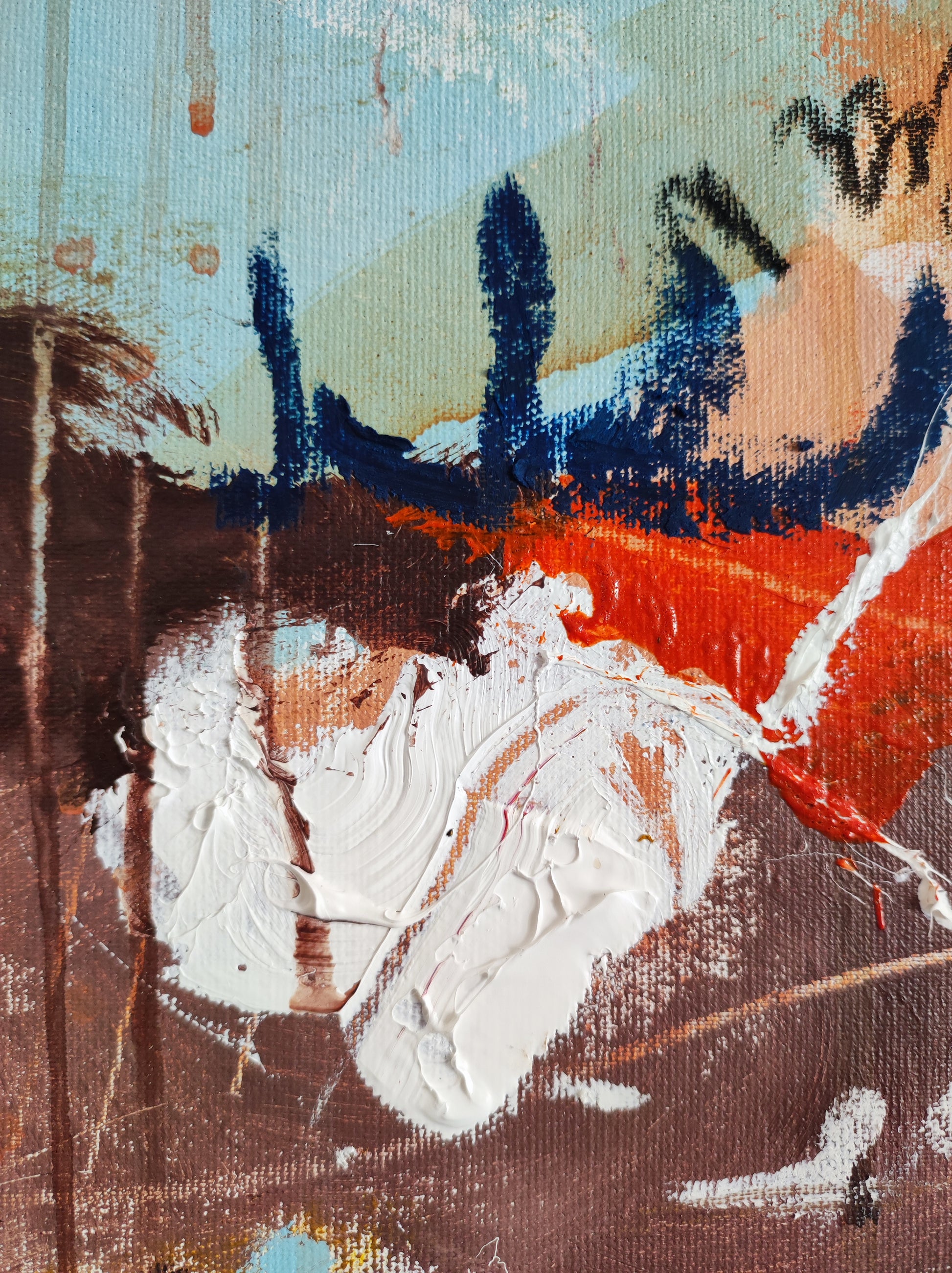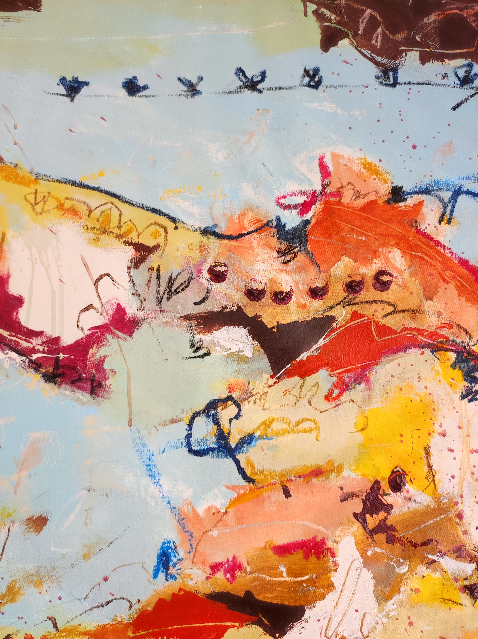 Pintura gestual e intuitiva, que deja que pasen cosas no previstas, acepta el accidente y lo aprovecha.