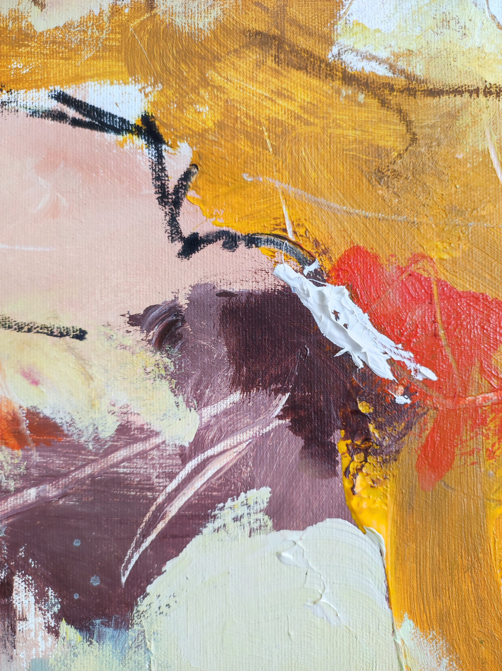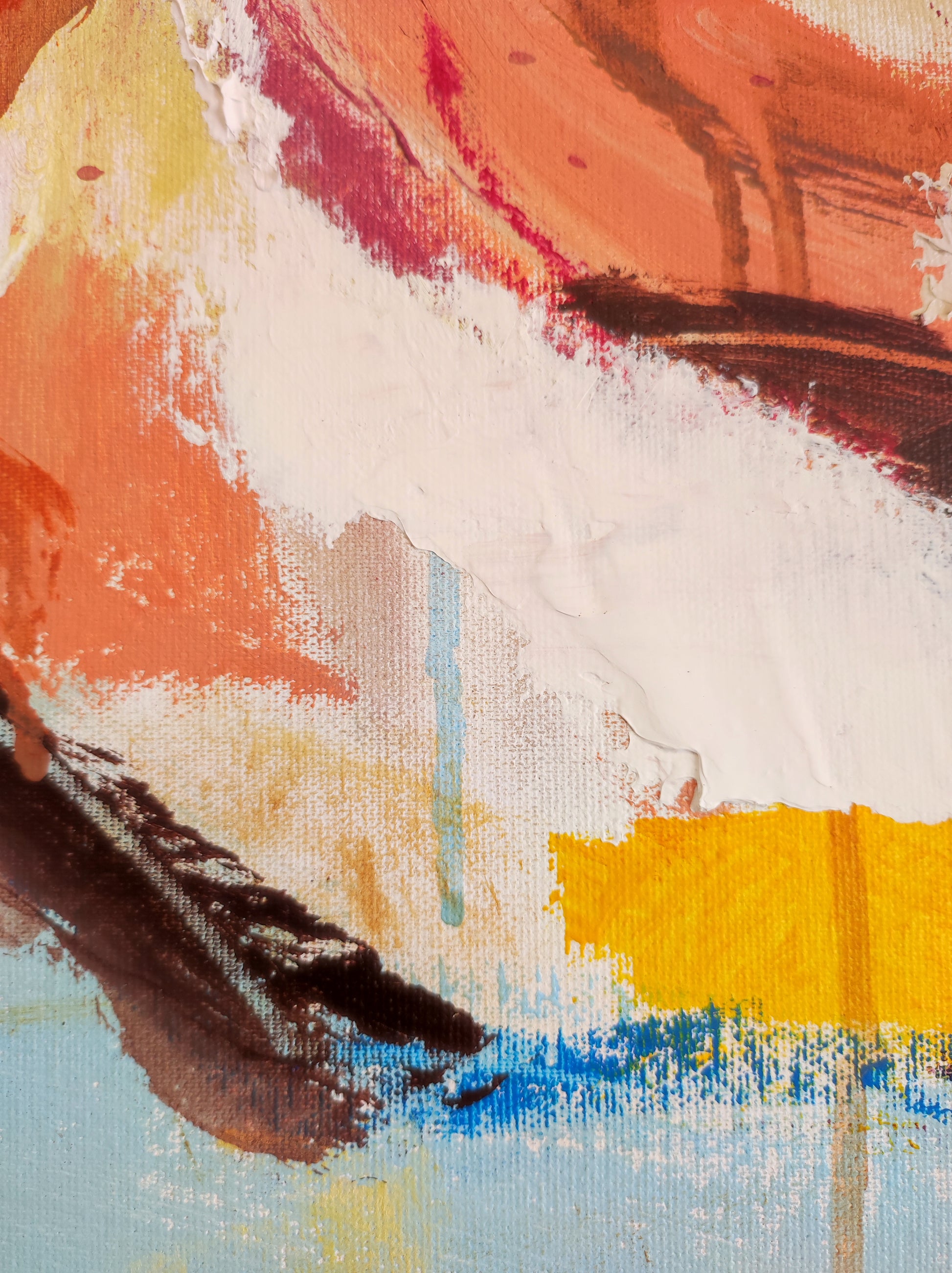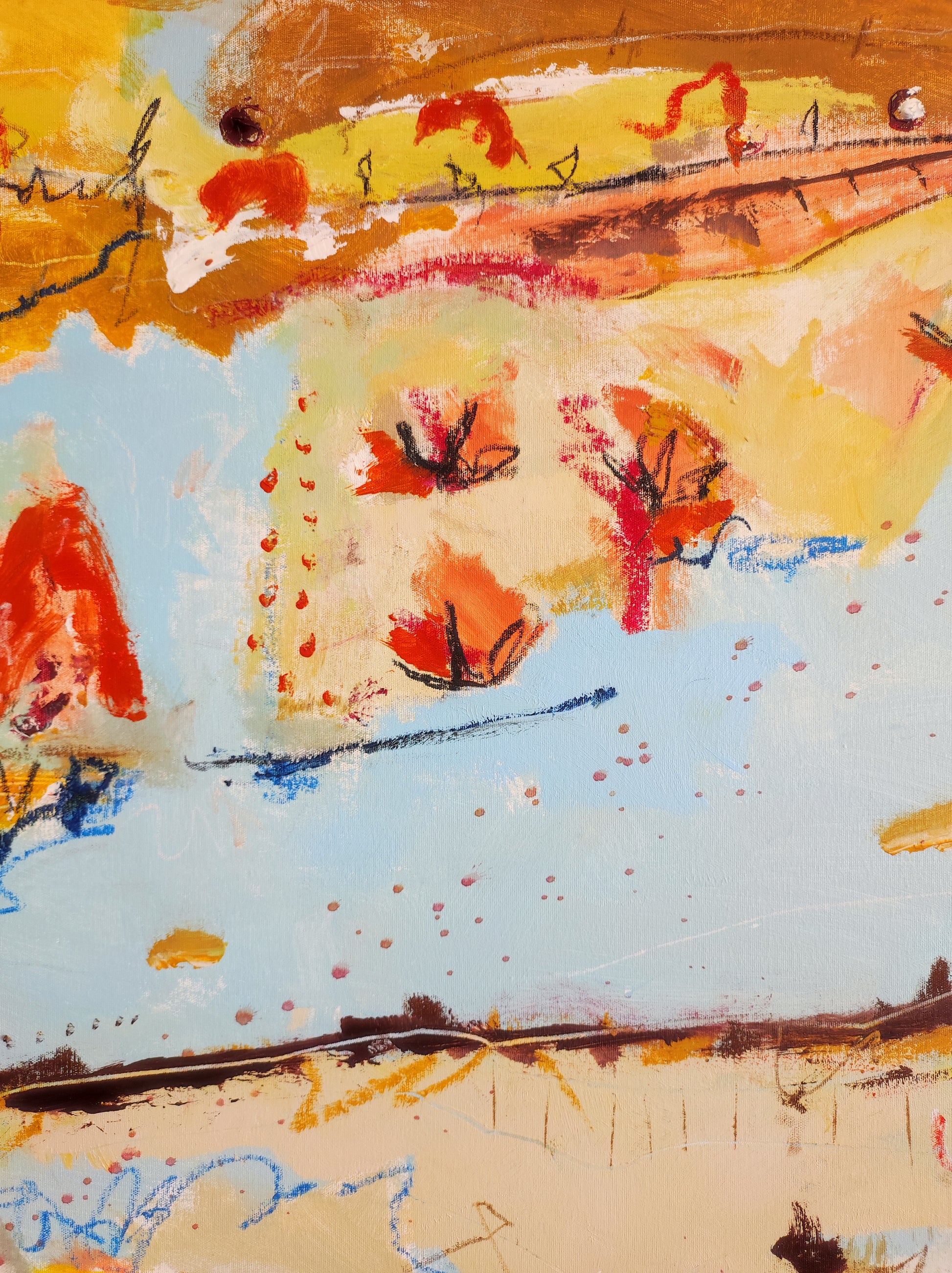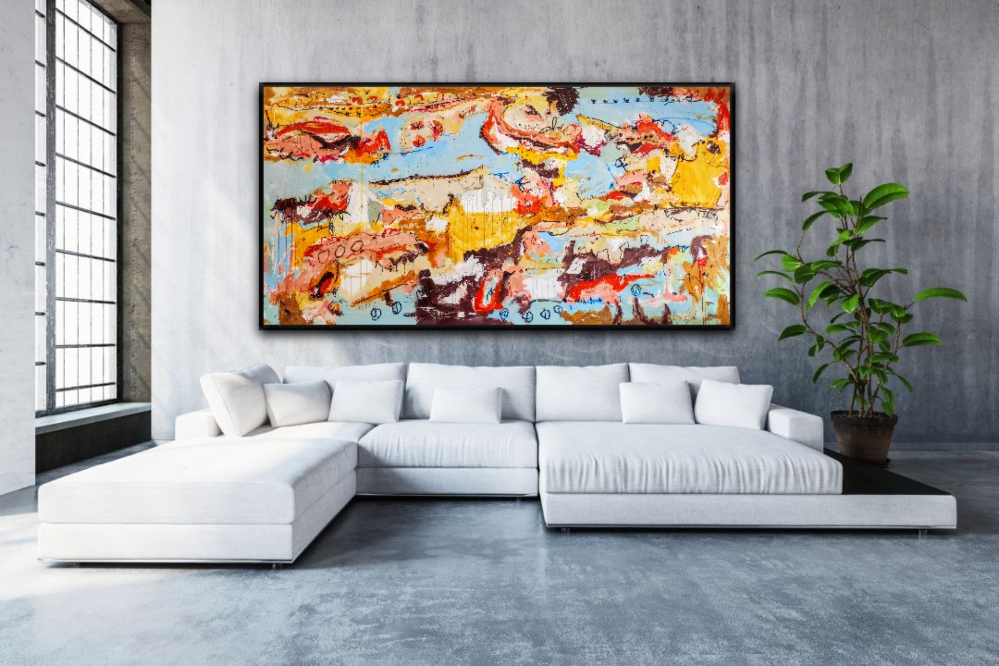 Pintura gestual e intuitiva, que deja que pasen cosas no previstas, acepta el accidente y lo aprovecha.