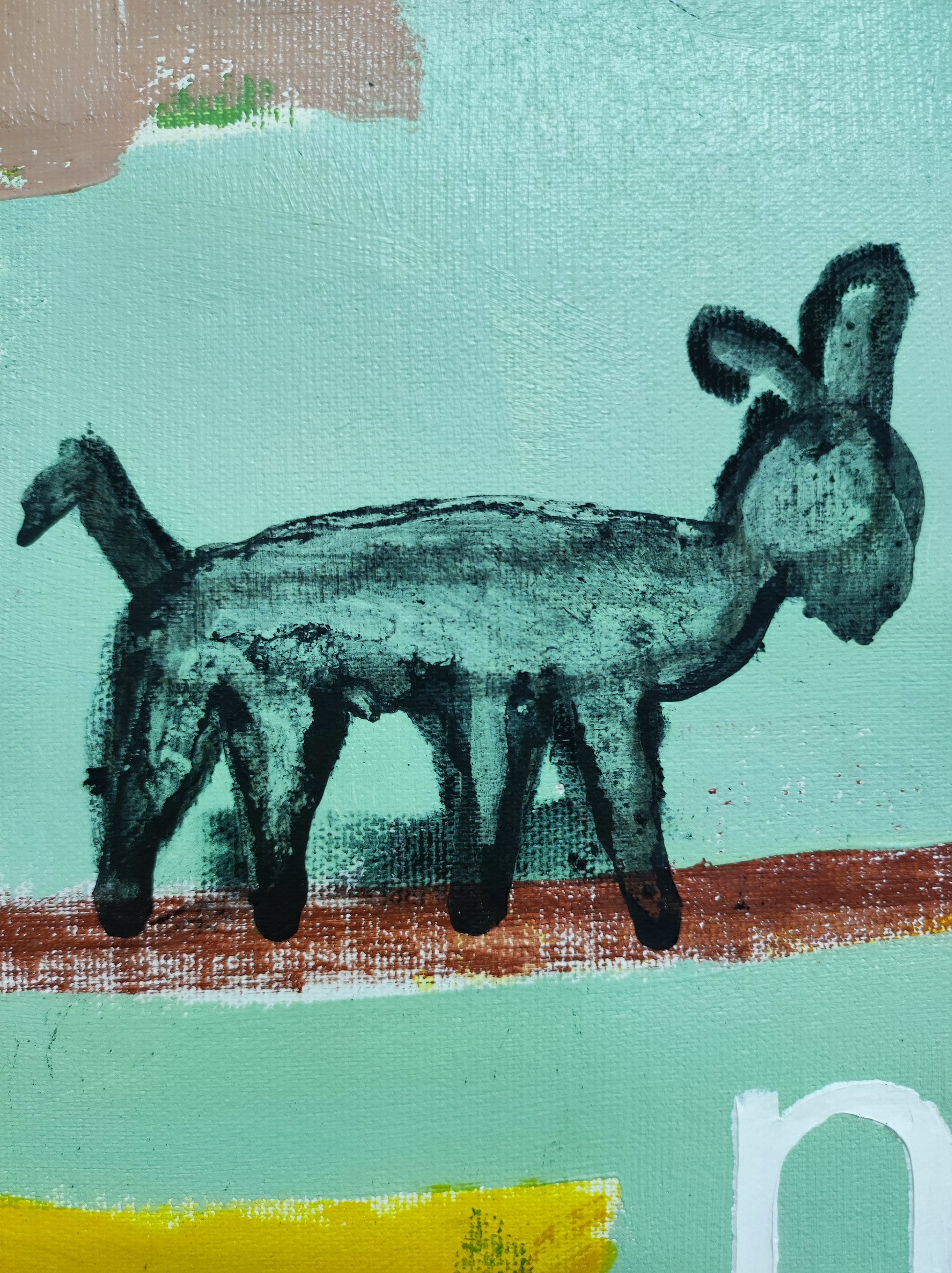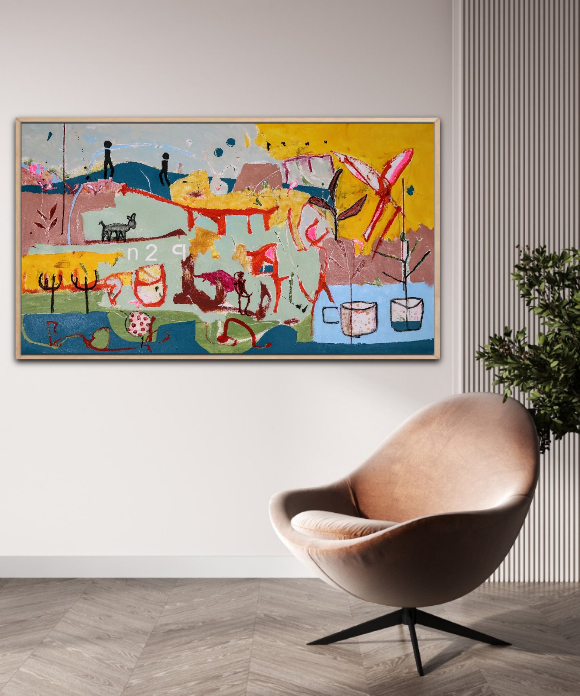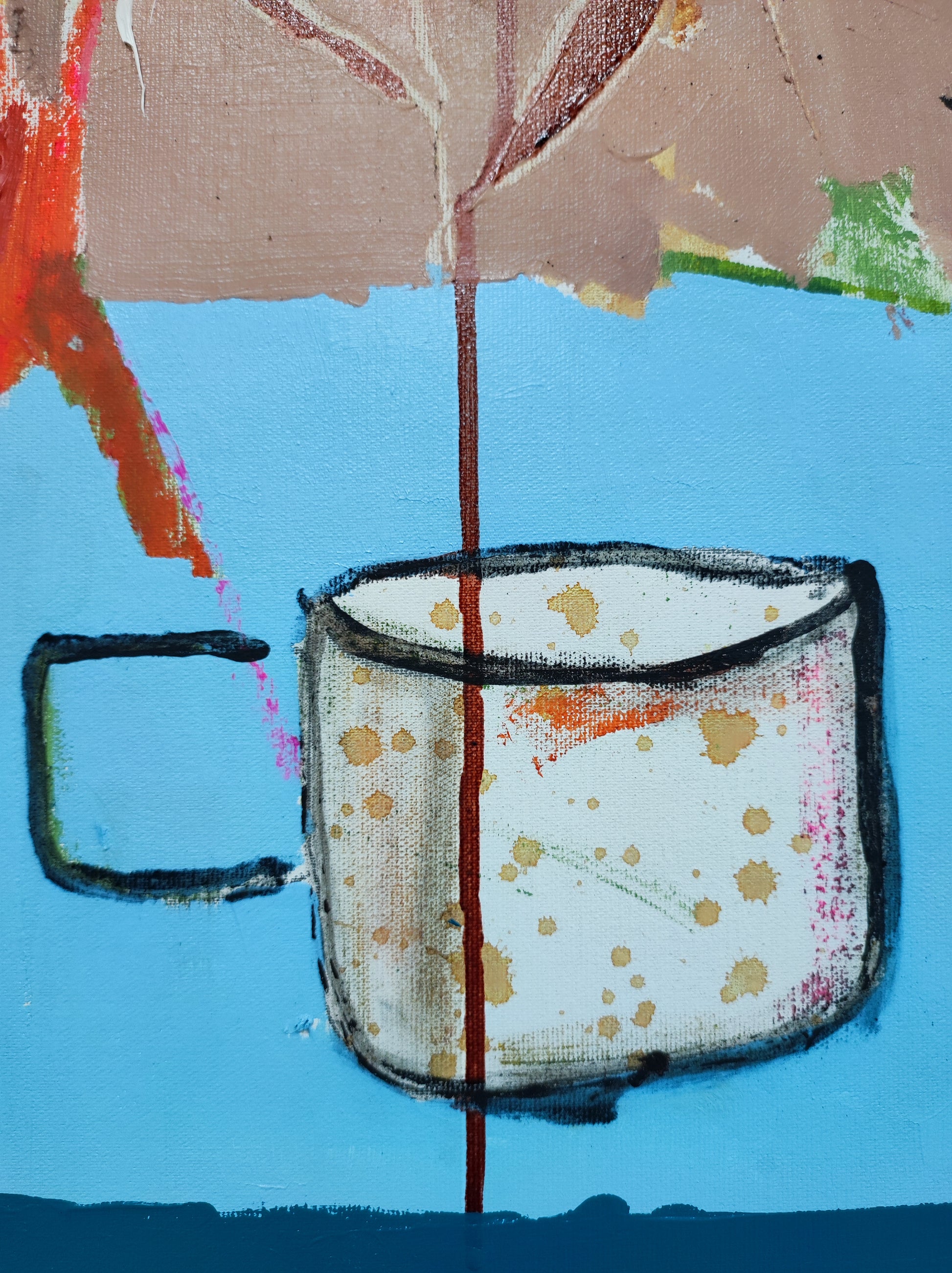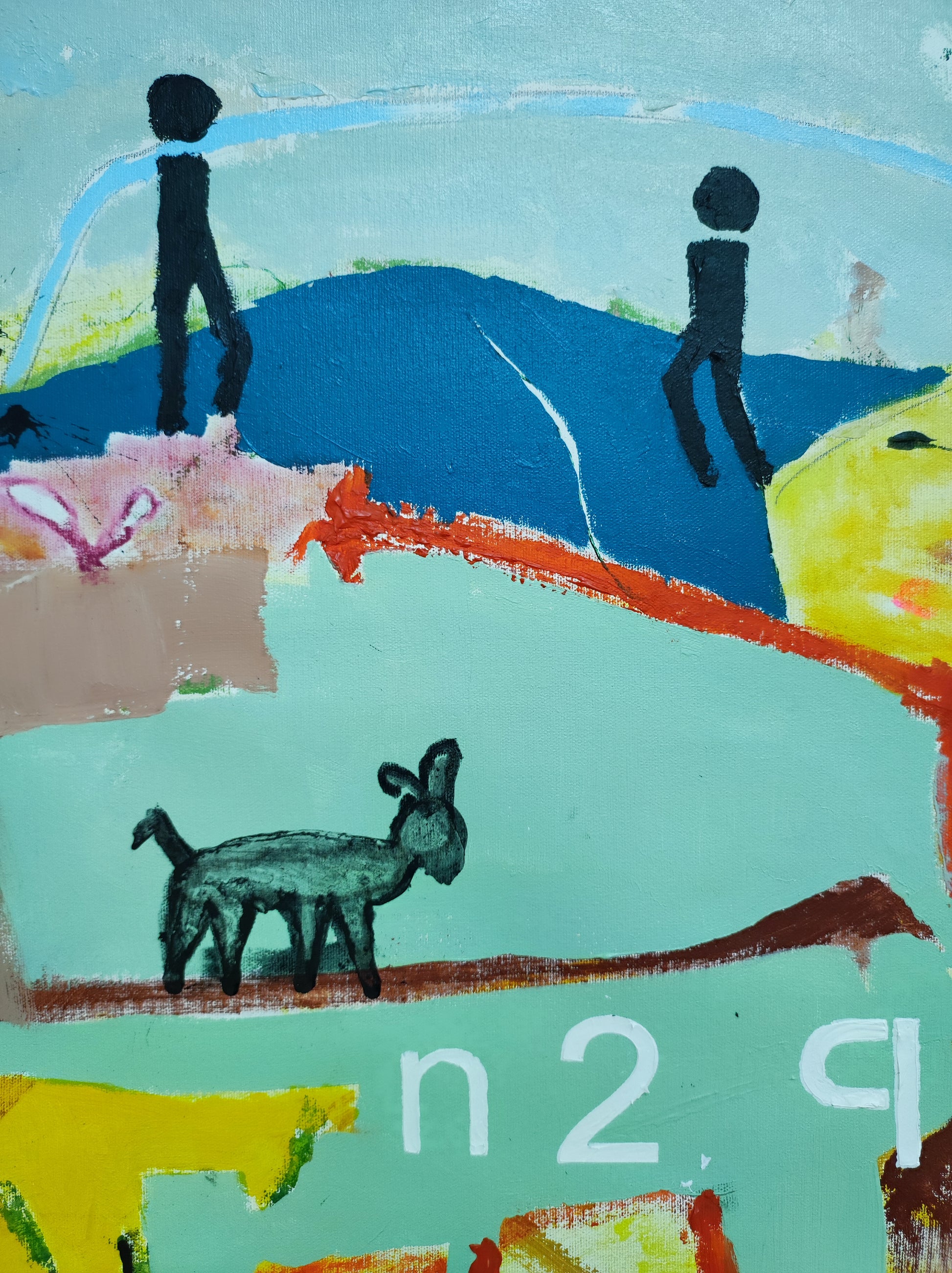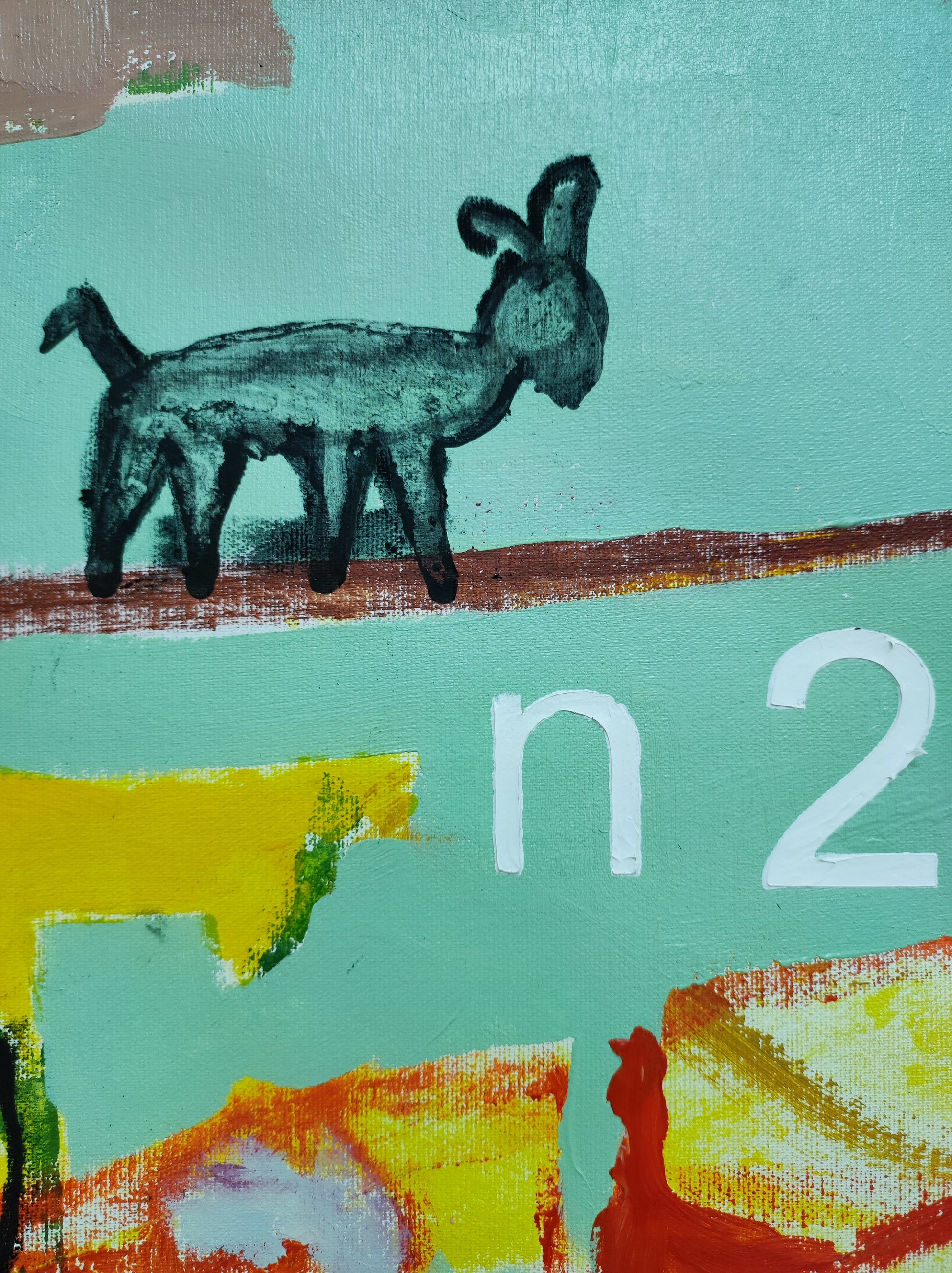 Pintura gestual, intuitiva, que deja que las cosas pasen y se apoya sobre lo que aparece. Aprovechando el accidente y aceptando las consecuencias.