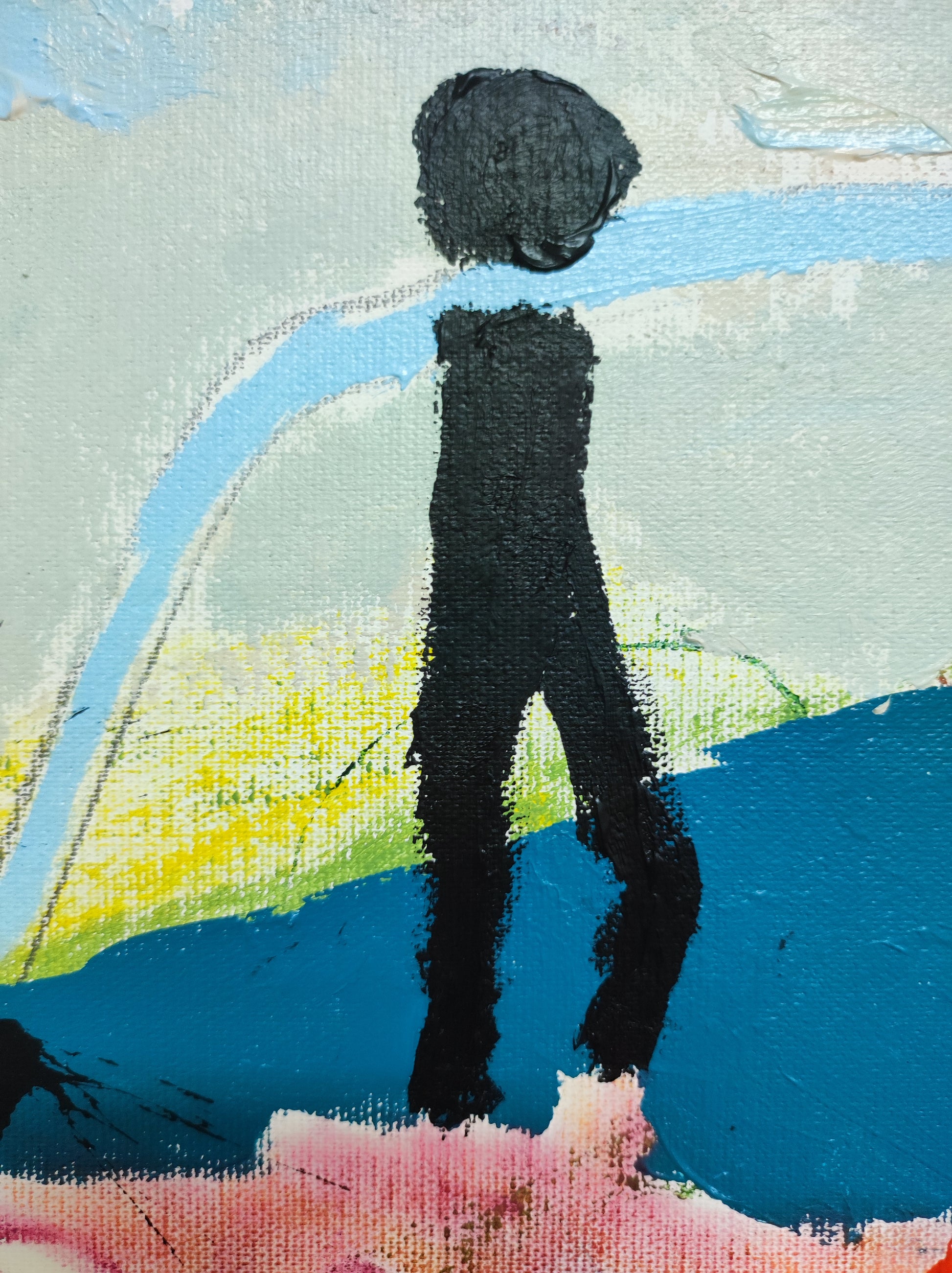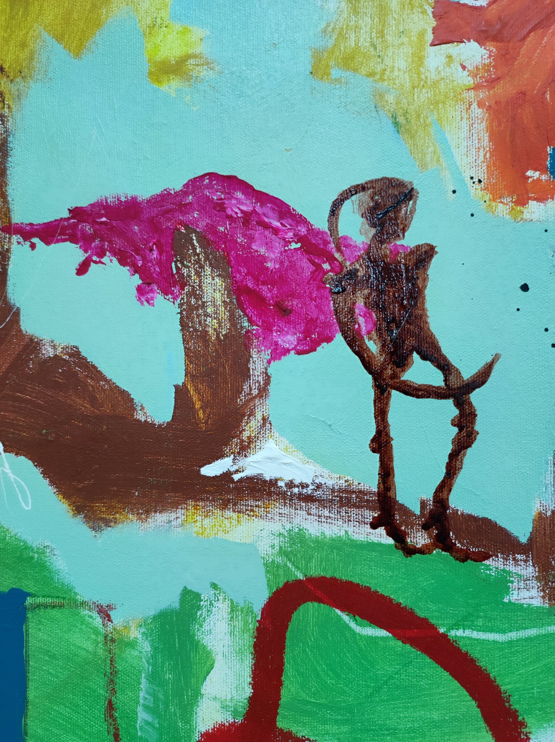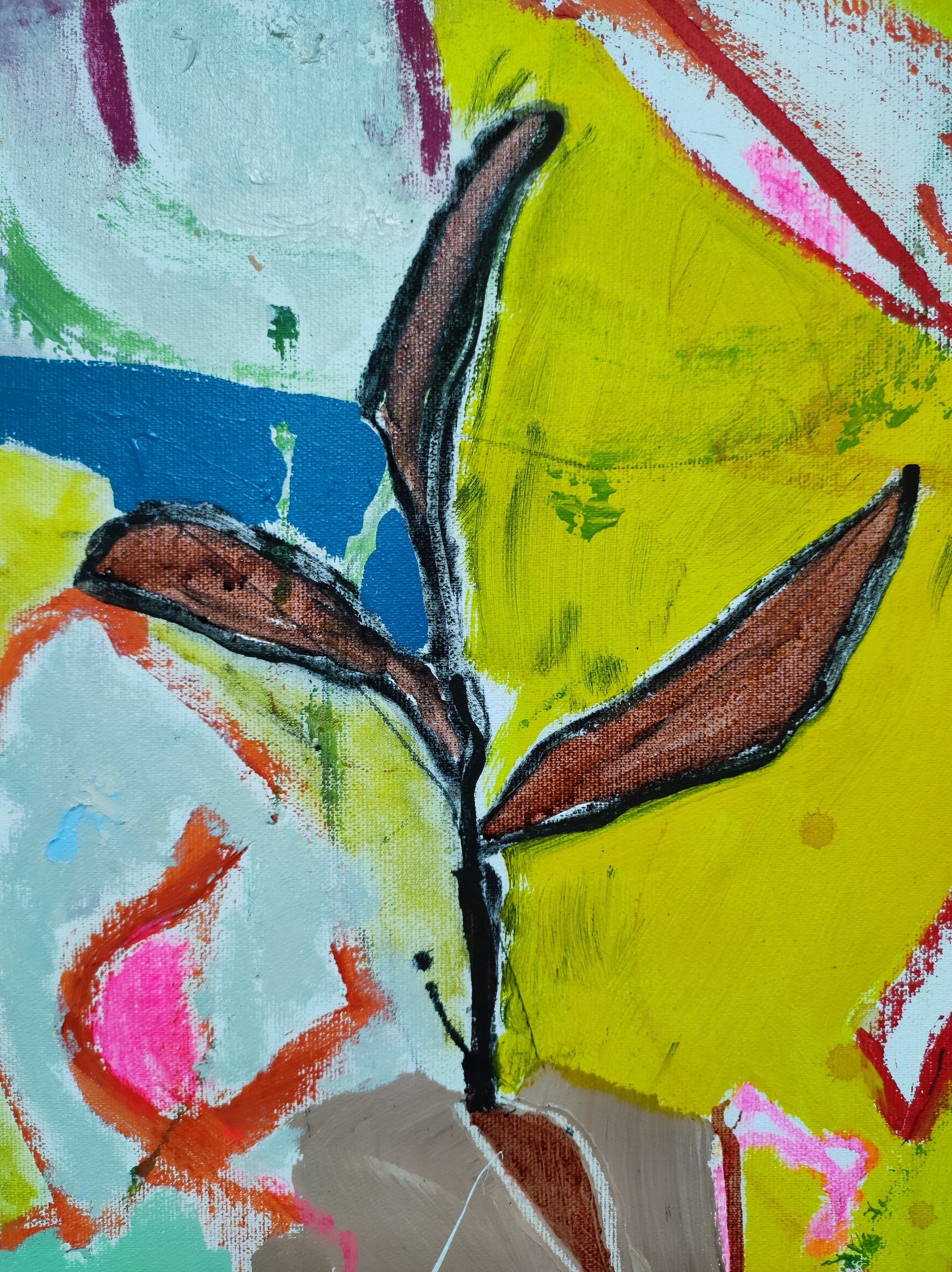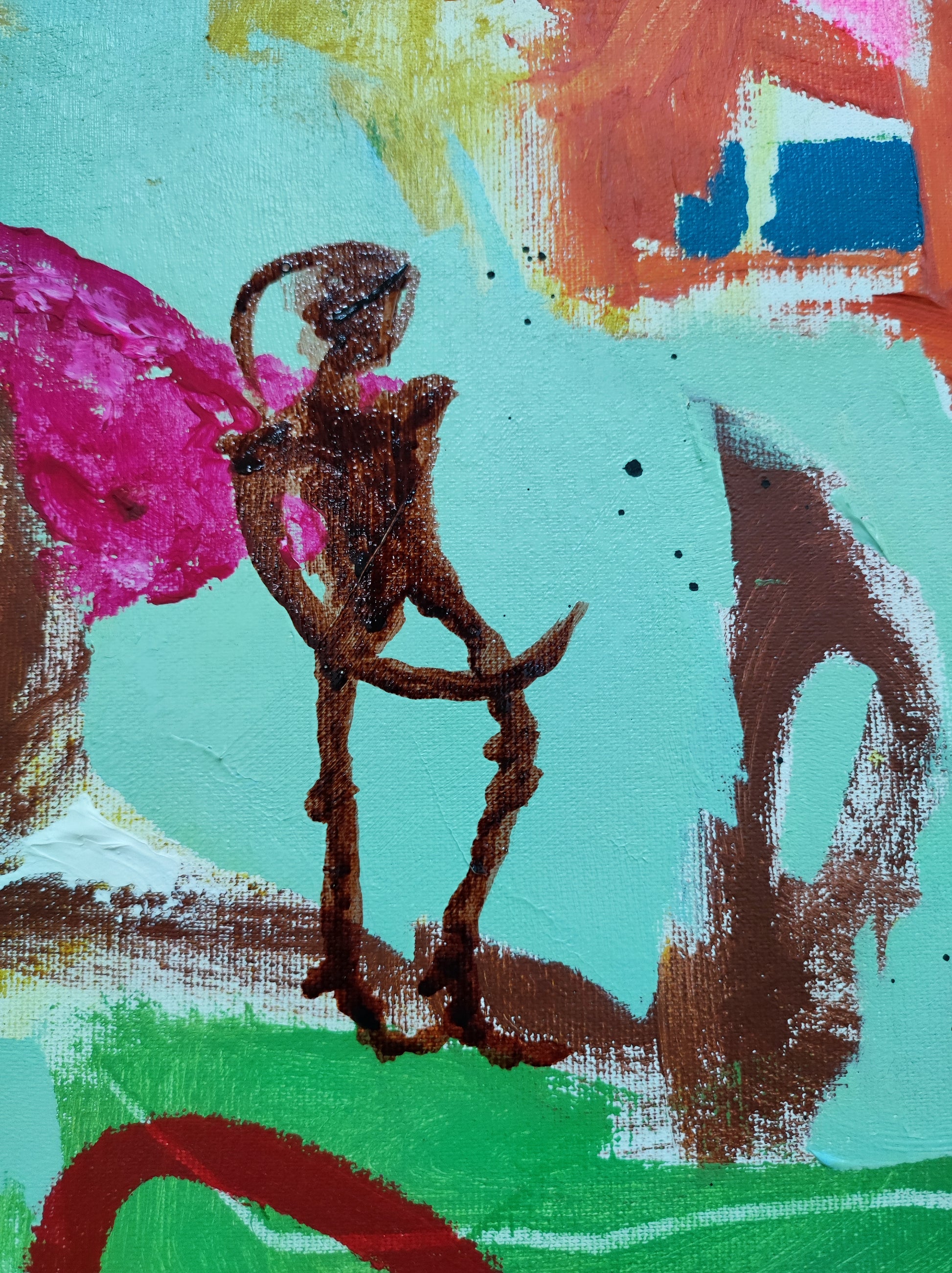 Cuadro trabajado desde la improvisación libre. Action painting con música de Los Planetas.