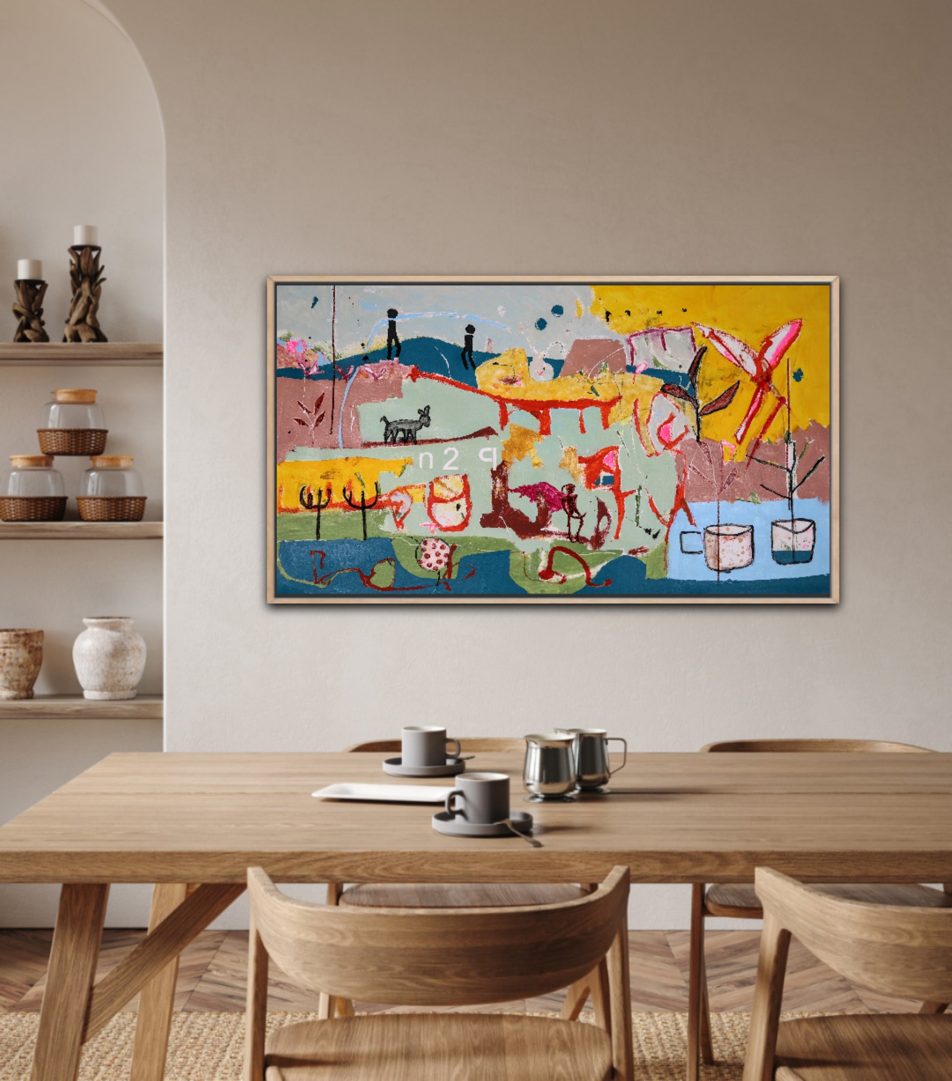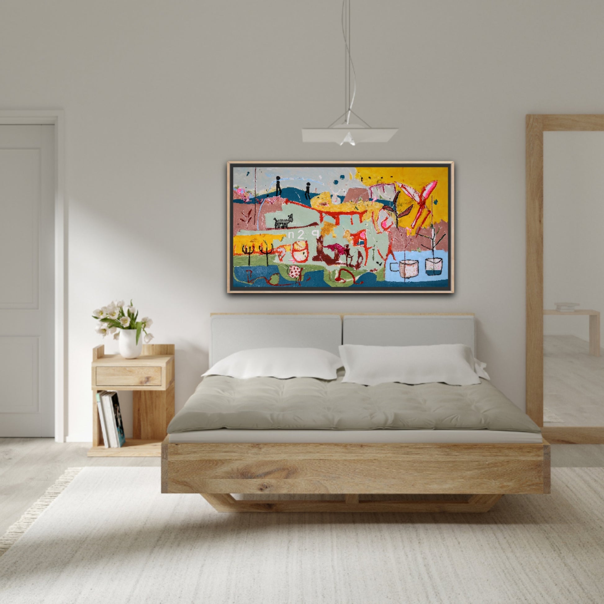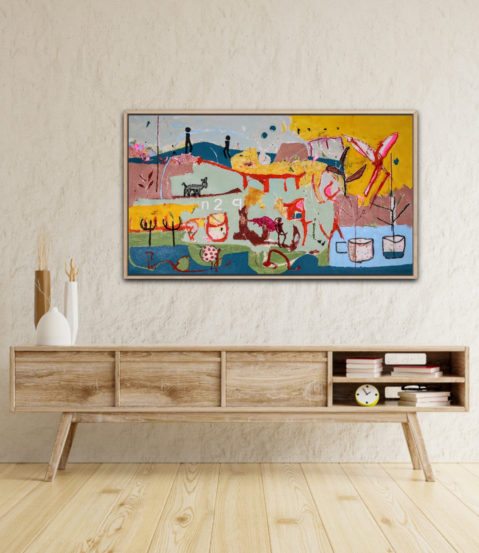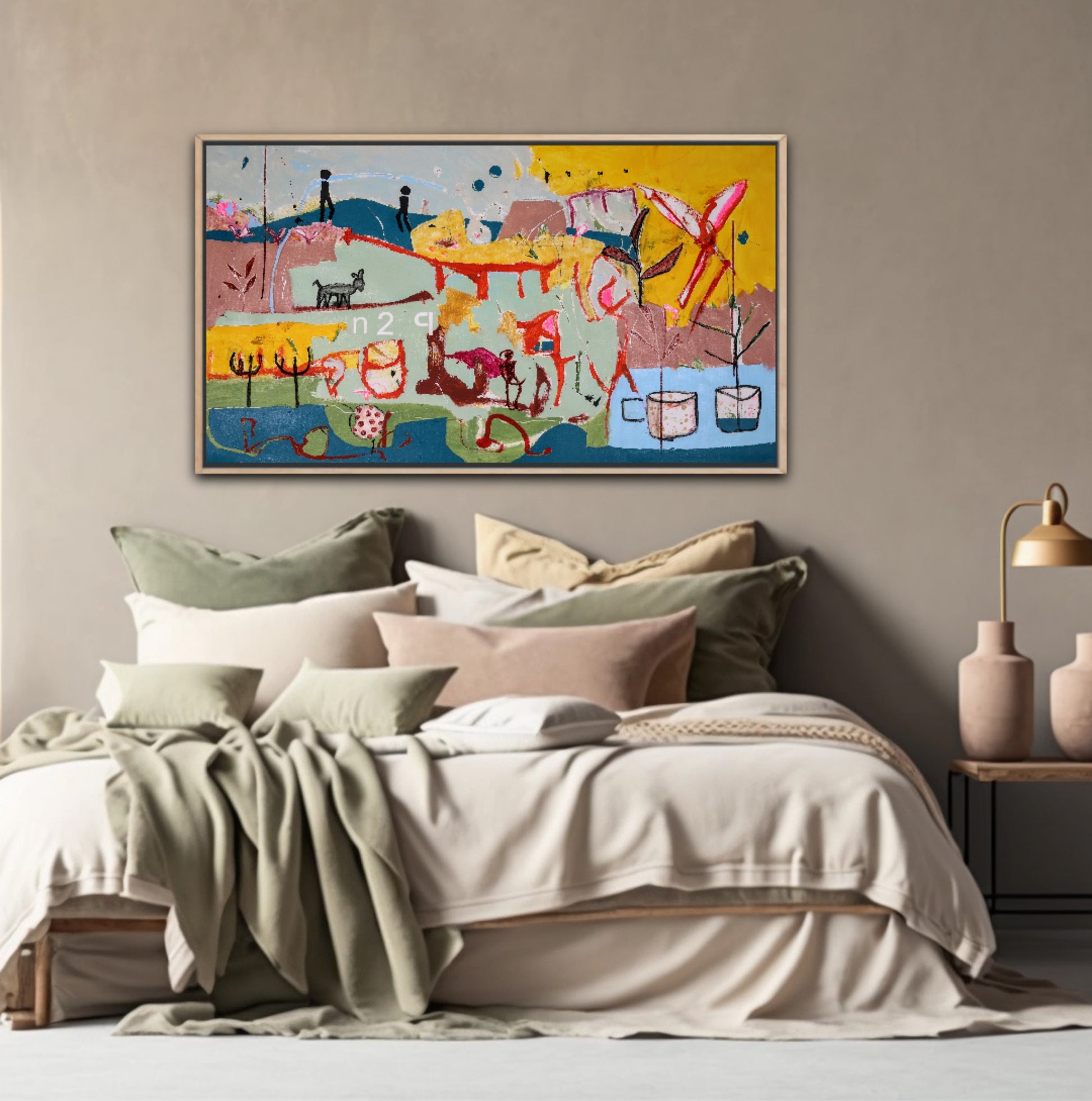 Cuadro trabajado desde la improvisación libre. Action painting con música de Los Planetas.