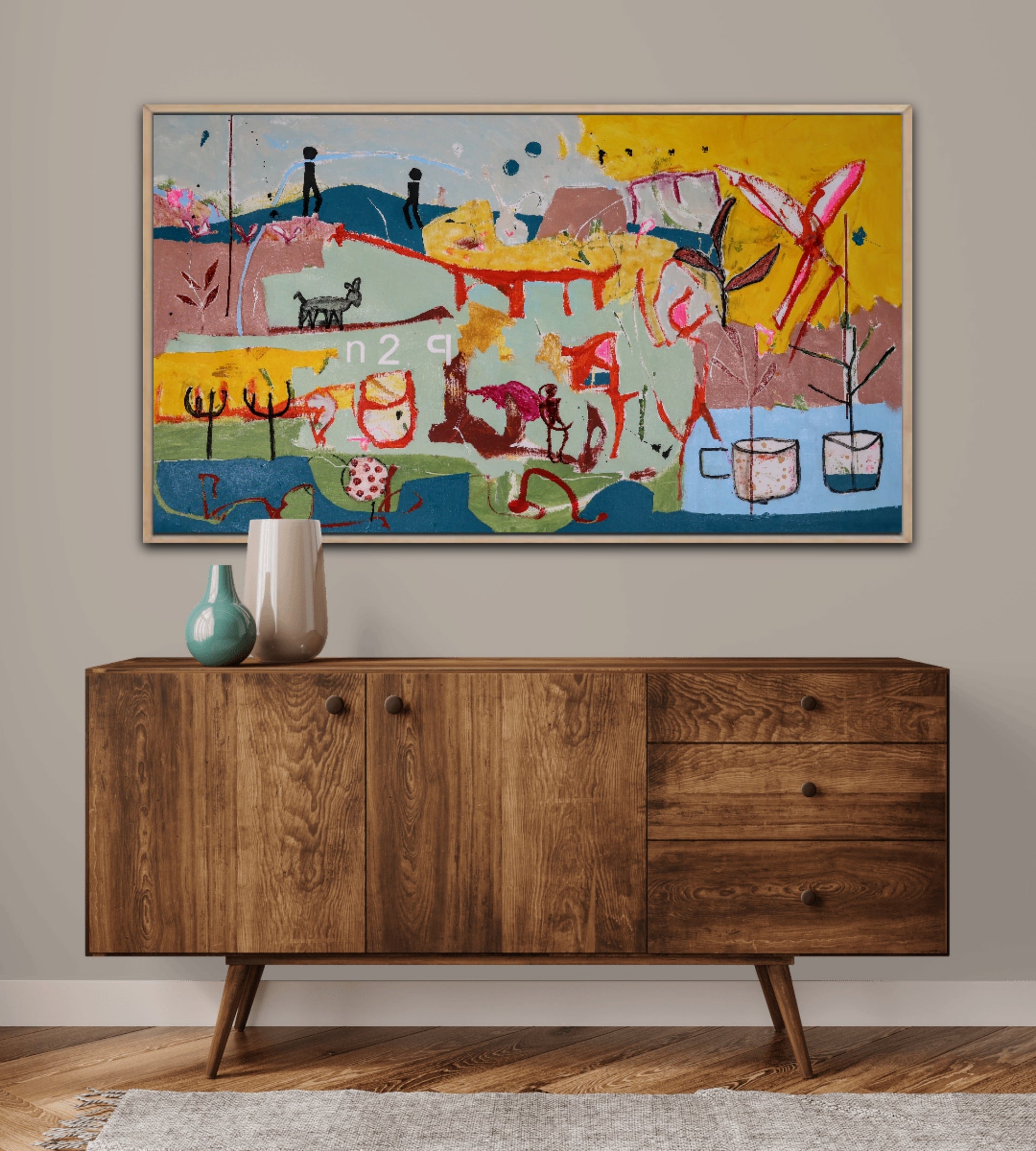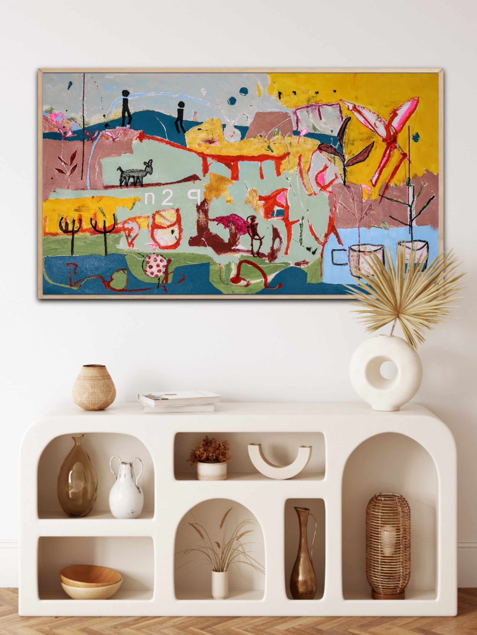Técnica: acrílico, pigmentos, ceras, tempera, lápiz y tinta china.