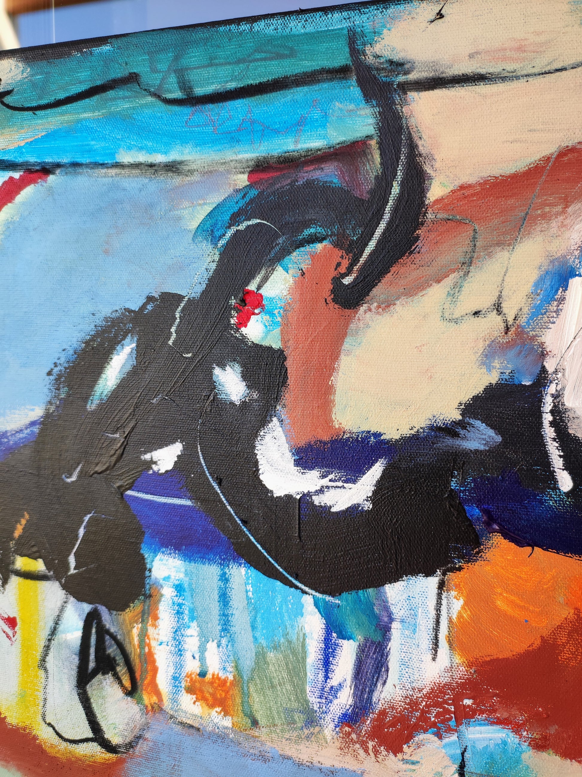 Obra gestual e intuitiva, trabajada con música de John Frusciante.