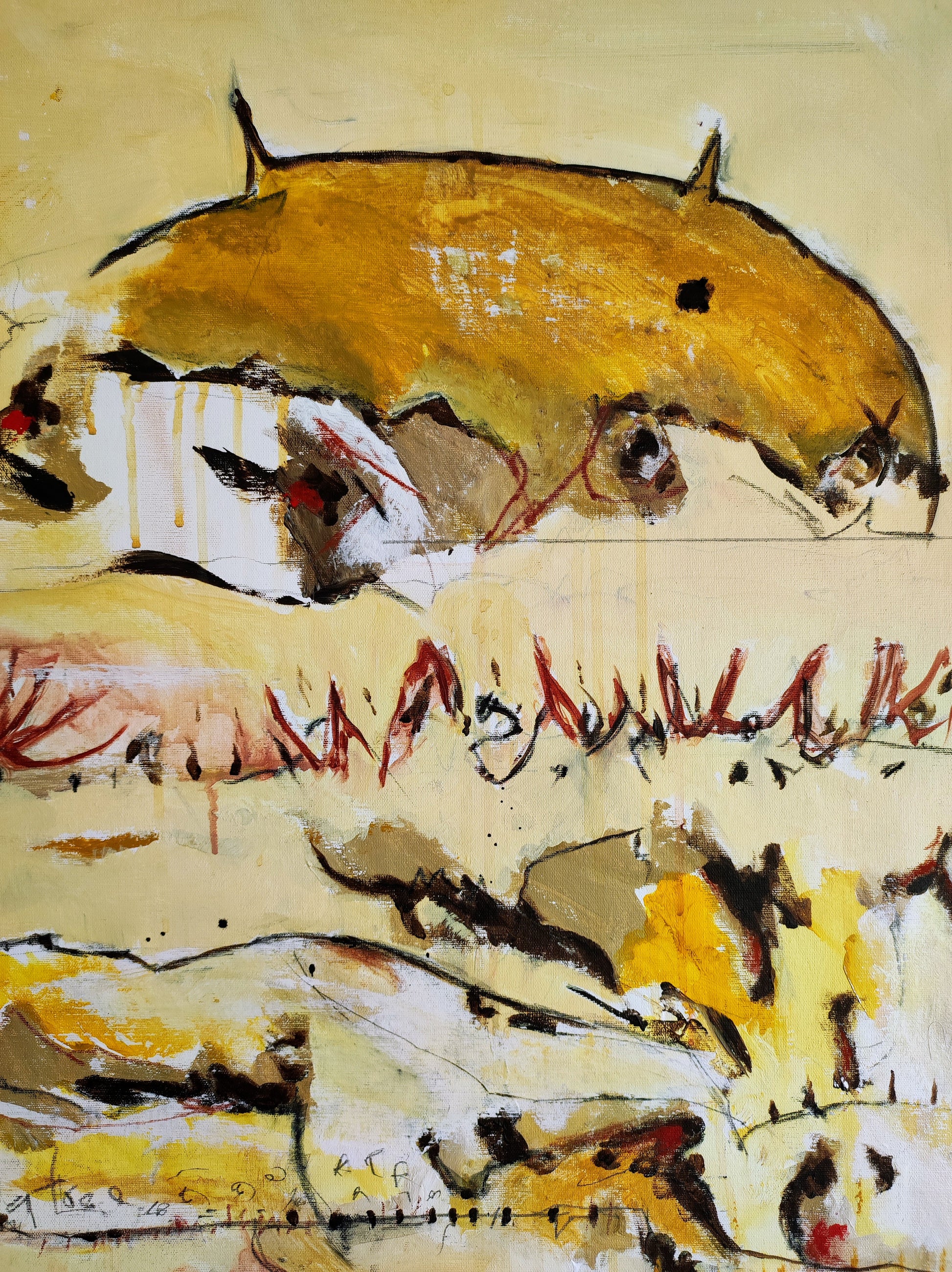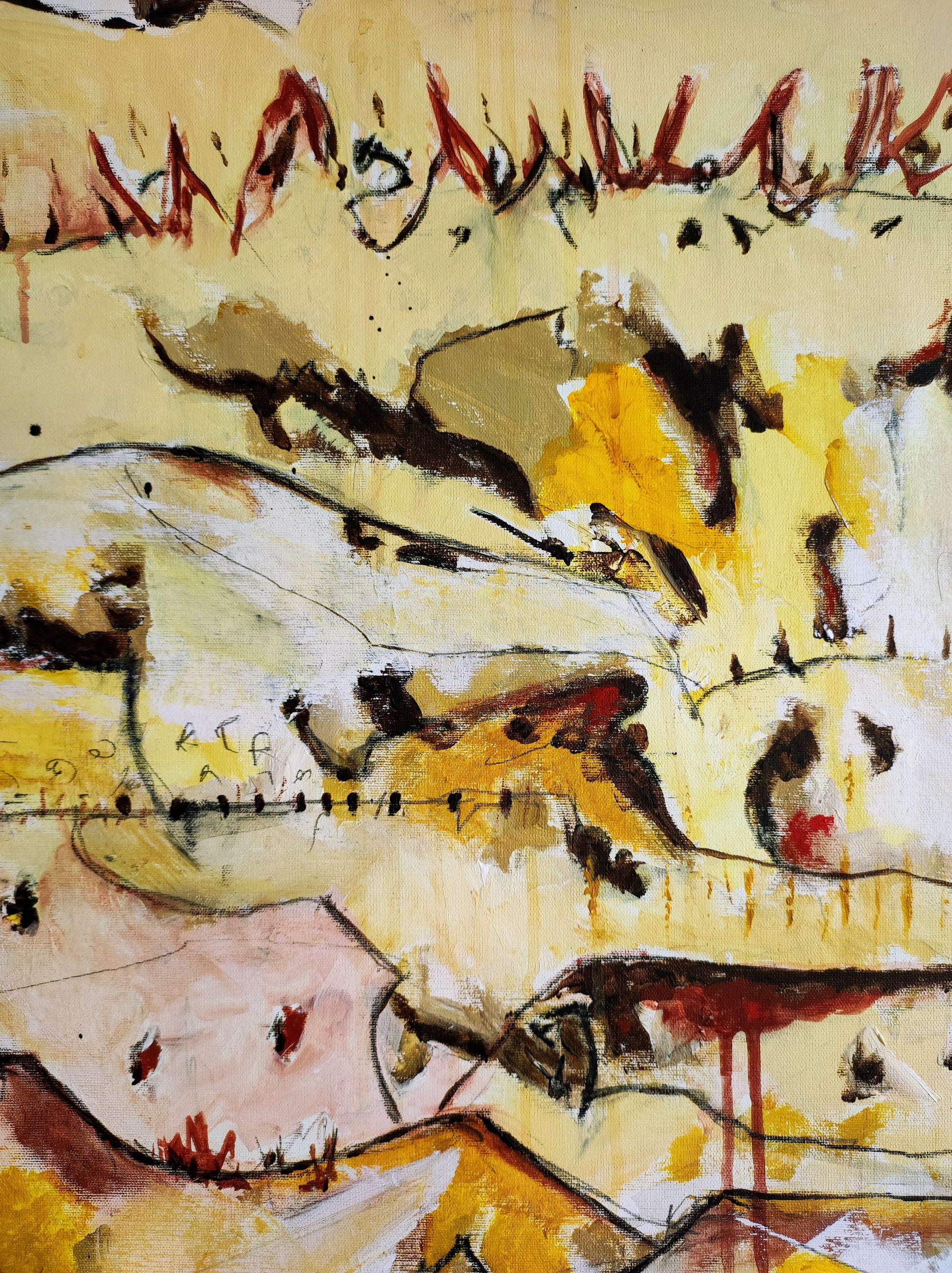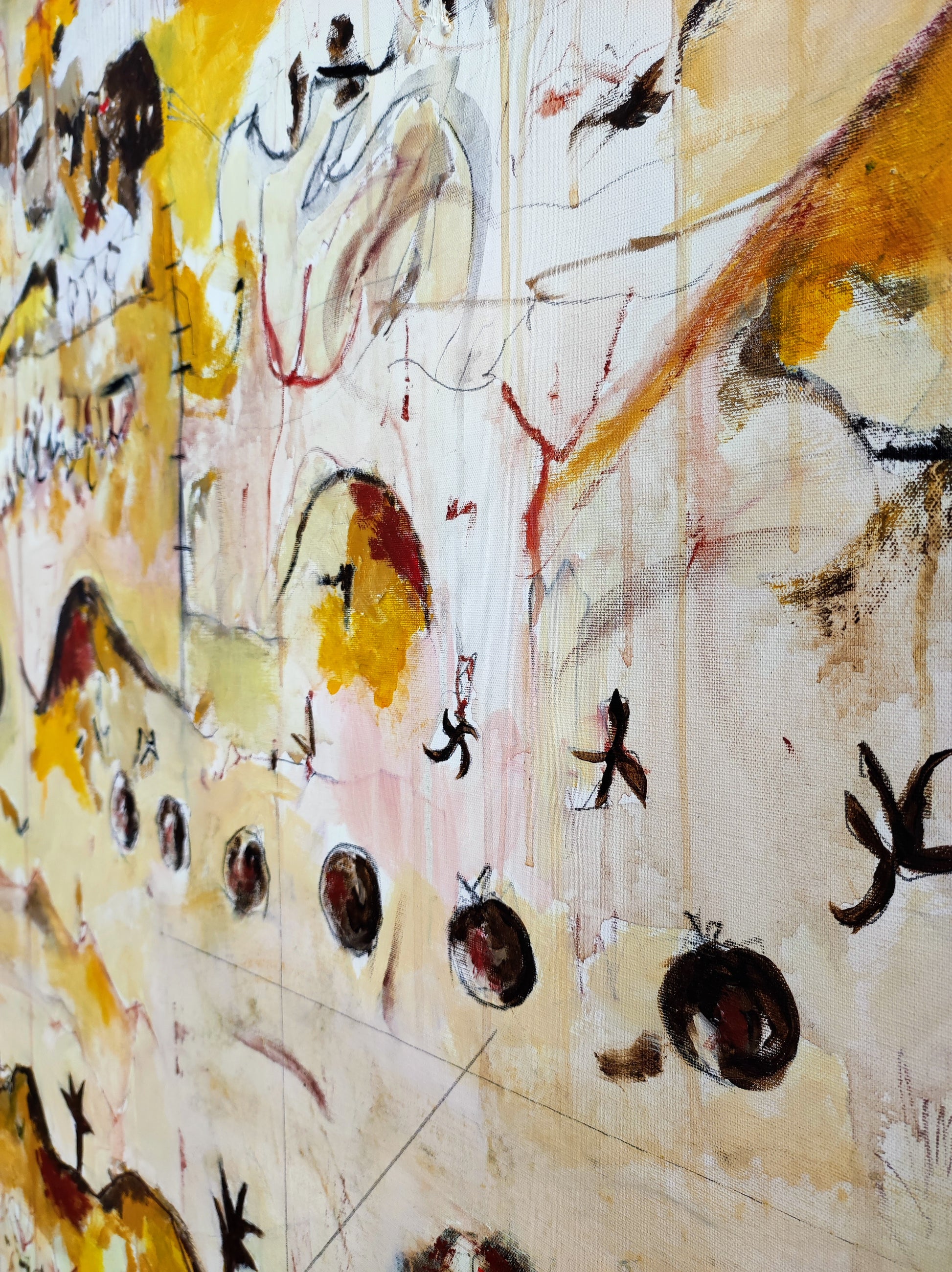 Técnica: acrílico, carboncillo, pastel, lápiz y tinta china.