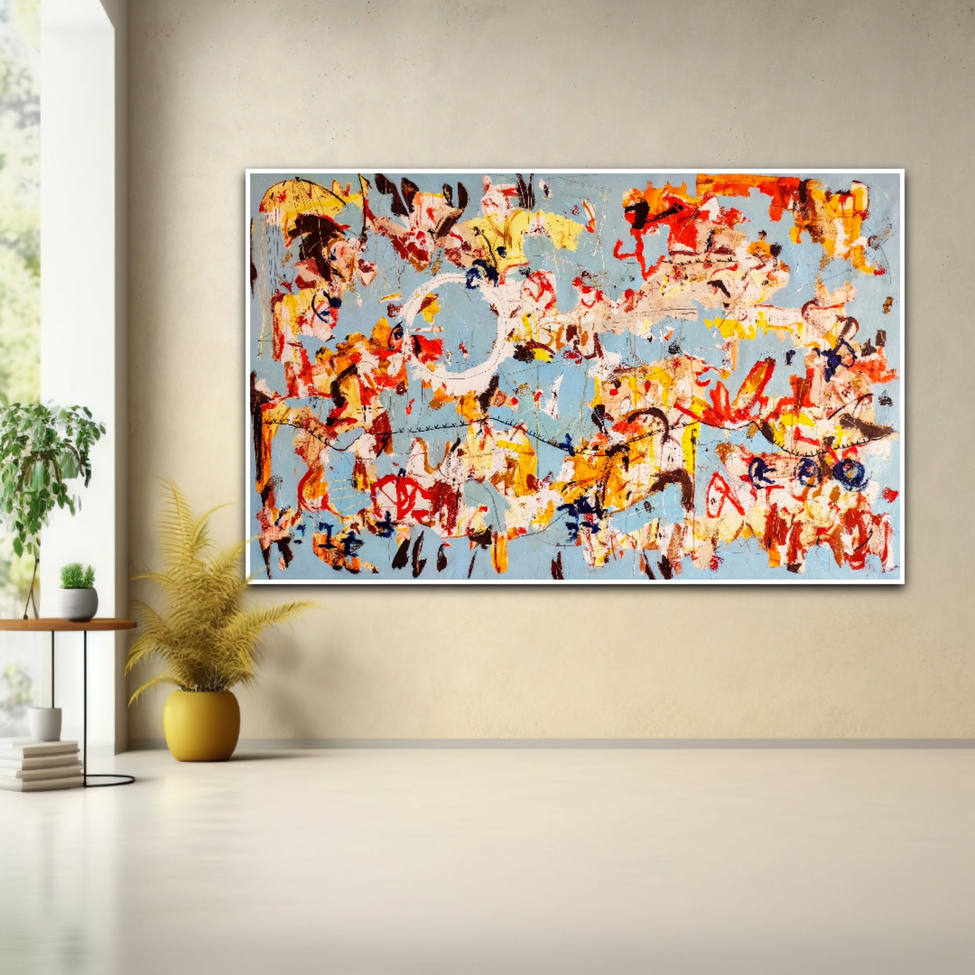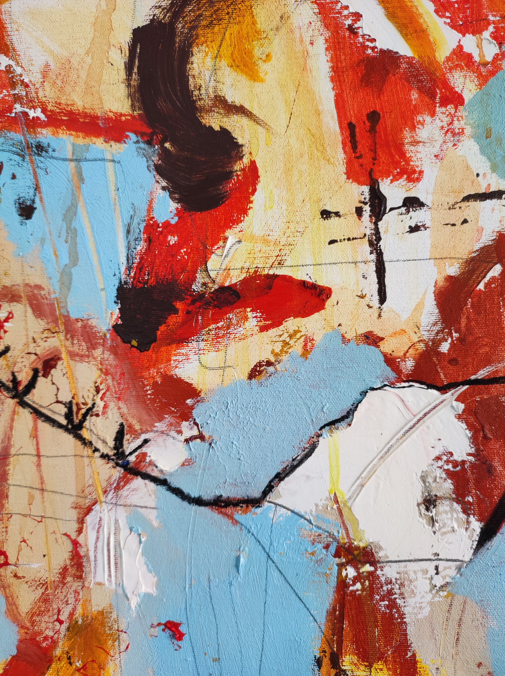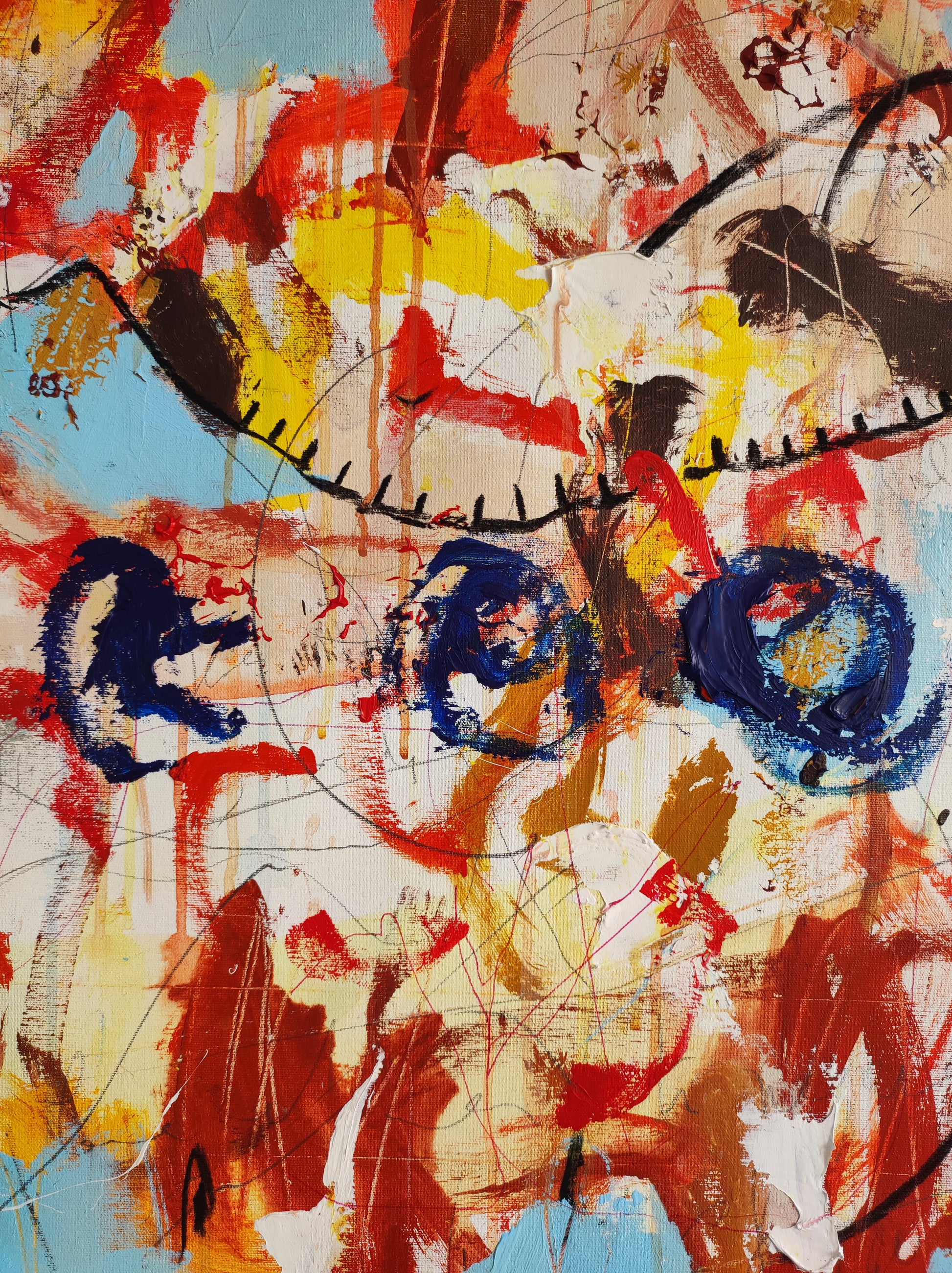 Cuadro trabajado desde la improvisación libre. Action painting con música de Alberto Iglesias.
