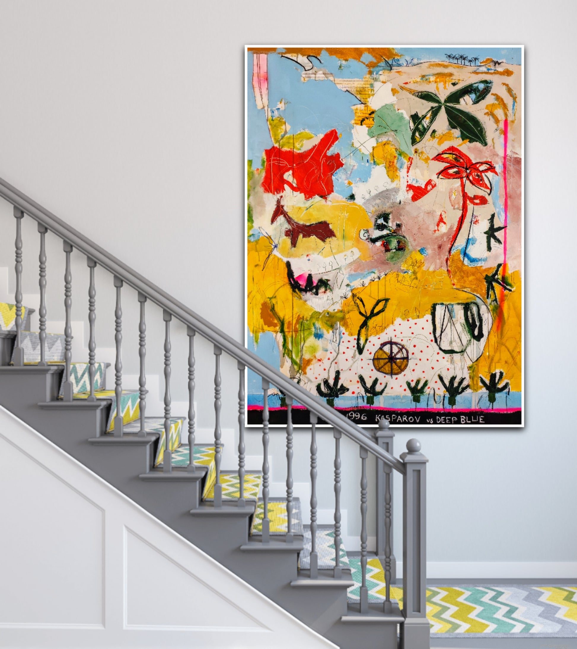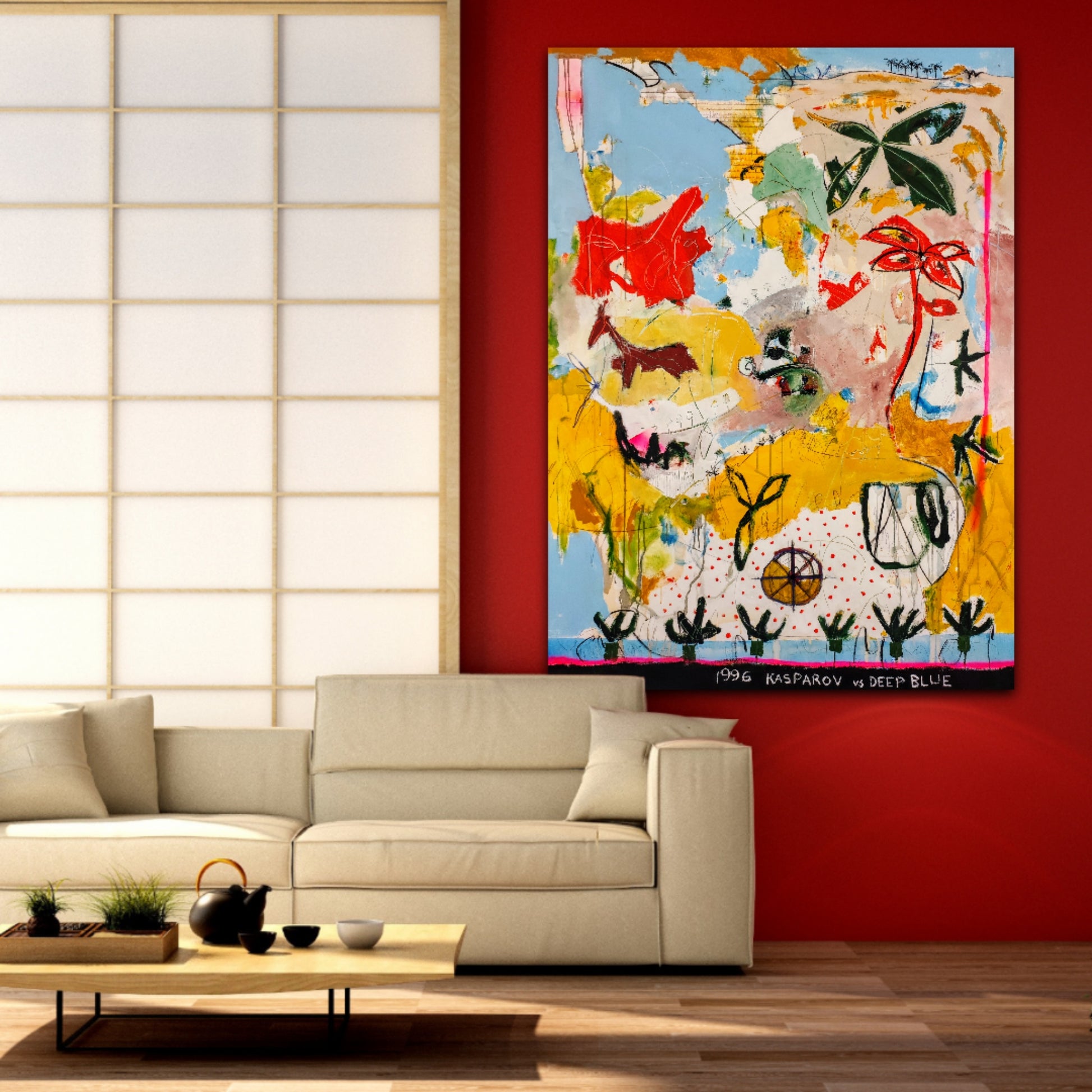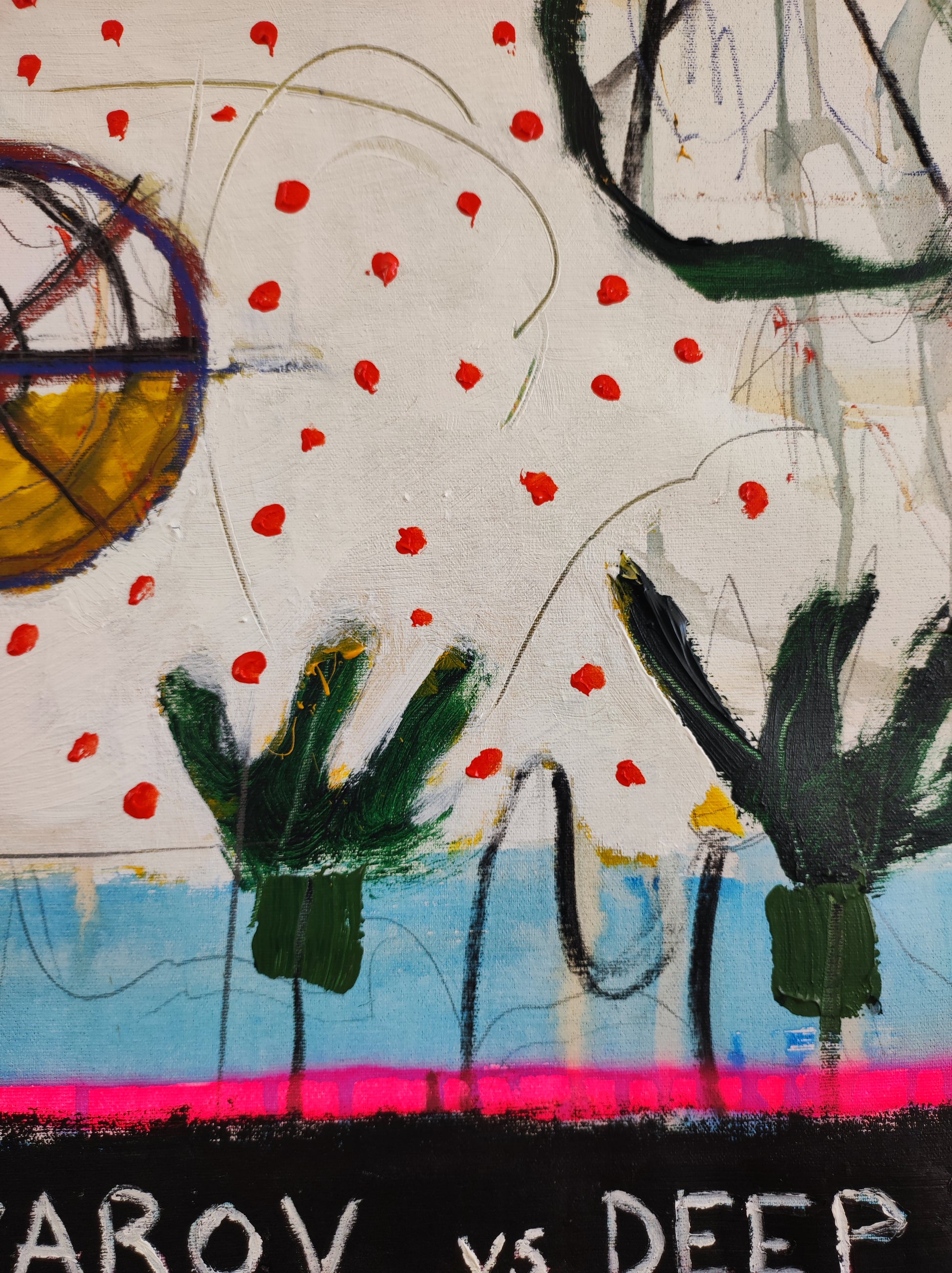 Cuadro trabajado desde la improvisación libre. Action painting con música de Arcade Fire (en buche el tema Deep Blue).