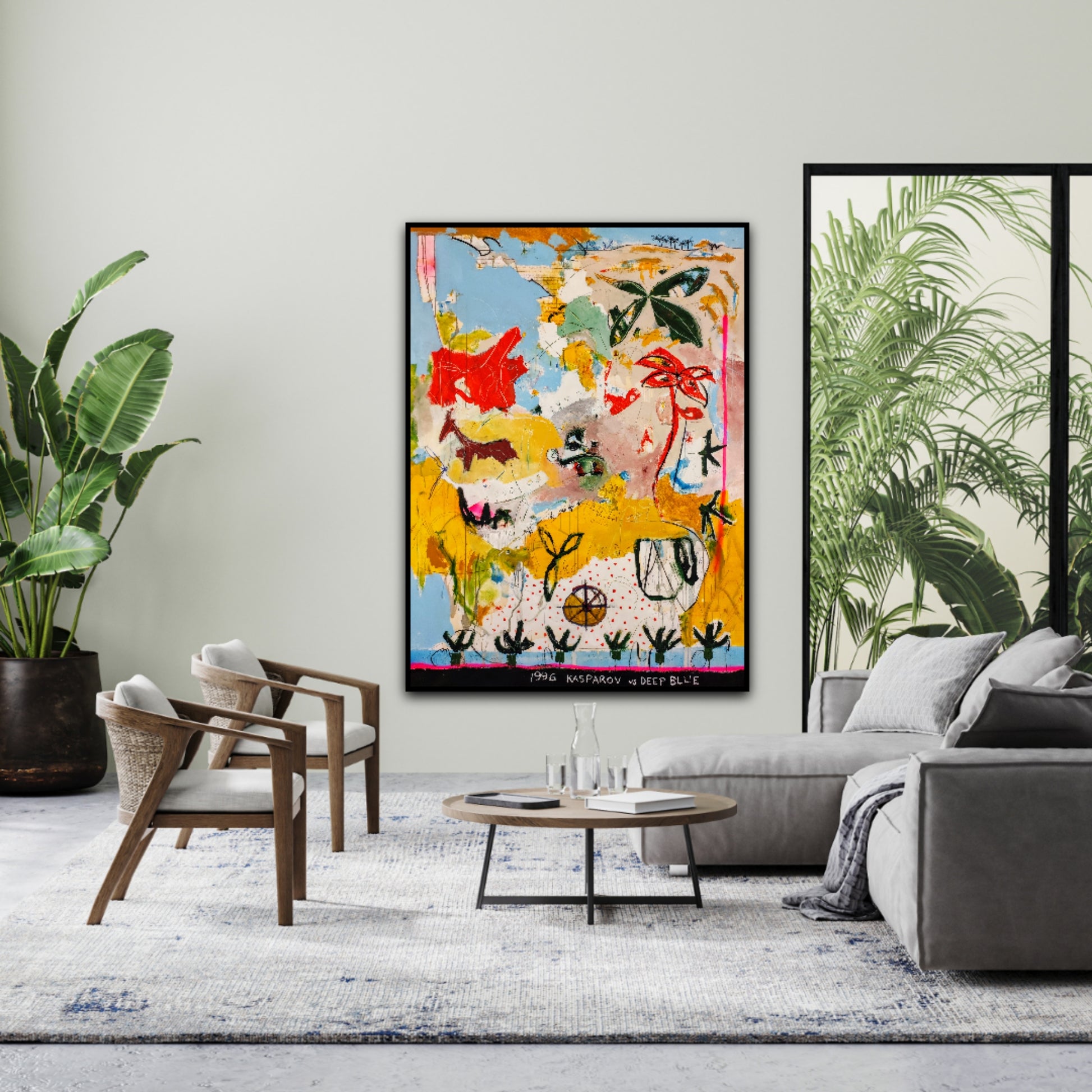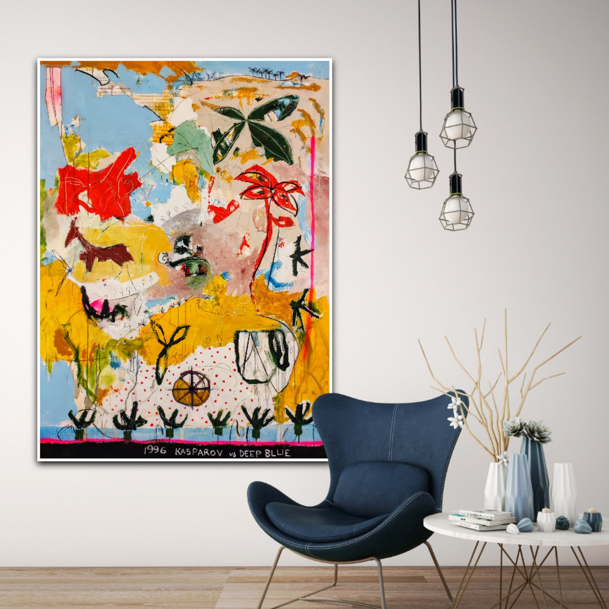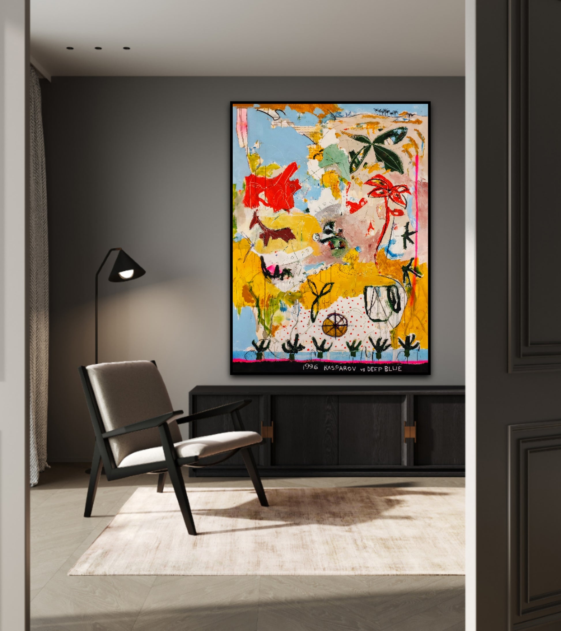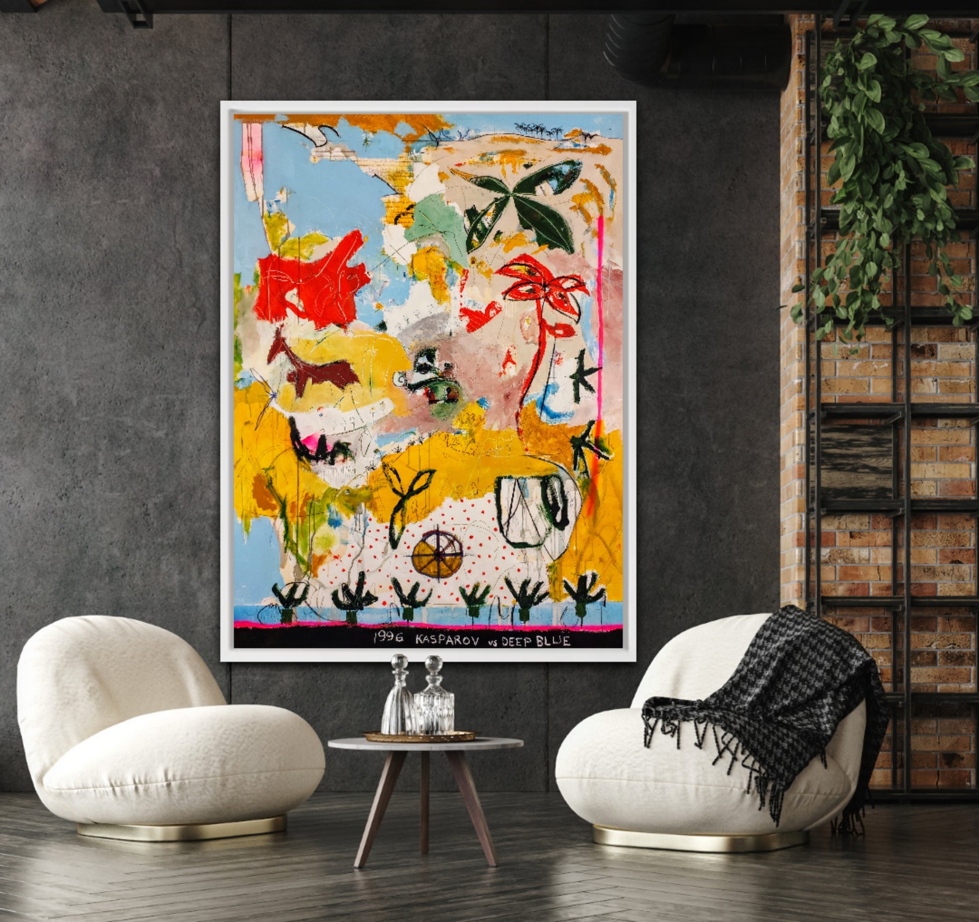Cuadro trabajado desde la improvisación libre. Action painting con música de Arcade Fire (en buche el tema Deep Blue).
