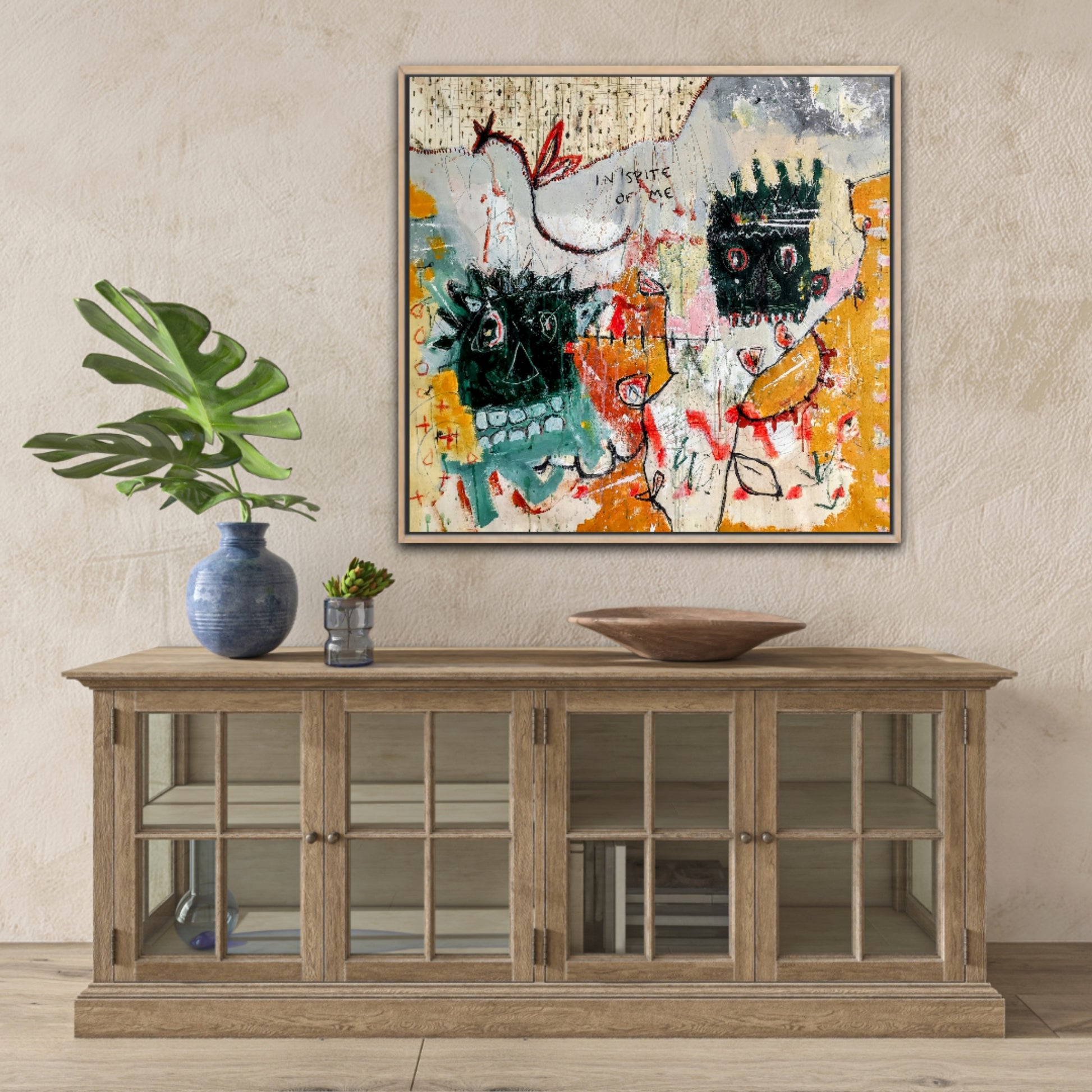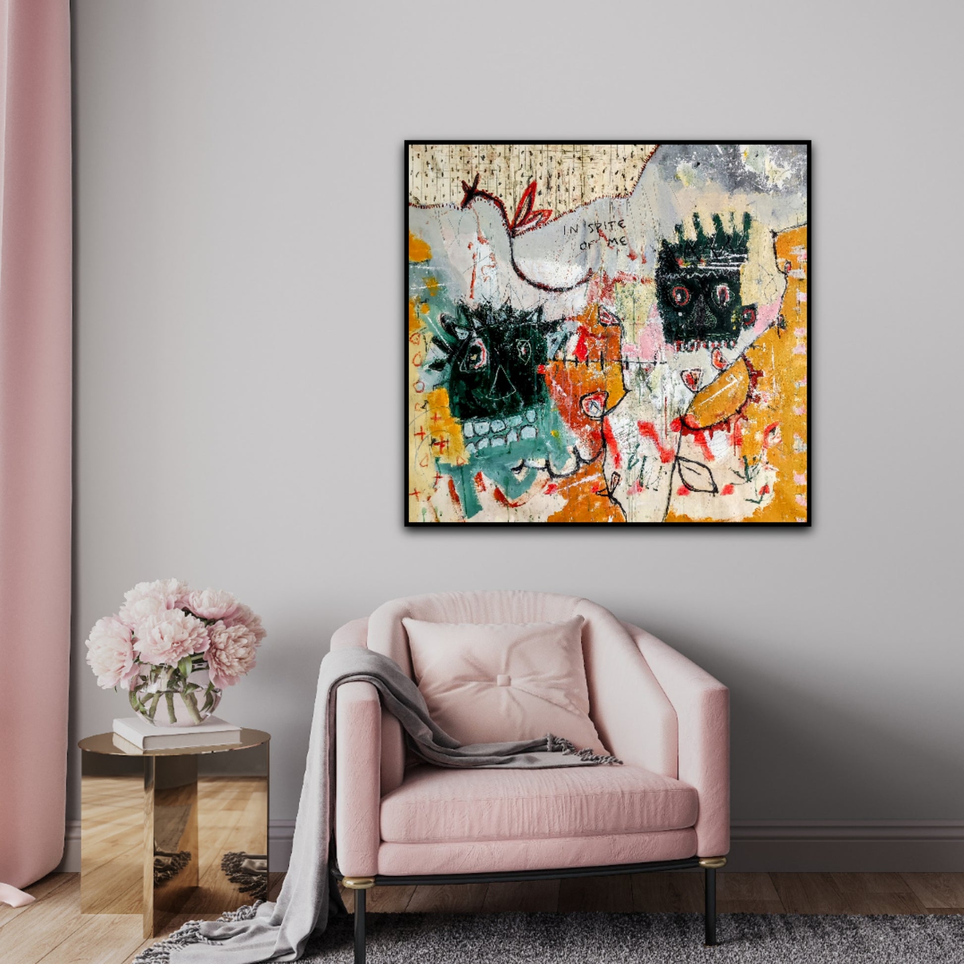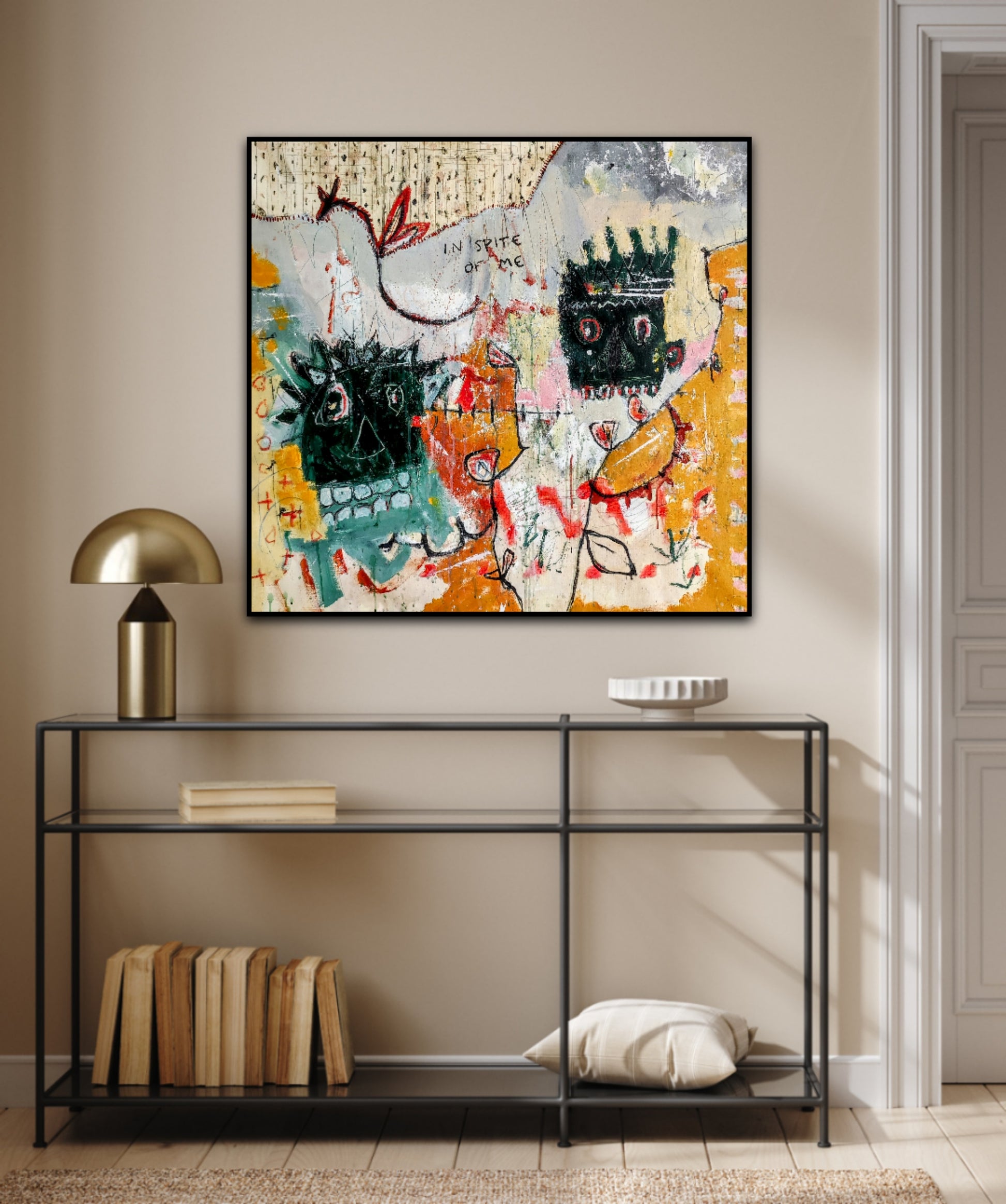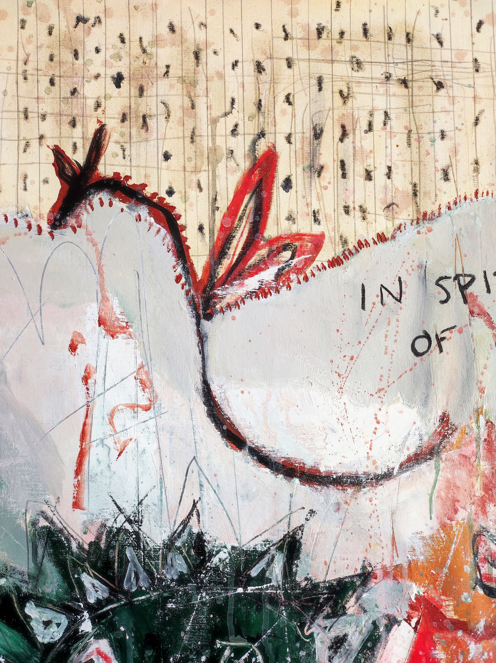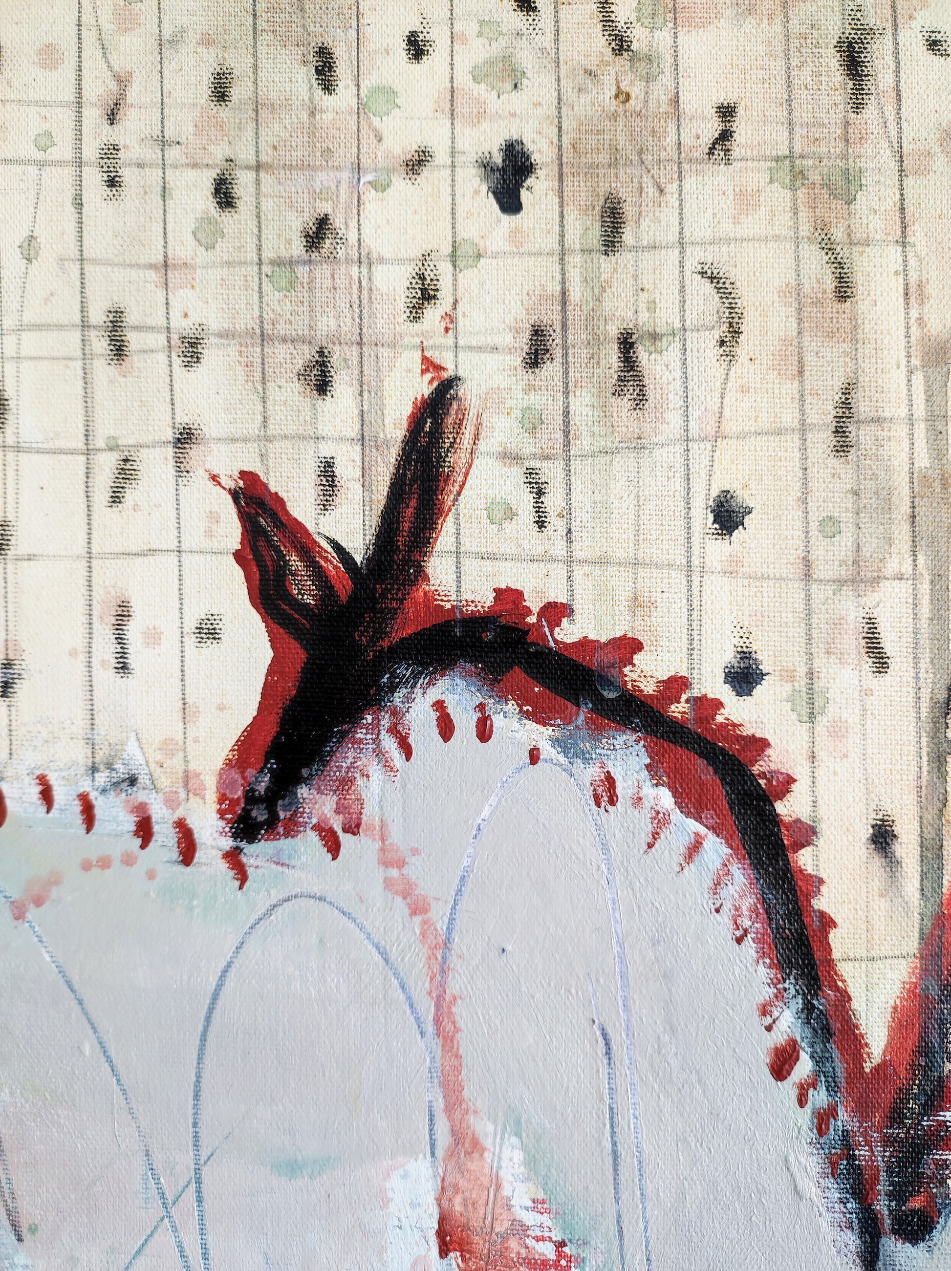 Técnica: acrílico, pigmentos, ceras, carboncillo y lápiz.