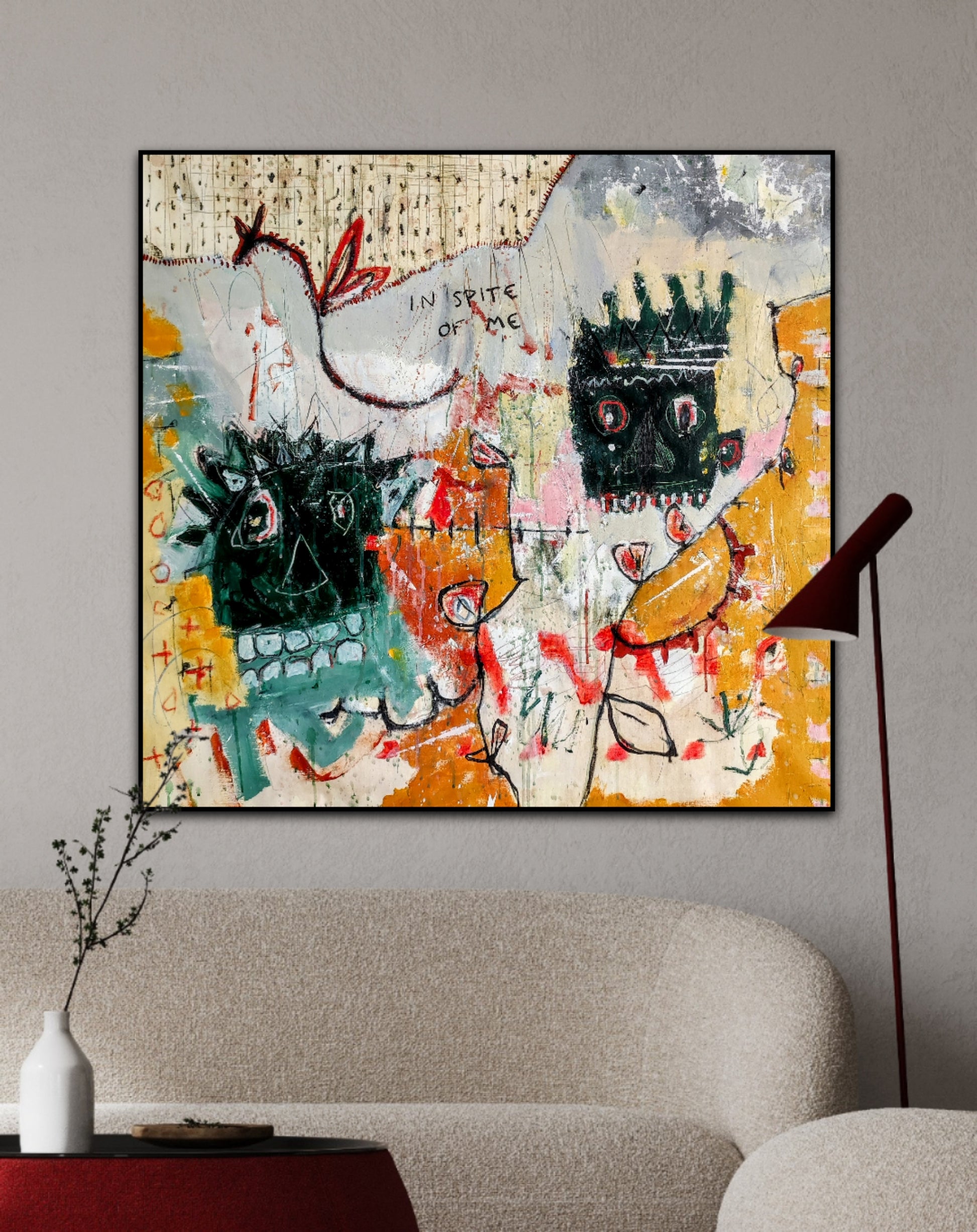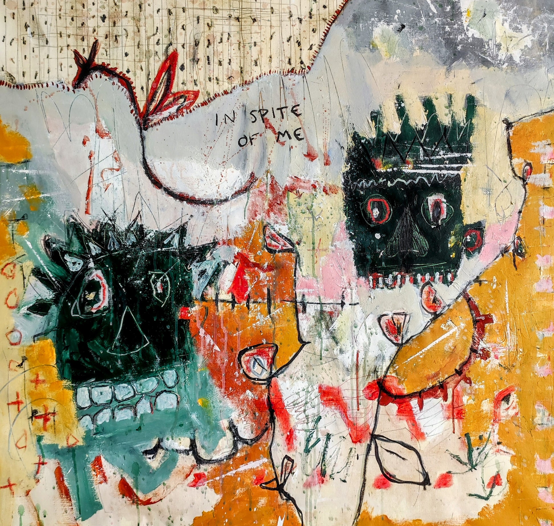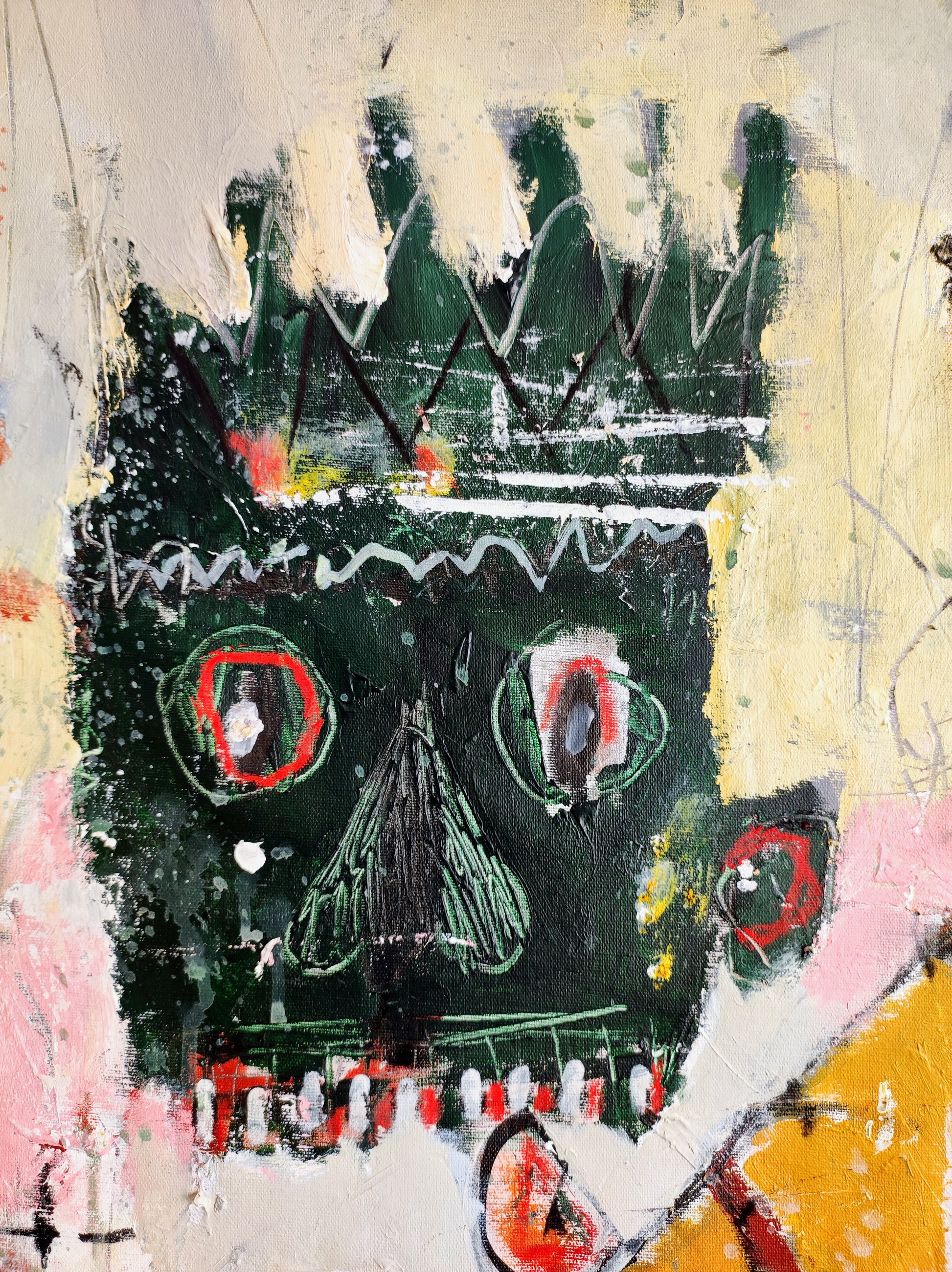Cuadro trabajado desde la improvisación libre. Action painting con música de STRFKR.
