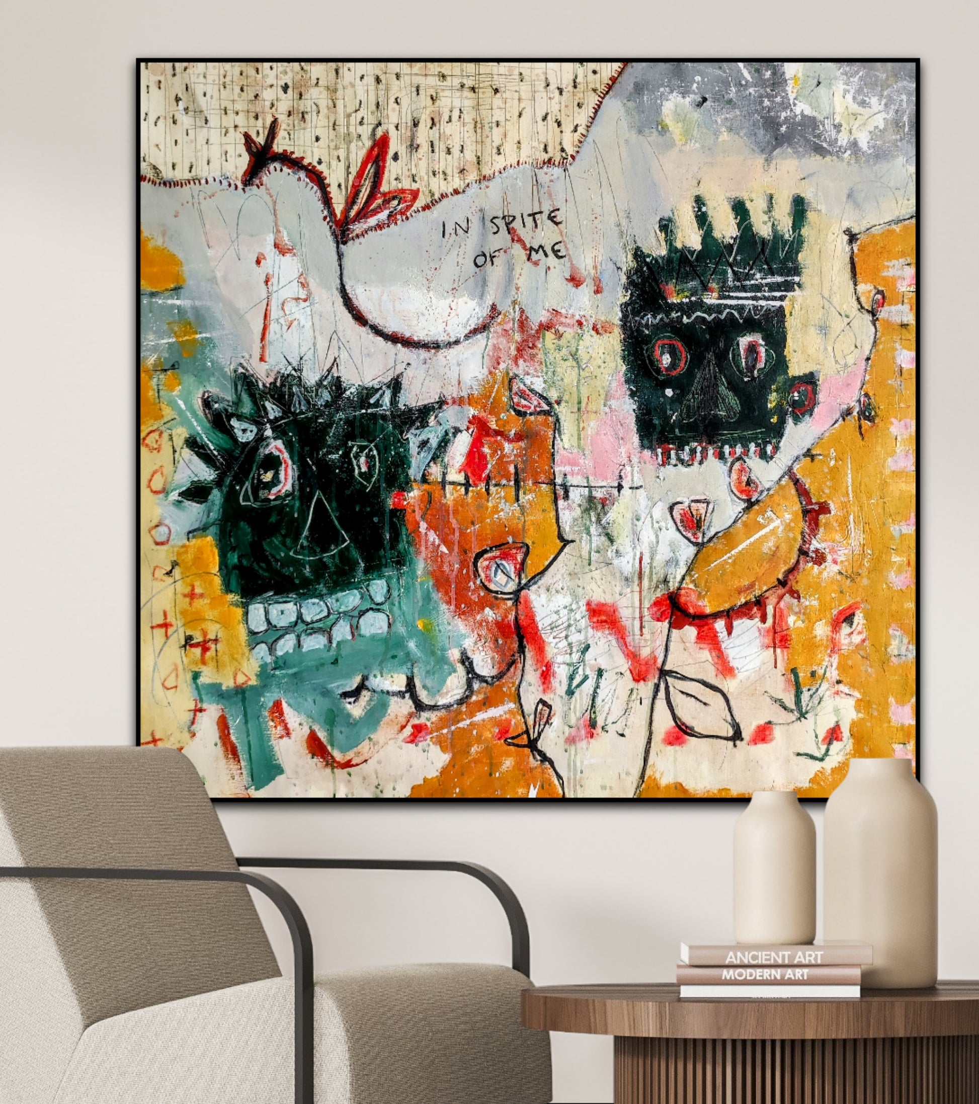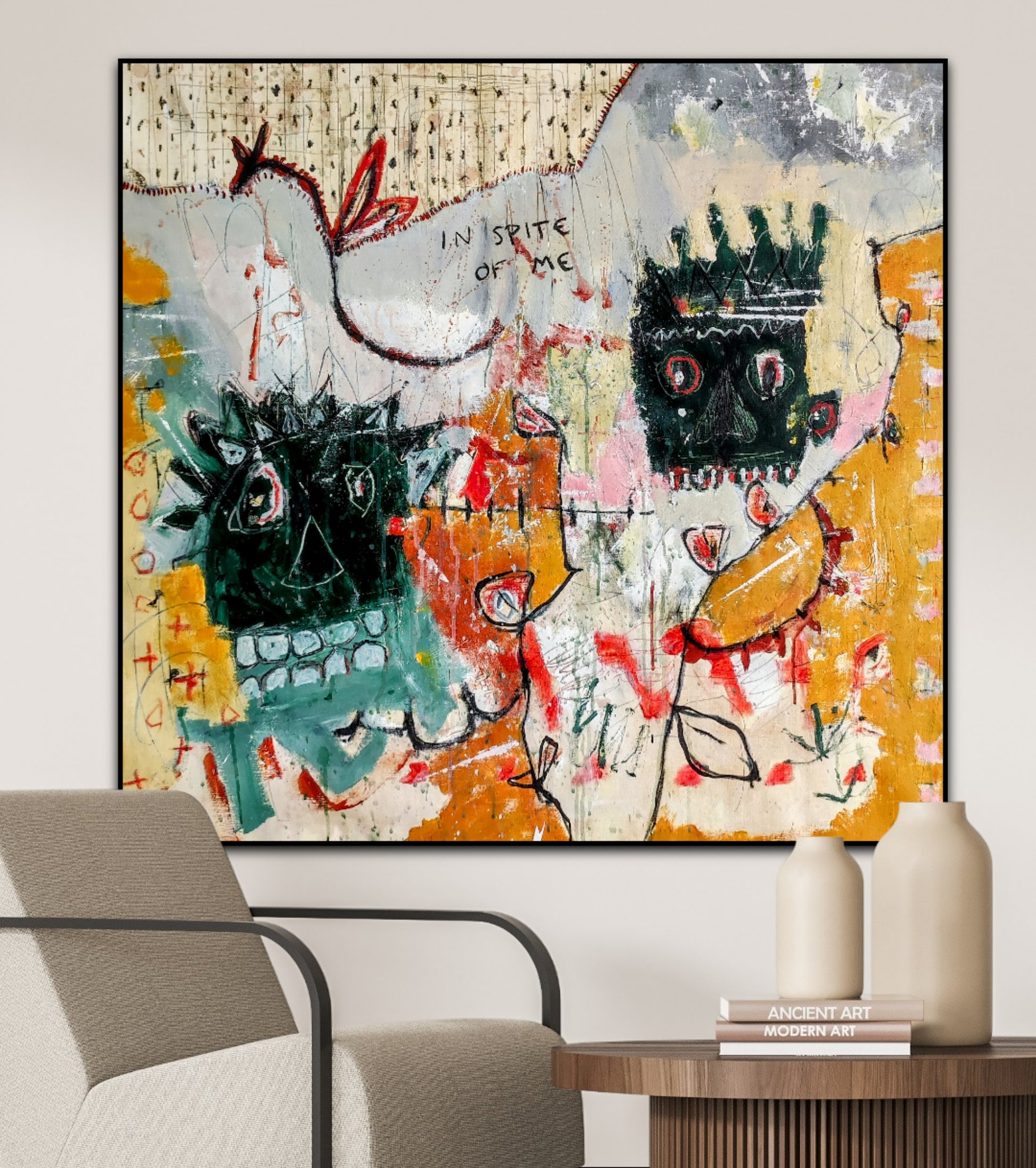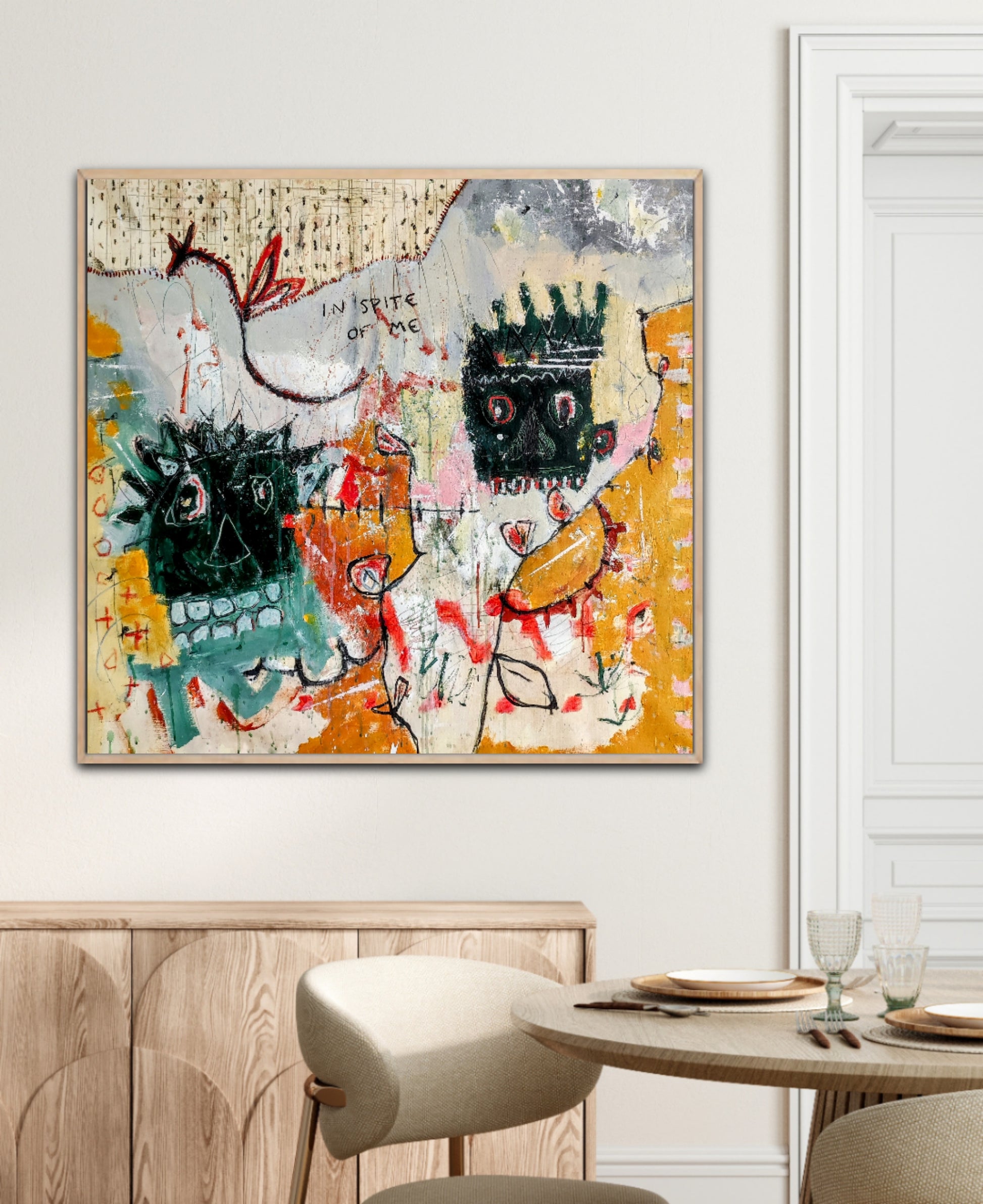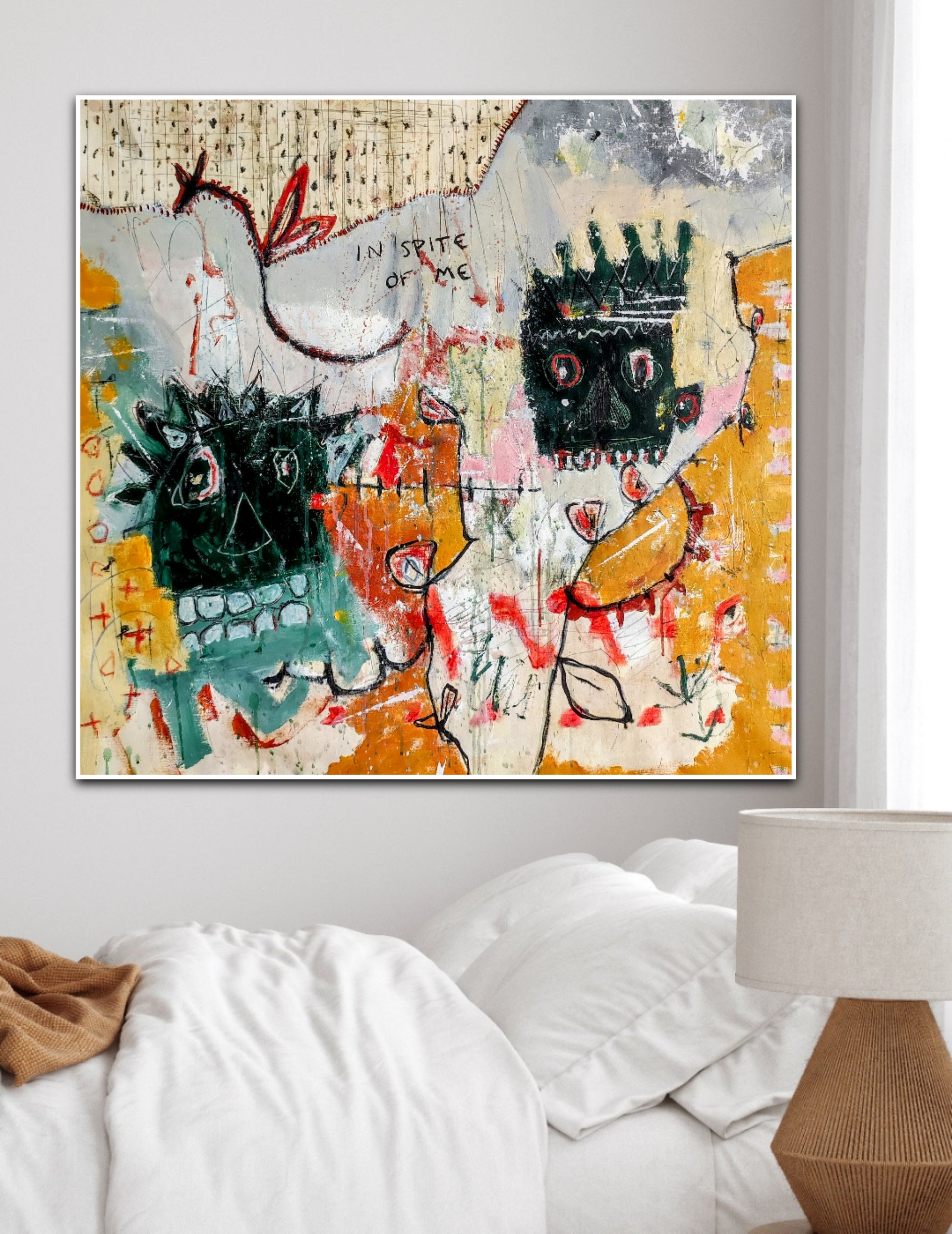 Cuadro trabajado desde la improvisación libre. Action painting con música de STRFKR.