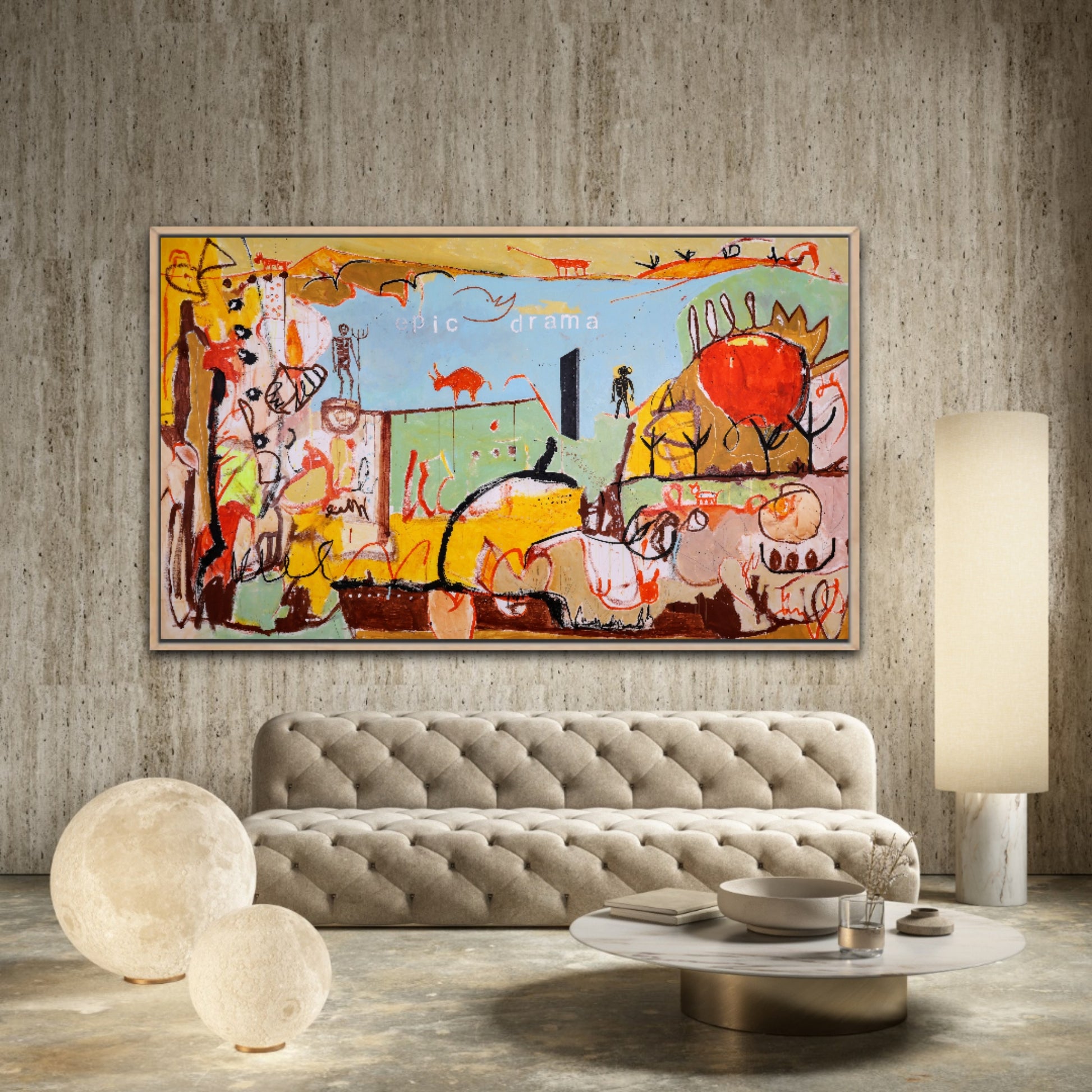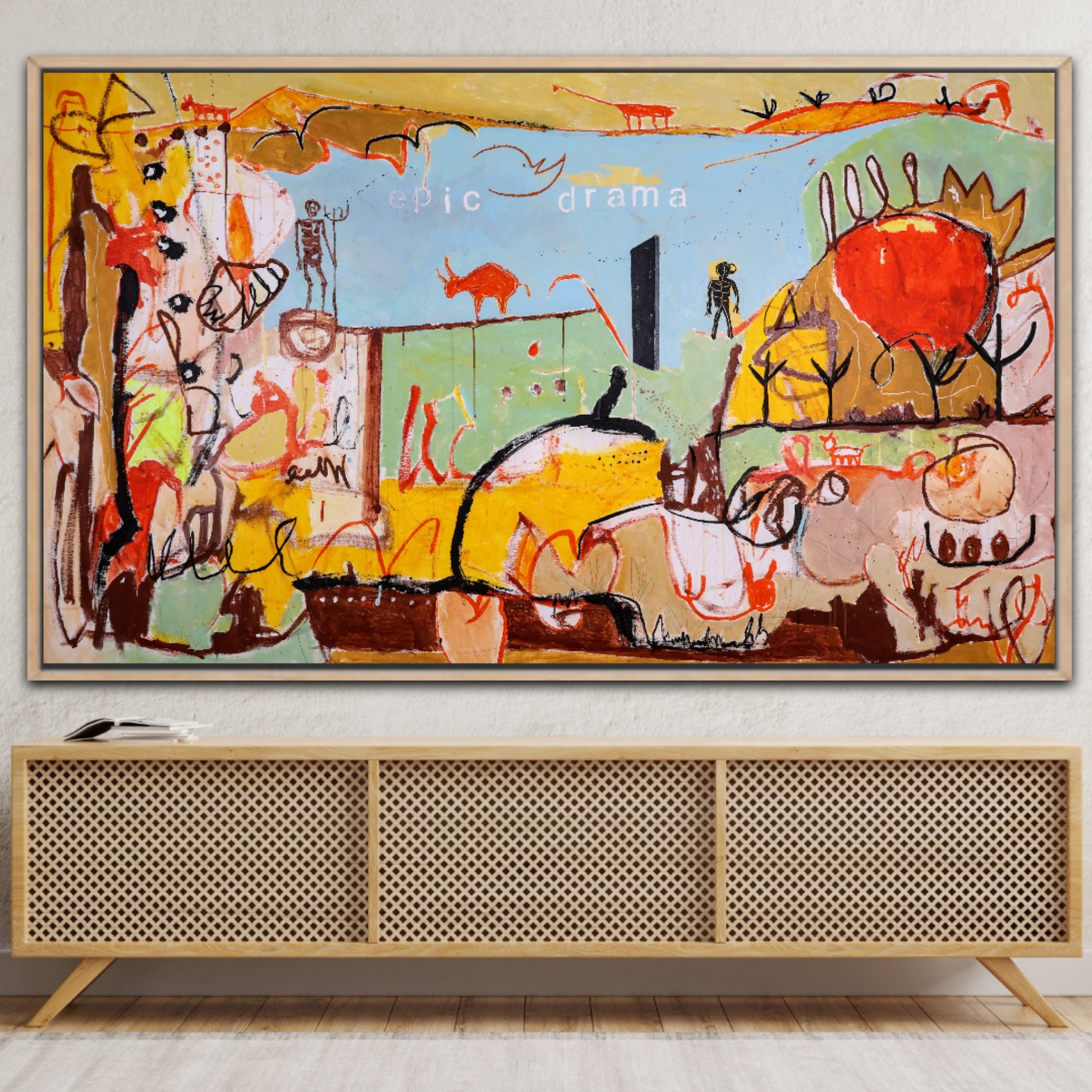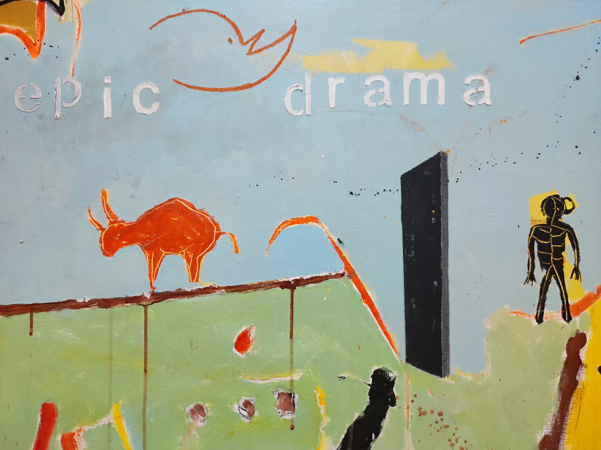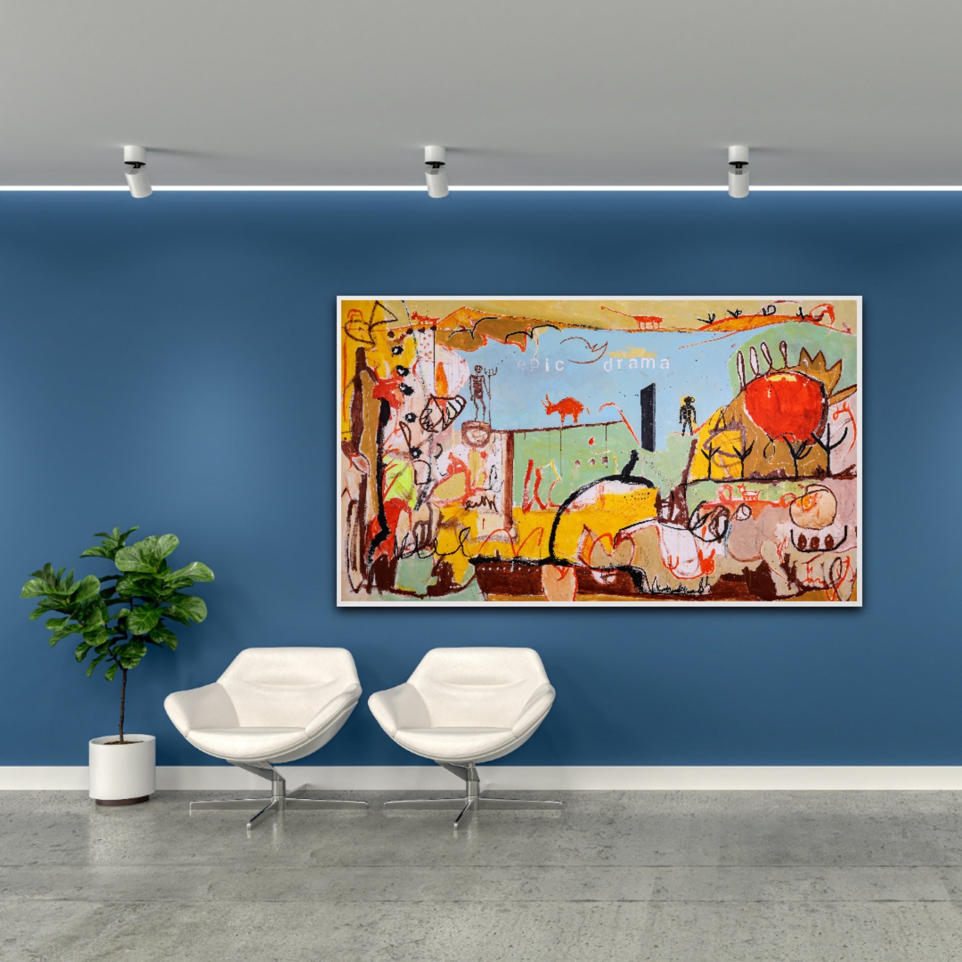 Técnica: acrílico, pigmentos, ceras, tempera, gesso, pastel, carboncillo y lápiz.