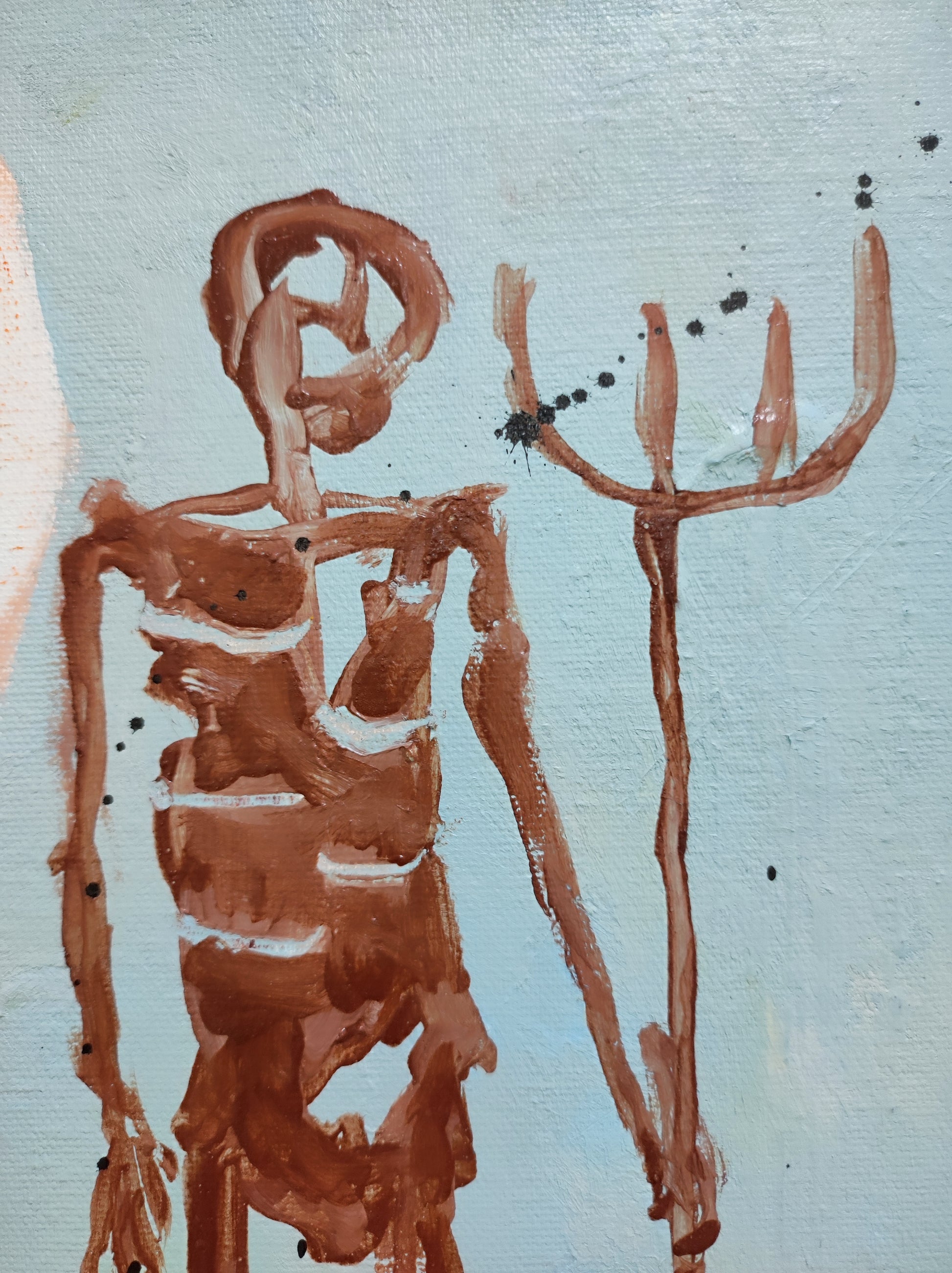 Cuadro trabajado desde la improvisación libre. Action painting con música de Pink Floyd.