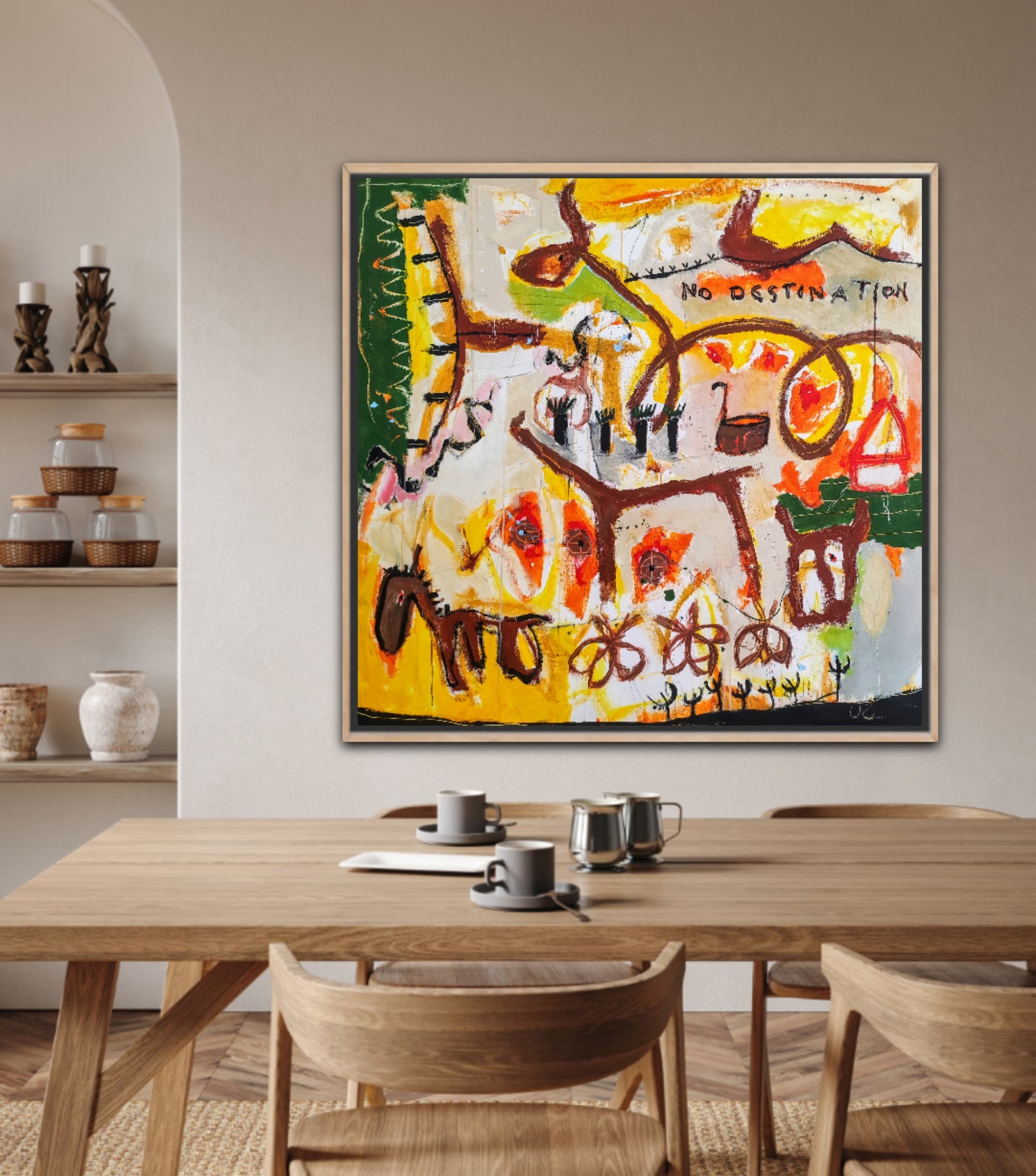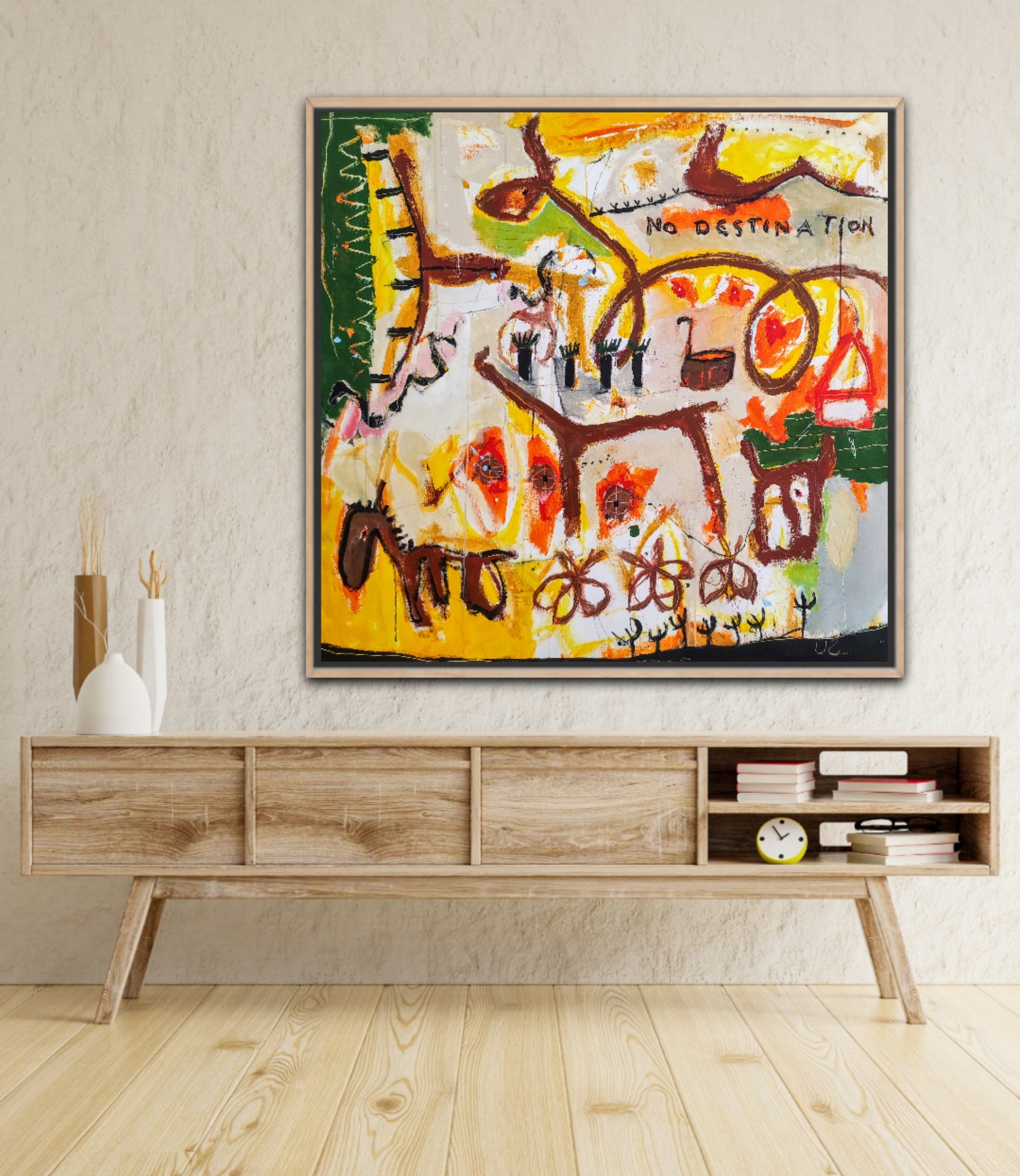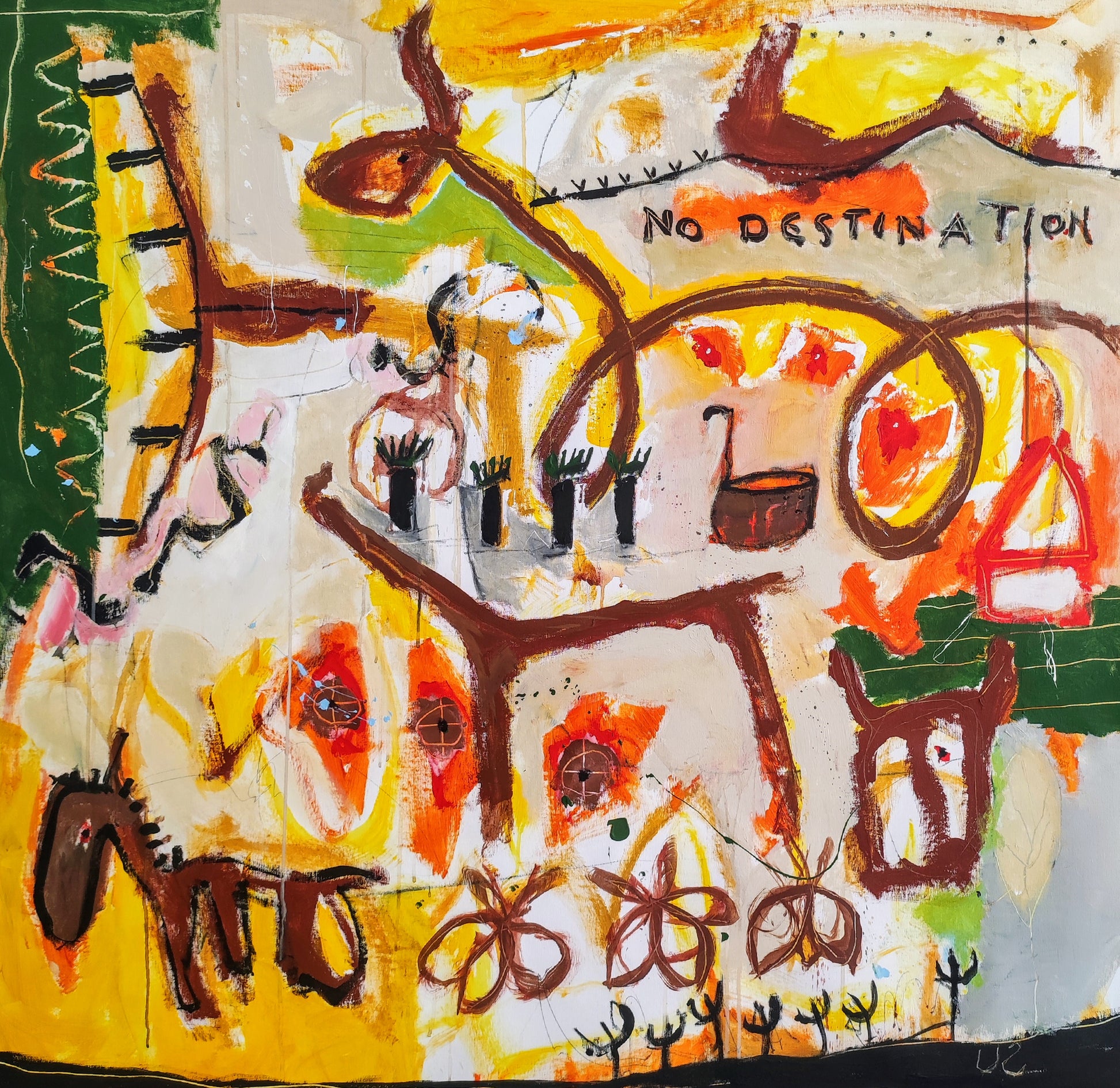 Técnica: acrílico, pigmentos, ceras, tinta china, carboncillo y lápiz.