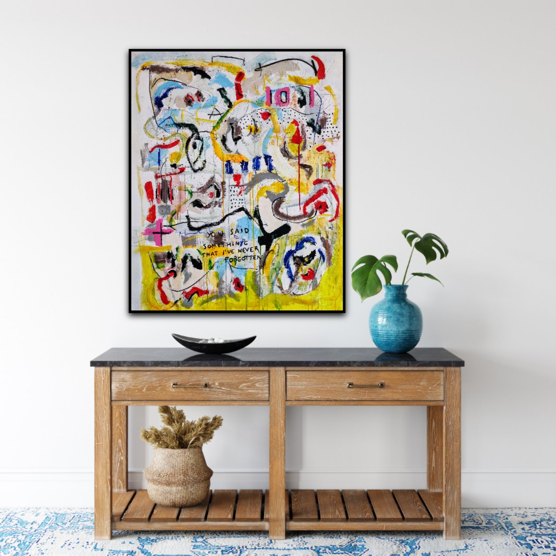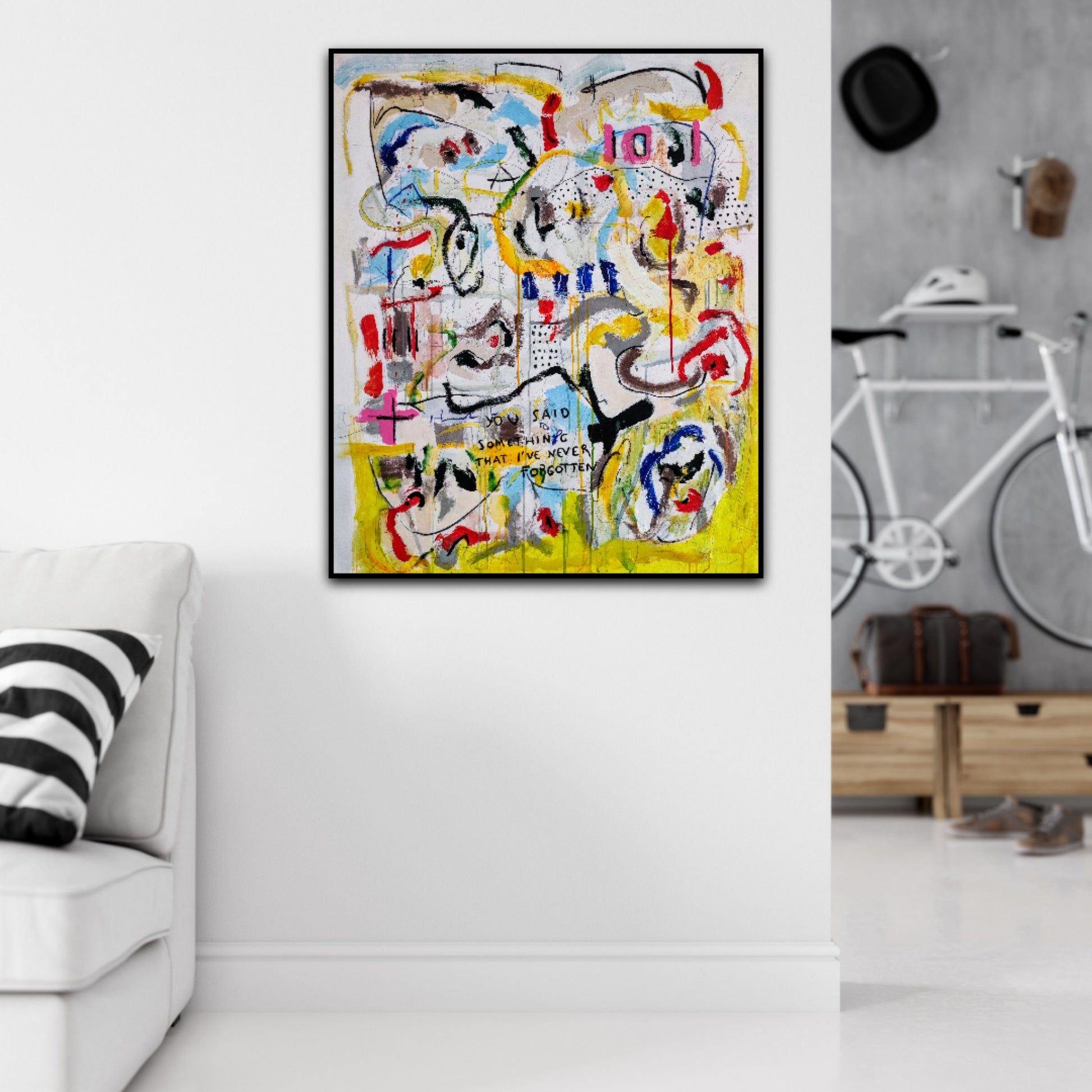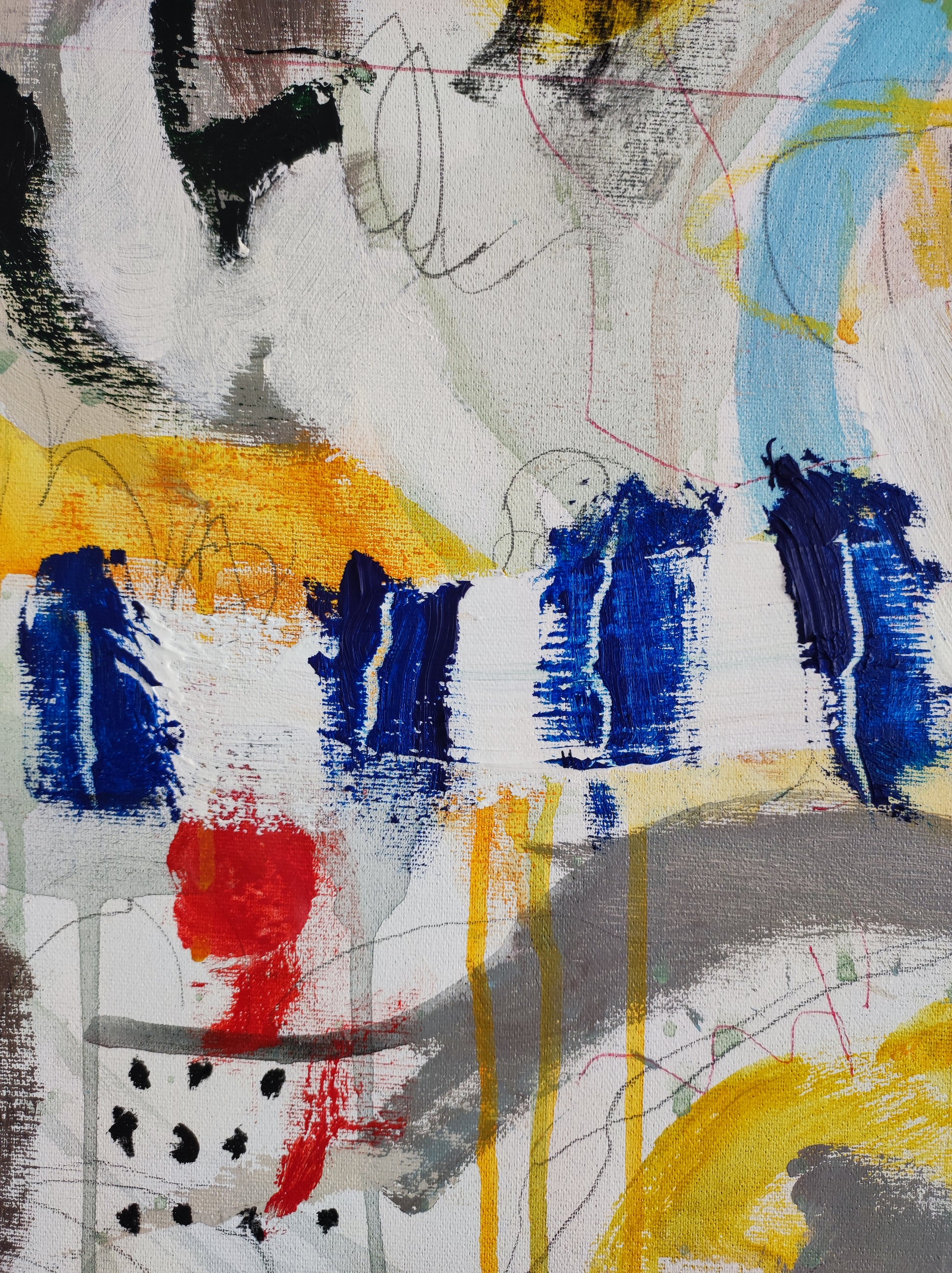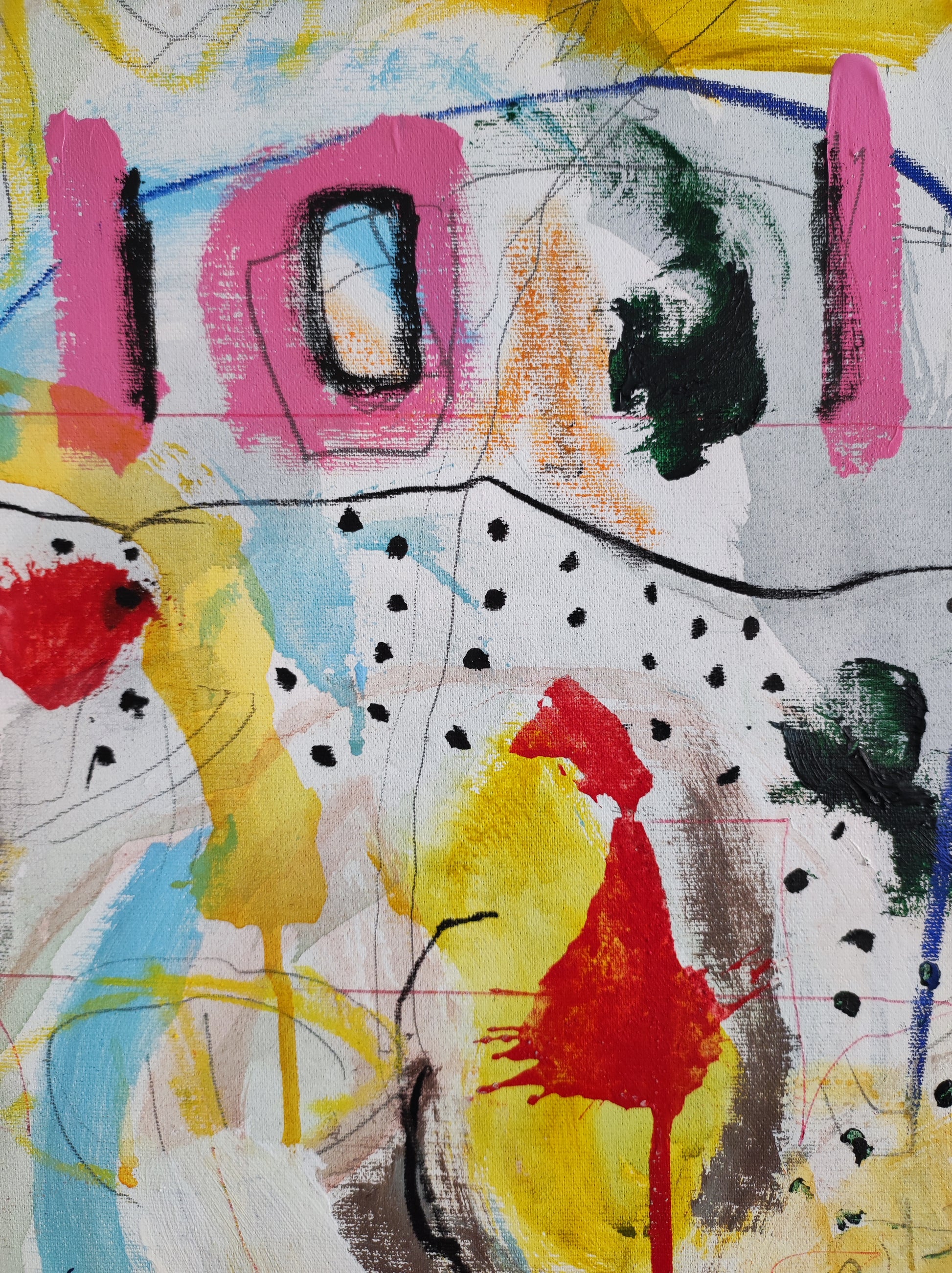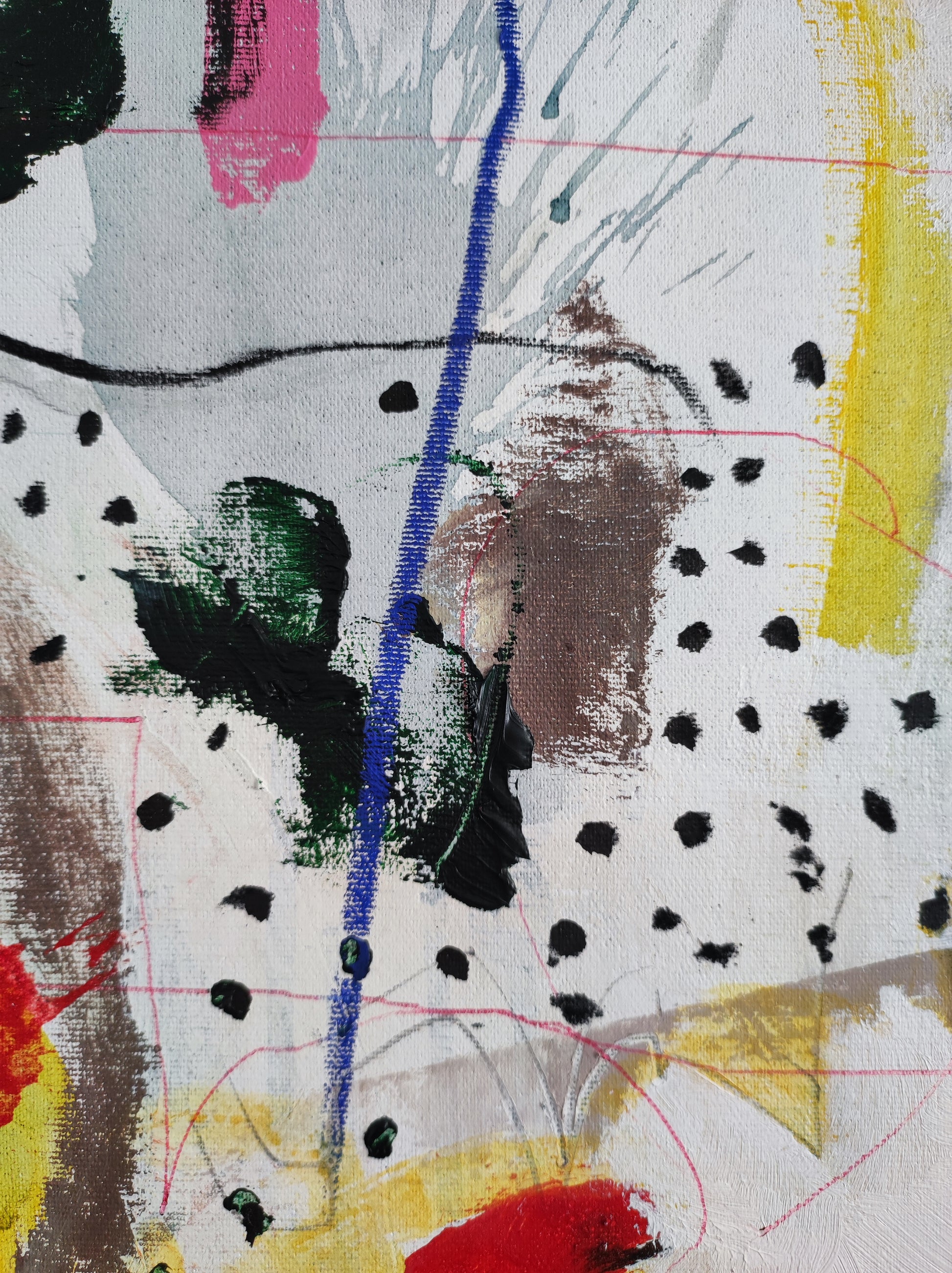 Cuadro trabajado desde la improvisación libre. Action painting con música de Arcade Fire y Belle and Sebastian.
