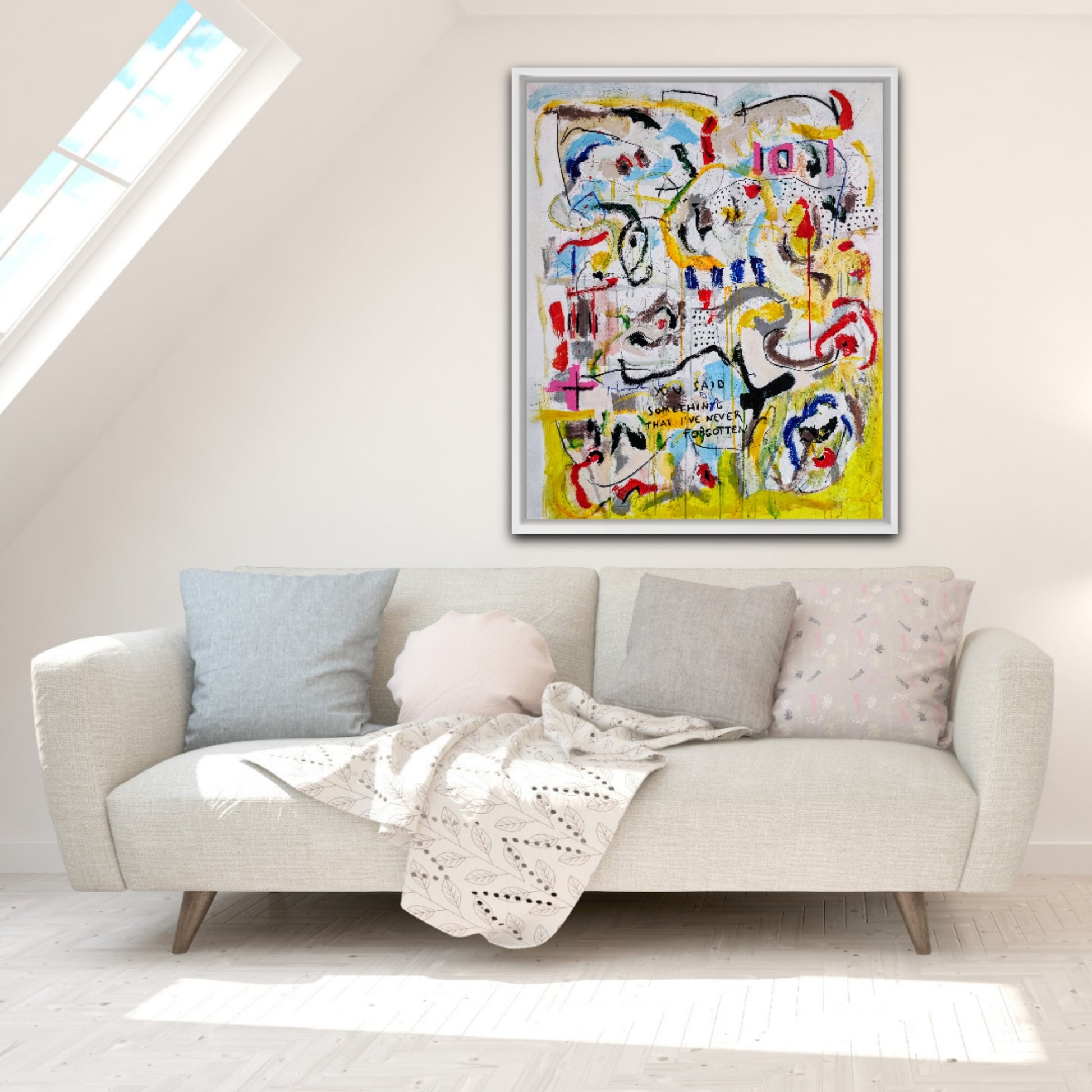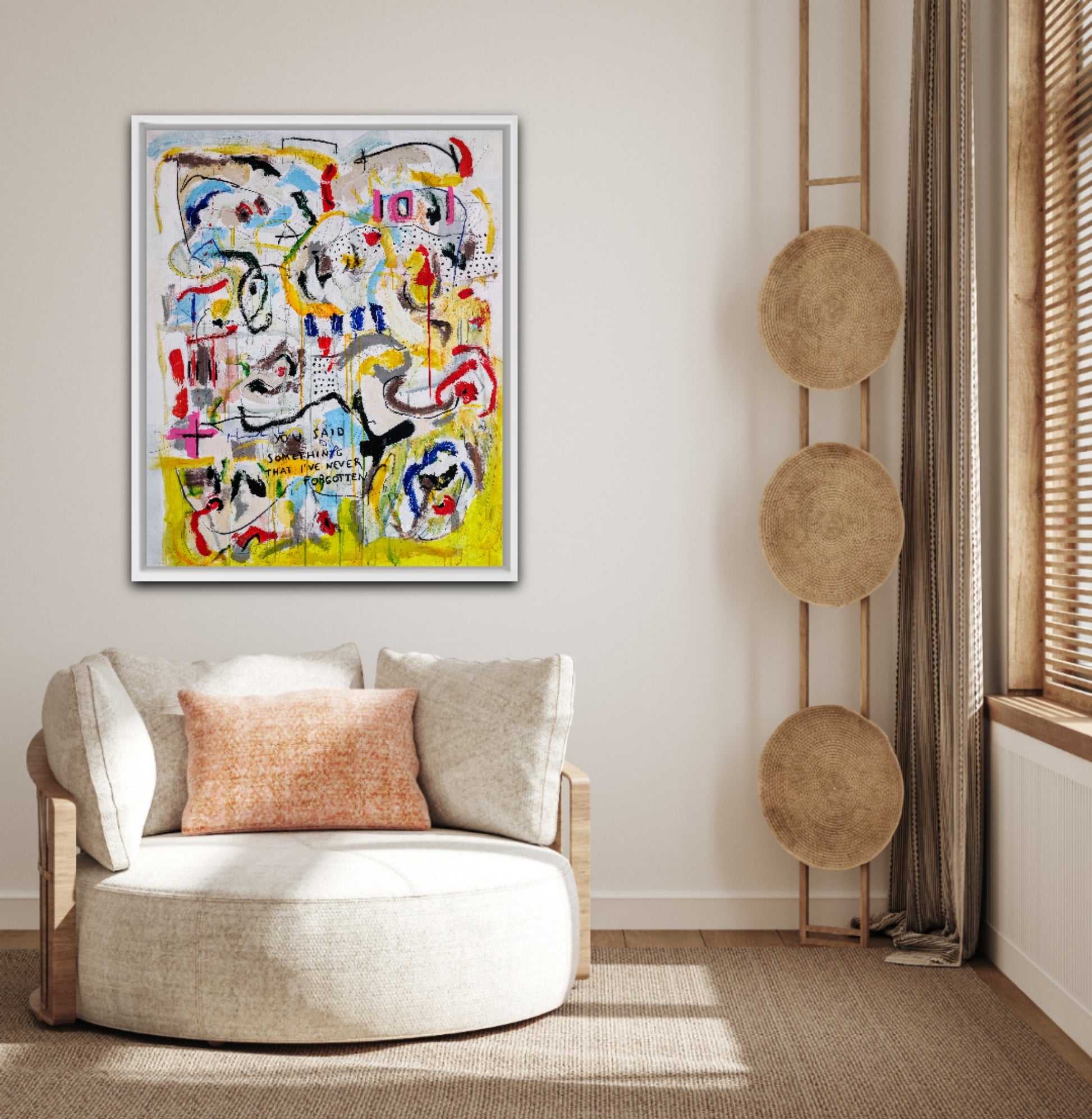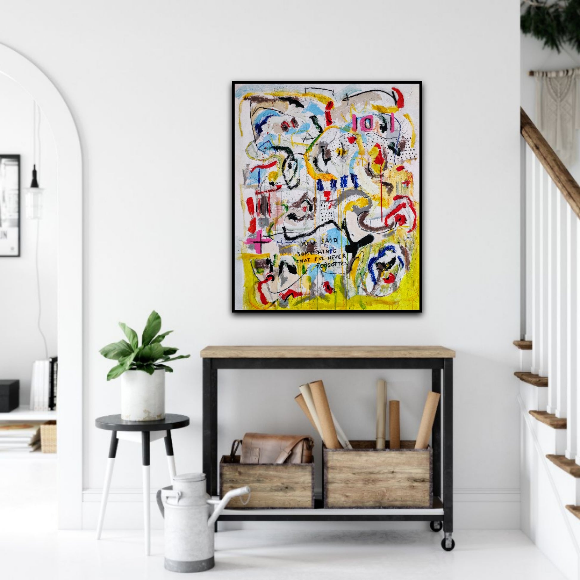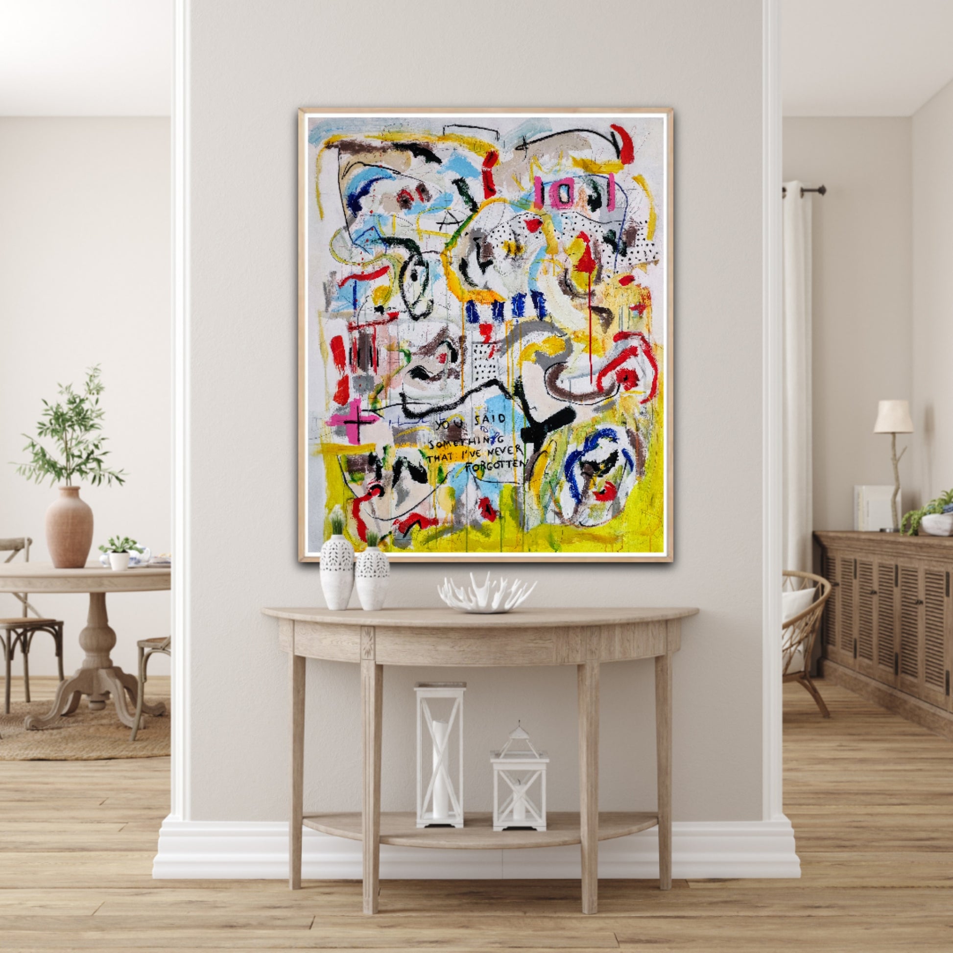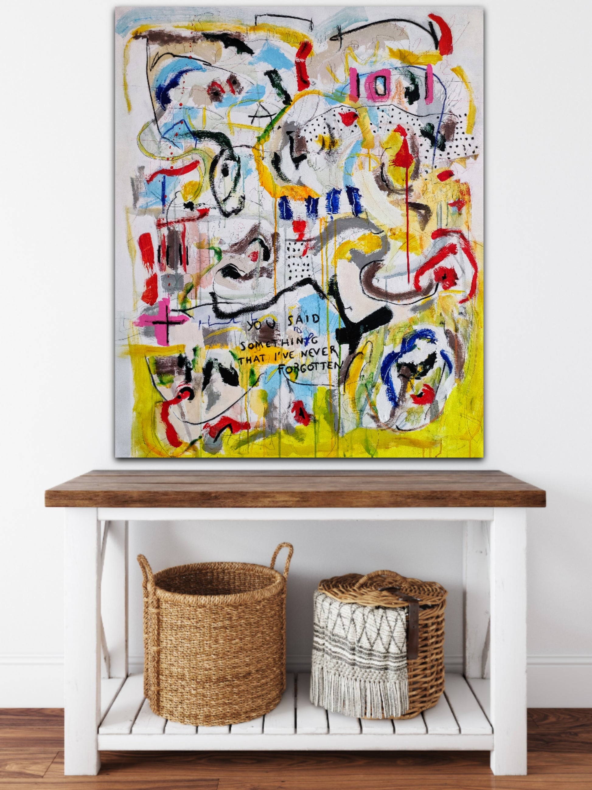 Cuadro trabajado desde la improvisación libre. Action painting con música de Arcade Fire y Belle and Sebastian.