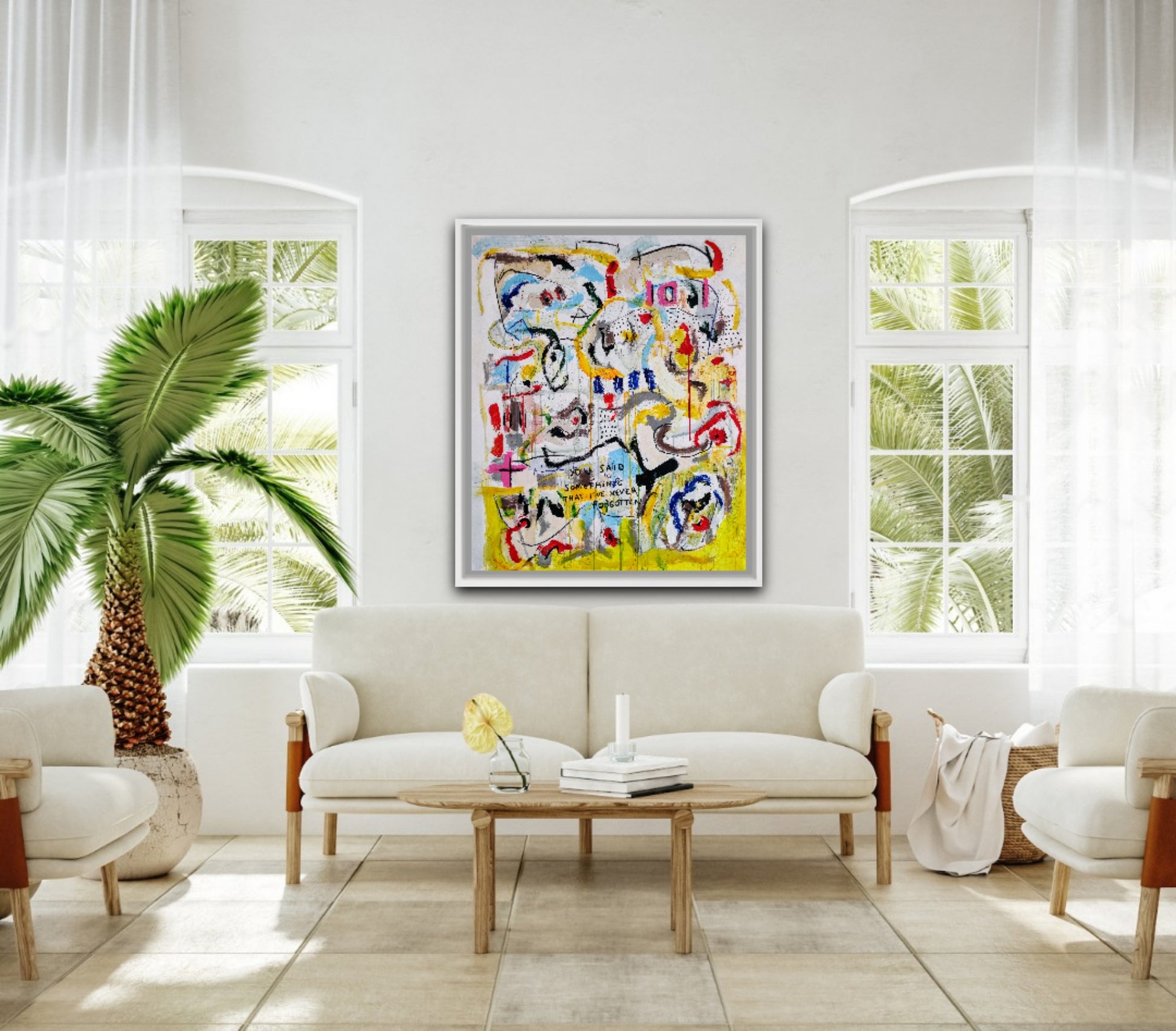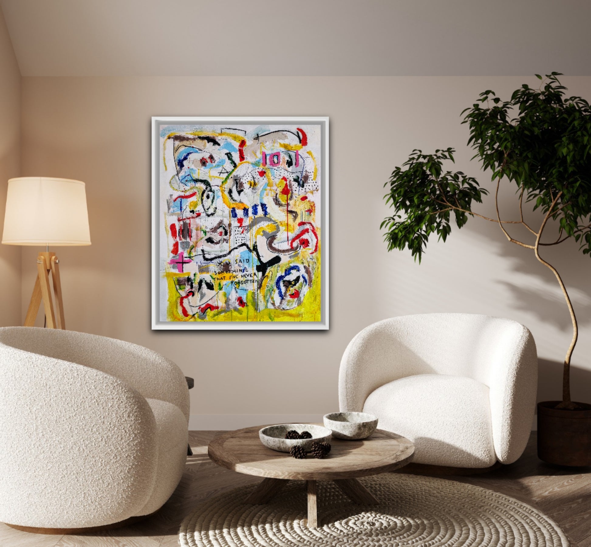 Técnica: acrílico, pigmentos, tinta china, ceras, carboncillo y lápiz.