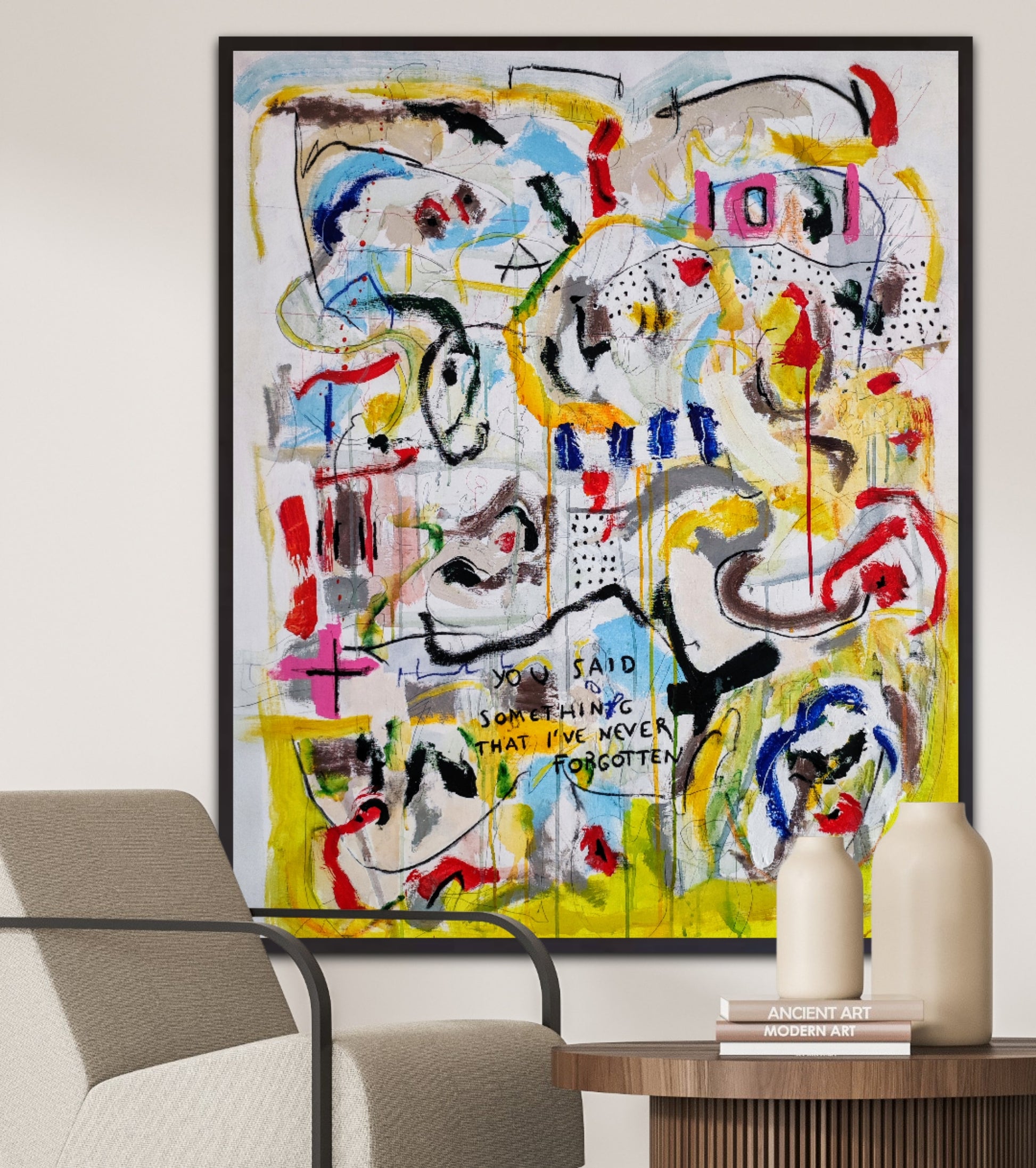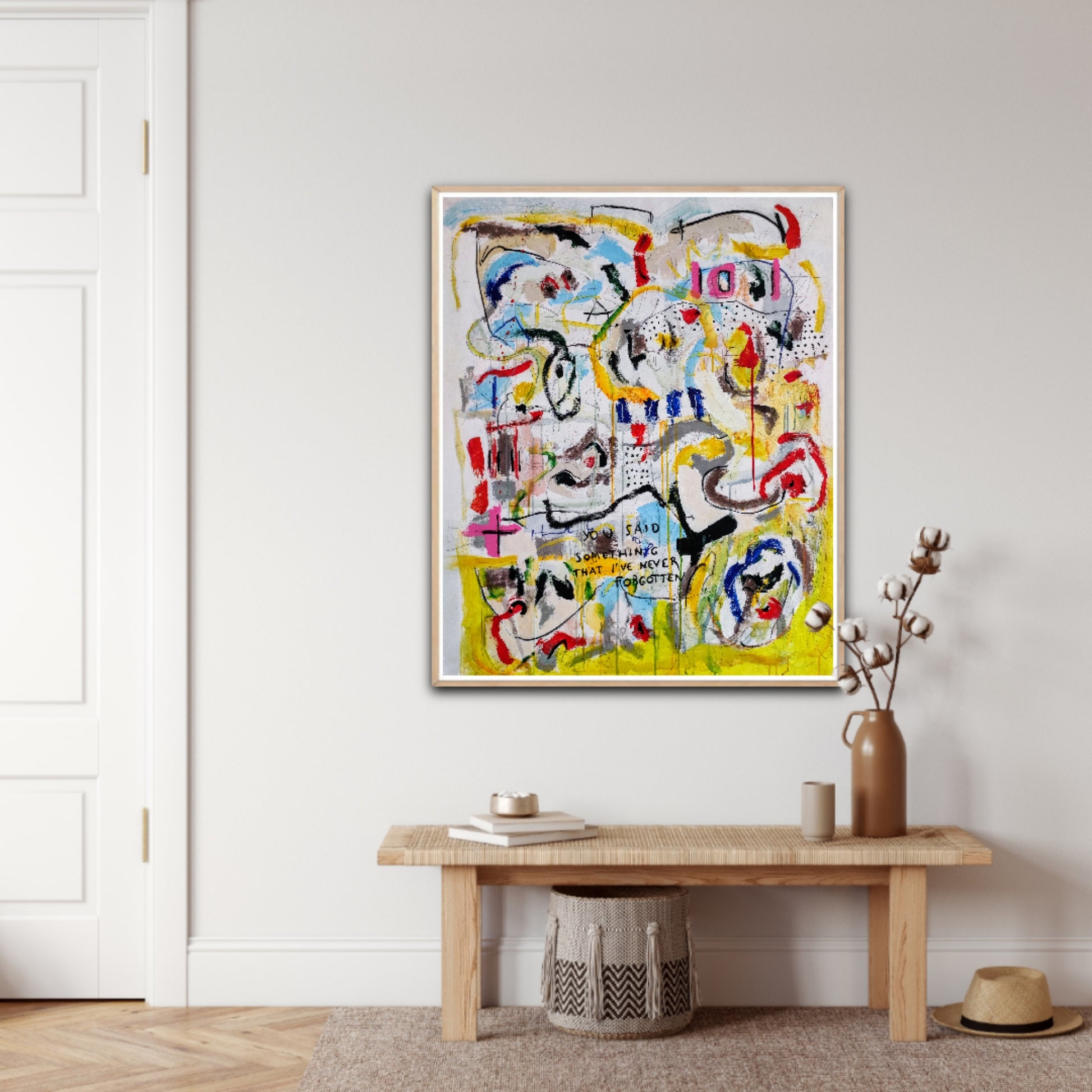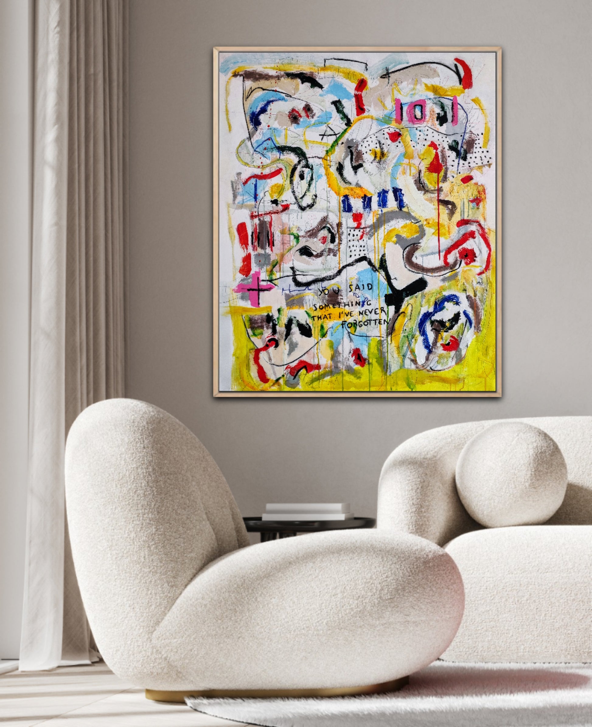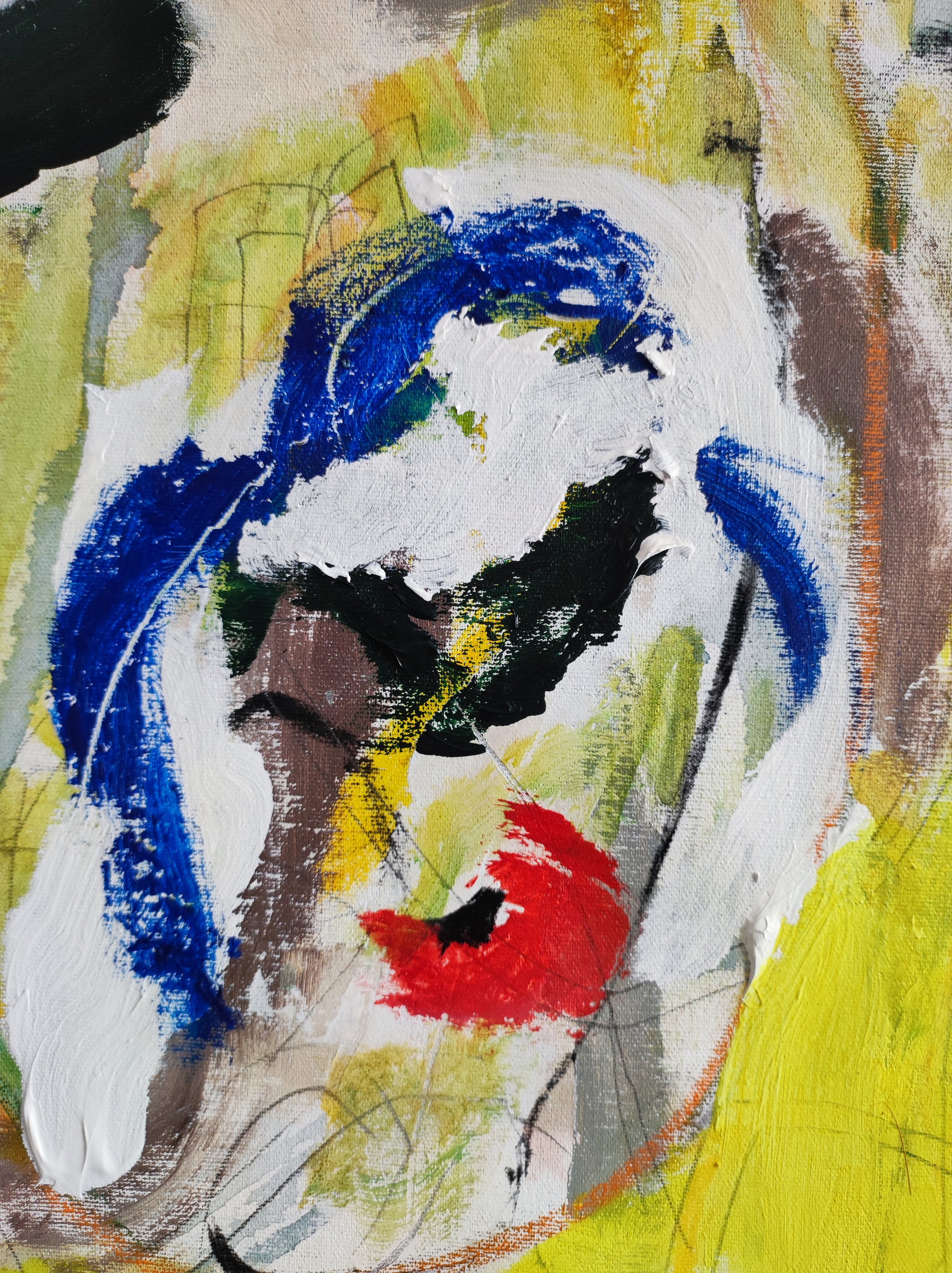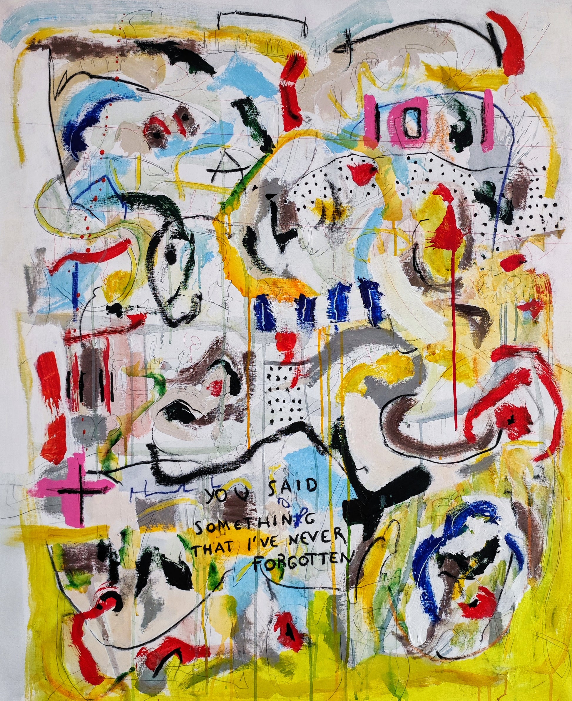 Pintura gestual, intuitiva, que deja que las cosas pasen y se apoya sobre lo que aparece. Aprovechando el accidente y aceptando las consecuencias.