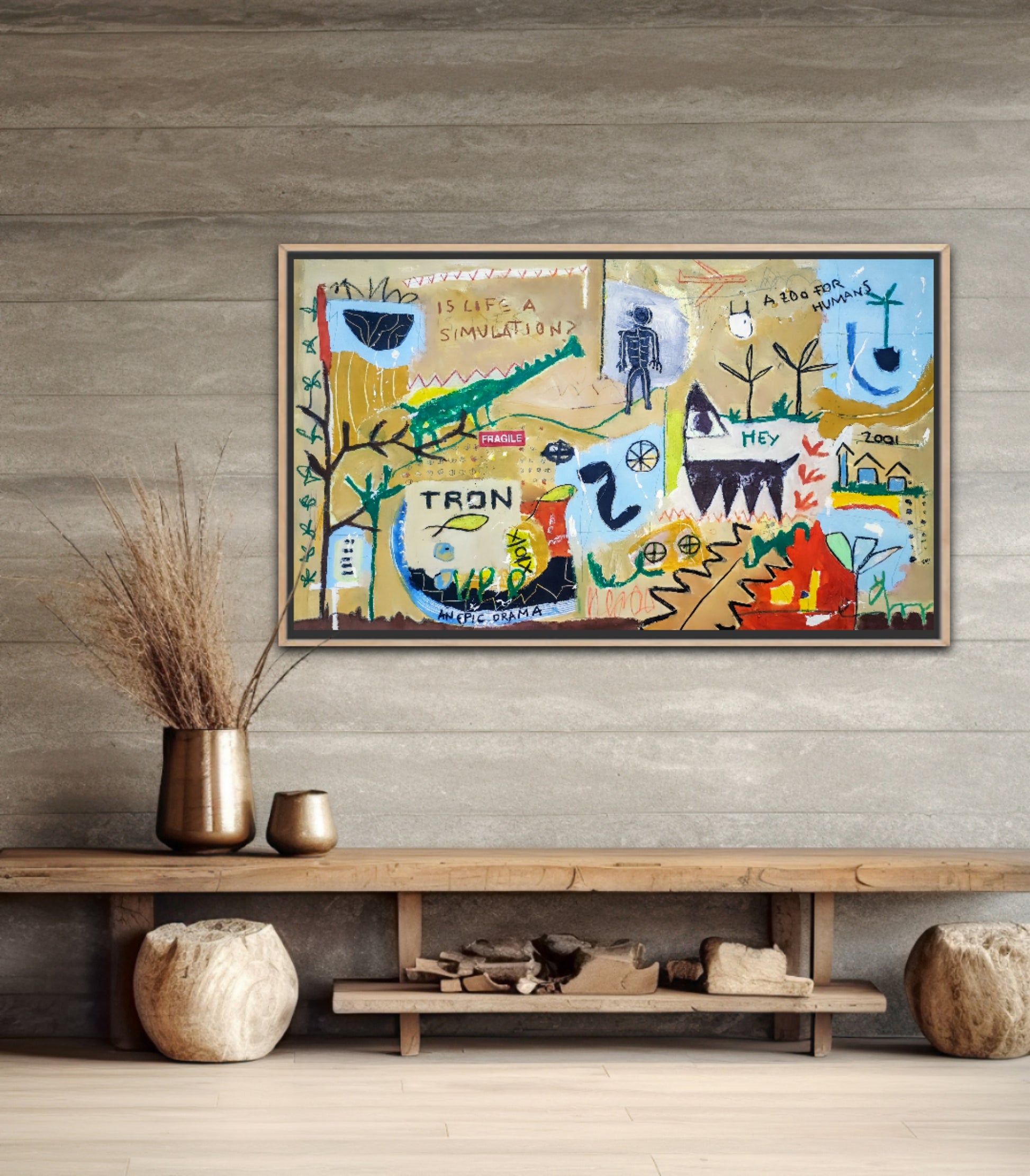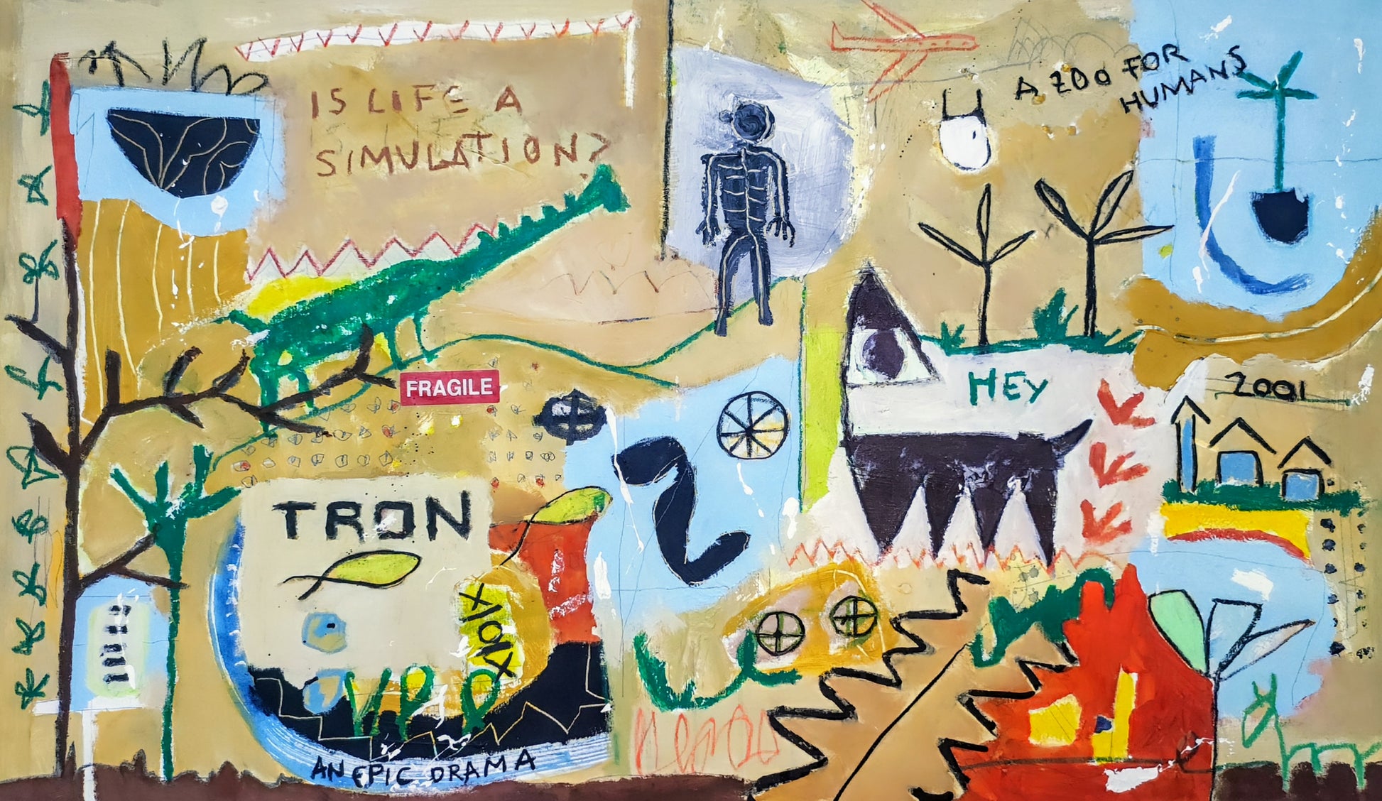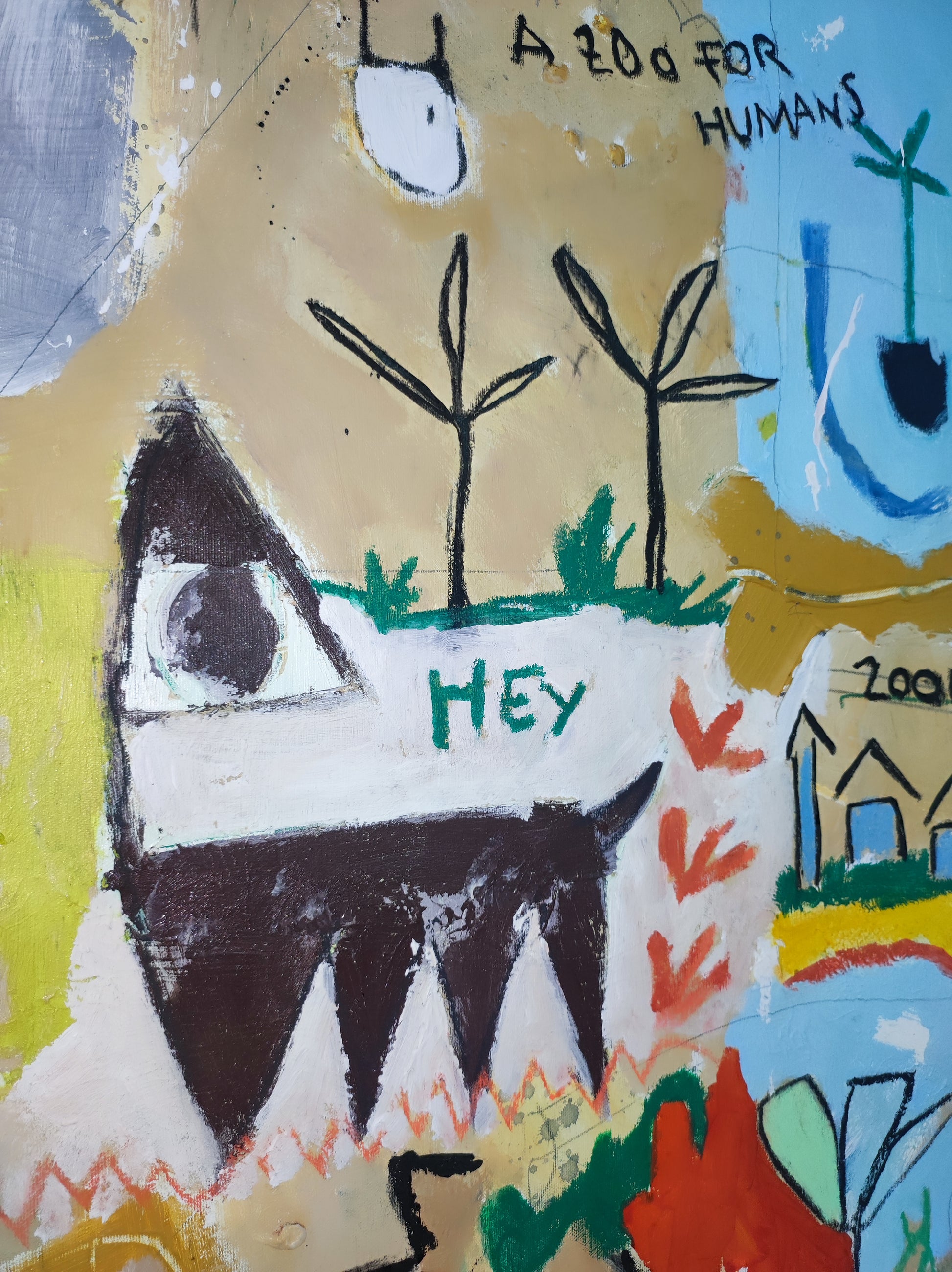 Paisaje, Naturaleza, seres de este mundo y de otros ... todo pasado por el filtro de un sueño y construido sobre un muro marcado por el grafiti, la suciedad y el paso del tiempo, en una gran ciudad.