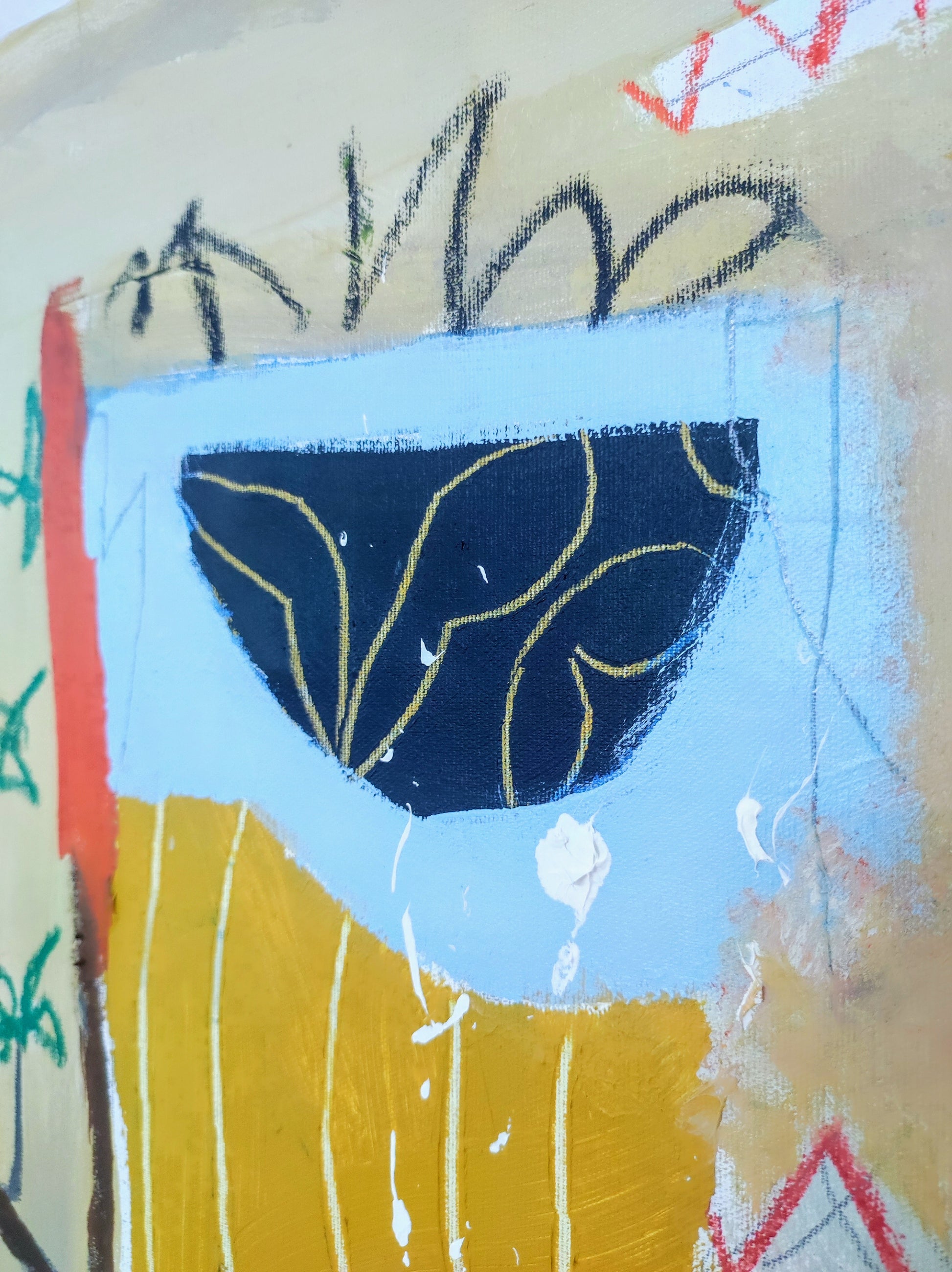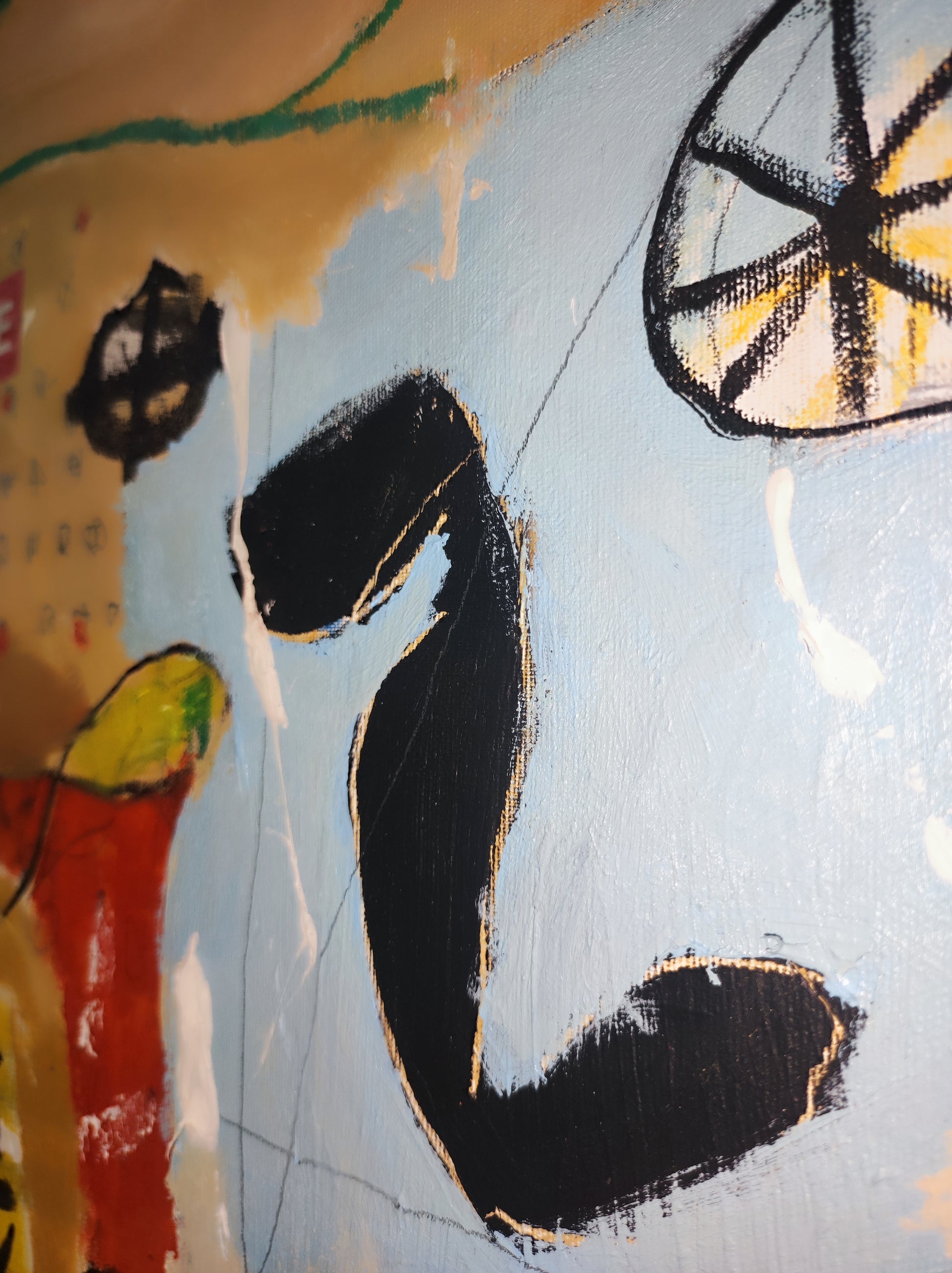 Técnica: acrílico, pigmentos, ceras, carboncillo, lápiz, pastel y tinta china.