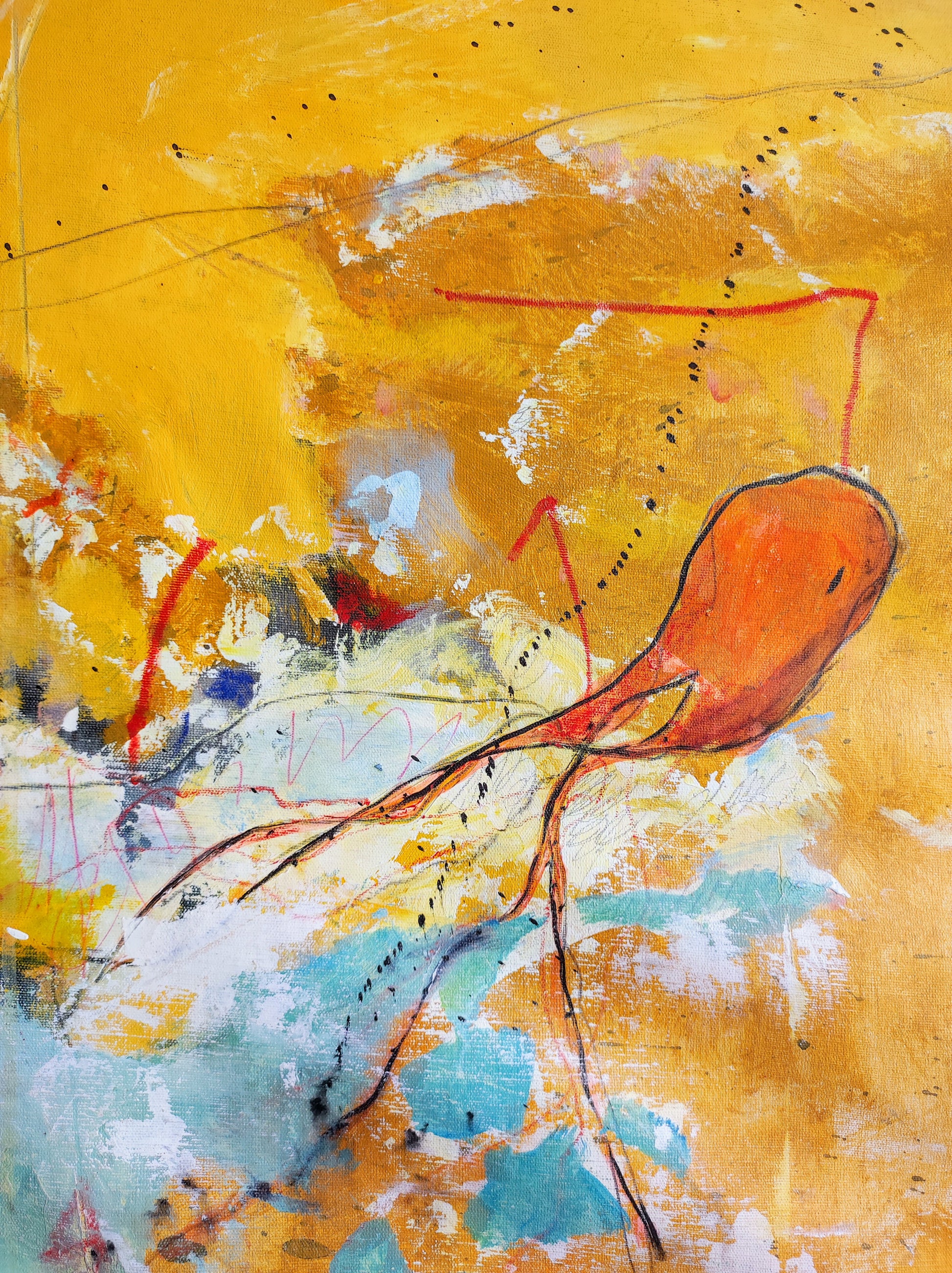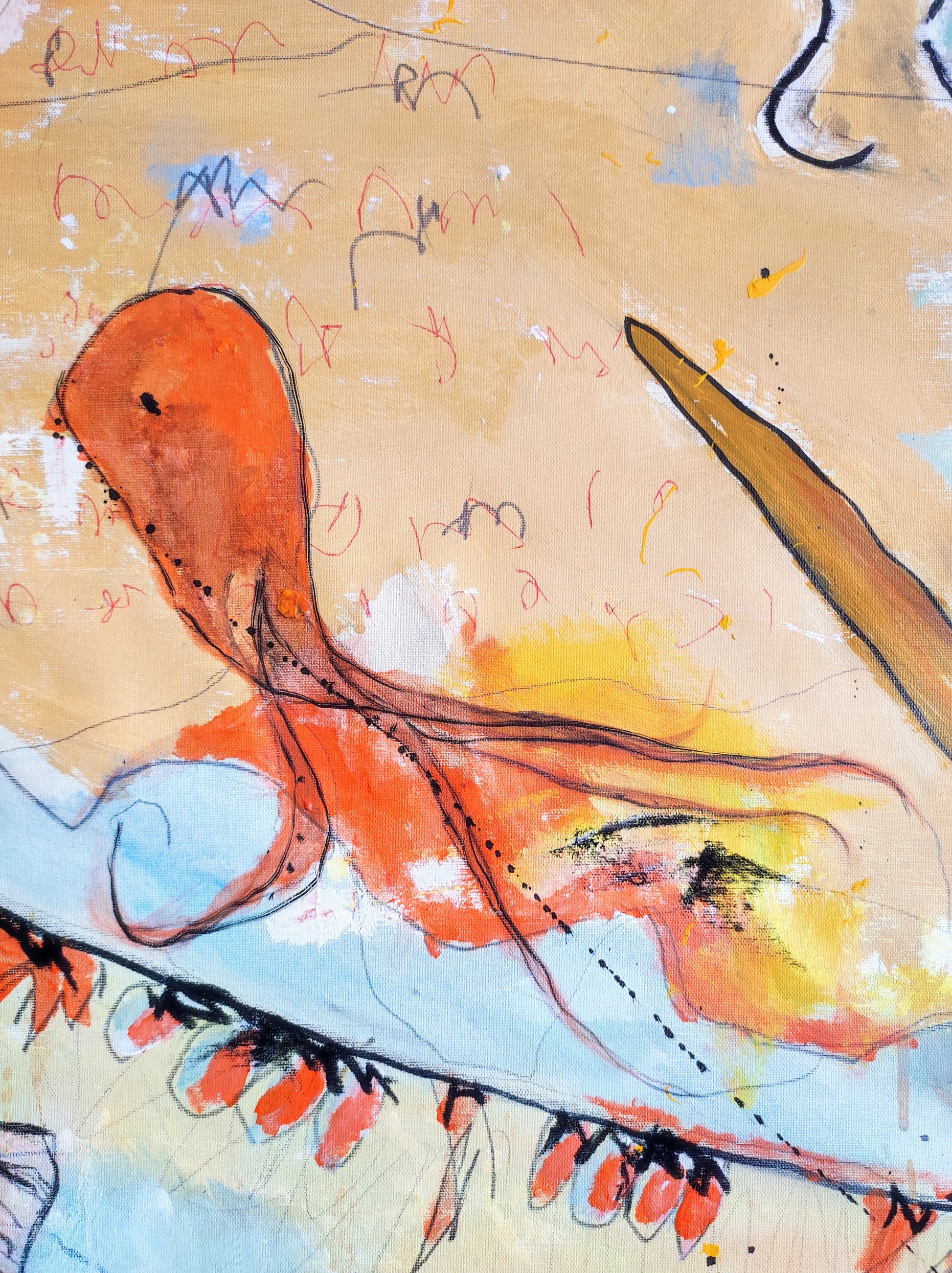 Cuadro trabajado desde la improvisación libre. Action painting con música de Franco Battiato.