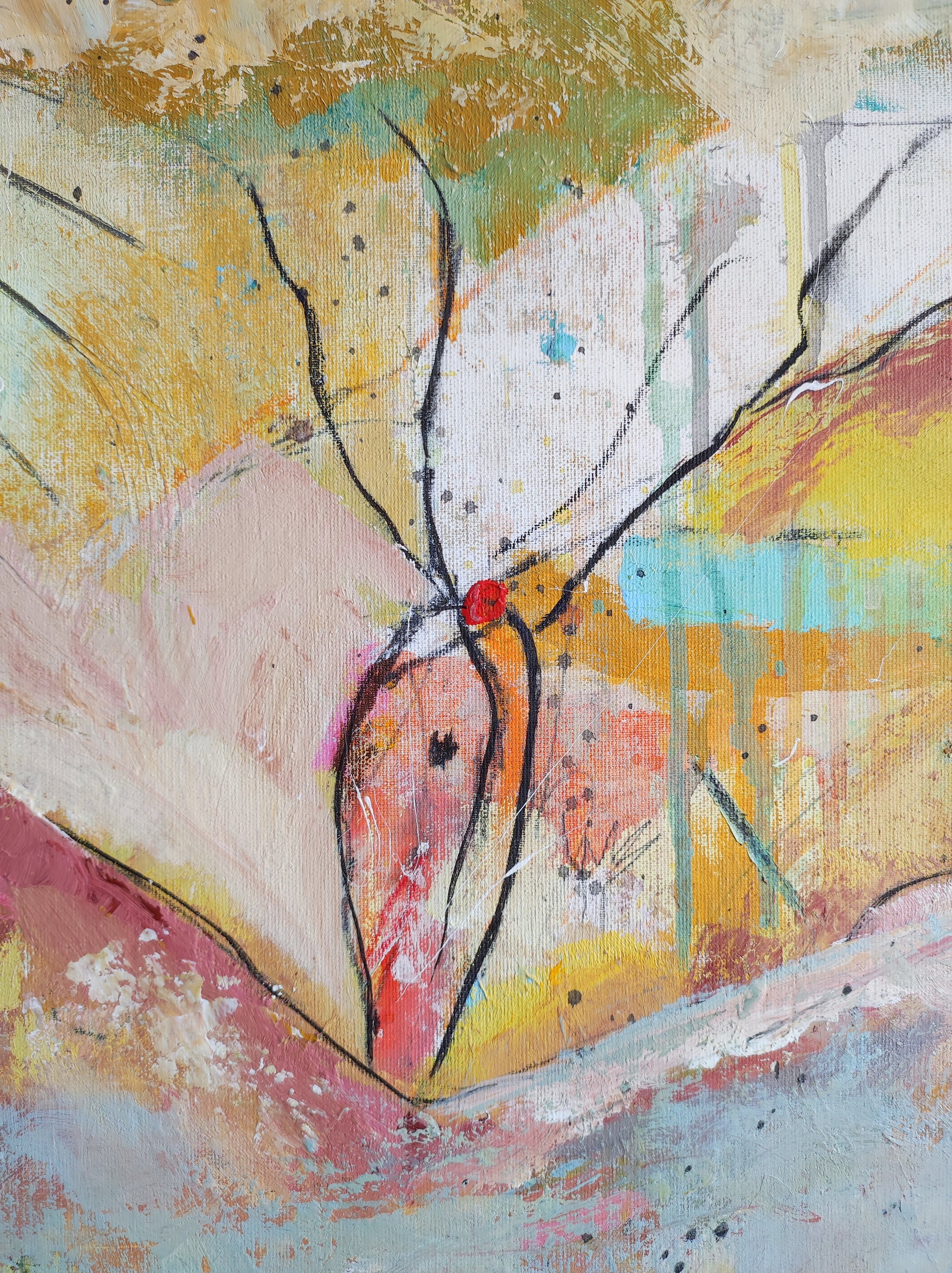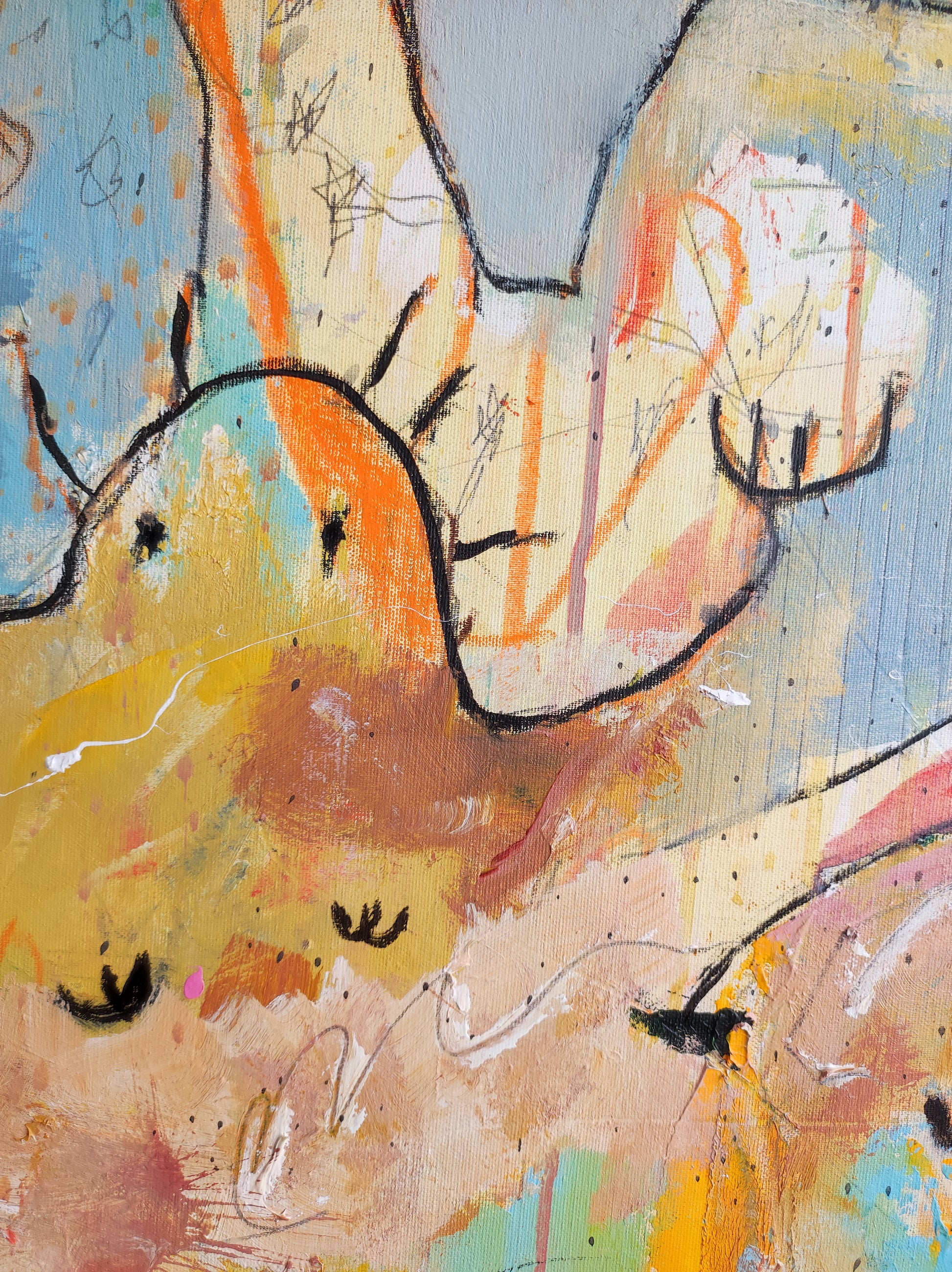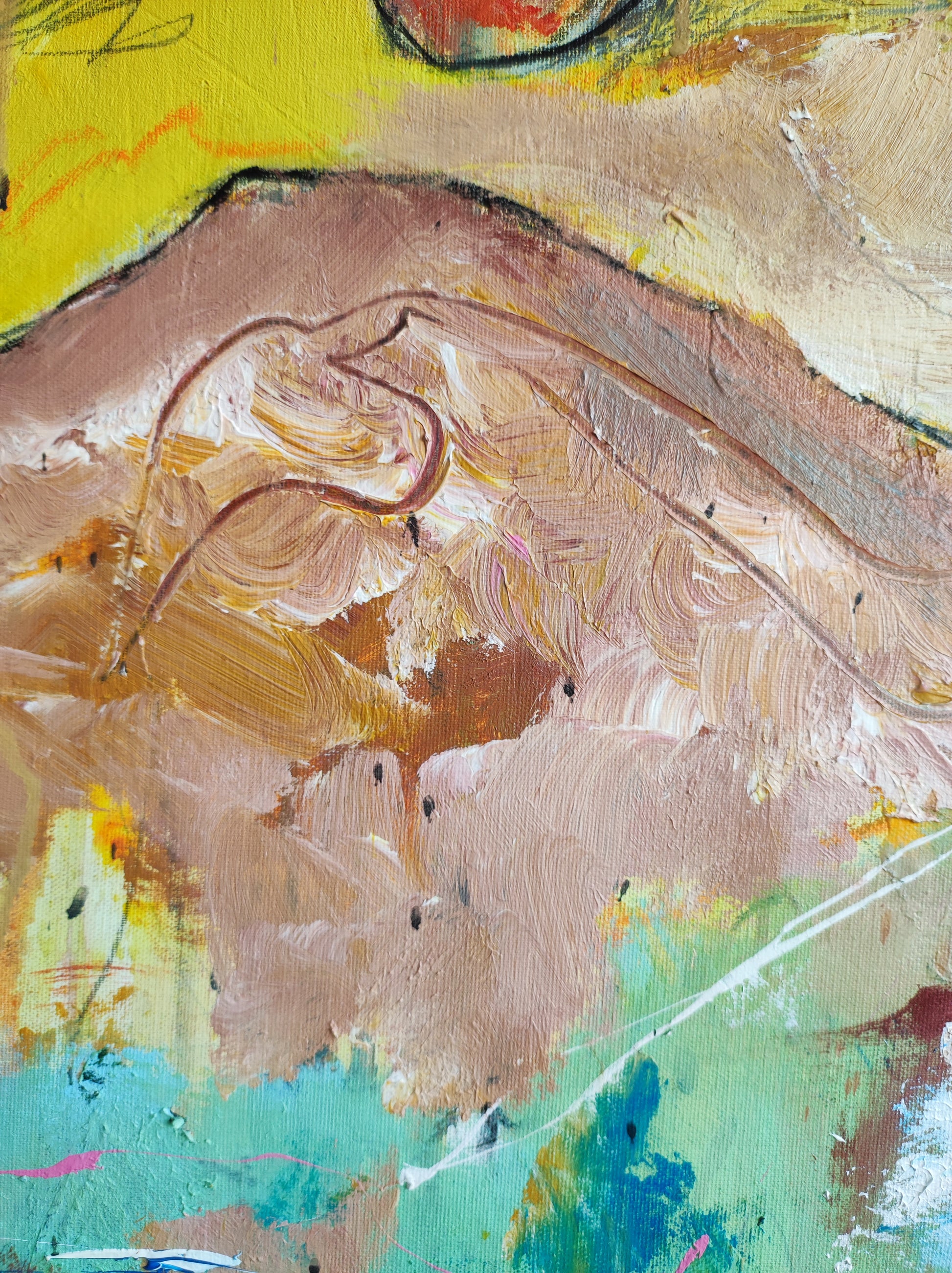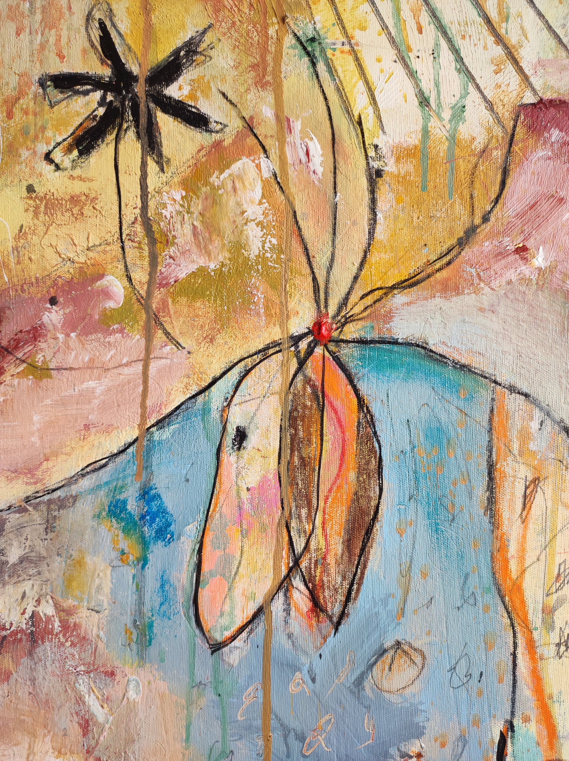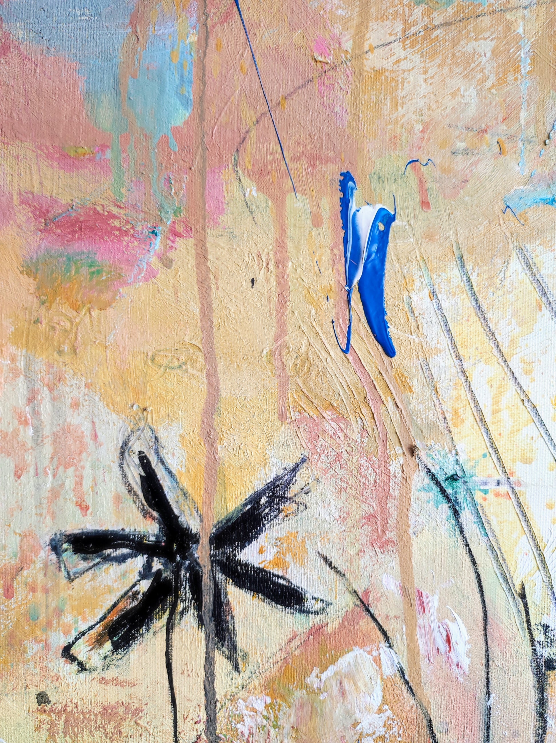 Técnica: acrílico, pigmentos, gesso, tinta china, ceras, carboncillo y lápiz.