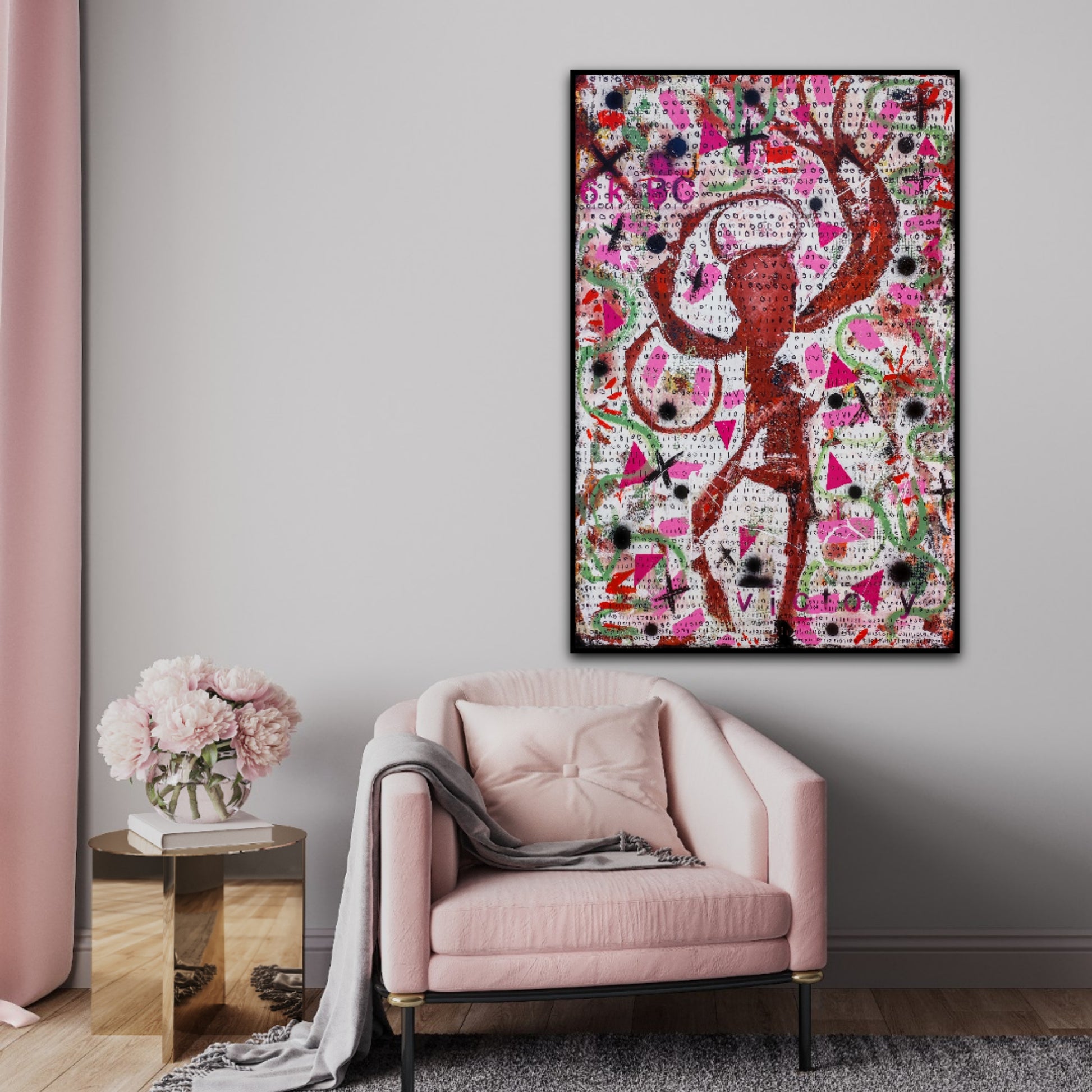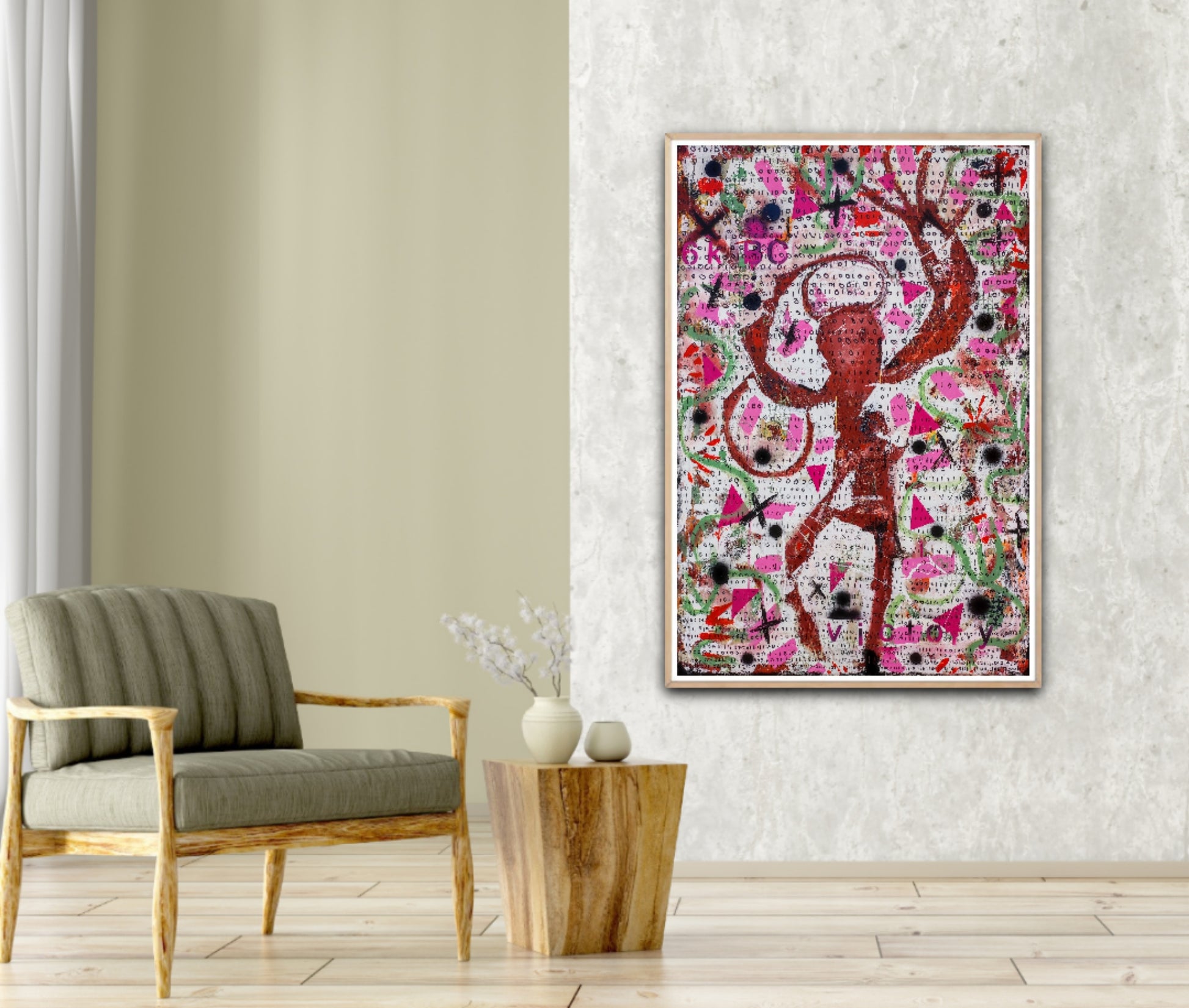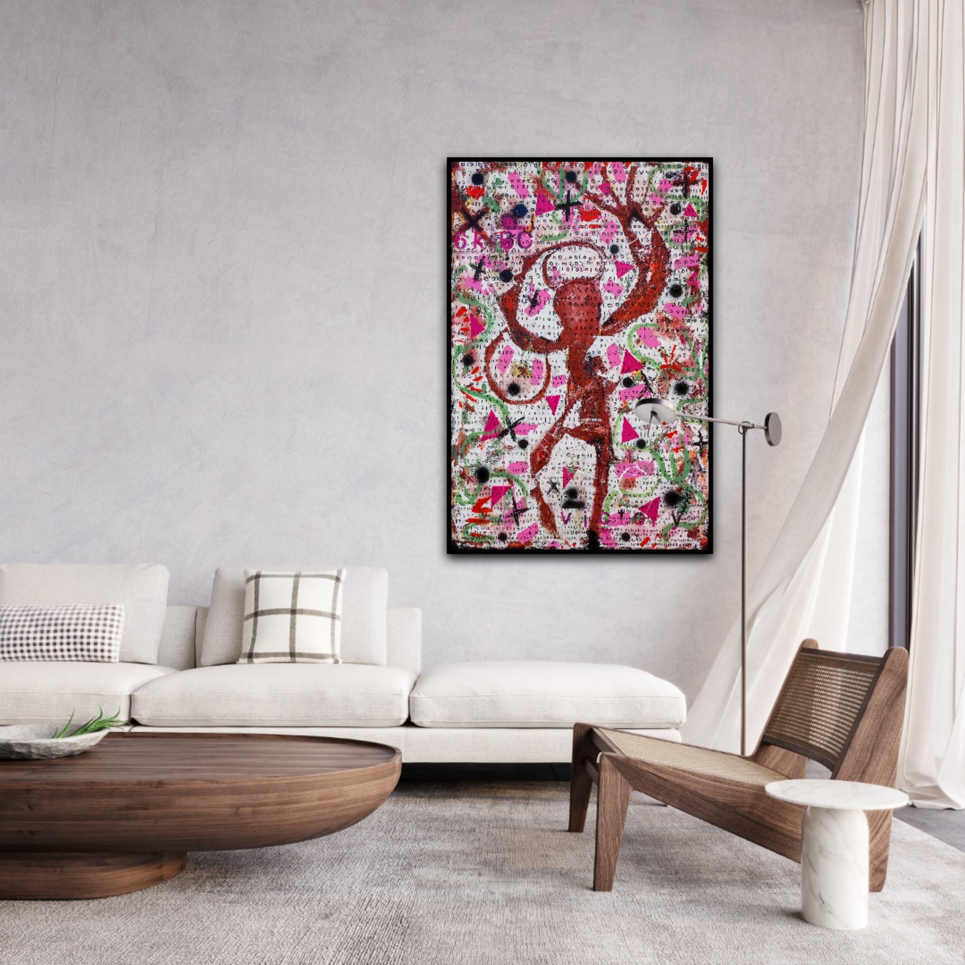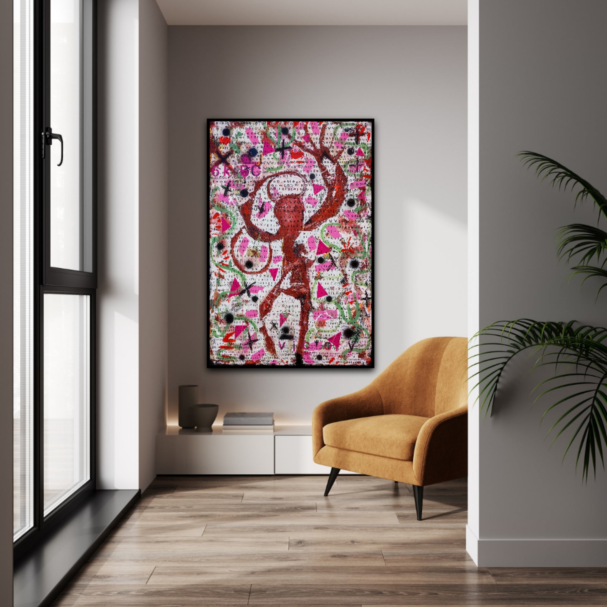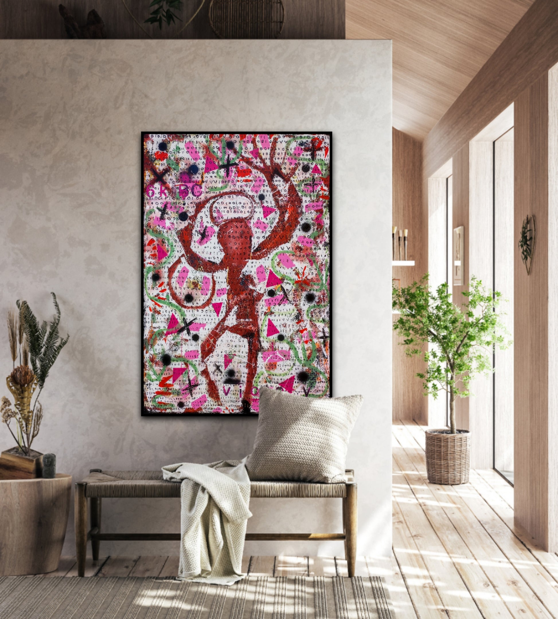 Cuadro inspirado en una pintura rupestre macroesquemática encontrada en Pla de Petracos (Castell de Castells- Alicante).
