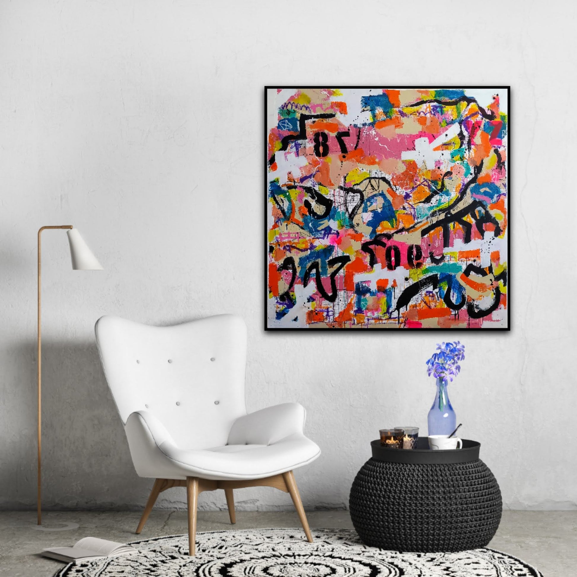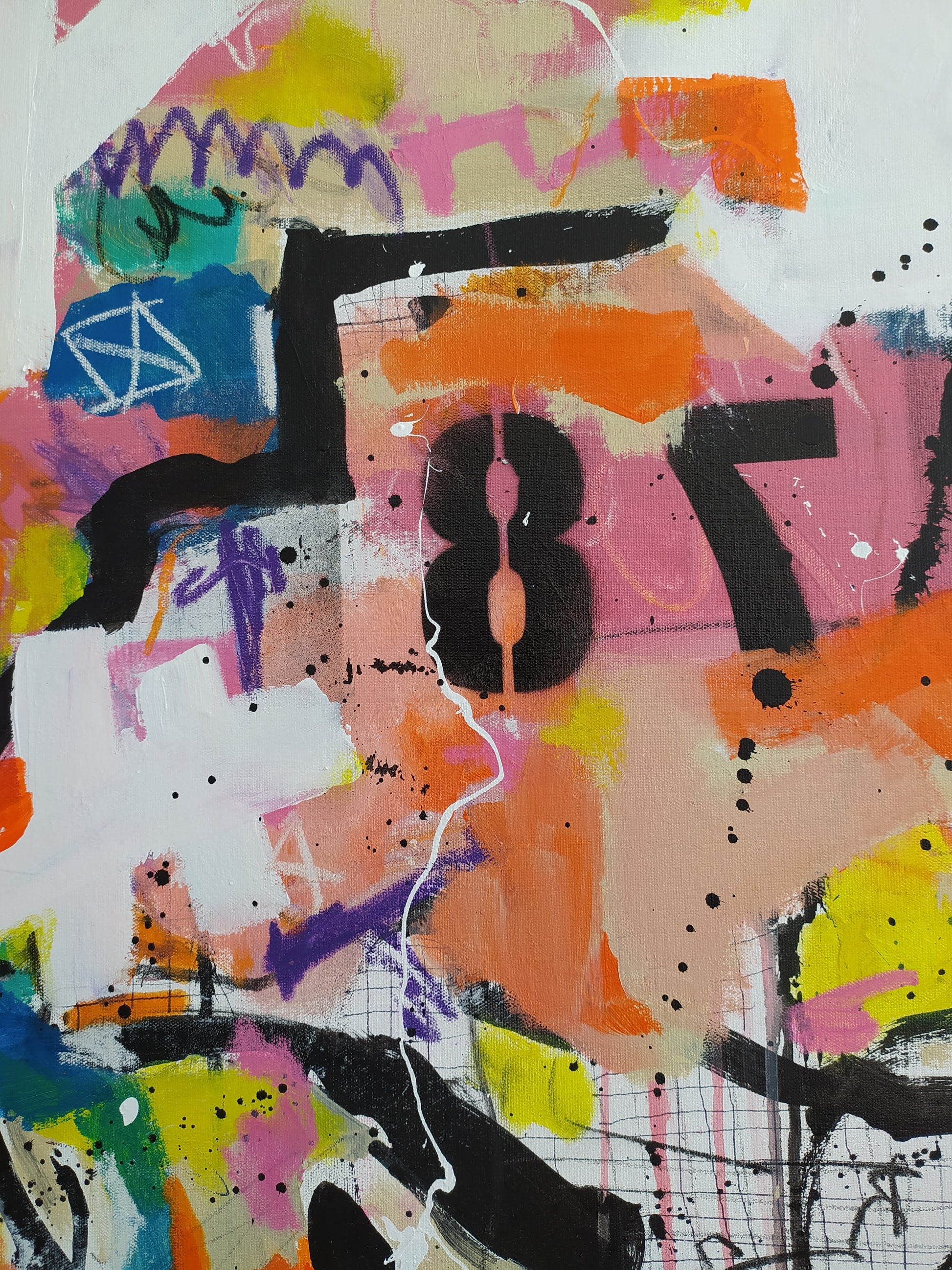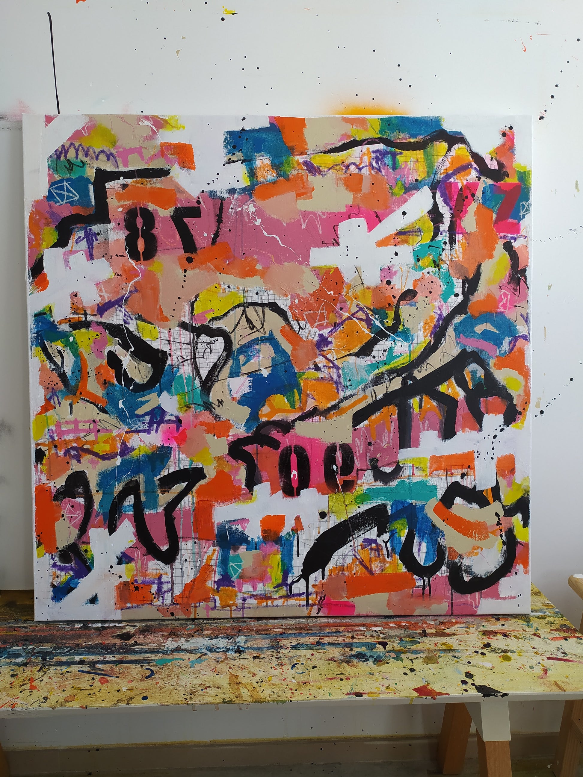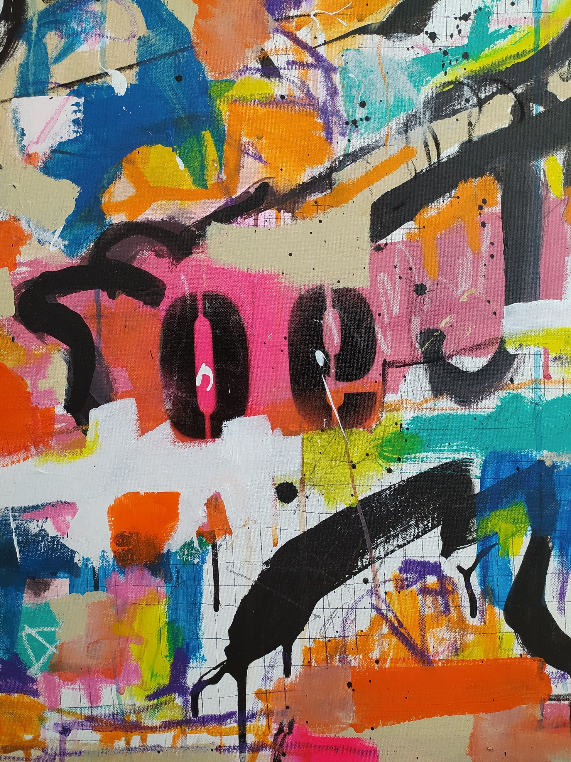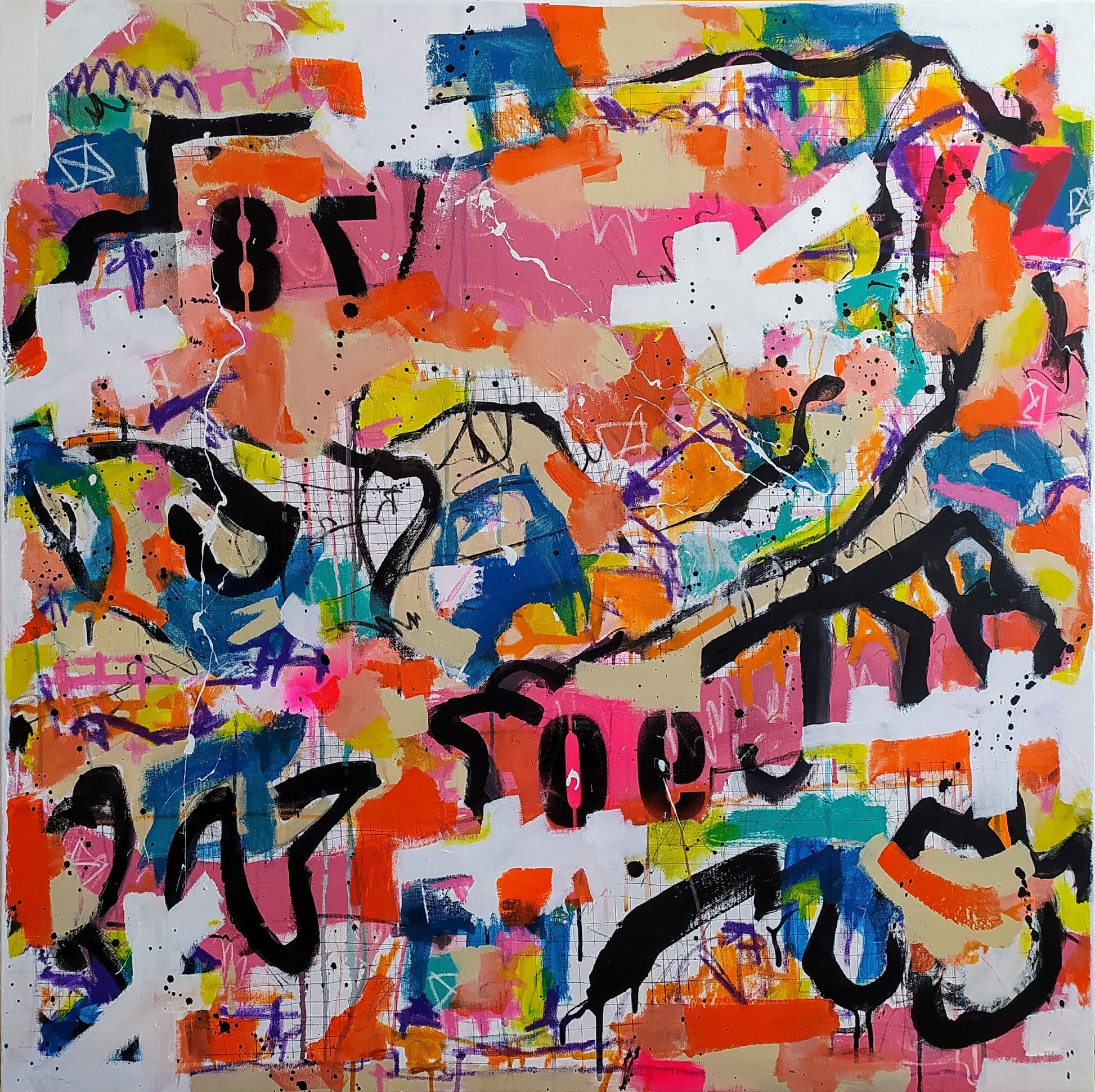 Juego de colores, trazos, números, dripping... generan una obra urbana, que denota el movimiento de la ciudad, sus carteles semiarrancados, paredes pintadas, tráfico, personas, comunicación efímera...