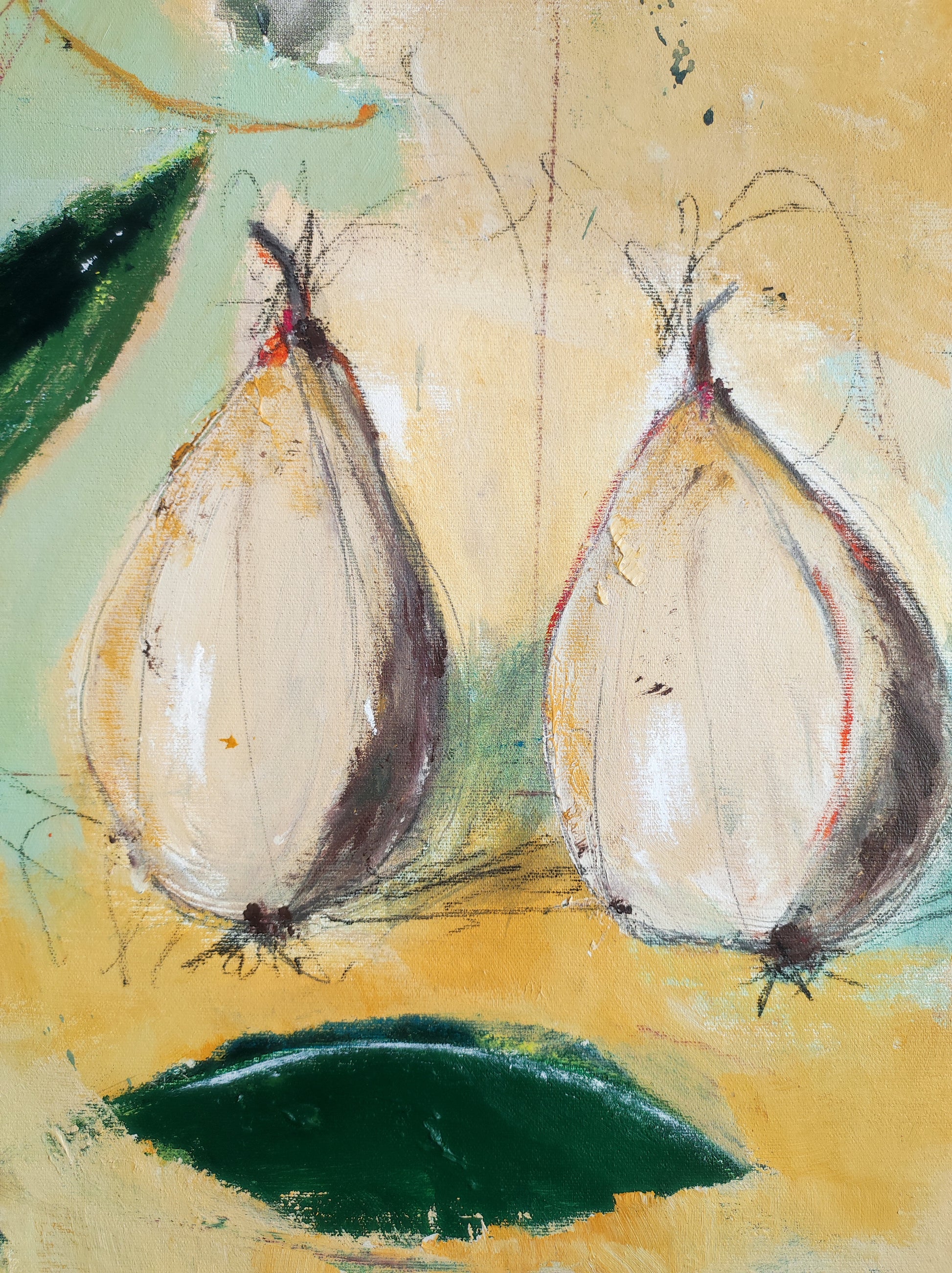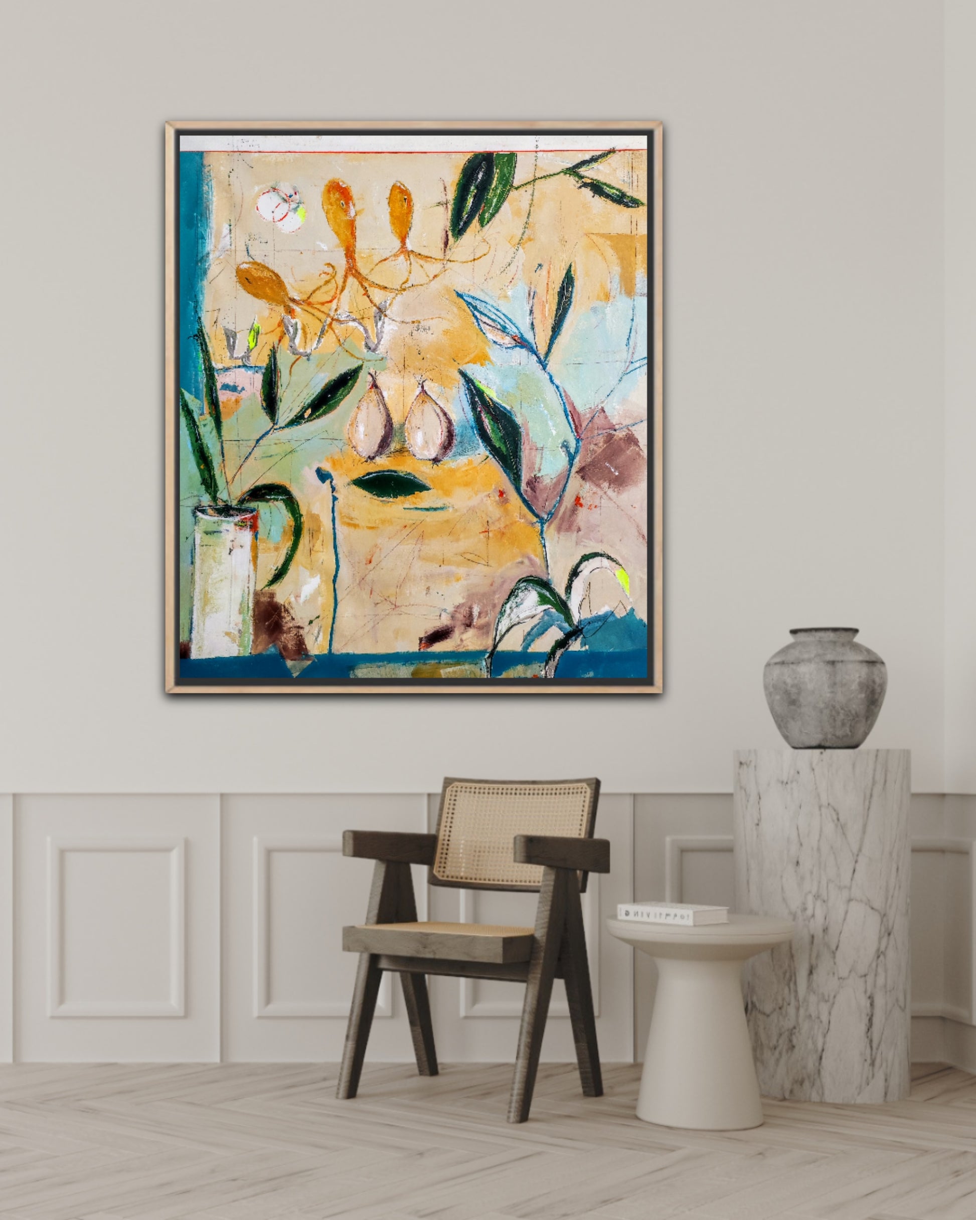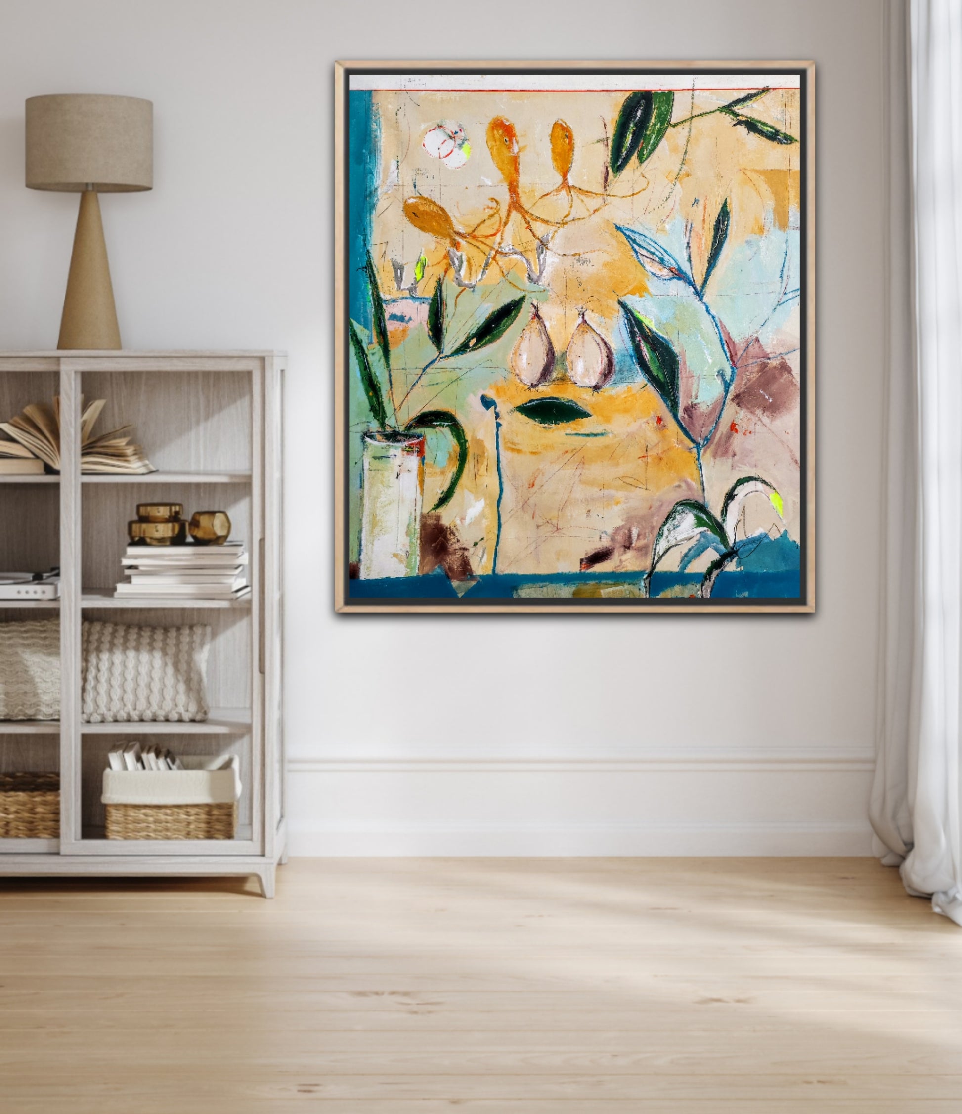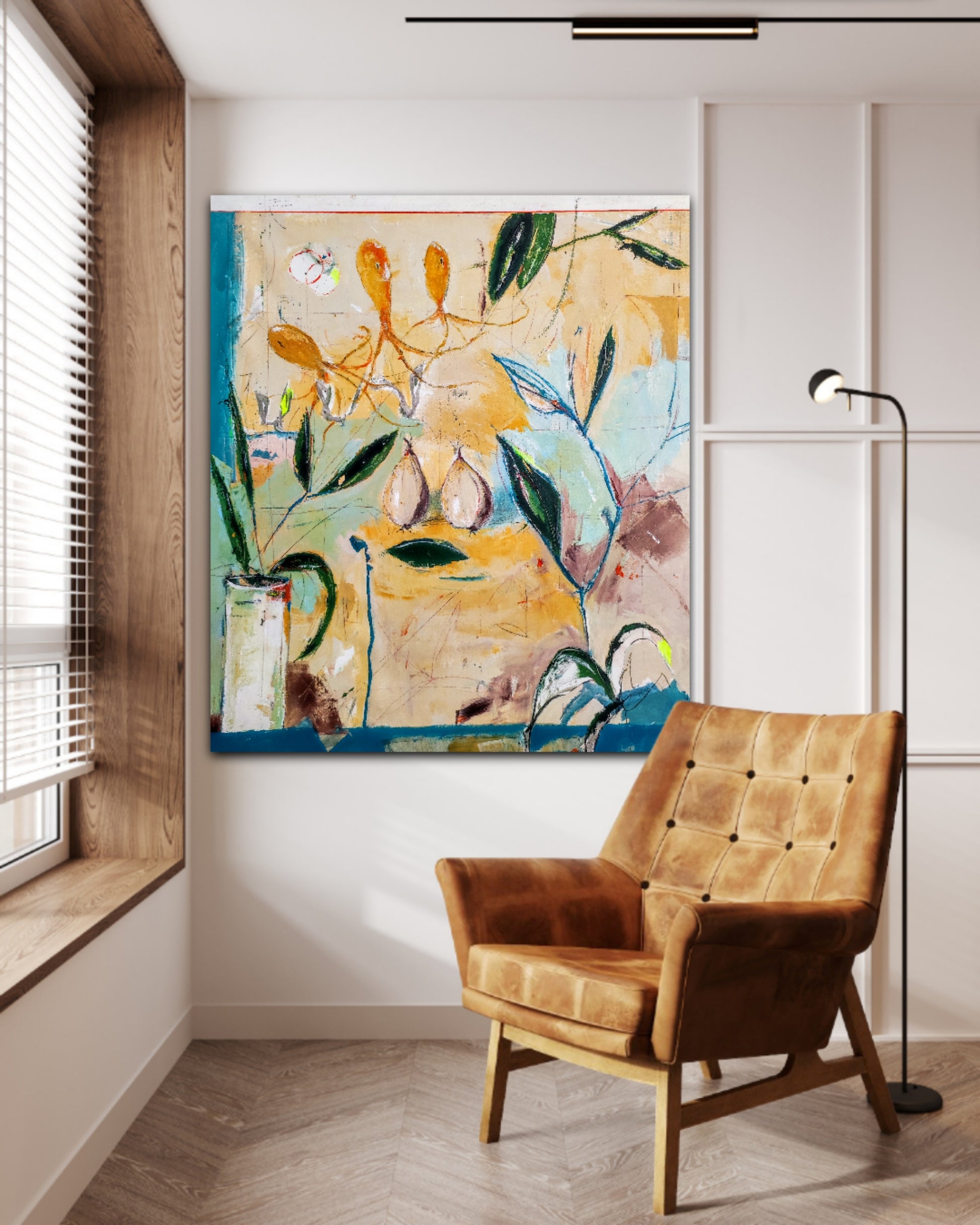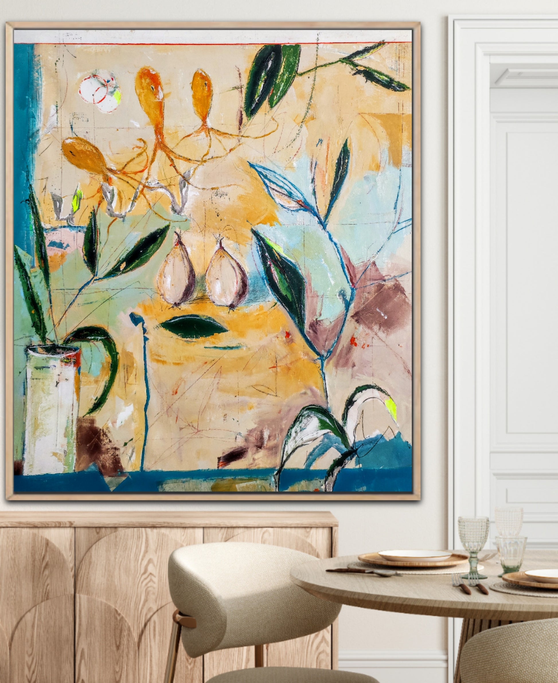 Pintura gestual, intuitiva, que deja que las cosas pasen y se apoya sobre lo que aparece. Aprovechando el accidente y aceptando las consecuencias.
