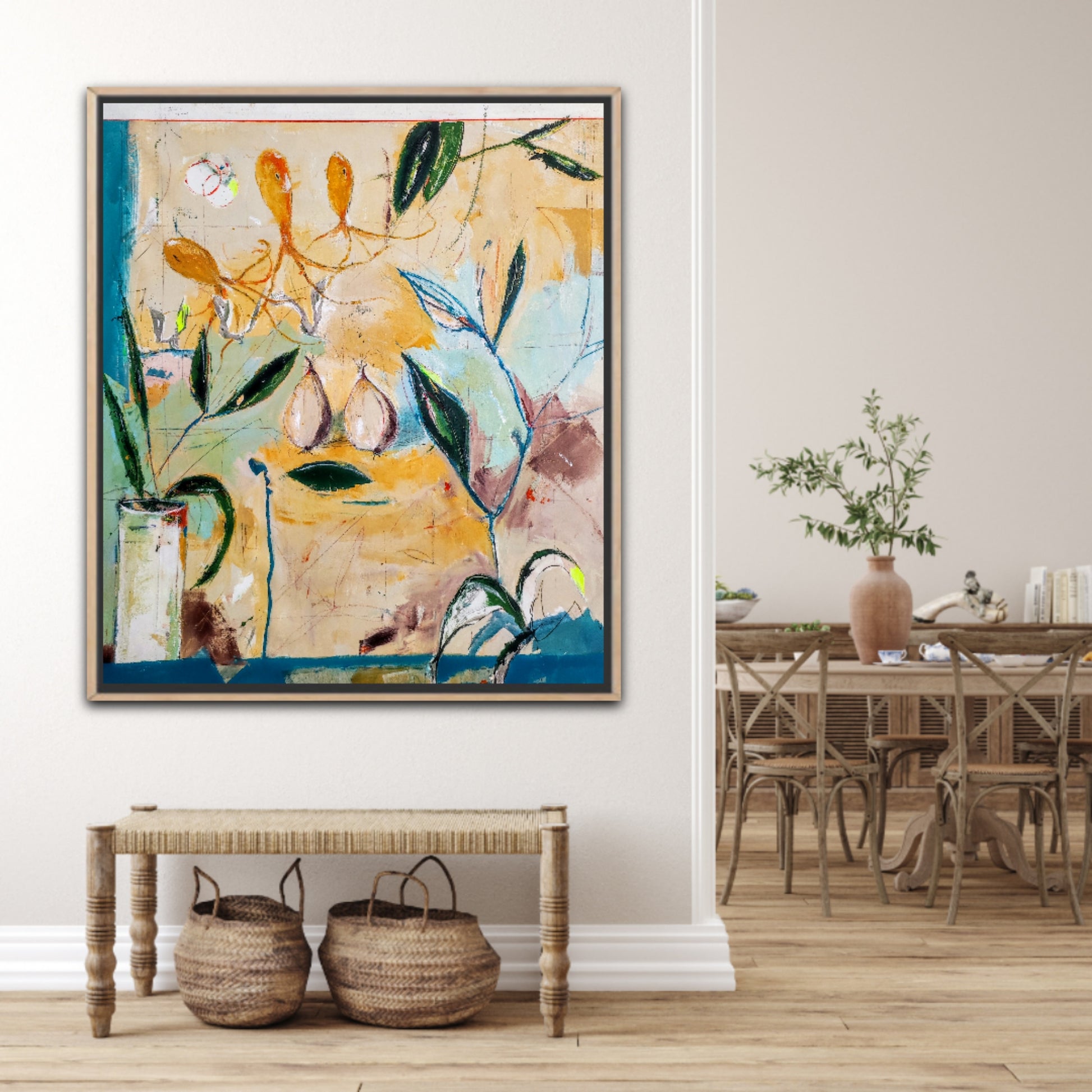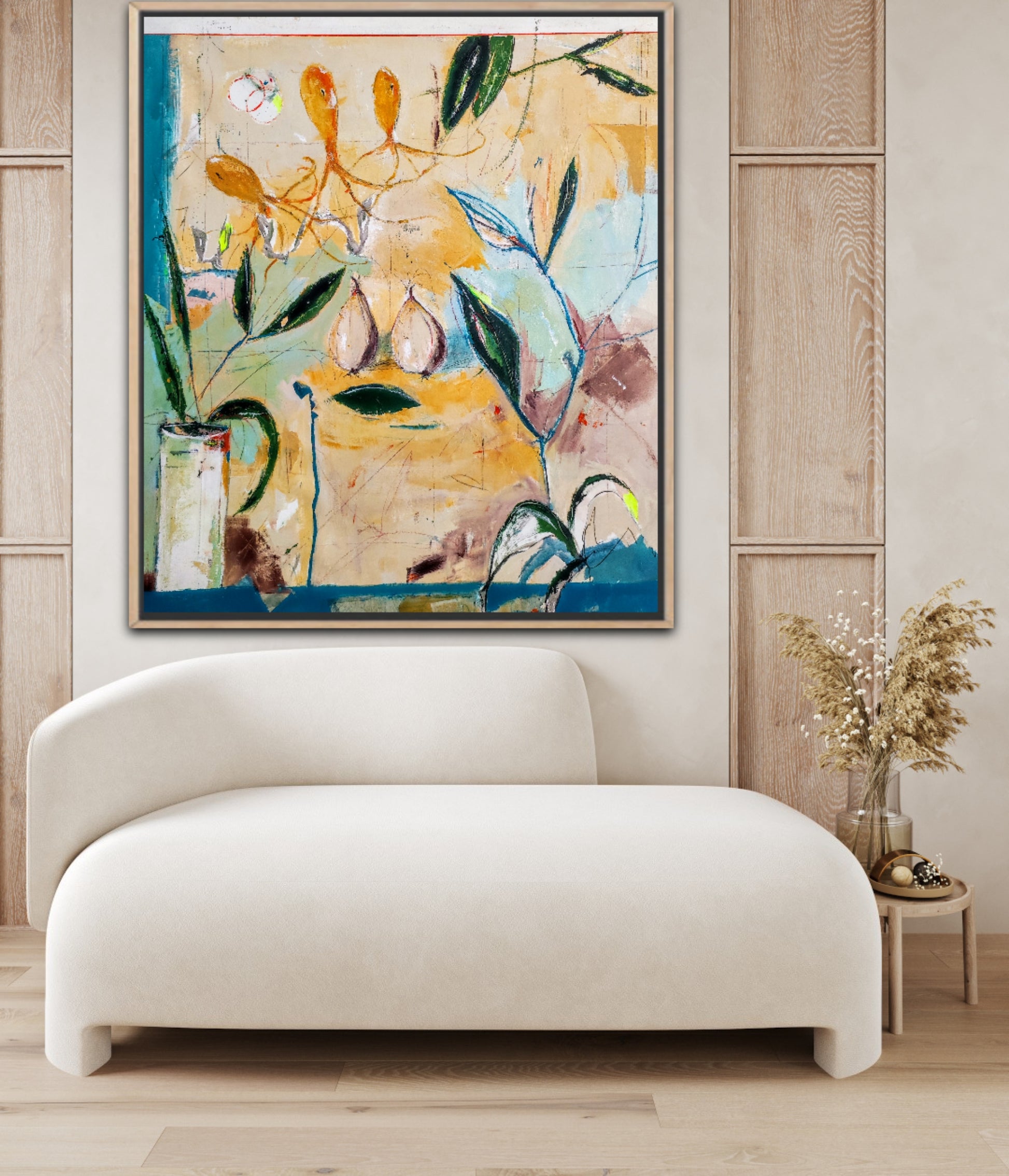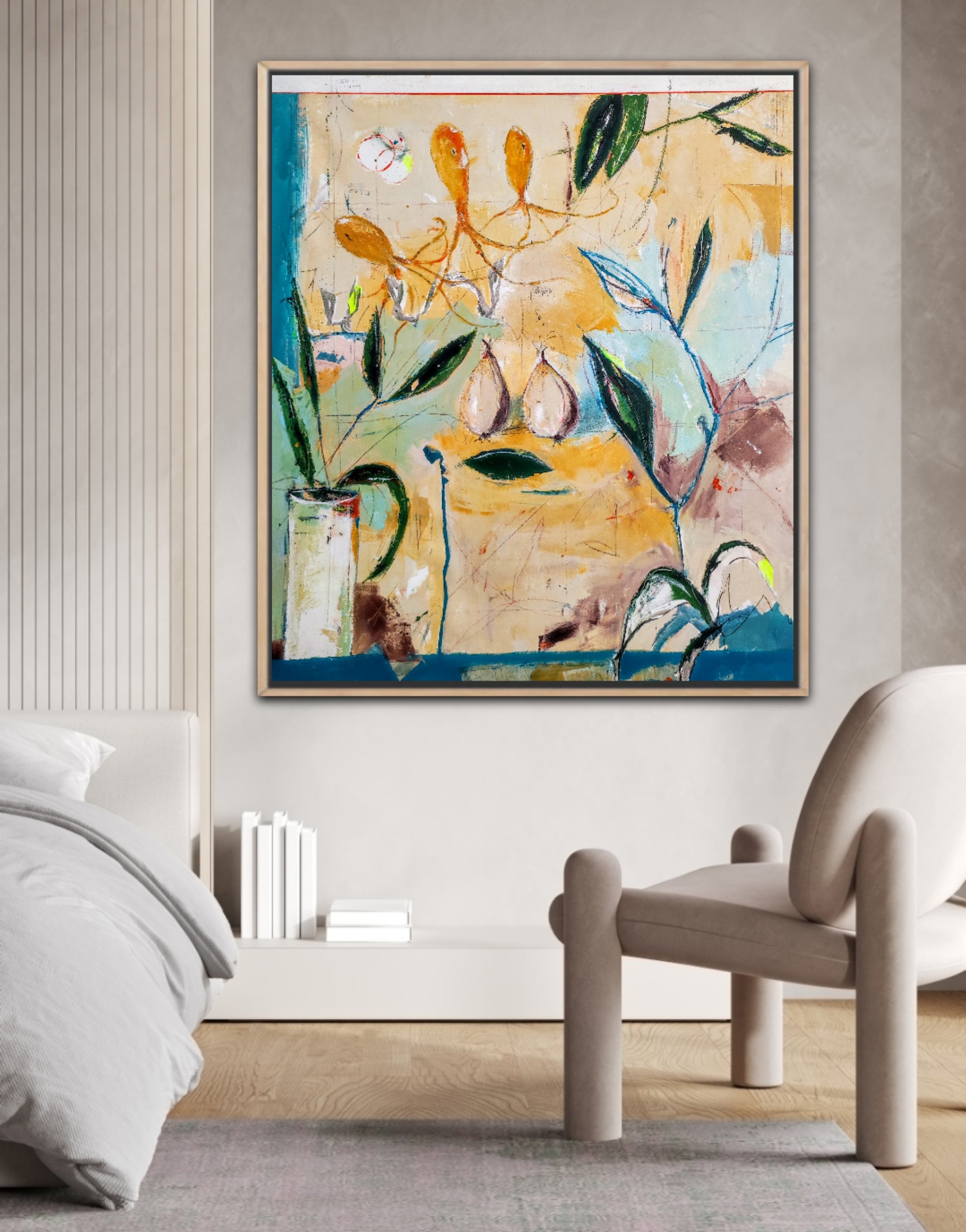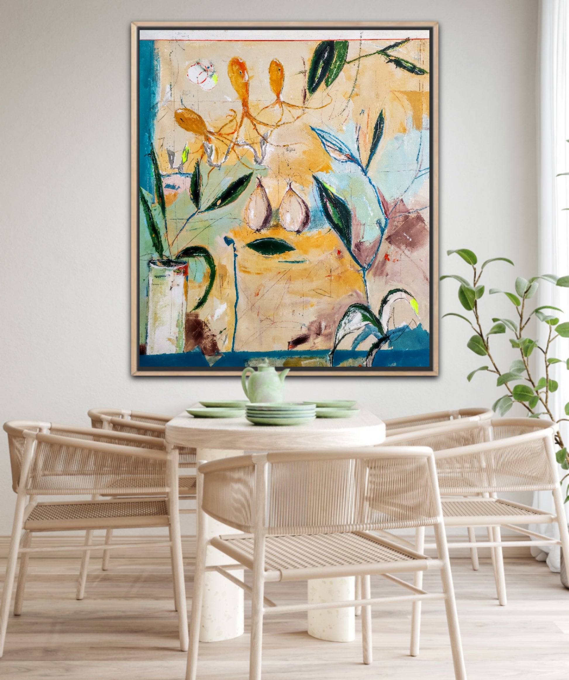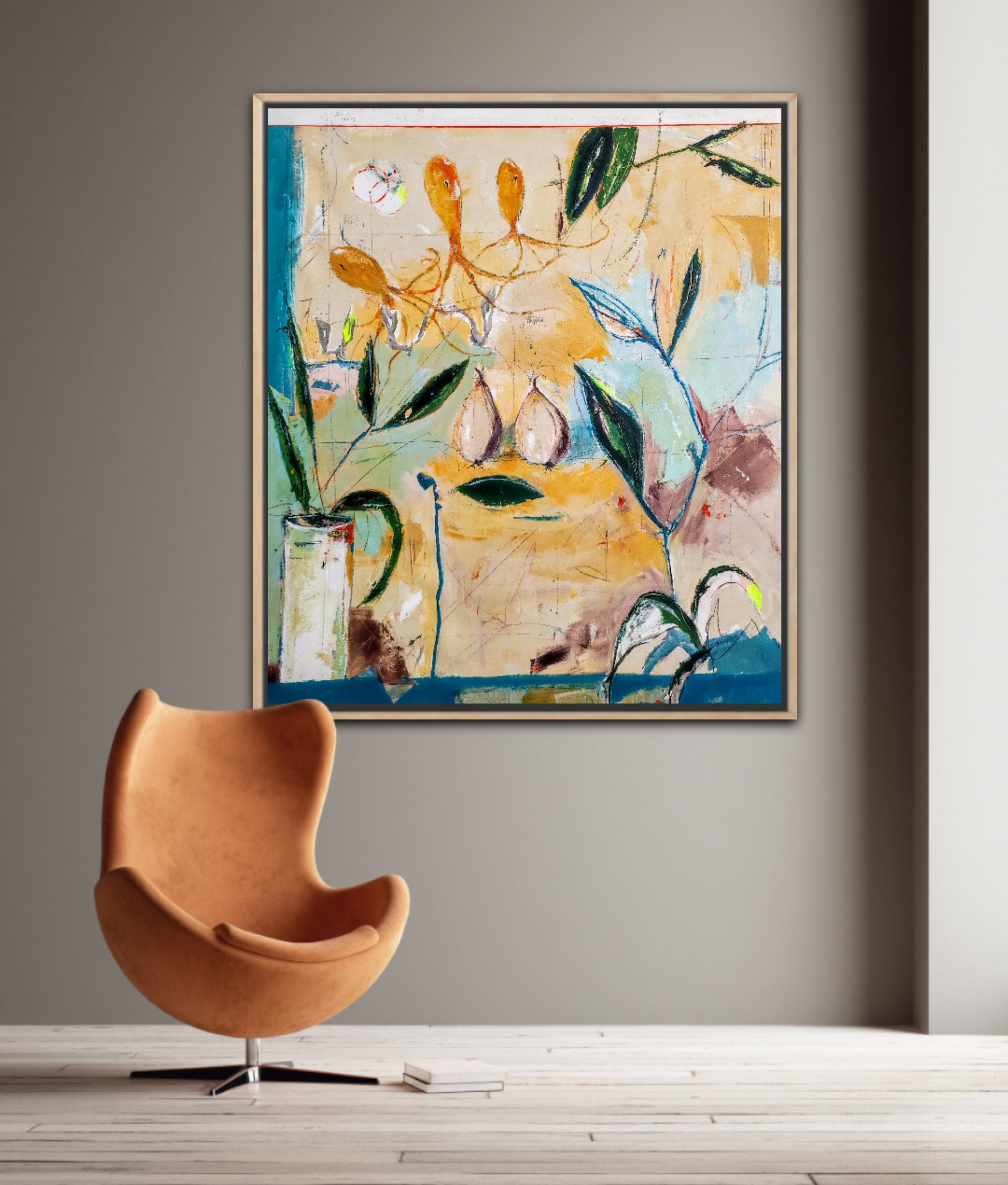 Pintura gestual, intuitiva, que deja que las cosas pasen y se apoya sobre lo que aparece. Aprovechando el accidente y aceptando las consecuencias.