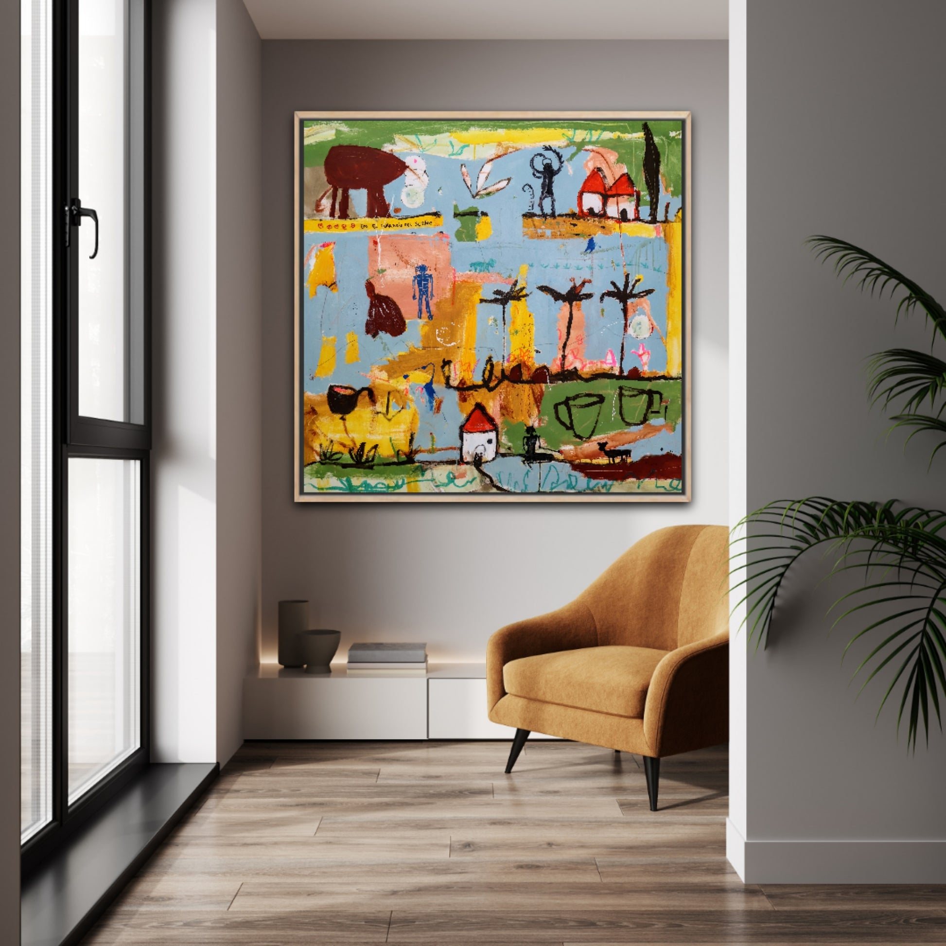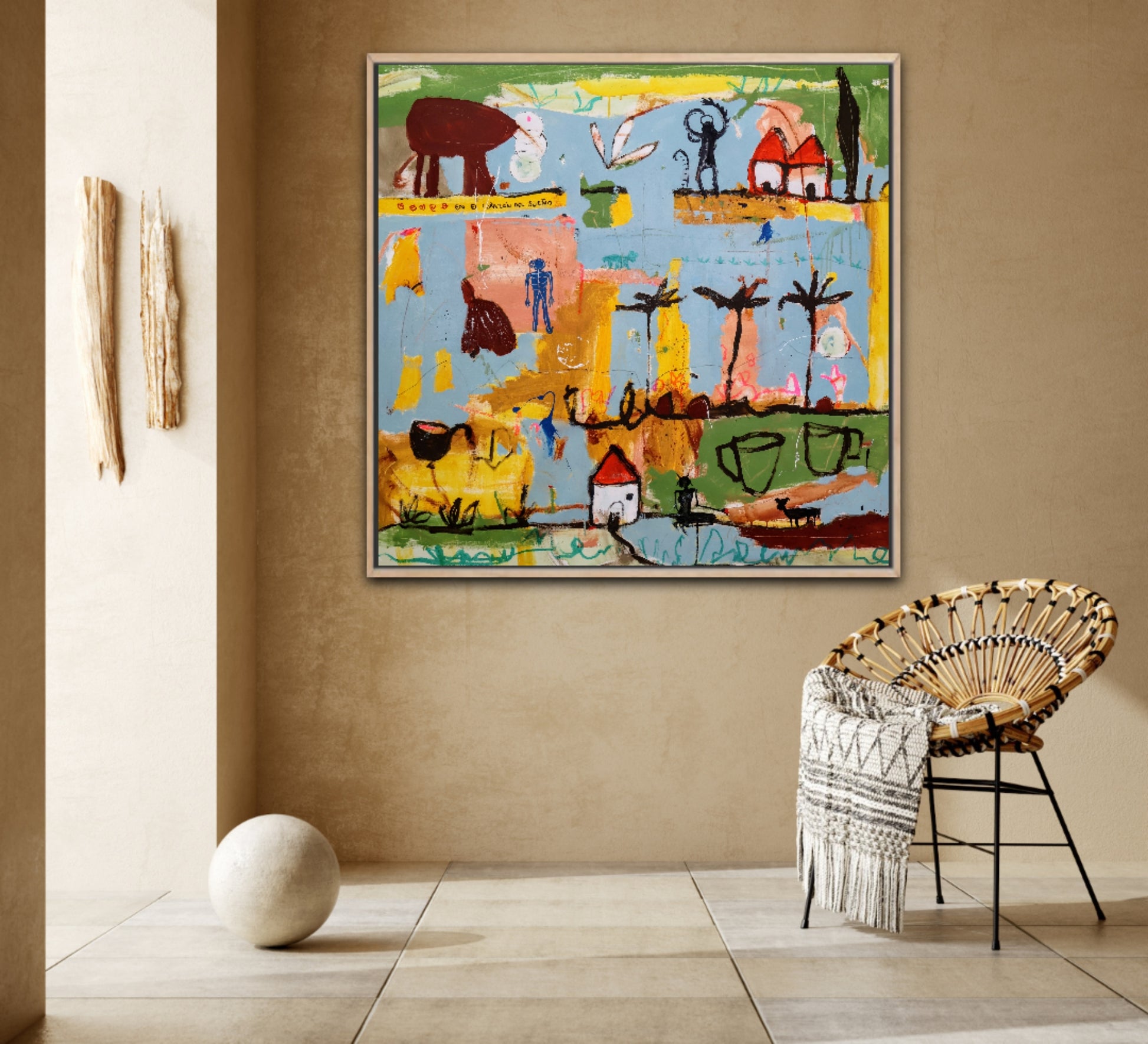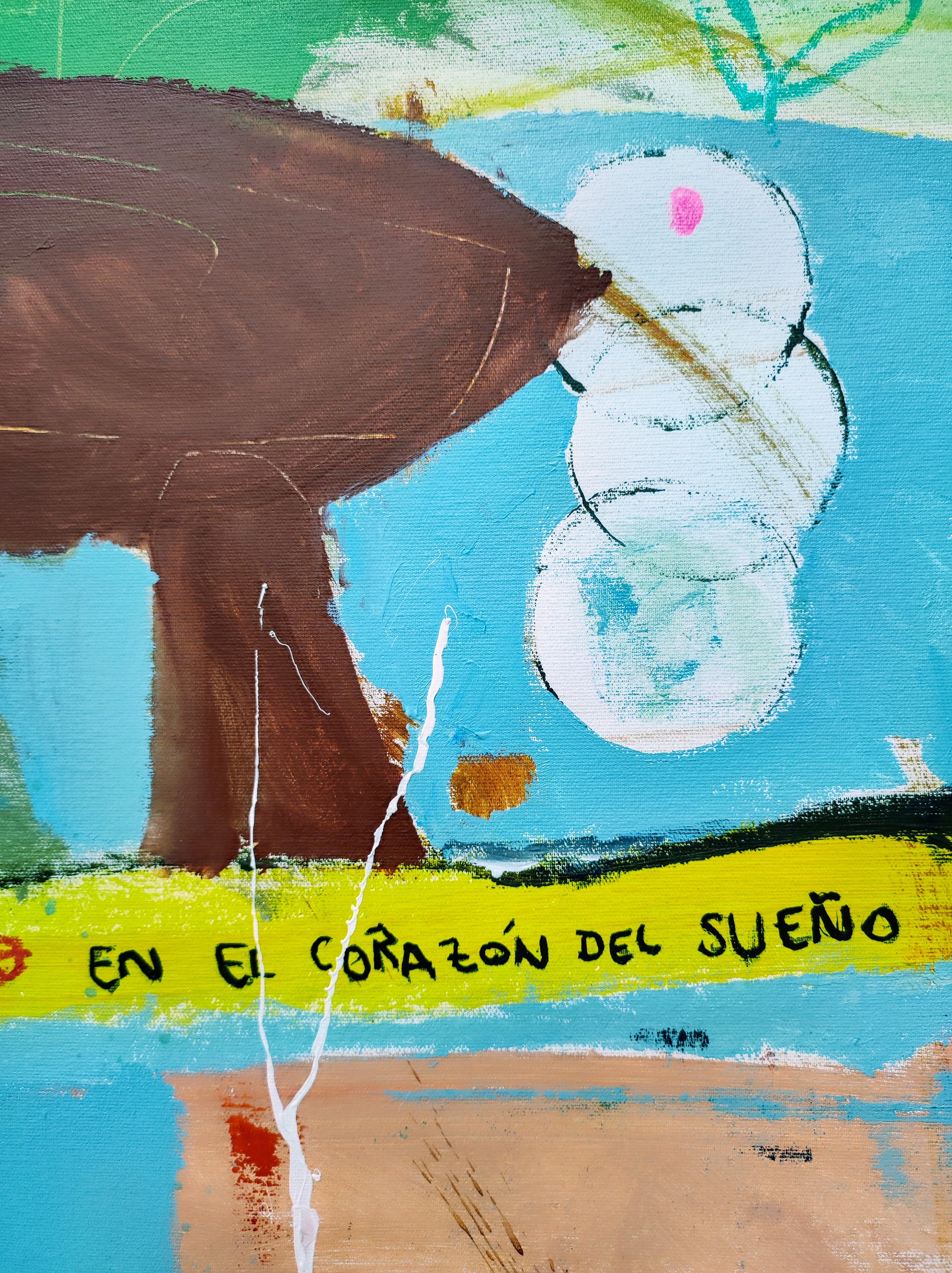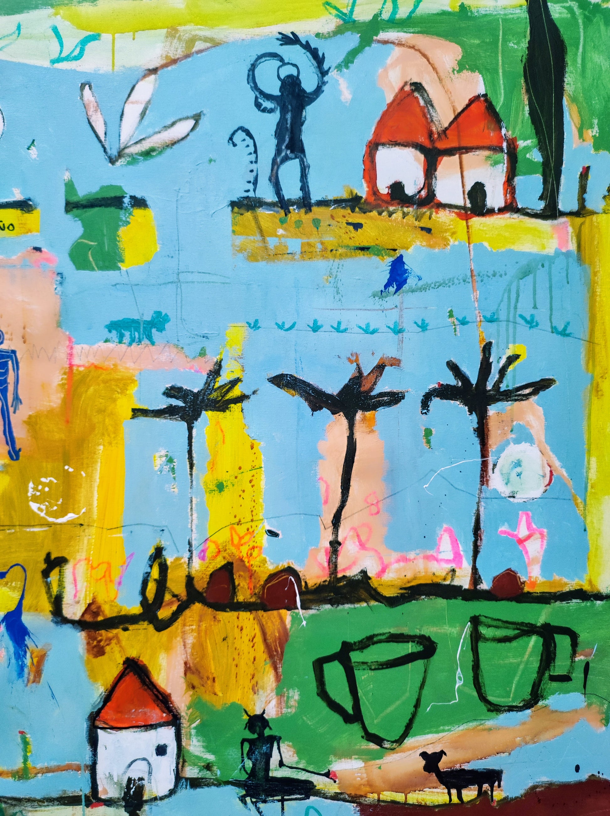 Técnica: acrílico, pigmentos, ceras, tempera, lápiz y tinta china.