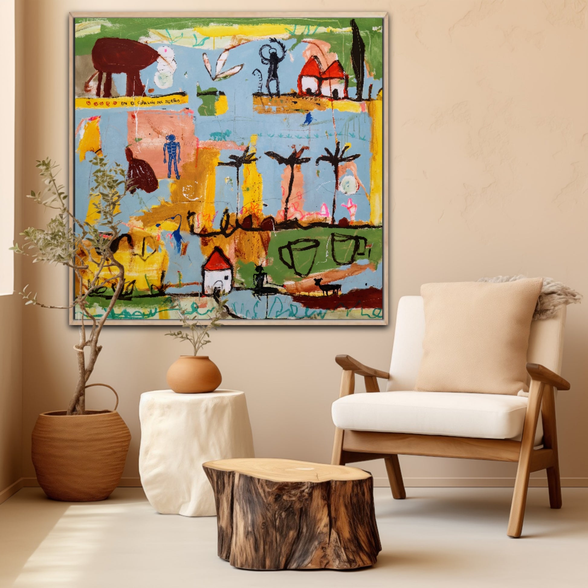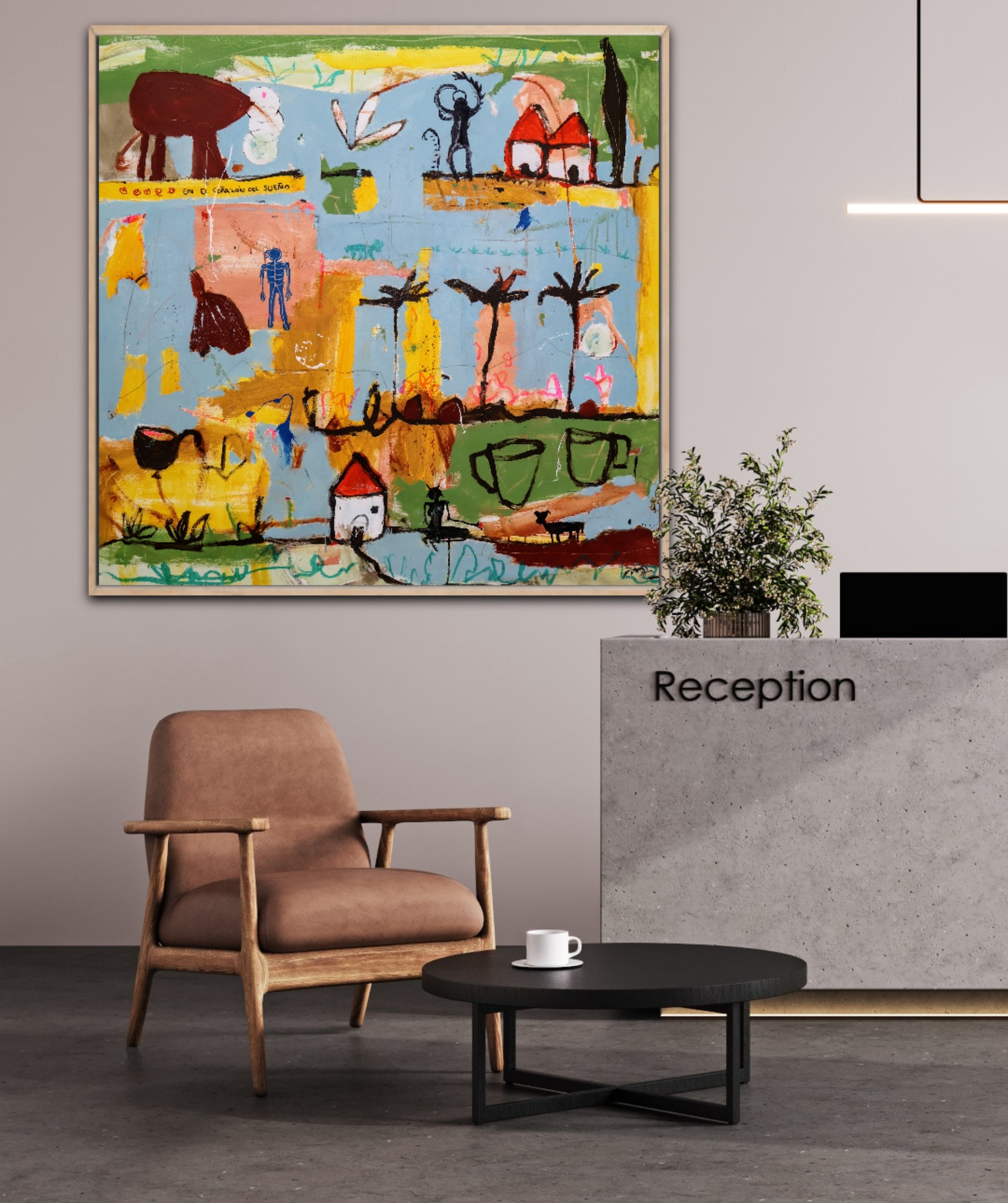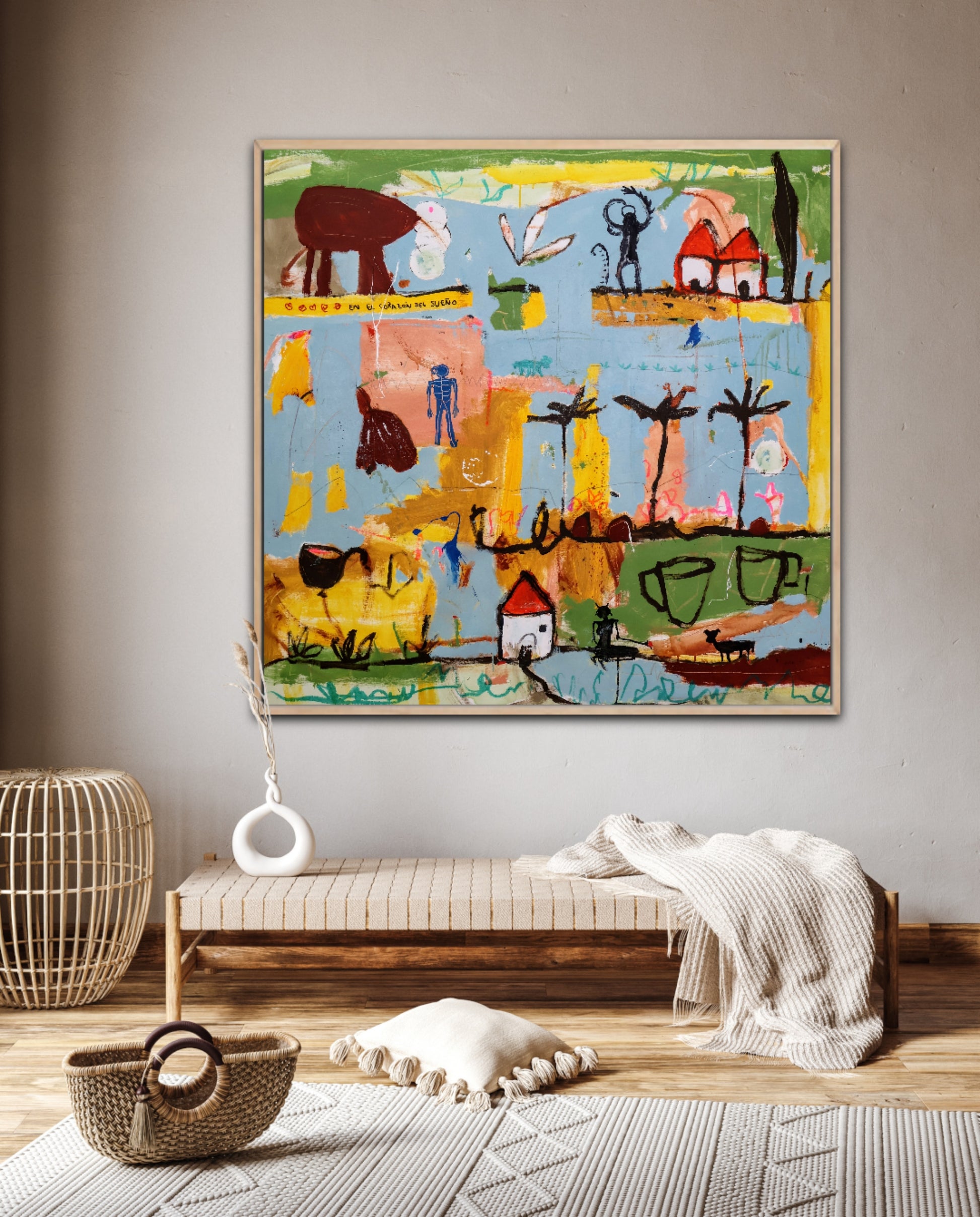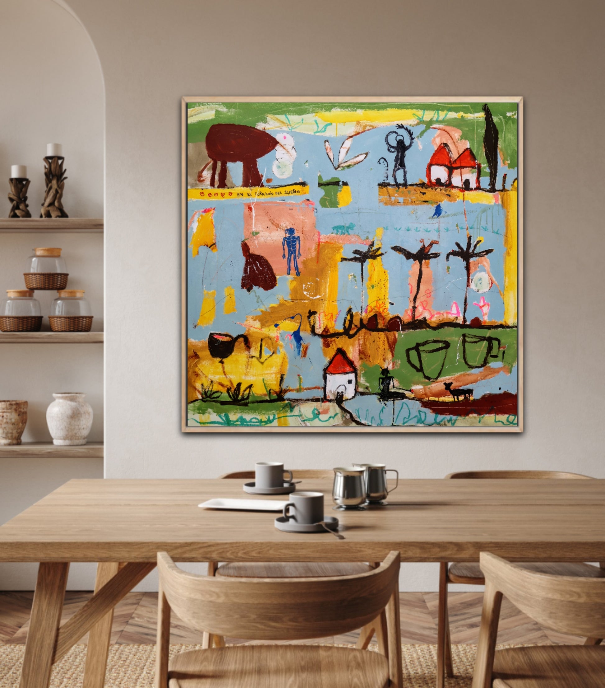 Técnica: acrílico, pigmentos, ceras, tempera, lápiz y tinta china.