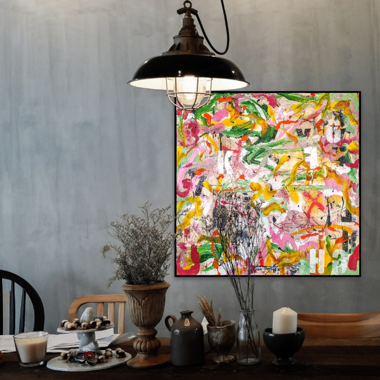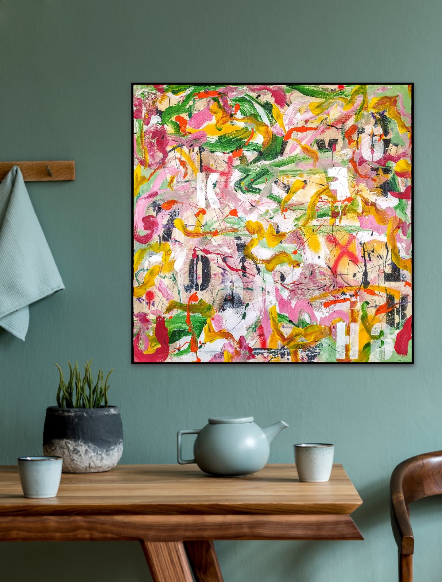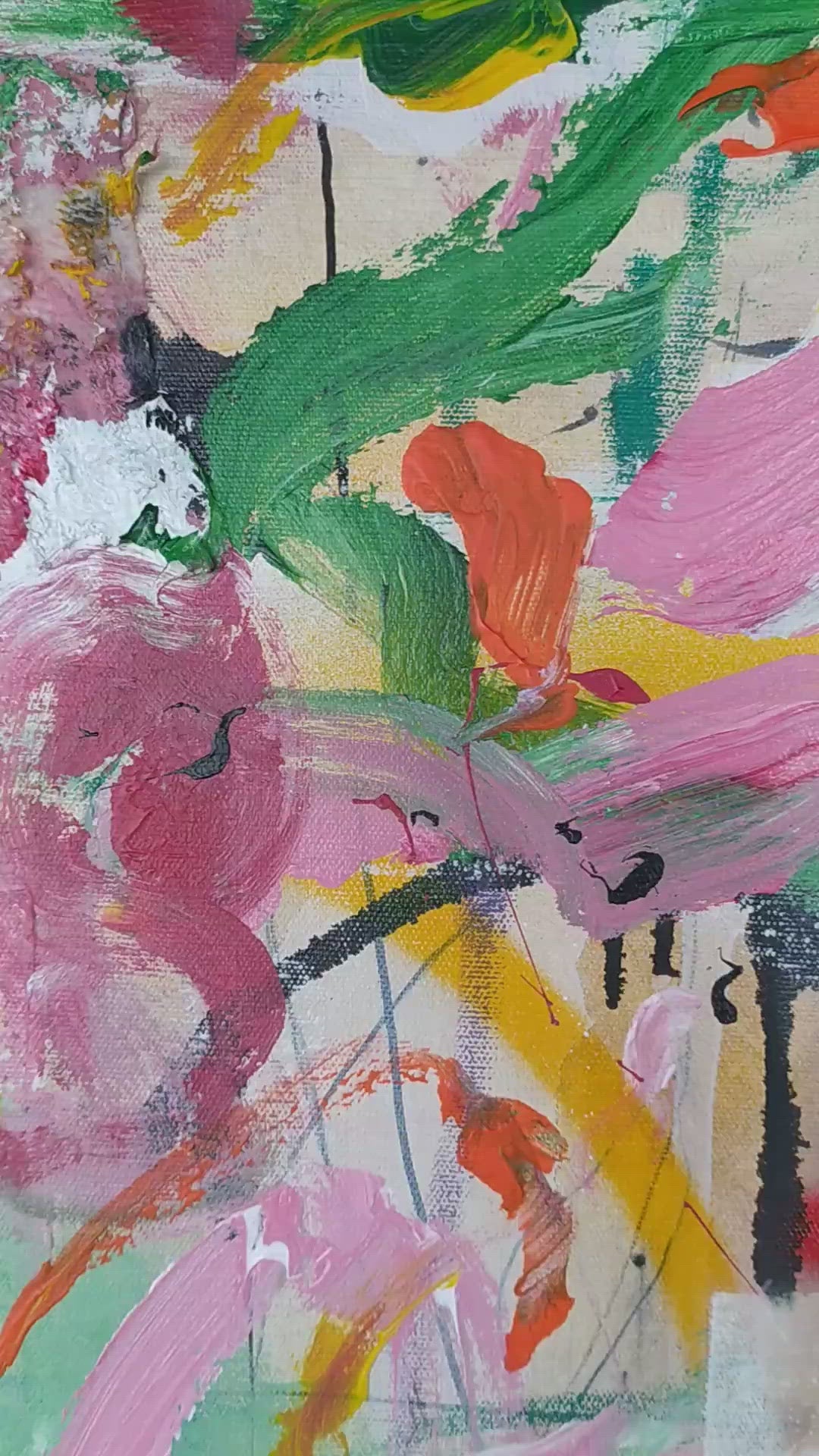 Rosas, verdes, naranjas, amarillos...evocan Naturaleza pero los trazos, marcas y telas le dan un carácter urbano al mismo tiempo.