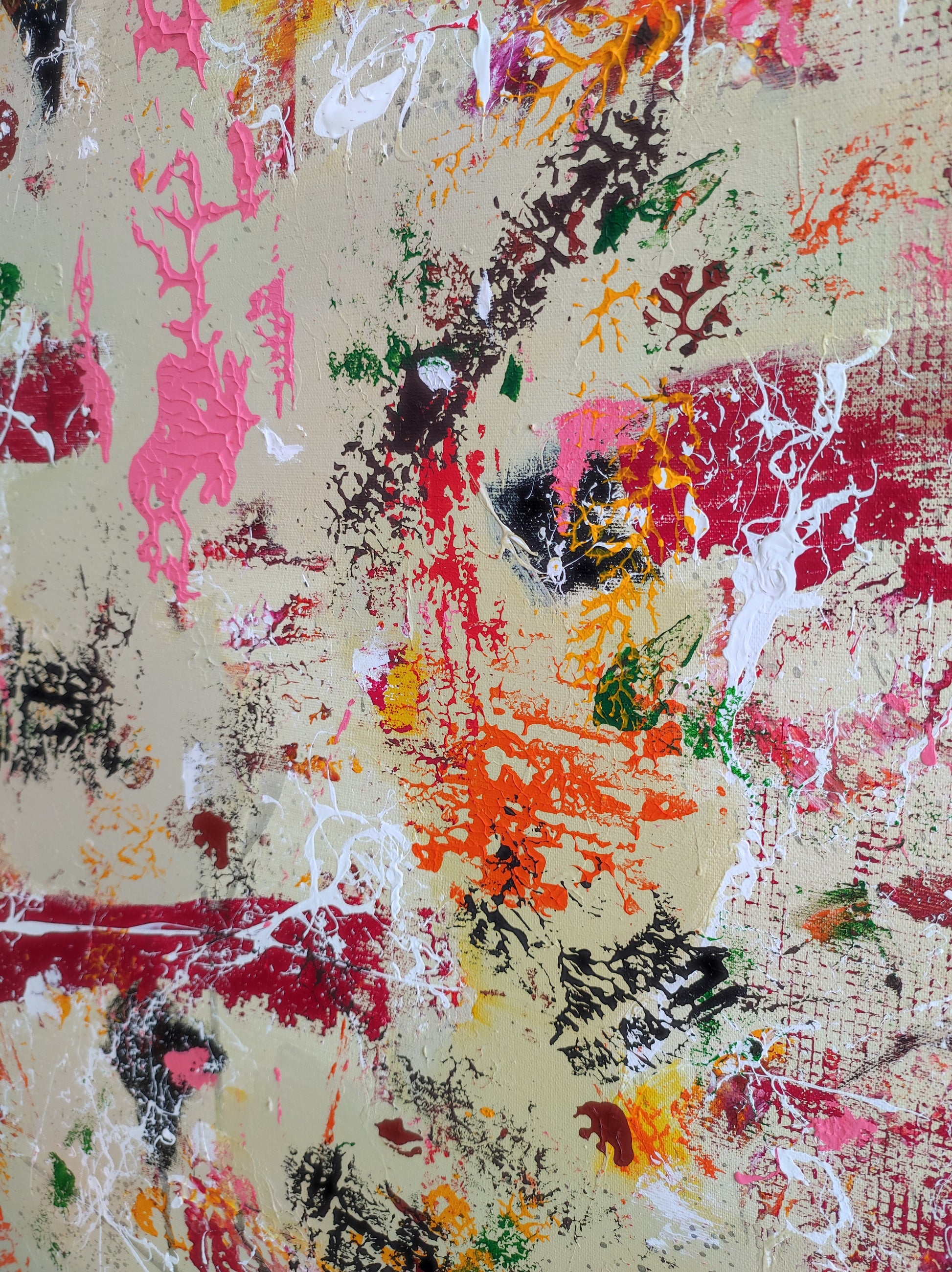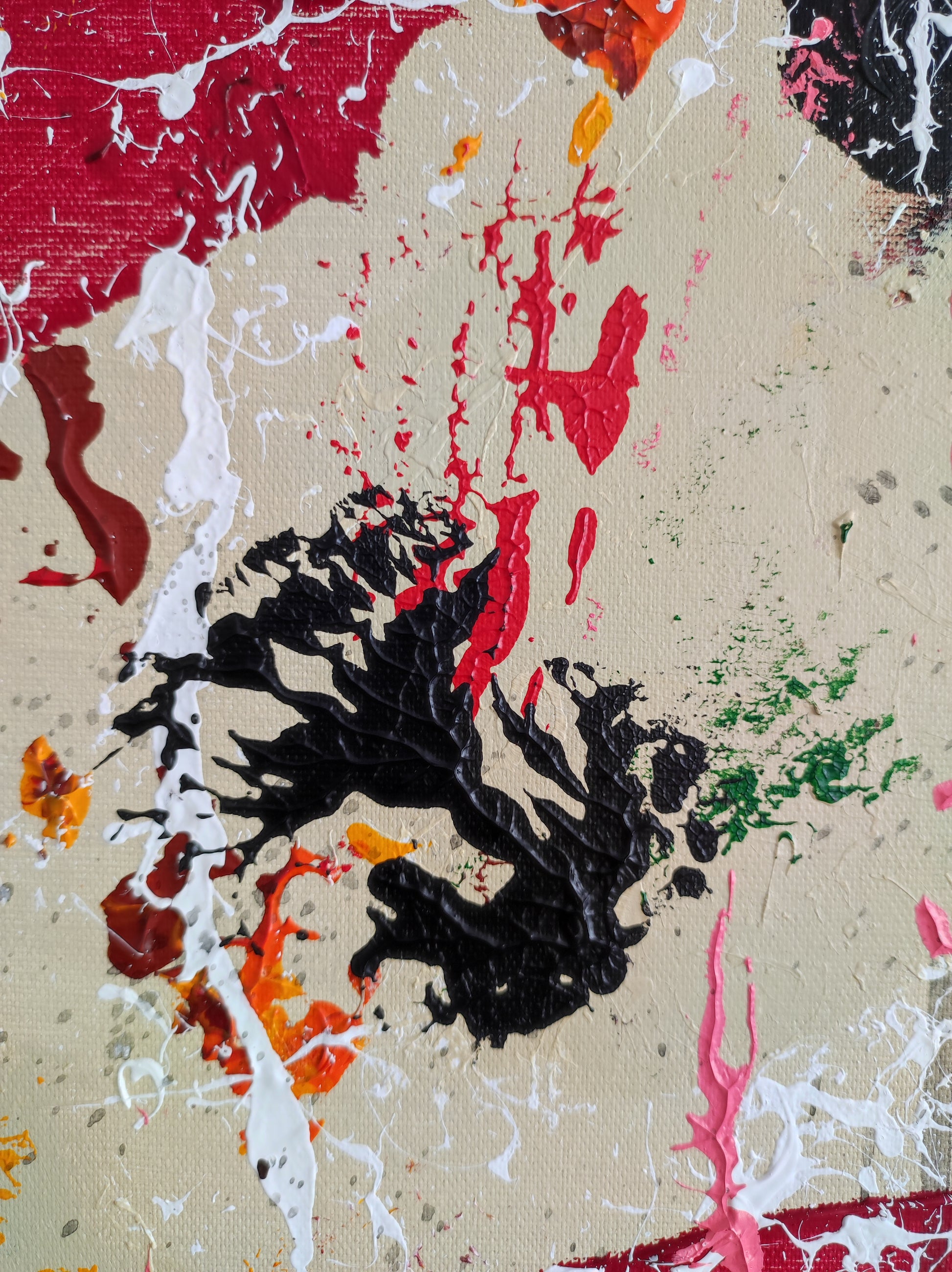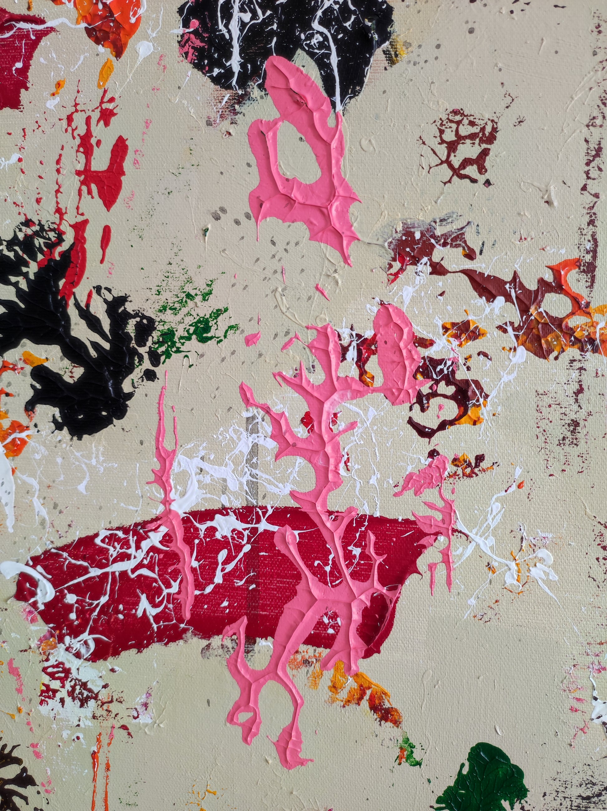 Cuadro trabajado desde la improvisación libre. Action painting con música de Gustavo Santaolalla.