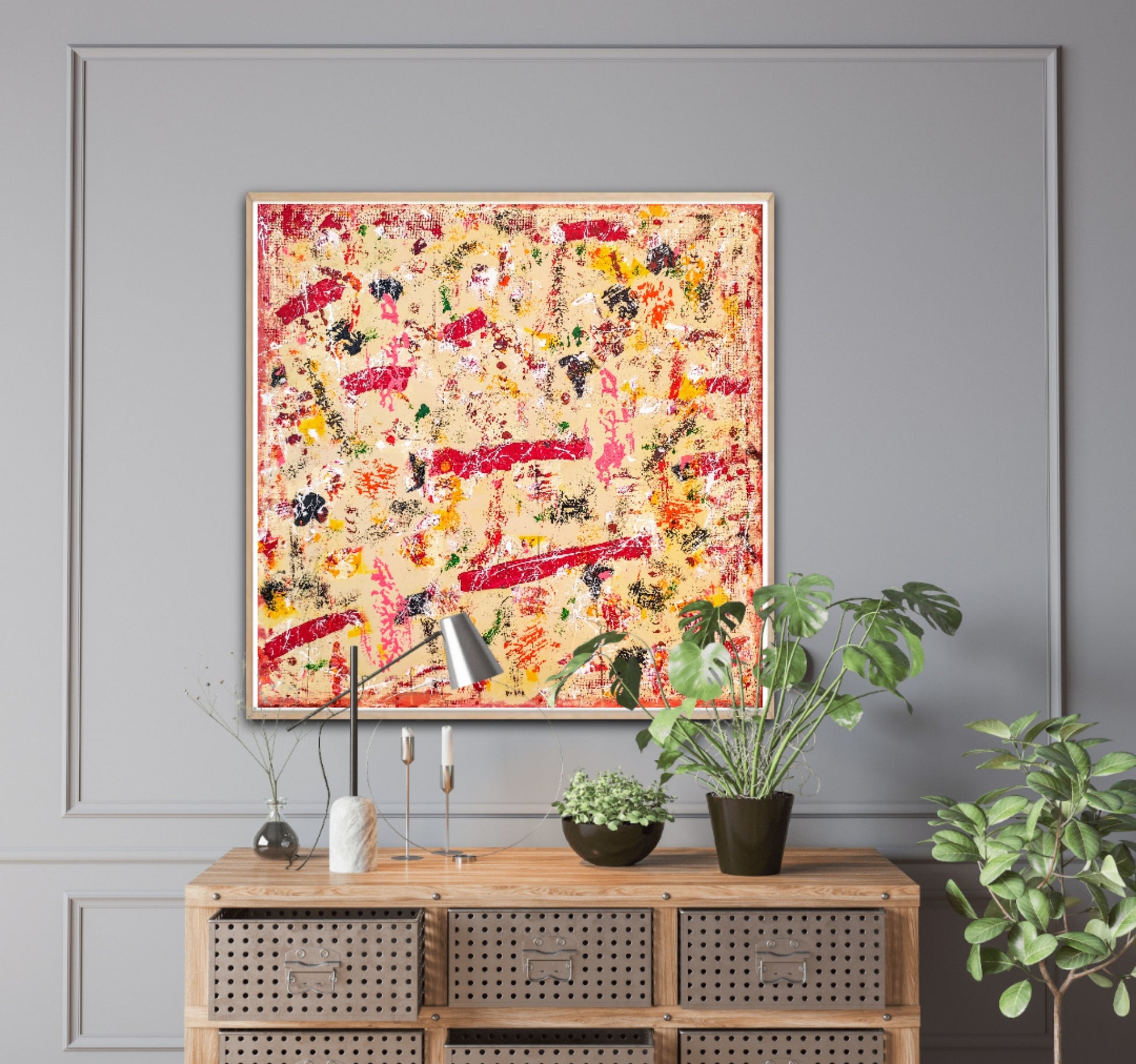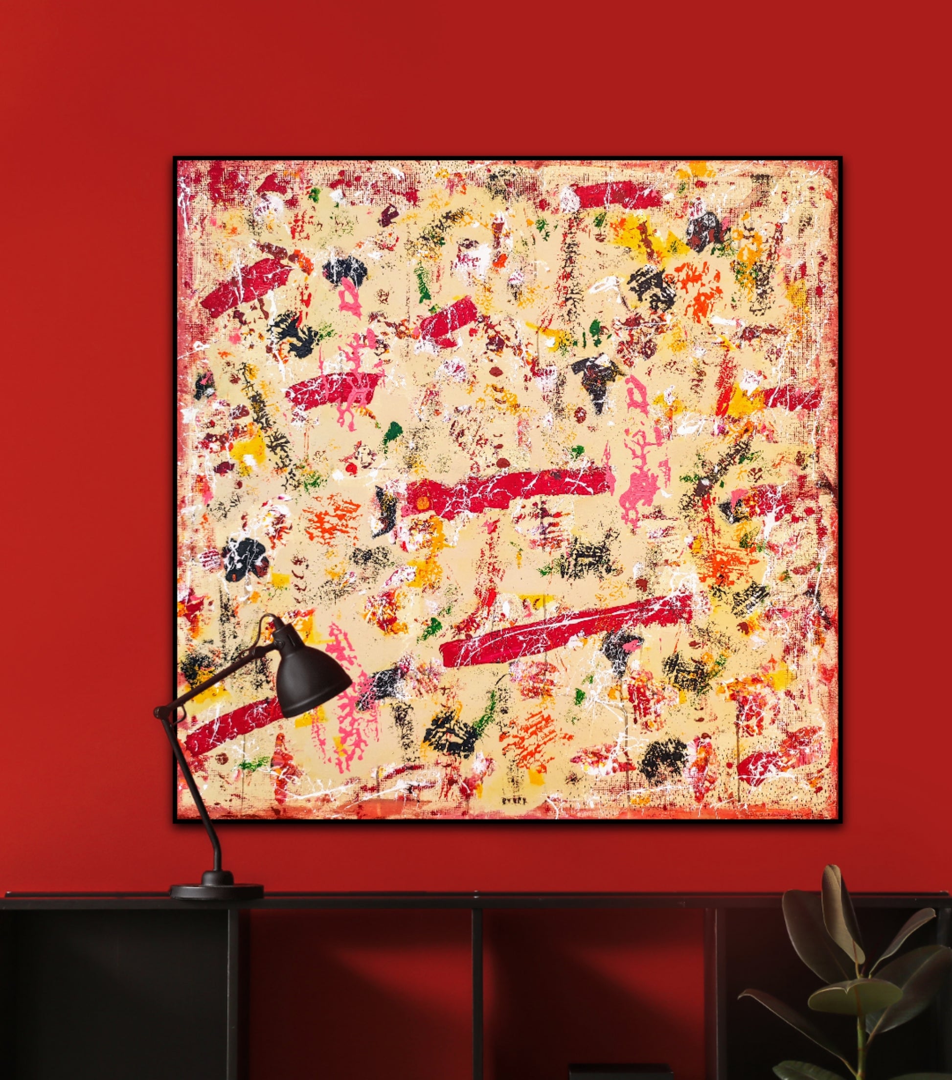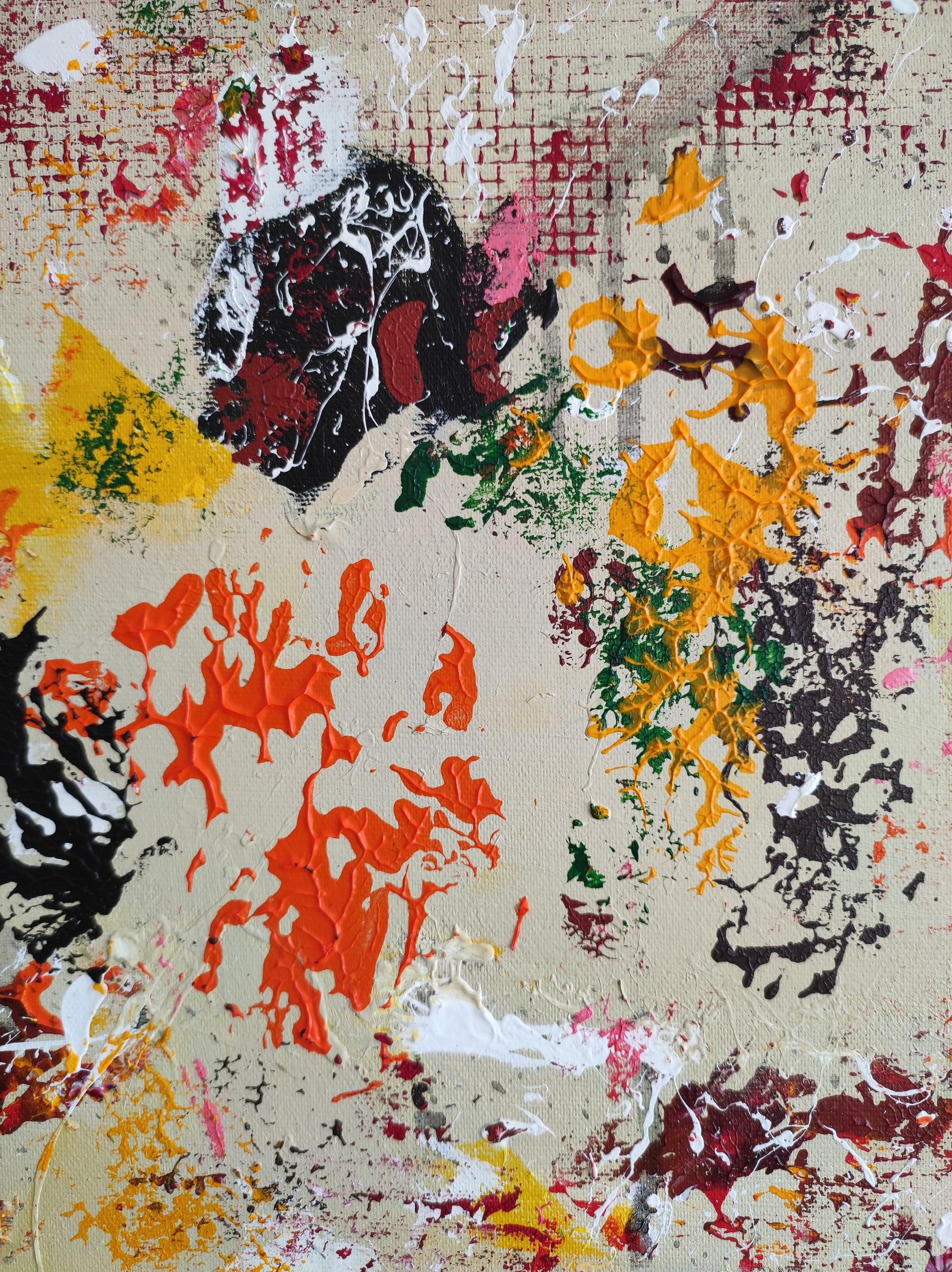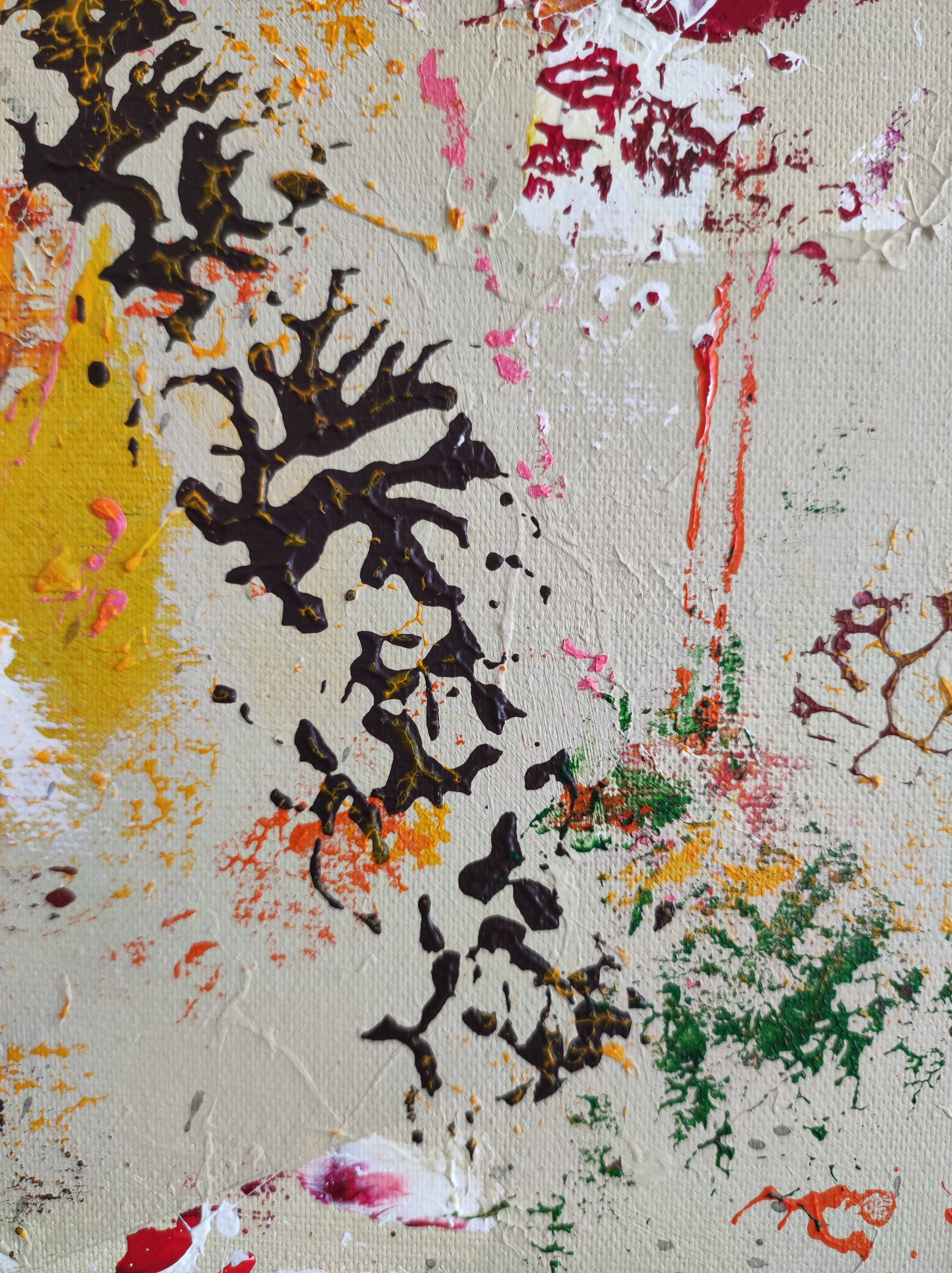 Cuadro trabajado desde la improvisación libre. Action painting con música de Gustavo Santaolalla.