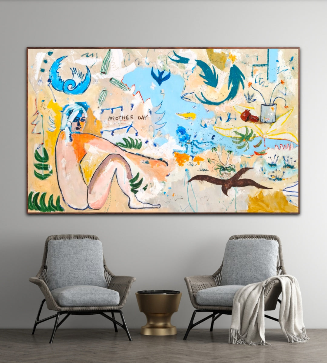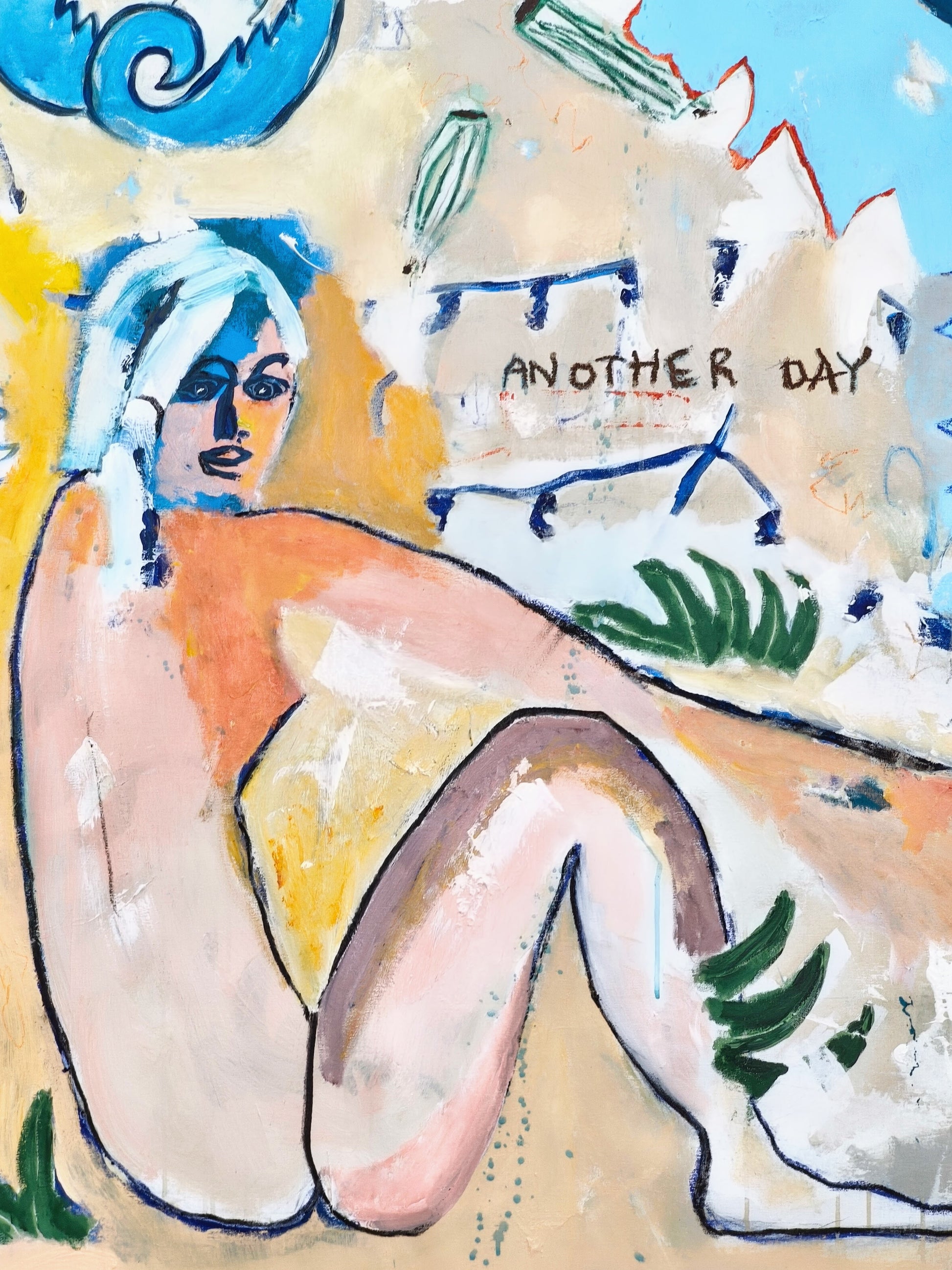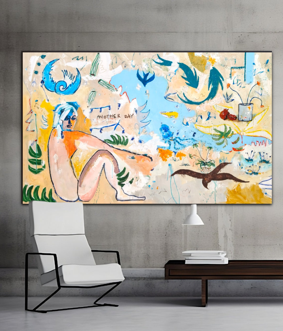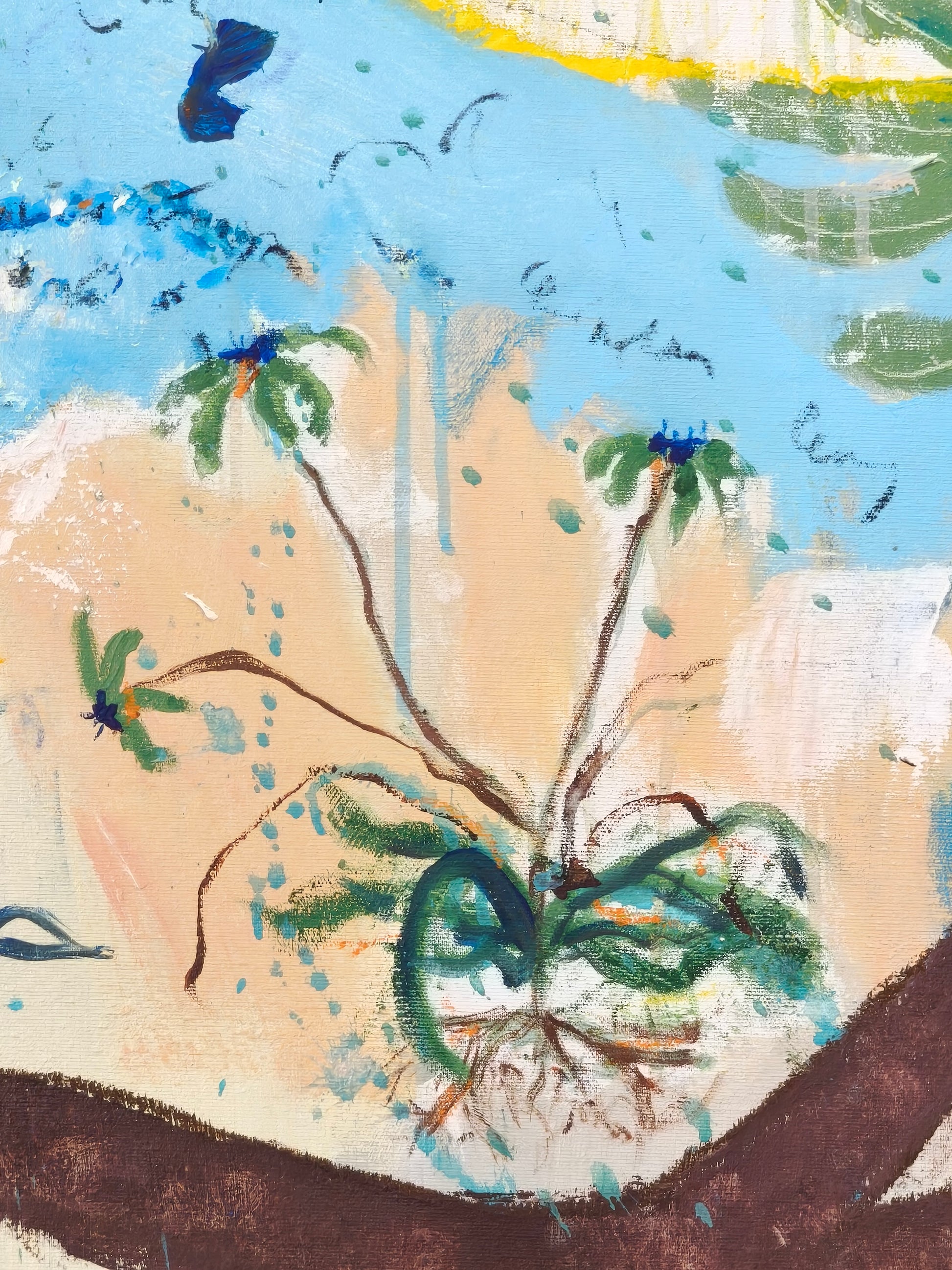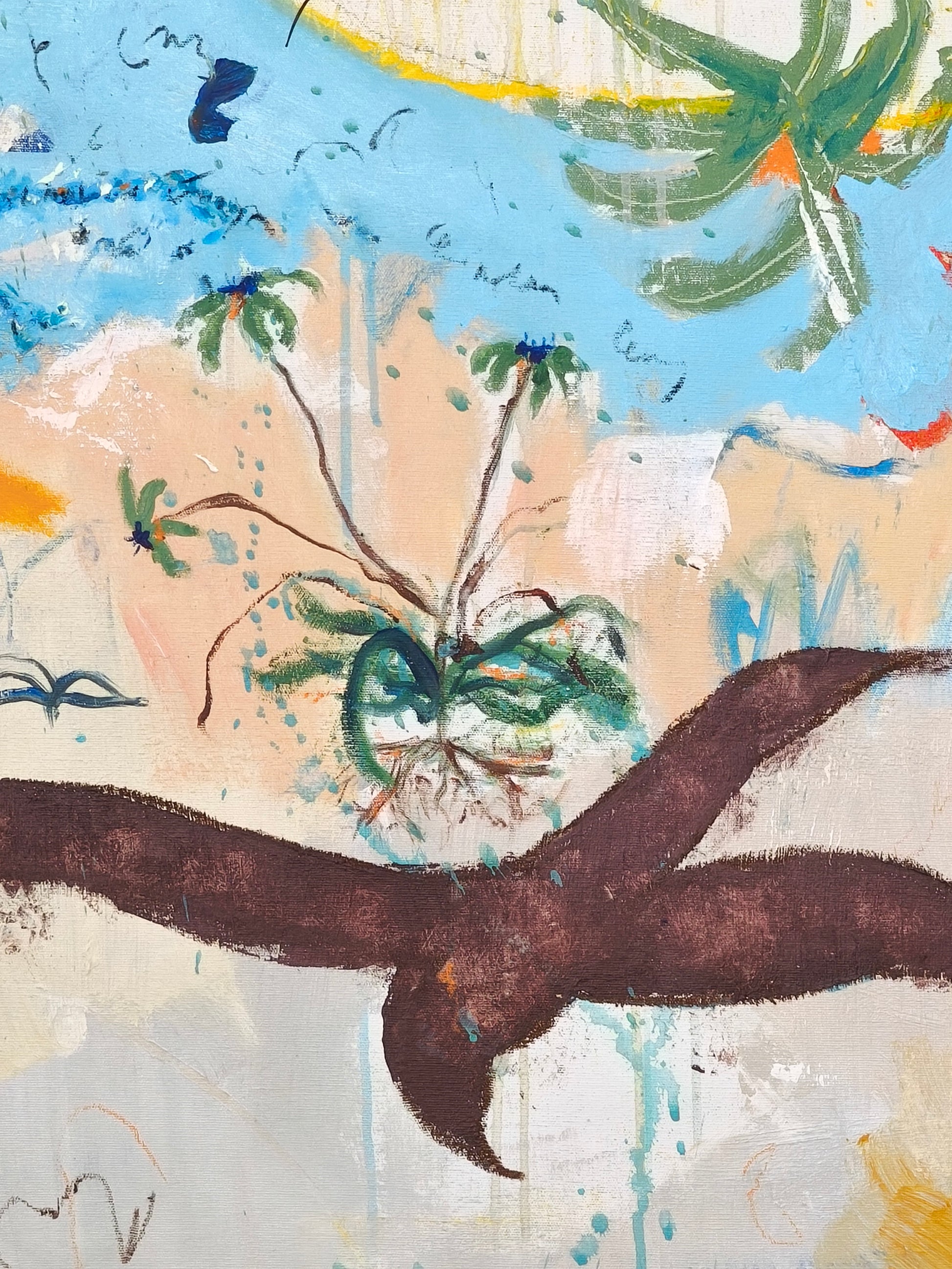 Técnica: acrílico, pigmentos, lápiz, carboncillo, gesso, stick oil.