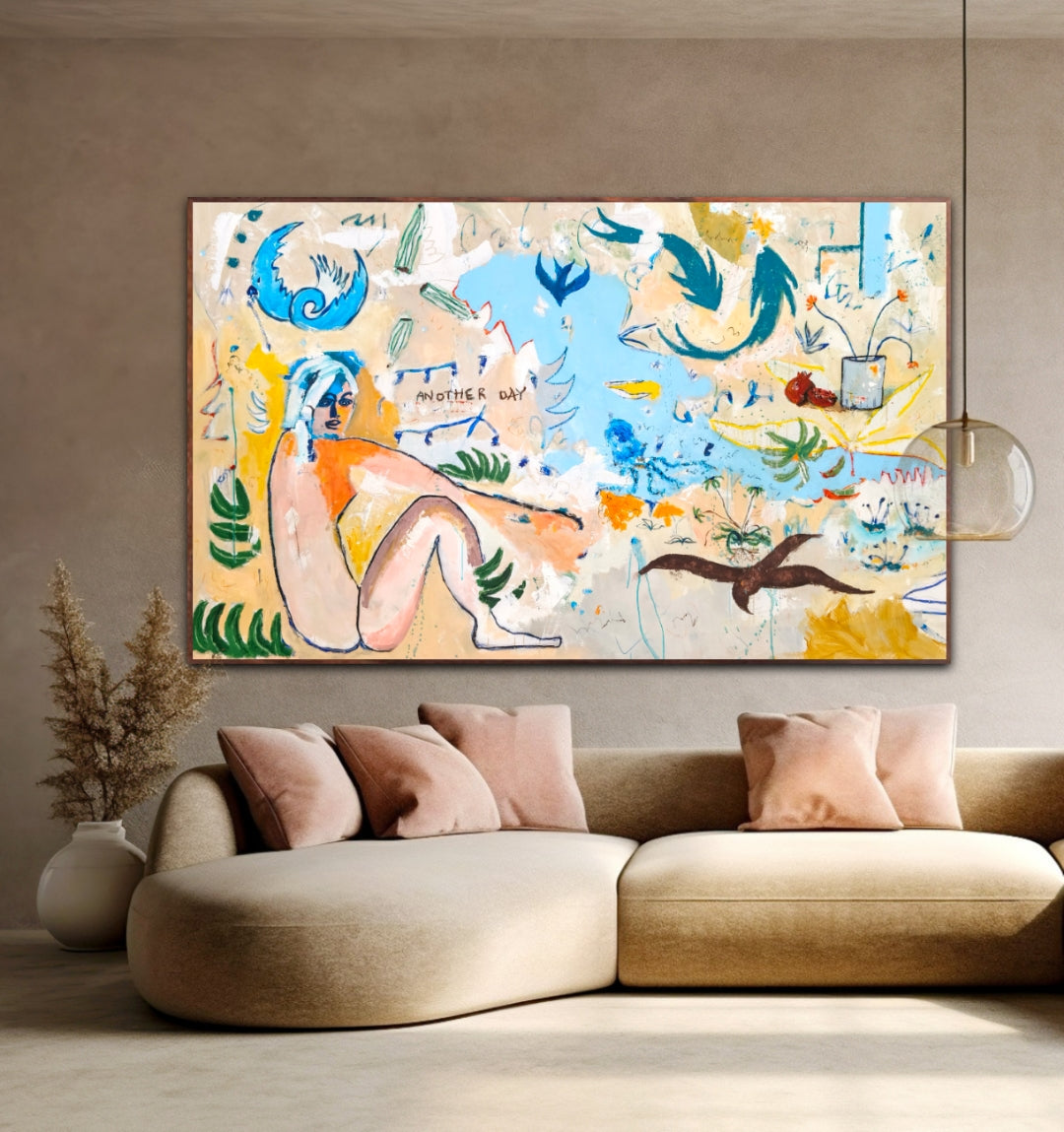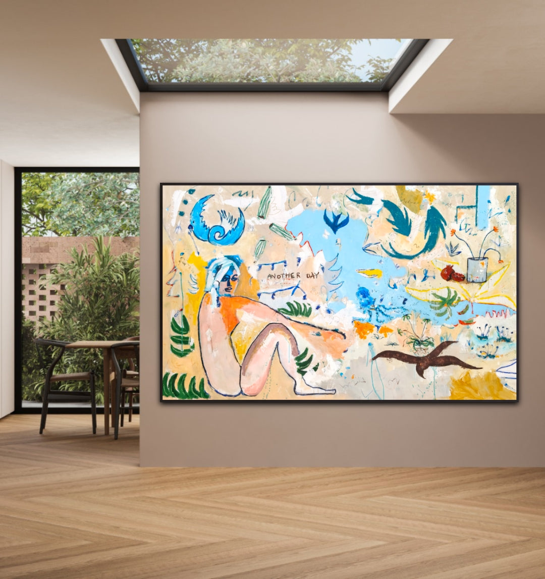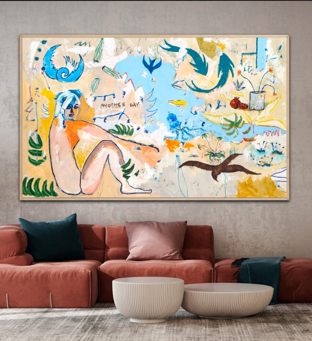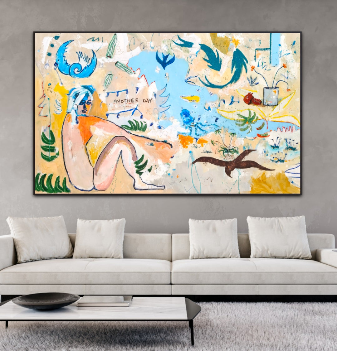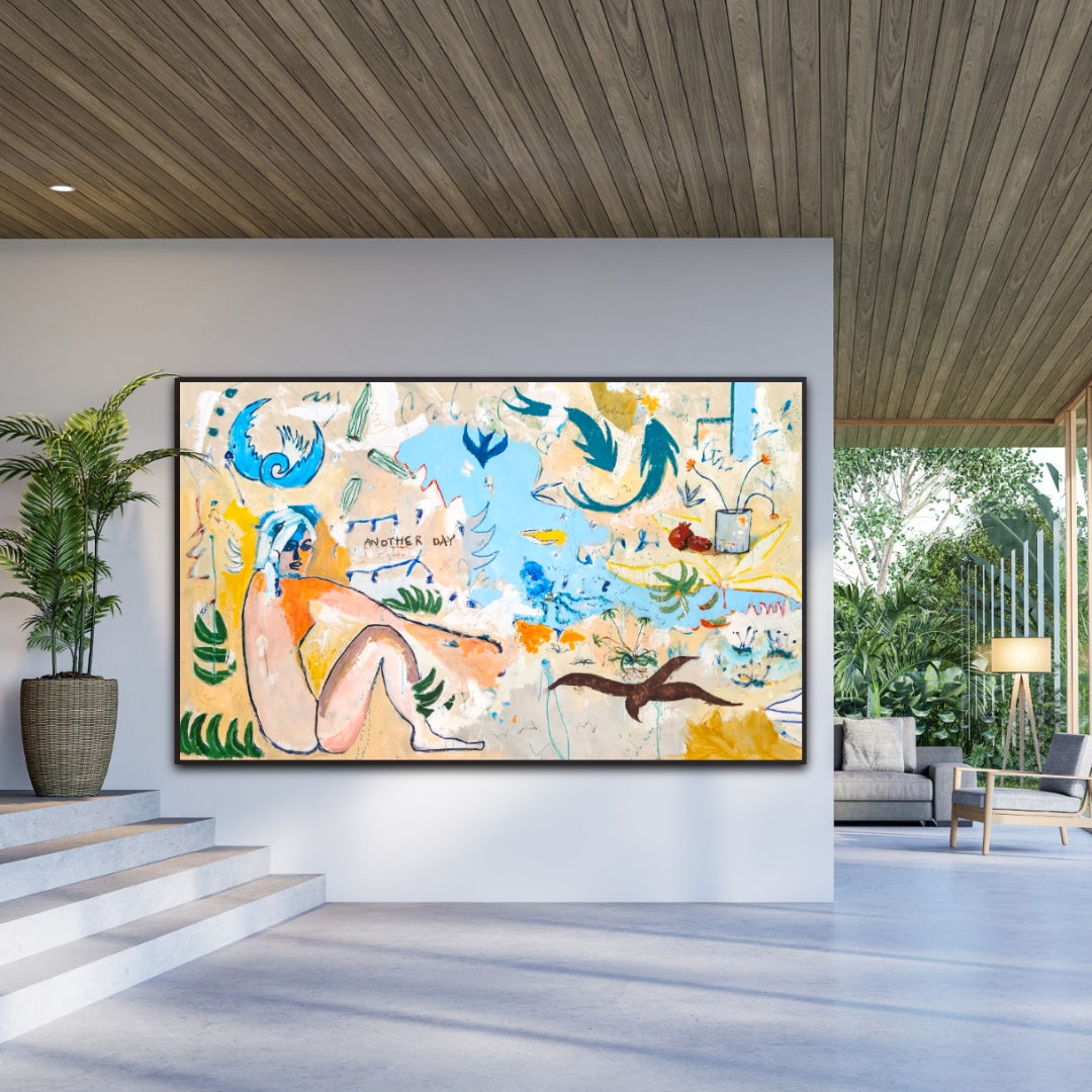 Técnica: acrílico, pigmentos, lápiz, carboncillo, gesso, stick oil.
