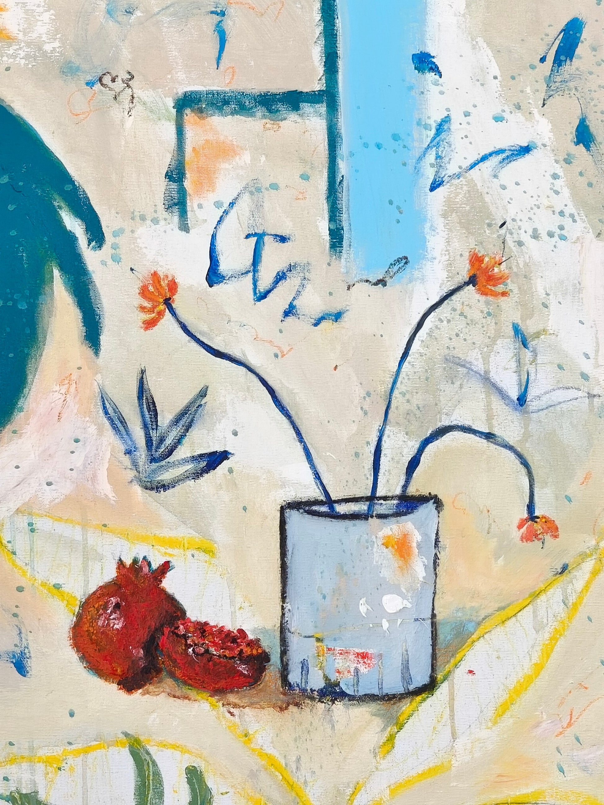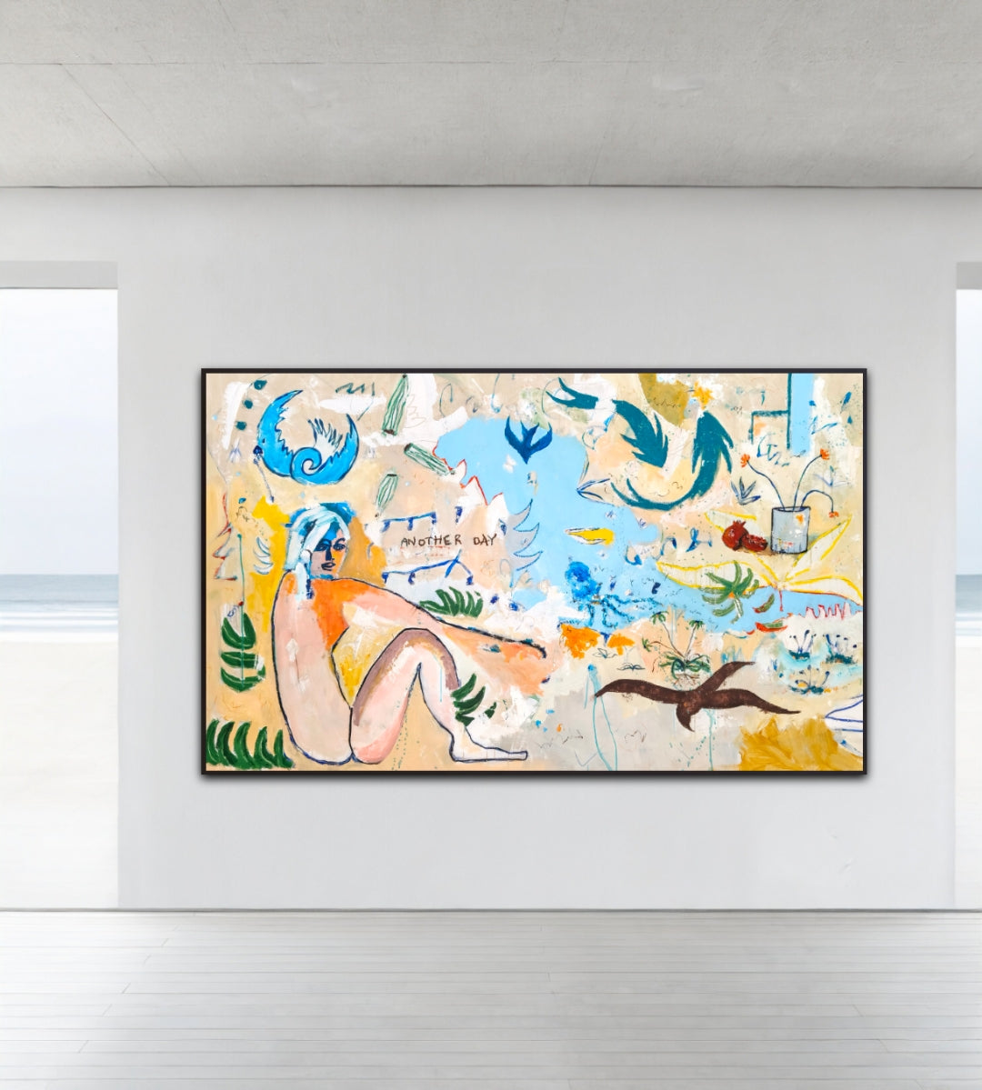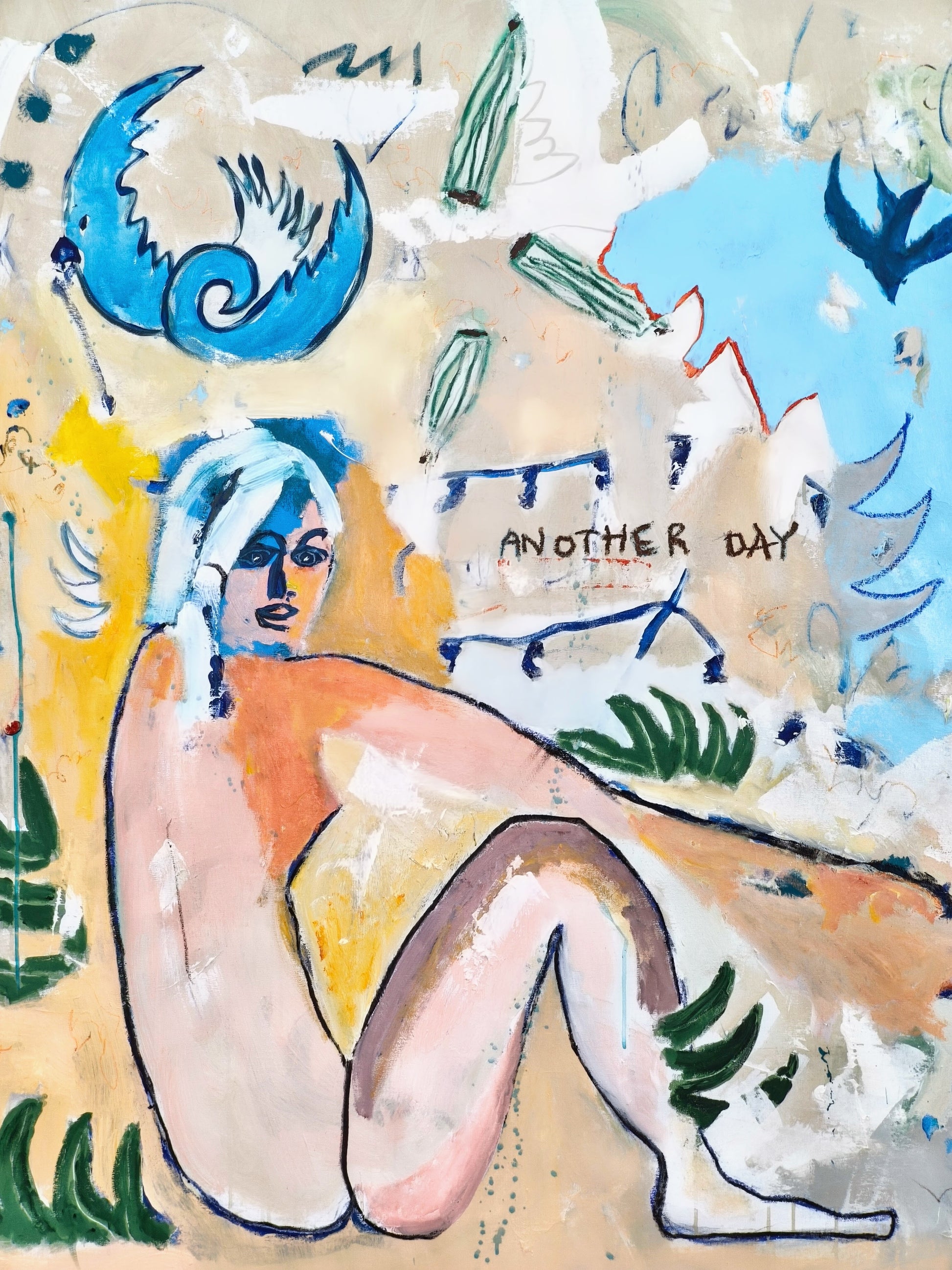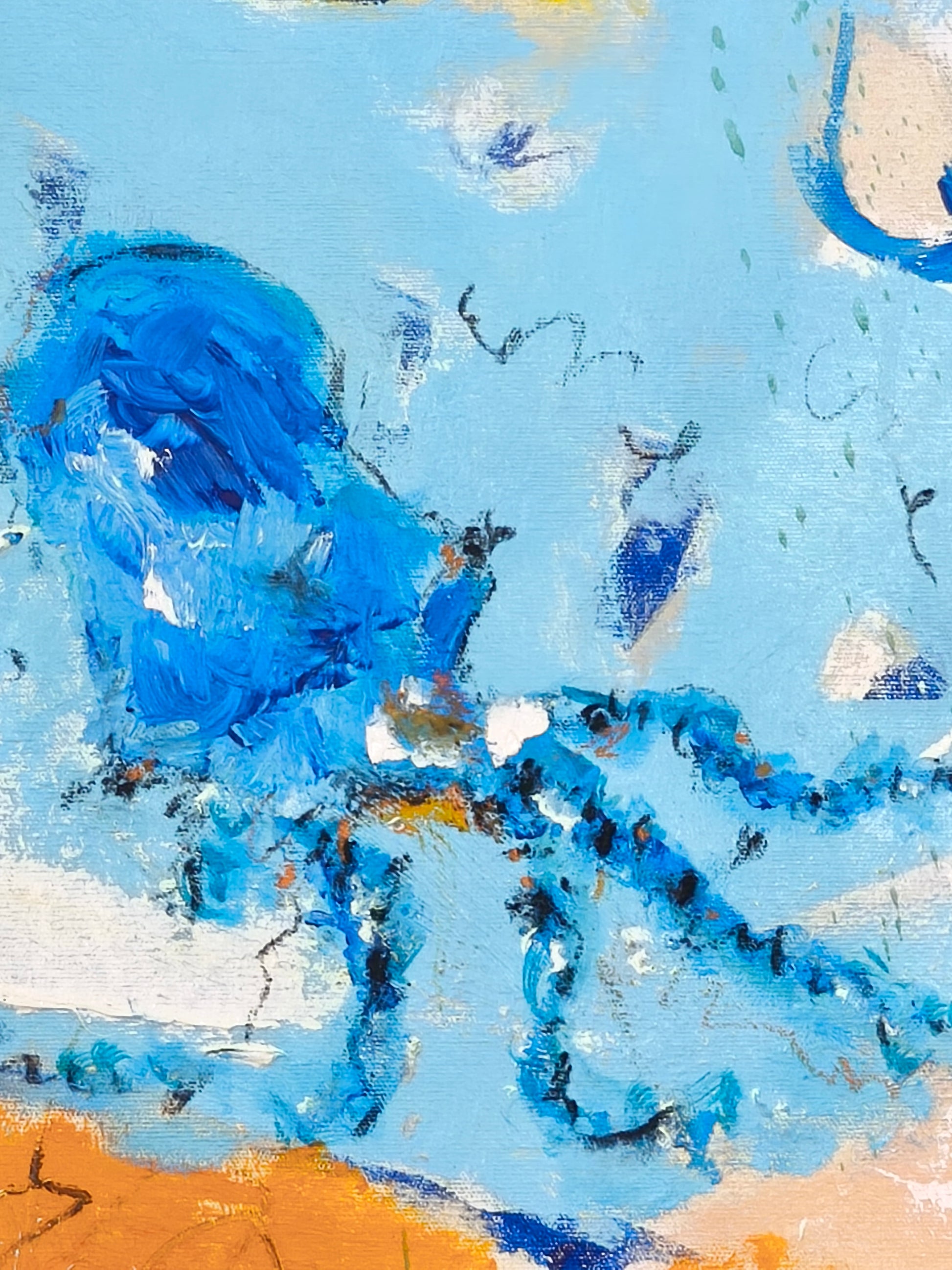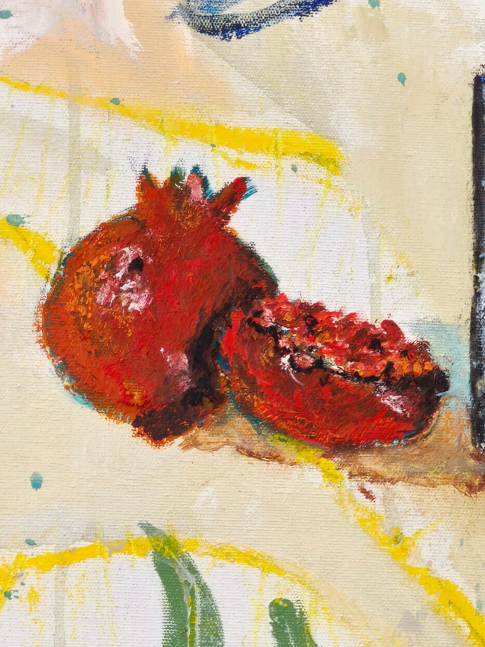Pintura gestual, intuitiva, que deja que las cosas pasen y se apoya sobre lo que aparece. Aprovechando el accidente y aceptando las consecuencias.