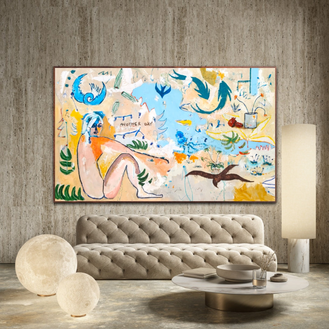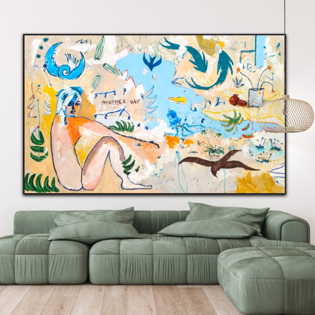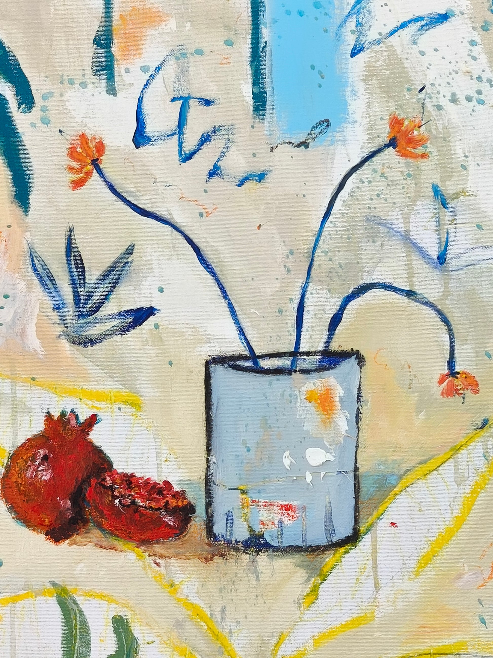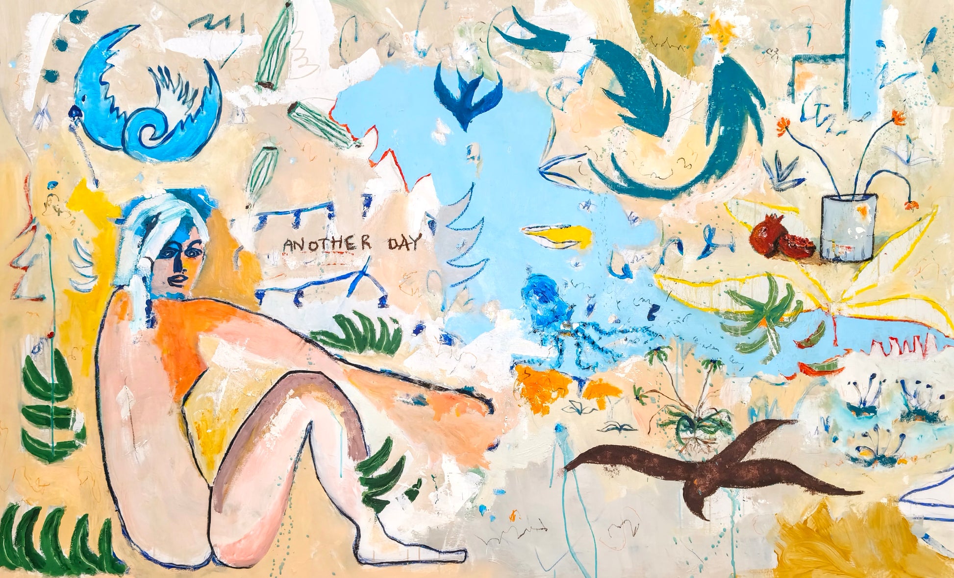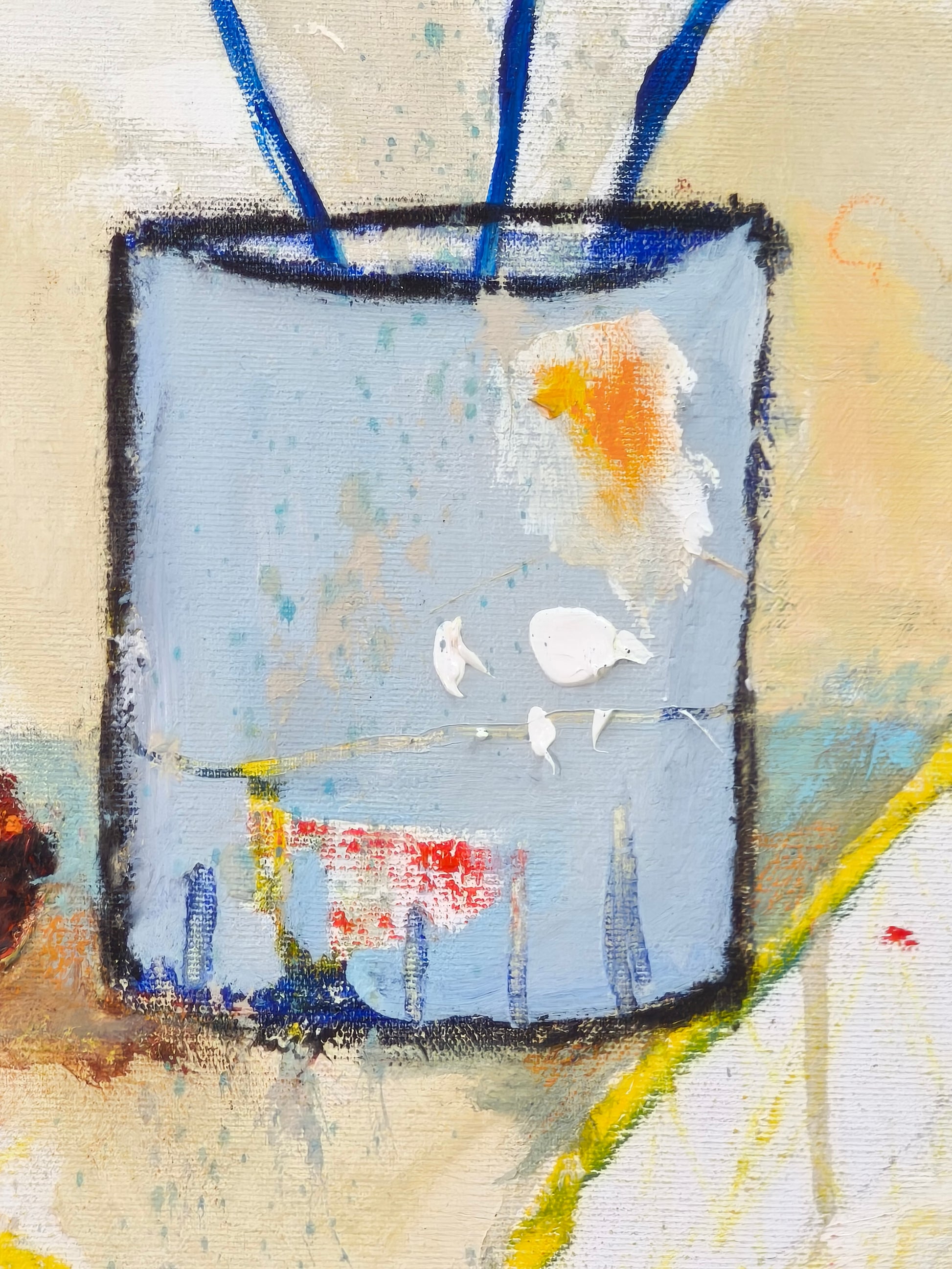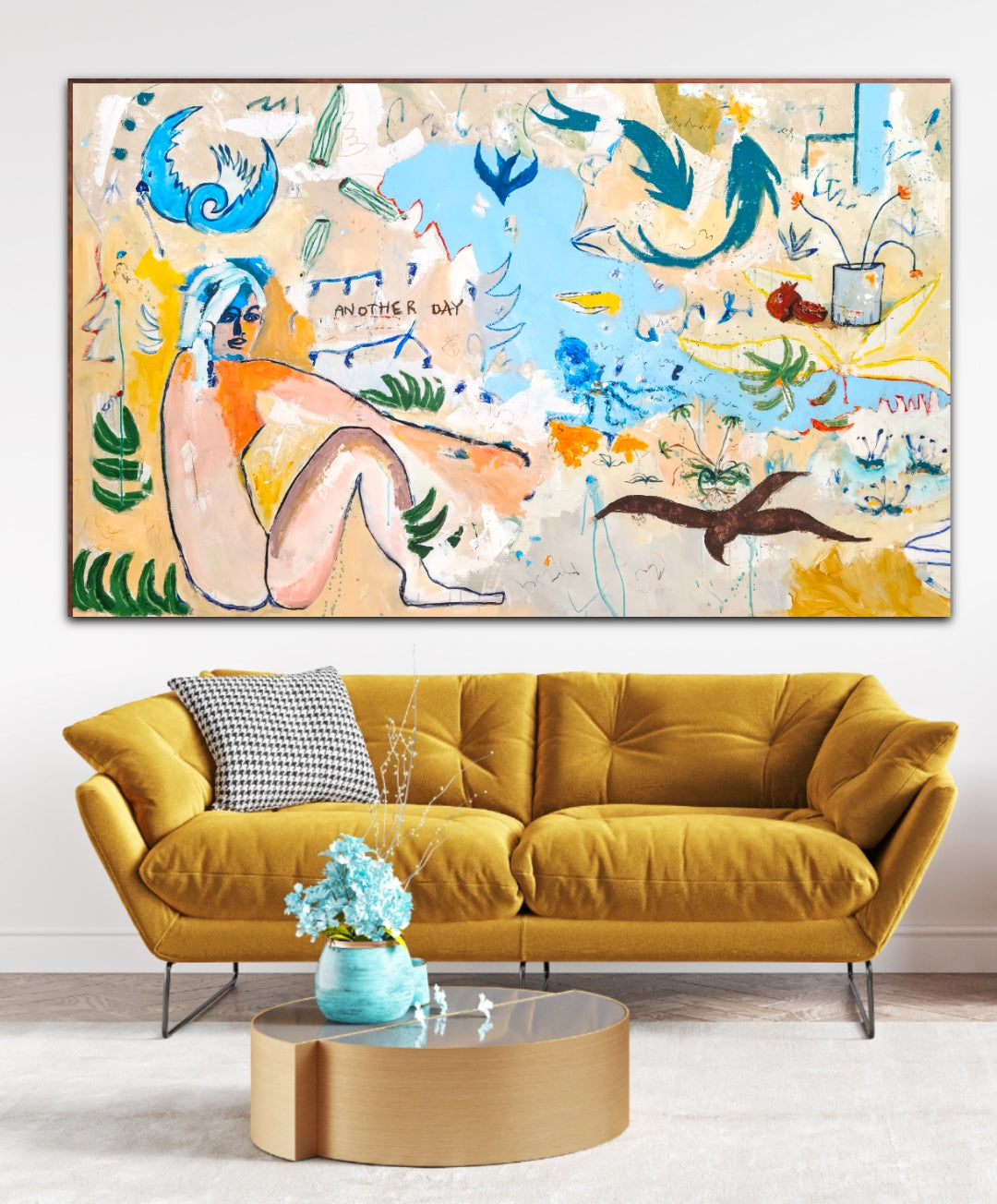 Pintura gestual, intuitiva, que deja que las cosas pasen y se apoya sobre lo que aparece. Aprovechando el accidente y aceptando las consecuencias.