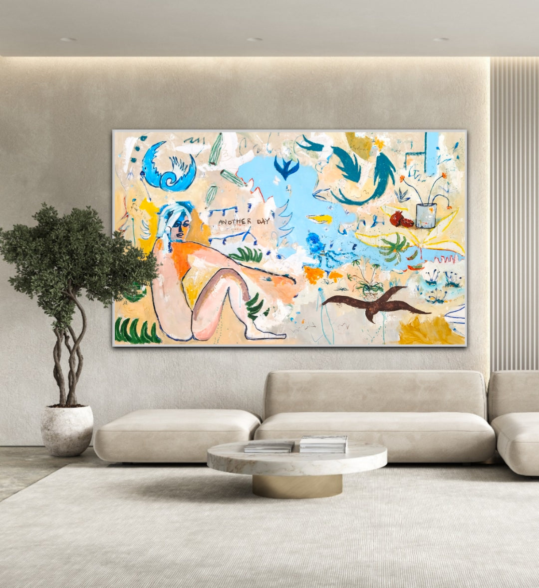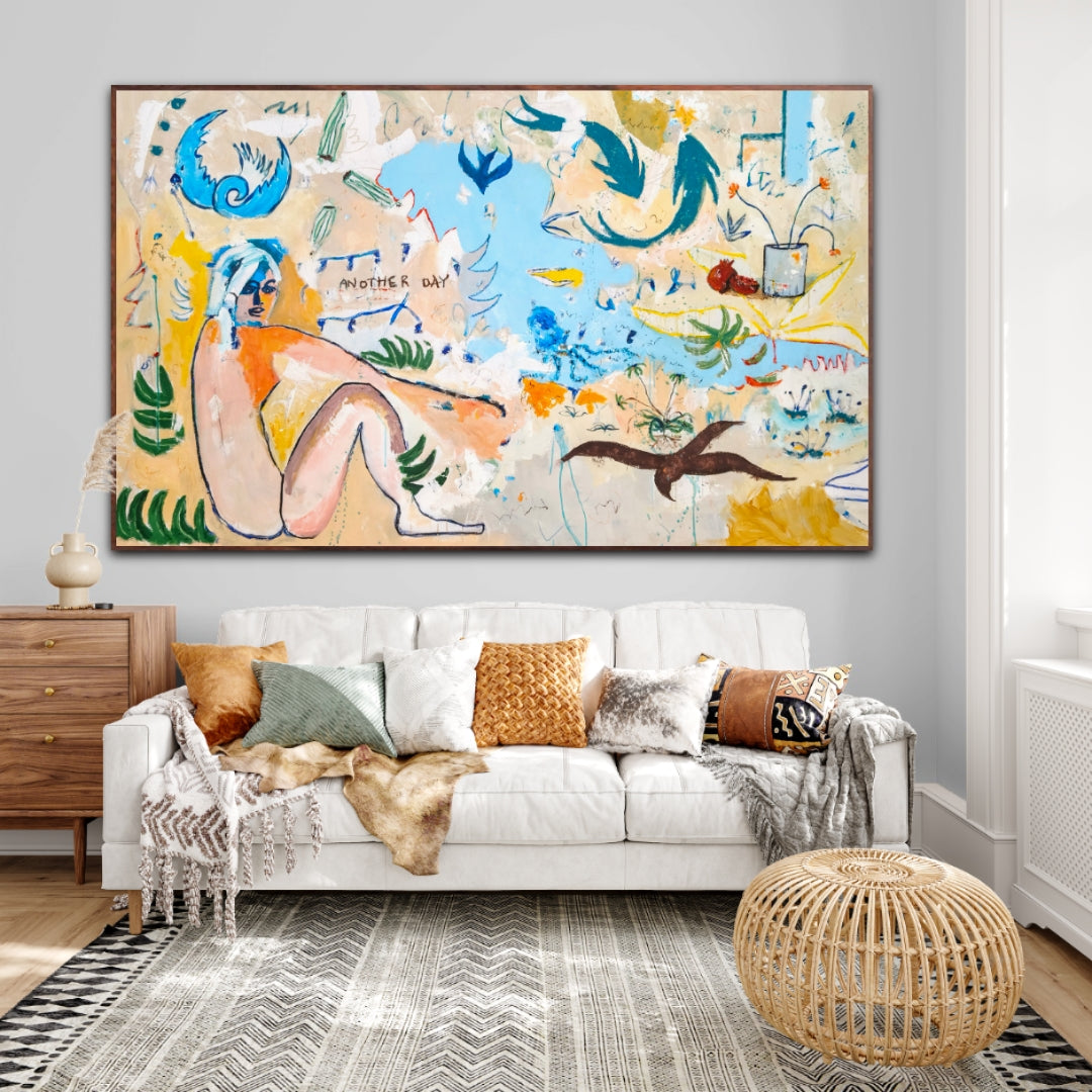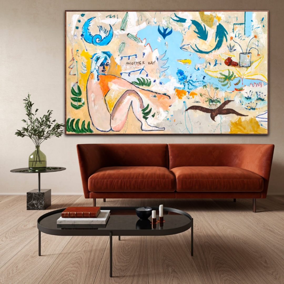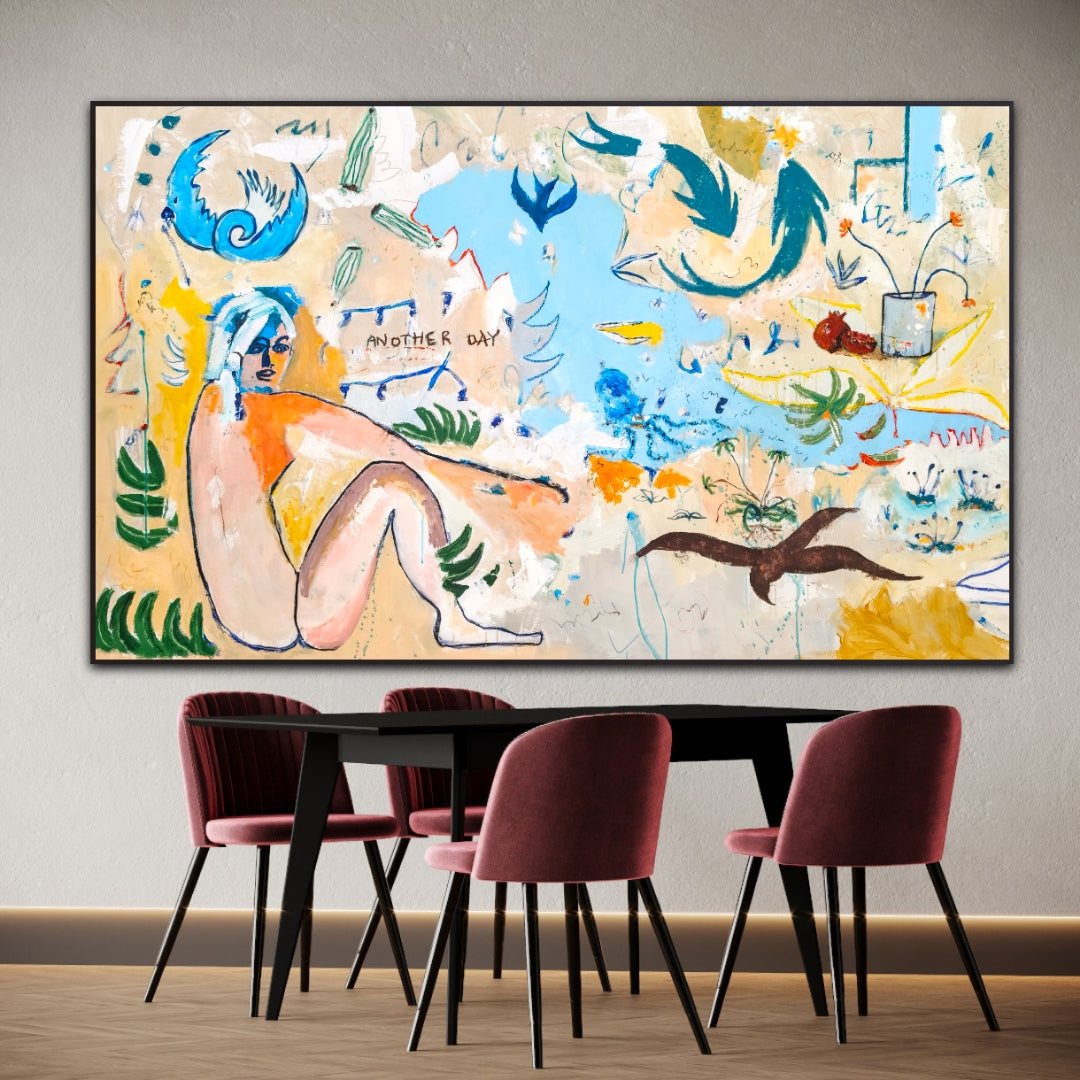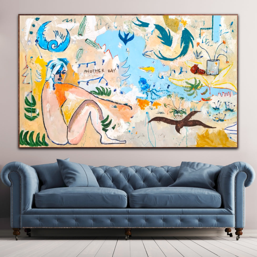 Pintura gestual, intuitiva, que deja que las cosas pasen y se apoya sobre lo que aparece. Aprovechando el accidente y aceptando las consecuencias.