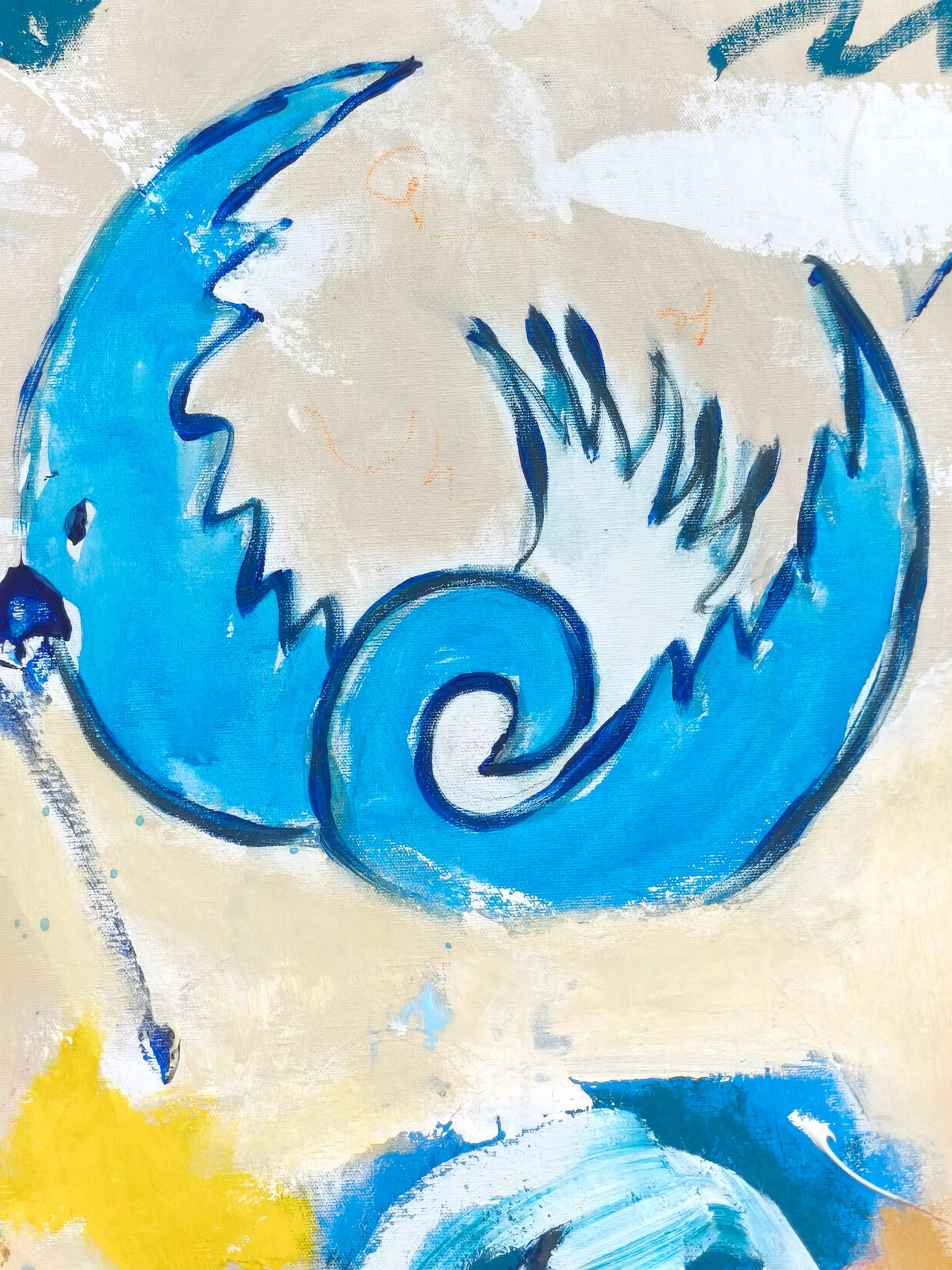 Cuadro trabajado desde la improvisación libre. Action painting escuchando la música de Maniobras Orquestales en la Oscuridad.