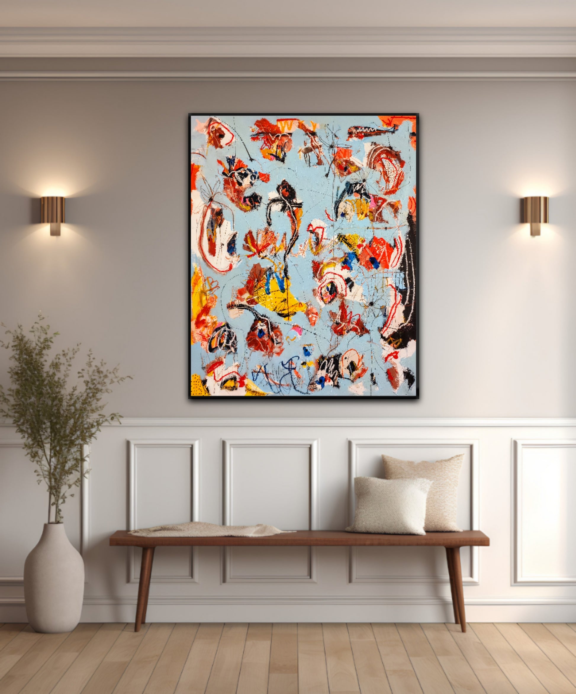 Técnica: mixed media: acrílico, gesso, tinta china, ceras, pastel y lápiz.